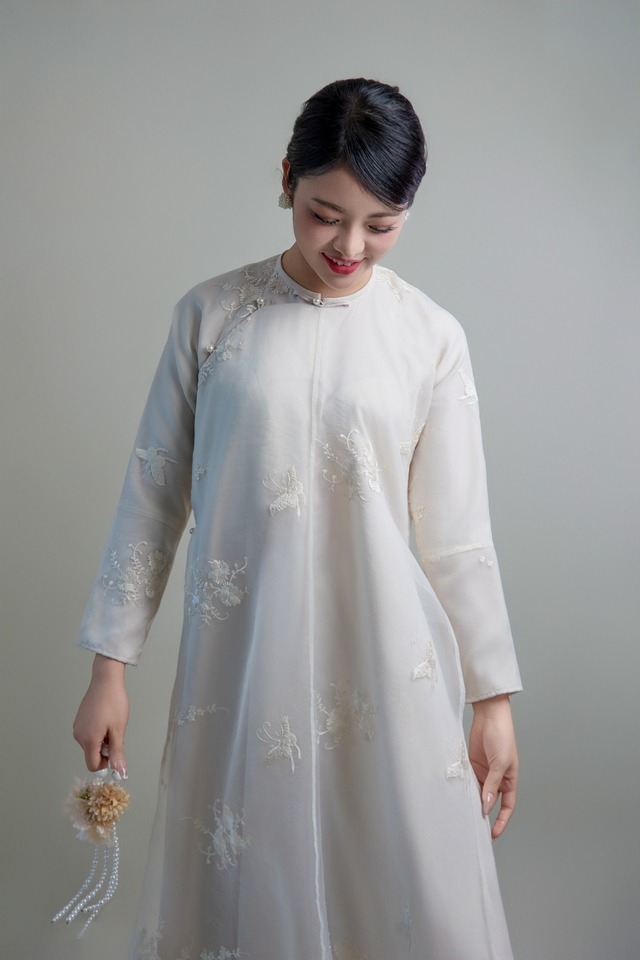 (ガール)No.T2614刺繍入りオーガンジーシルクべトナムアオザイセット
