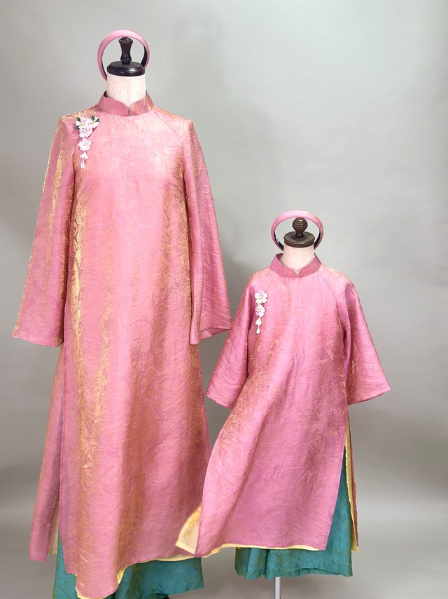 たくさんあるショップの中からご覧いただき、誠にありがとうございます。 ⸻ ◎ ブランド ナツミハンドメイド(Natsumi Handmade) ⸻ ◎ 商品説明 上品な艶のあるフラワージャカードシルク生地(花模様が織り込まれた上品なシルク生地)を使用した、ナツミハンドメイドオリジナルのアオザイセットです。 淡いピンクの色合いがやさしく、光の当たり方によって花模様が浮き上がる上質な仕上がり。 フォーマルシーン、写真撮影、結婚式、お祝い行事などにもぴったりです。 フラワージャカードシルクとは、生地そのものに花模様が織り込まれた高級シルクで、光の角度によって模様が立体的に浮かび上がる上品な質感が特徴です。 素材:フラワージャカードシルク(花柄織りシルク) セット内容:上着(アオザイ)+ズボン カラー:ペールピンク × 花柄織り ⸻ 【上着(アオザイ)】 XS:バスト80/ウエスト60/ヒップ84/体重38–43kg S:バスト84/ウエスト64/ヒップ88/体重44–47kg M:バスト88/ウエスト68/ヒップ92/体重48–53kg L:バスト92/ウエスト72/ヒップ96/体重54–59kg XL:バスト96/ウエスト76/ヒップ100/体重60–65kg XXL:バスト100/ウエスト80/ヒップ104/体重65–70kg ⸻ 【ズボン】(後ろゴム入り・コットンギャザー) XS:ウエスト60–62/ヒップ84/ズボン丈90 S:ウエスト62–64/ヒップ88/ズボン丈92 M:ウエスト65–68/ヒップ92/ズボン丈96 L:ウエスト68–72/ヒップ96/ズボン丈100 XL:ウエスト72–76/ヒップ100/ズボン丈102 XXL:ウエスト76–80/ヒップ104/ズボン丈104 ⸻ 大人用:15,400円 子供用:4,600円 #アオザイ #ハンドメイド #ナツミハンドメイド #ベトナムアオザイ #シルクドレス #フォーマルドレス #結婚式コーデ #フラワージャカード #花柄シルク