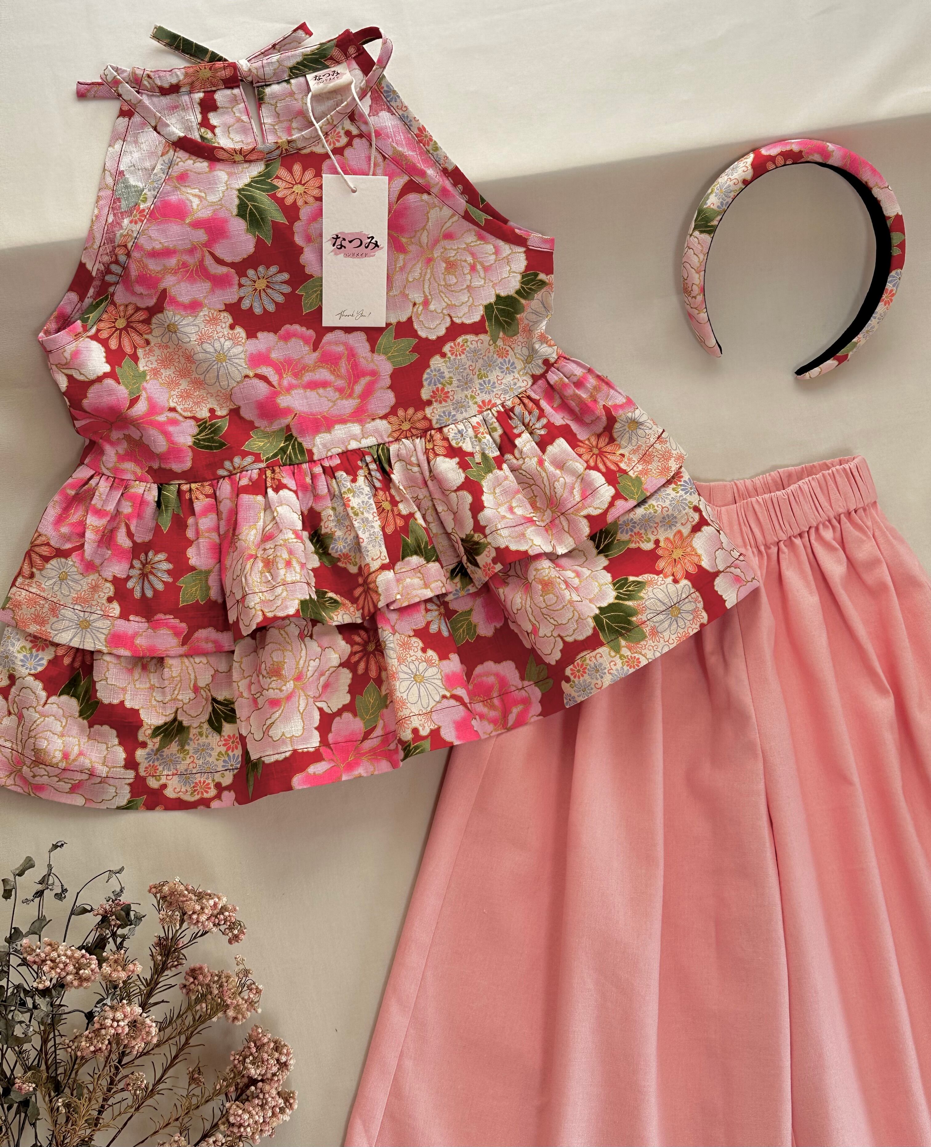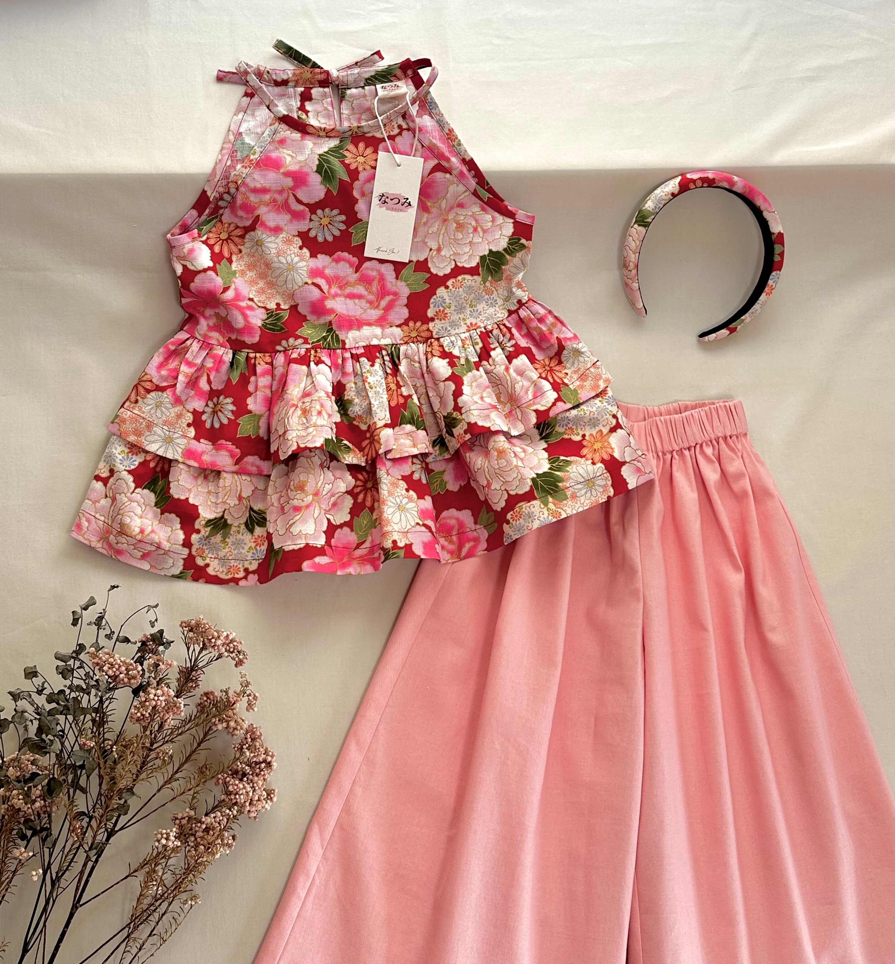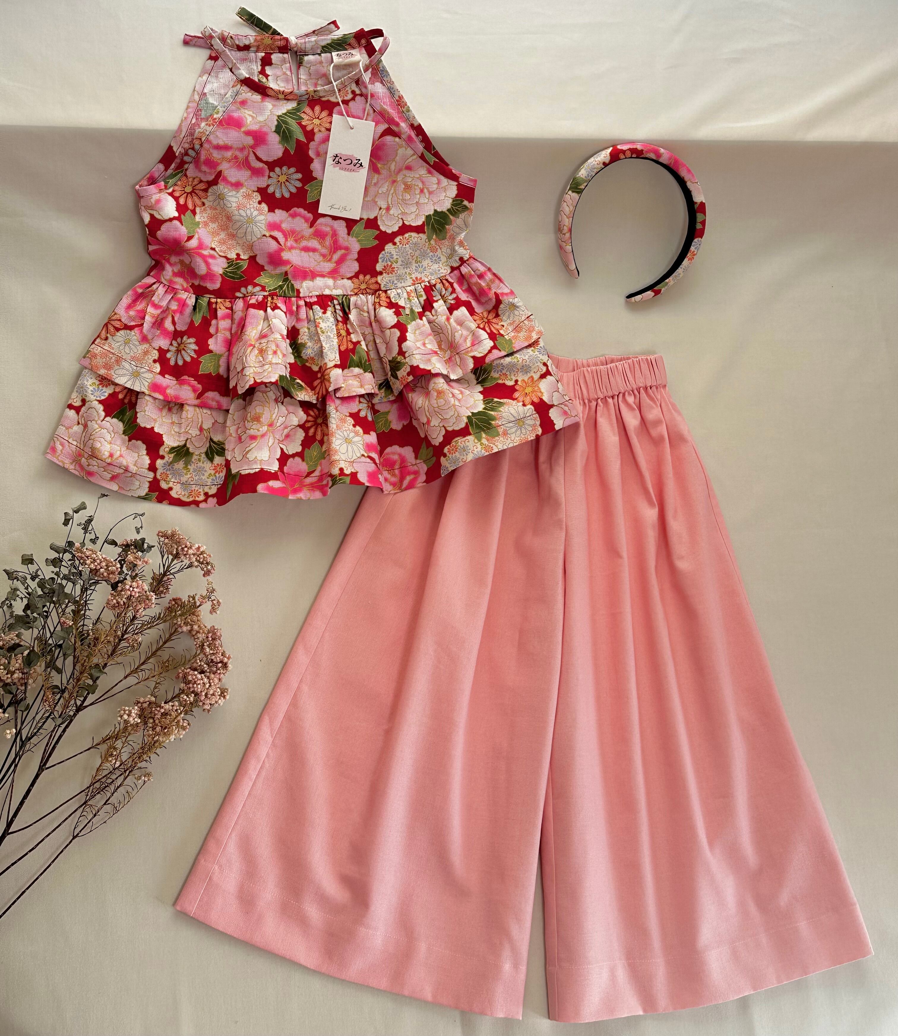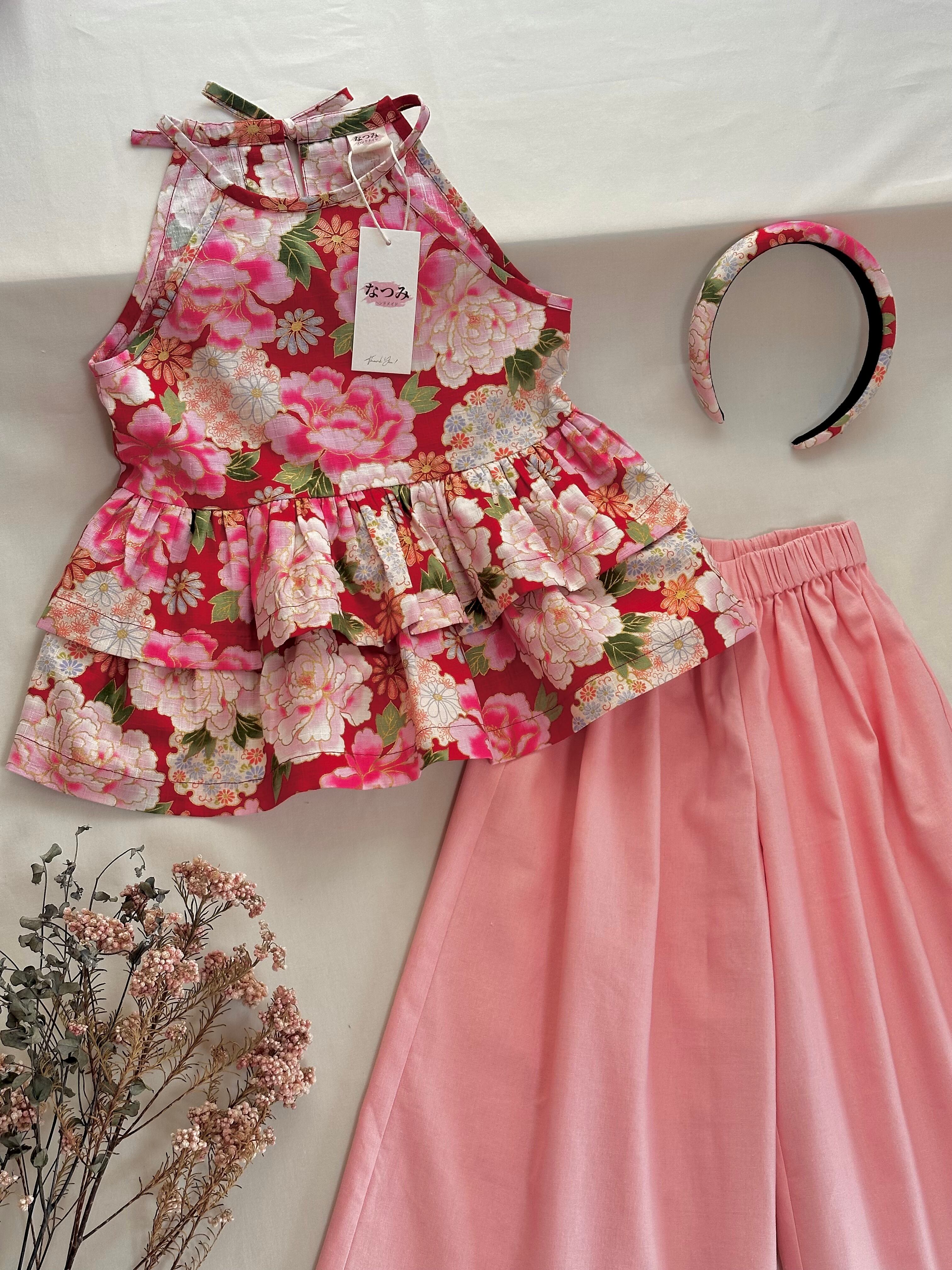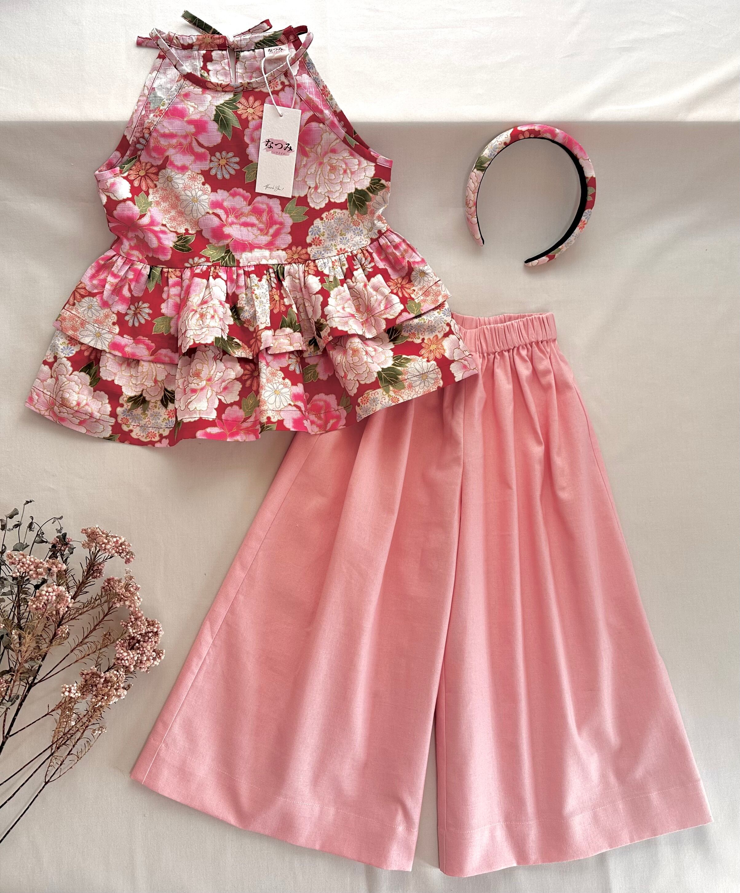 No.SX2504ハンドメイド女の子花柄のフリル付きキュロットパンツヘヤバンド