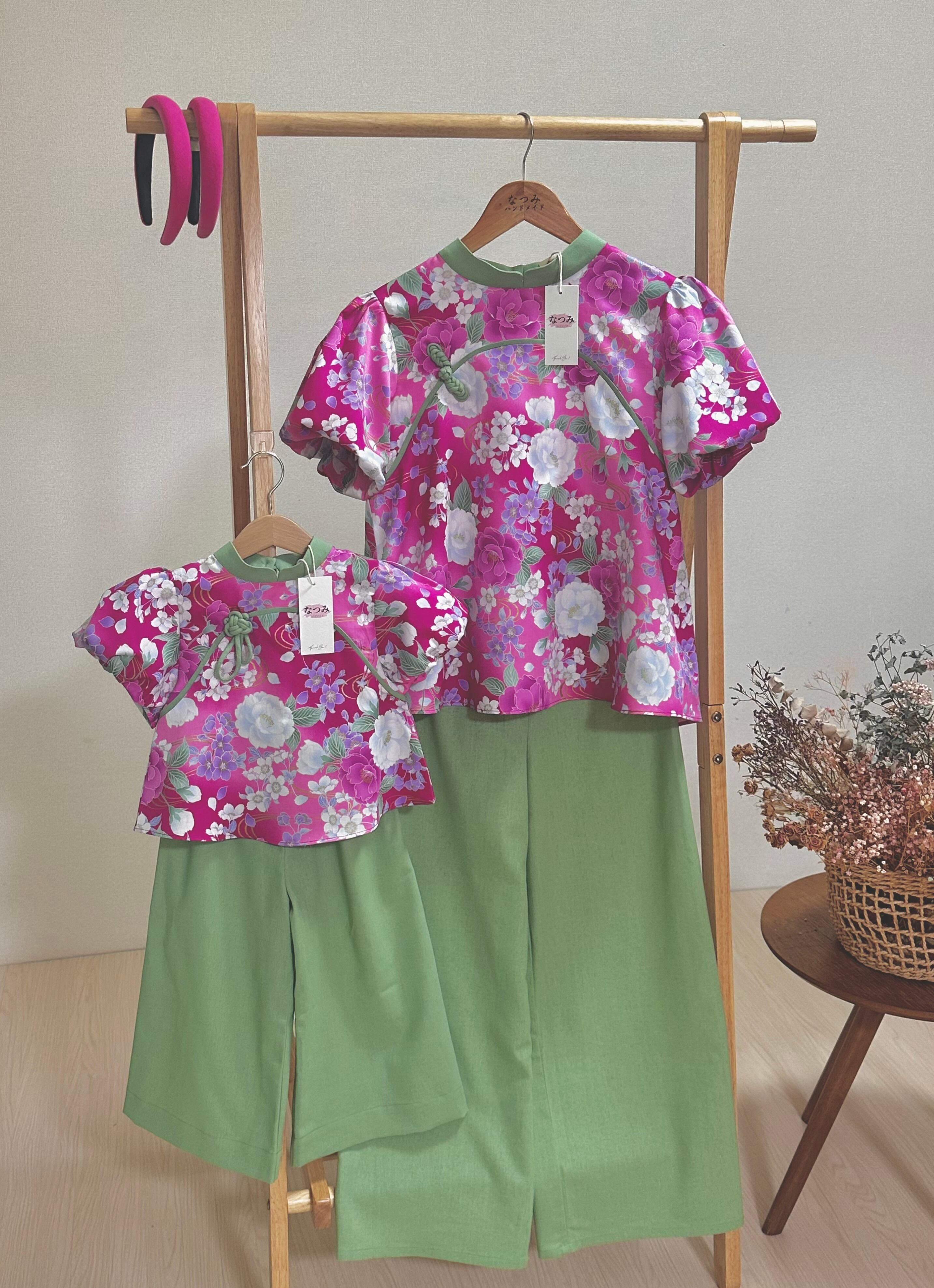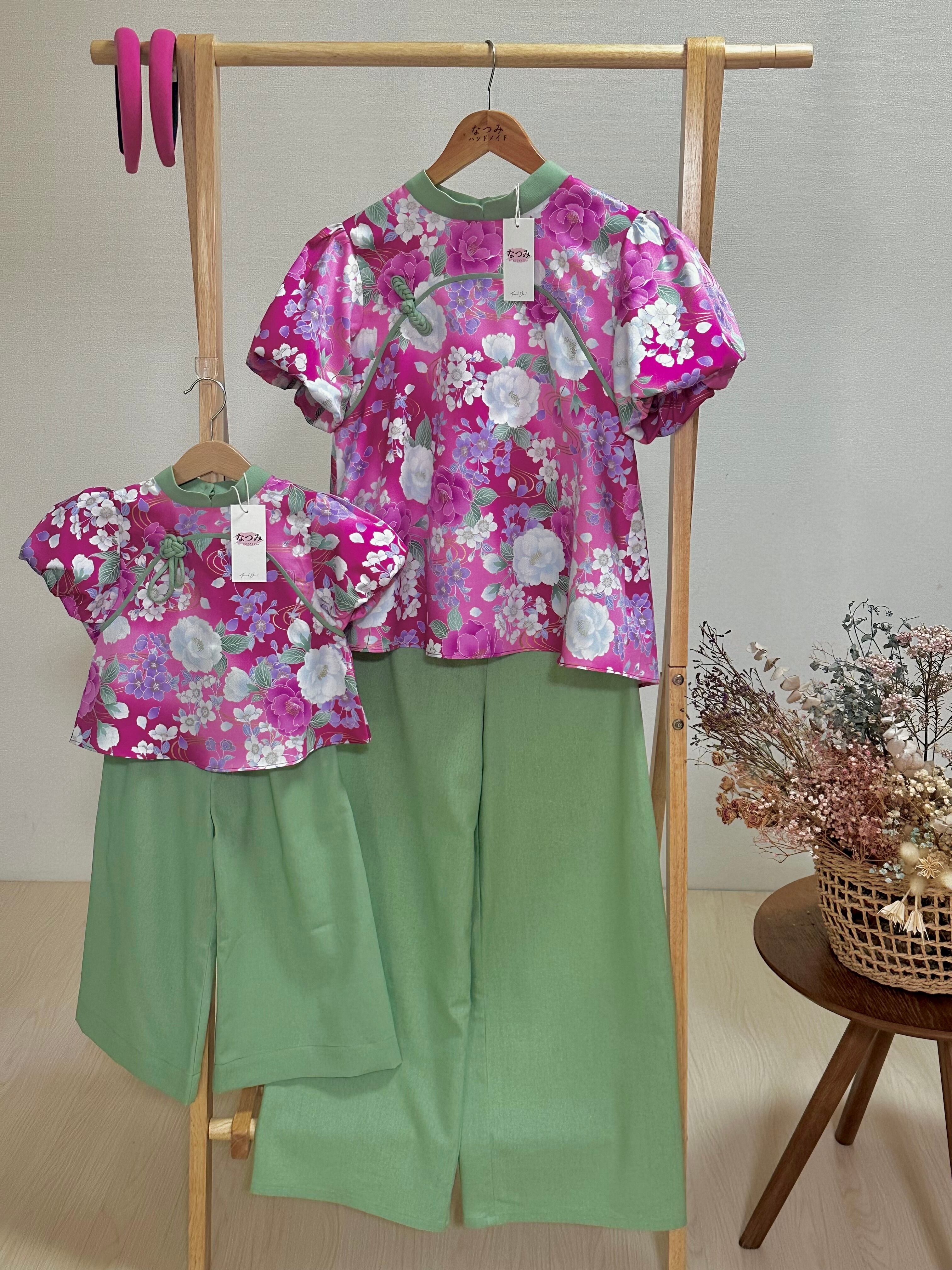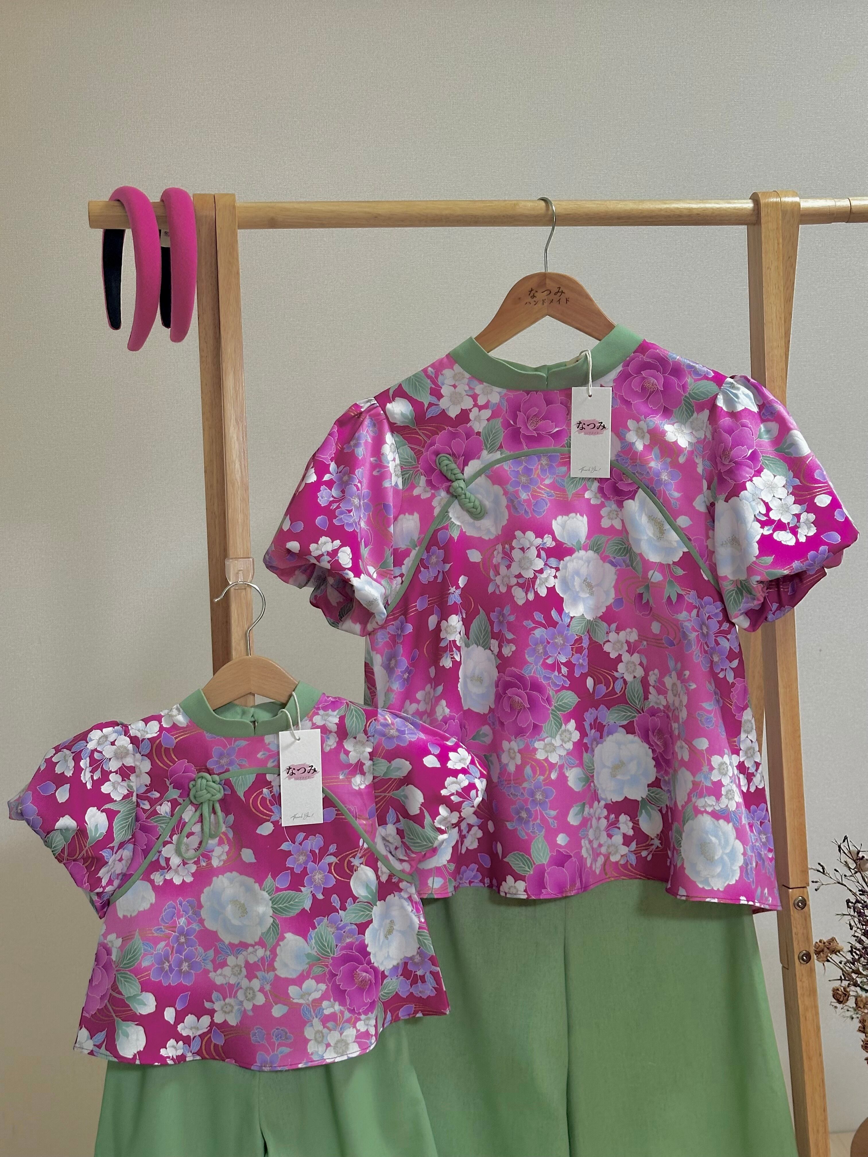 (レディース)No.SX08ブラウスパフスリーブ半袖中華風 チャイナ風 セット