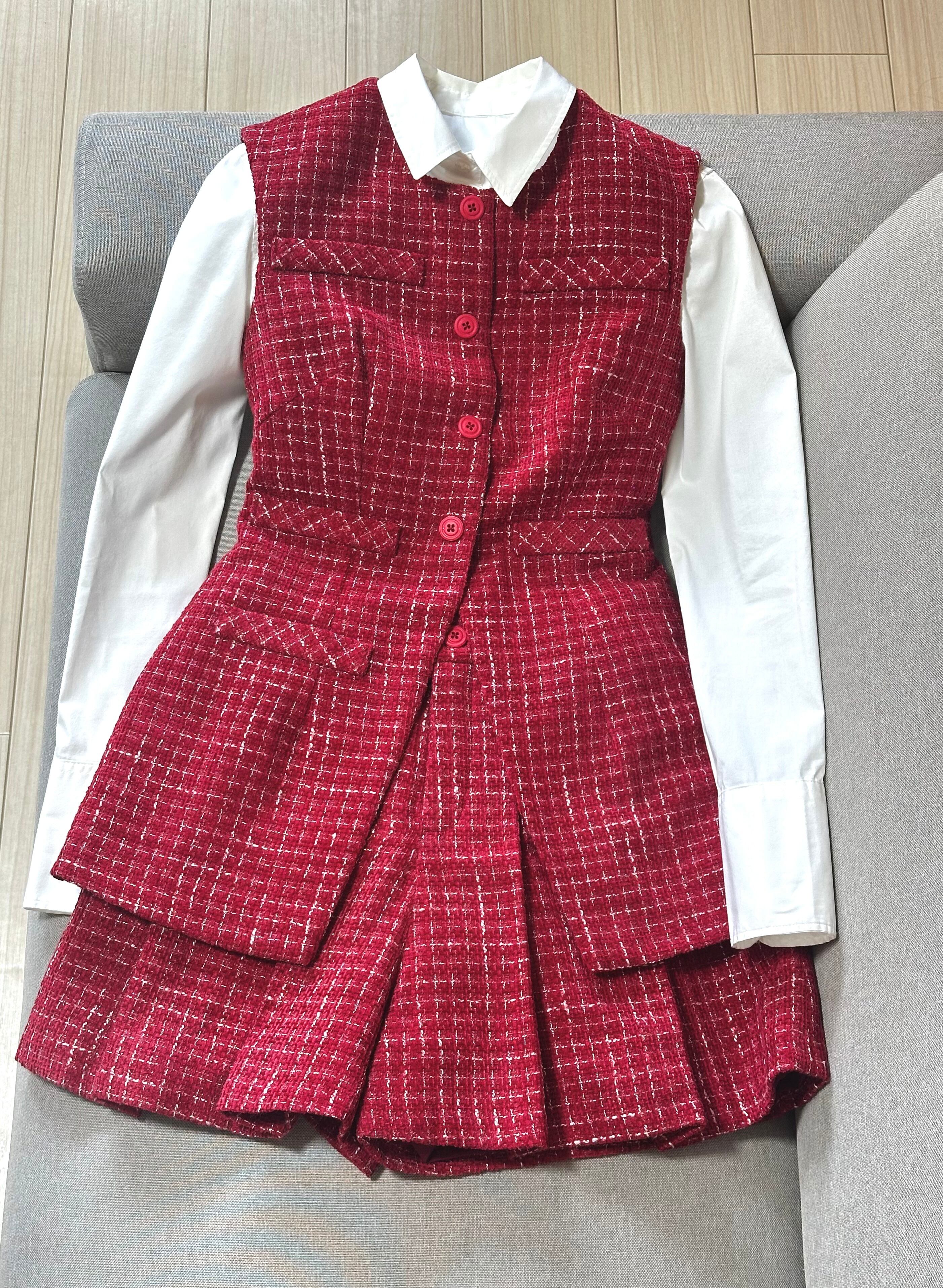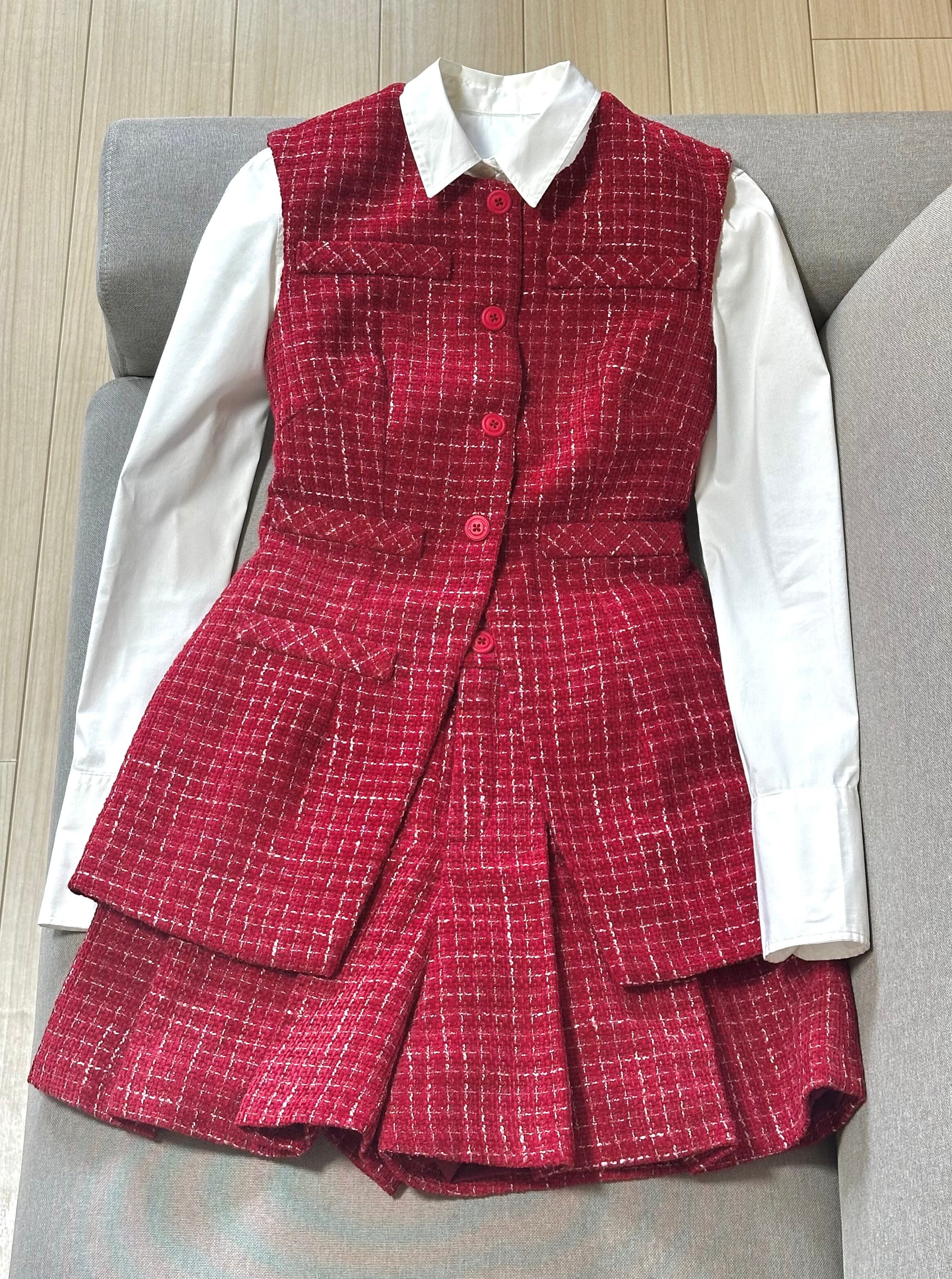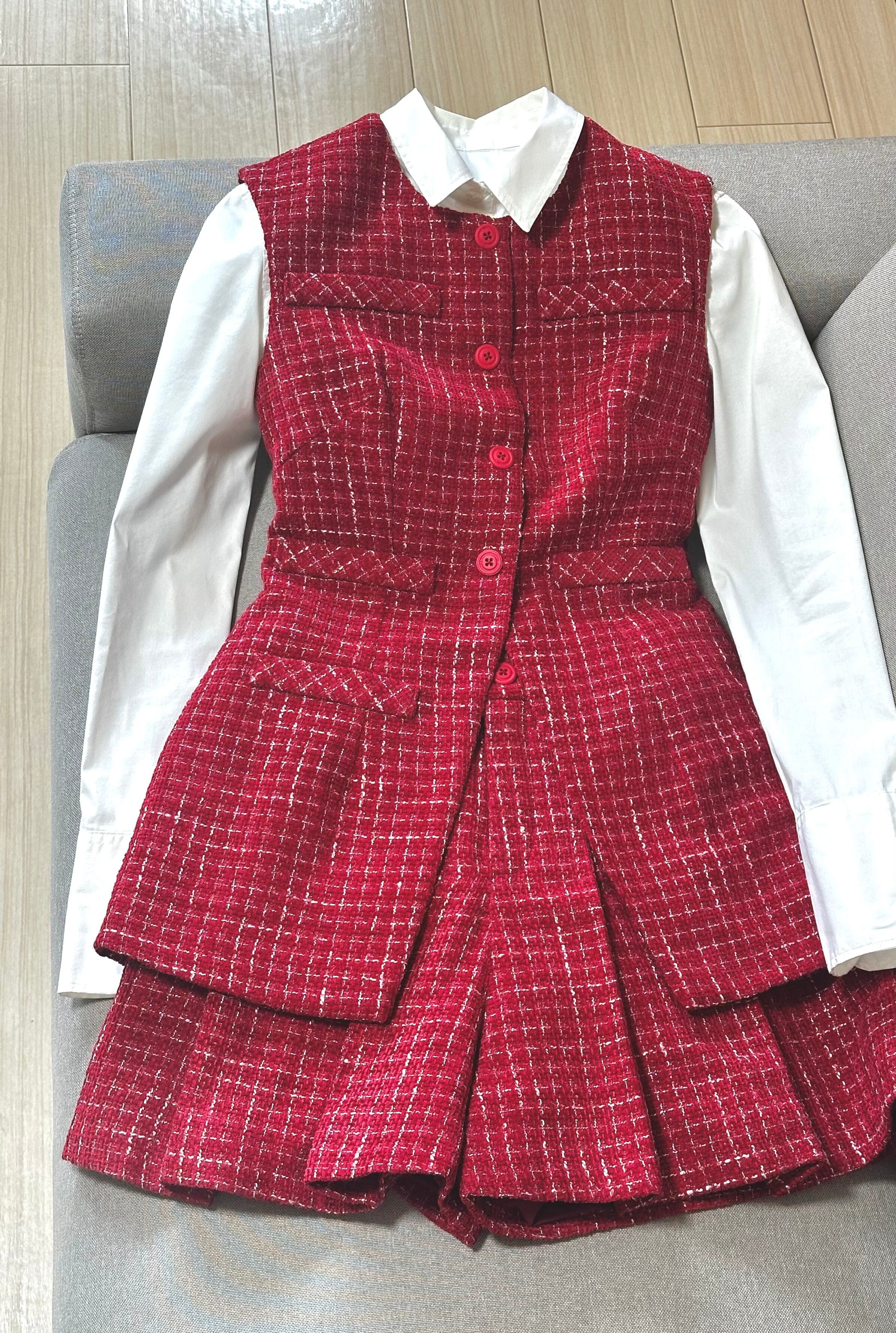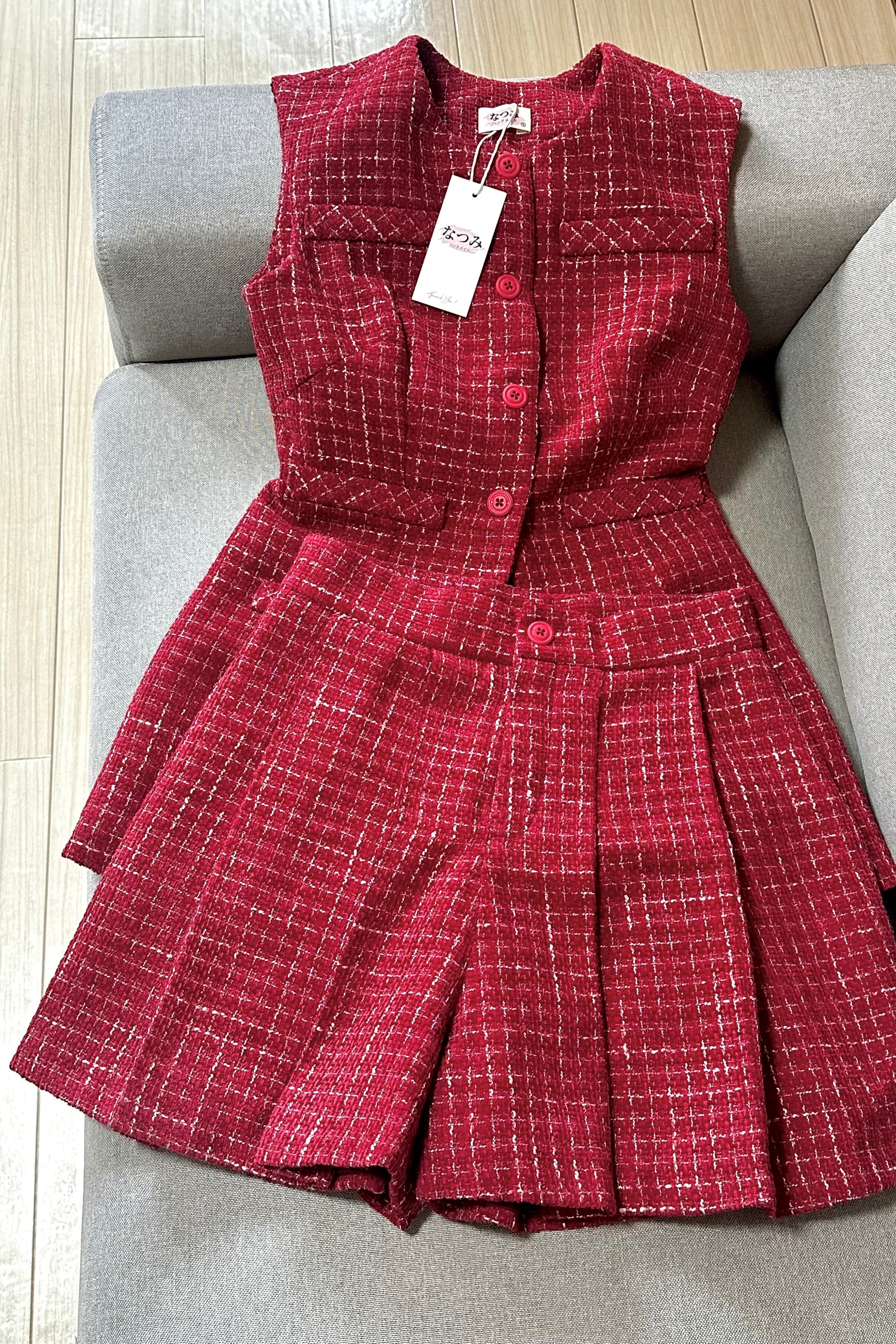 No.SX2512レディーステクスチャーベストスカートセットアップ