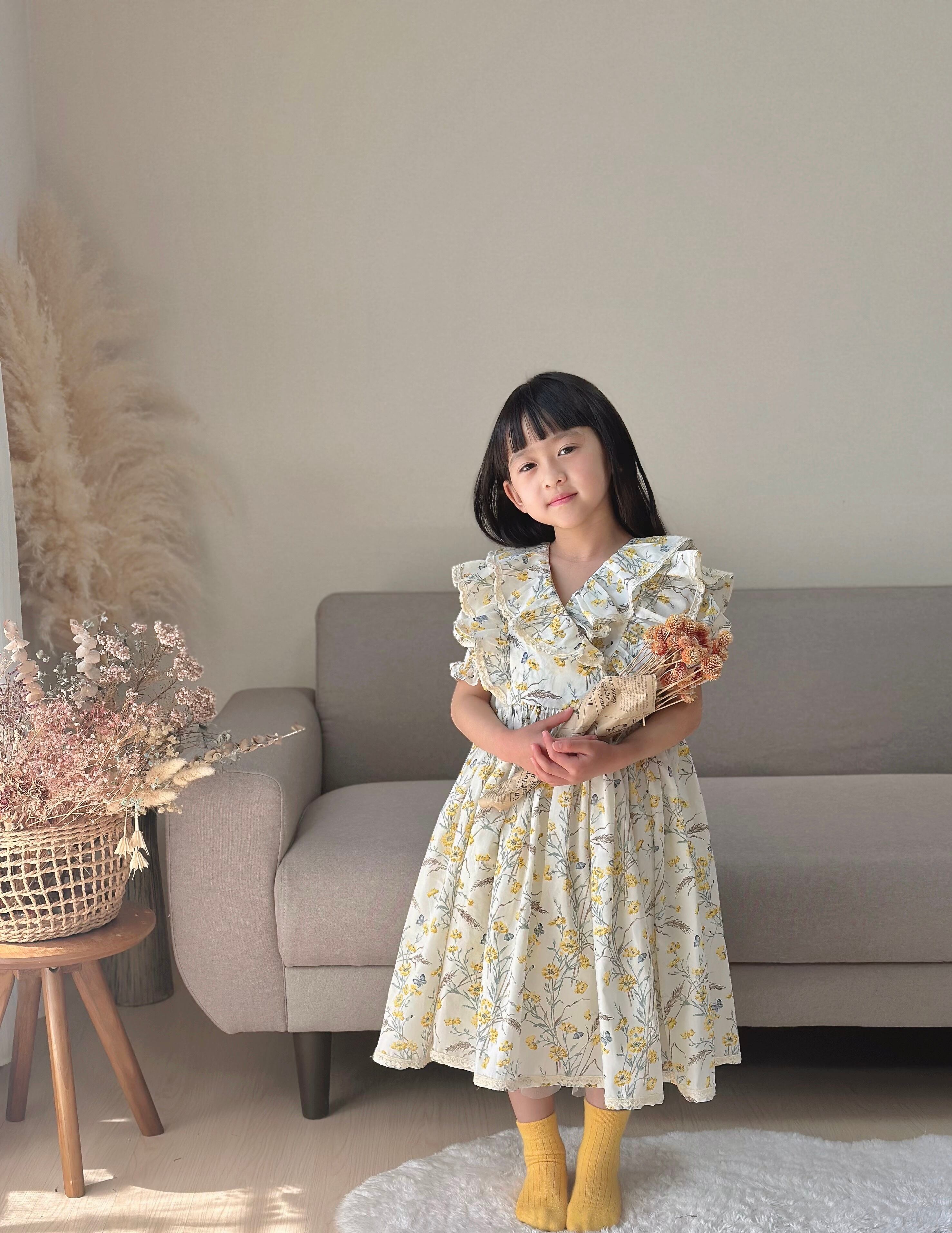 No.H2501ハンドメイド女の子可愛いフリル付き花柄ワンピース