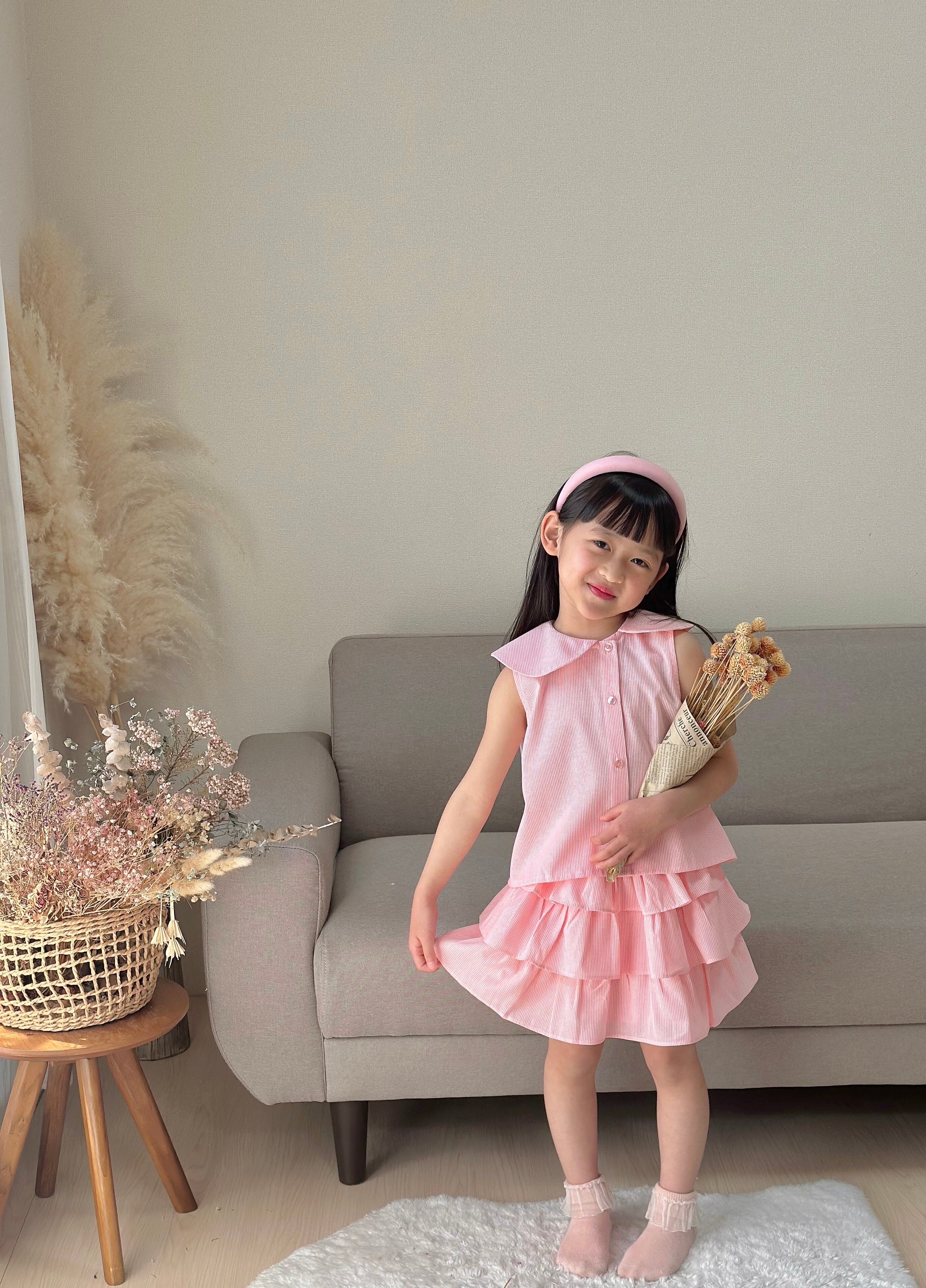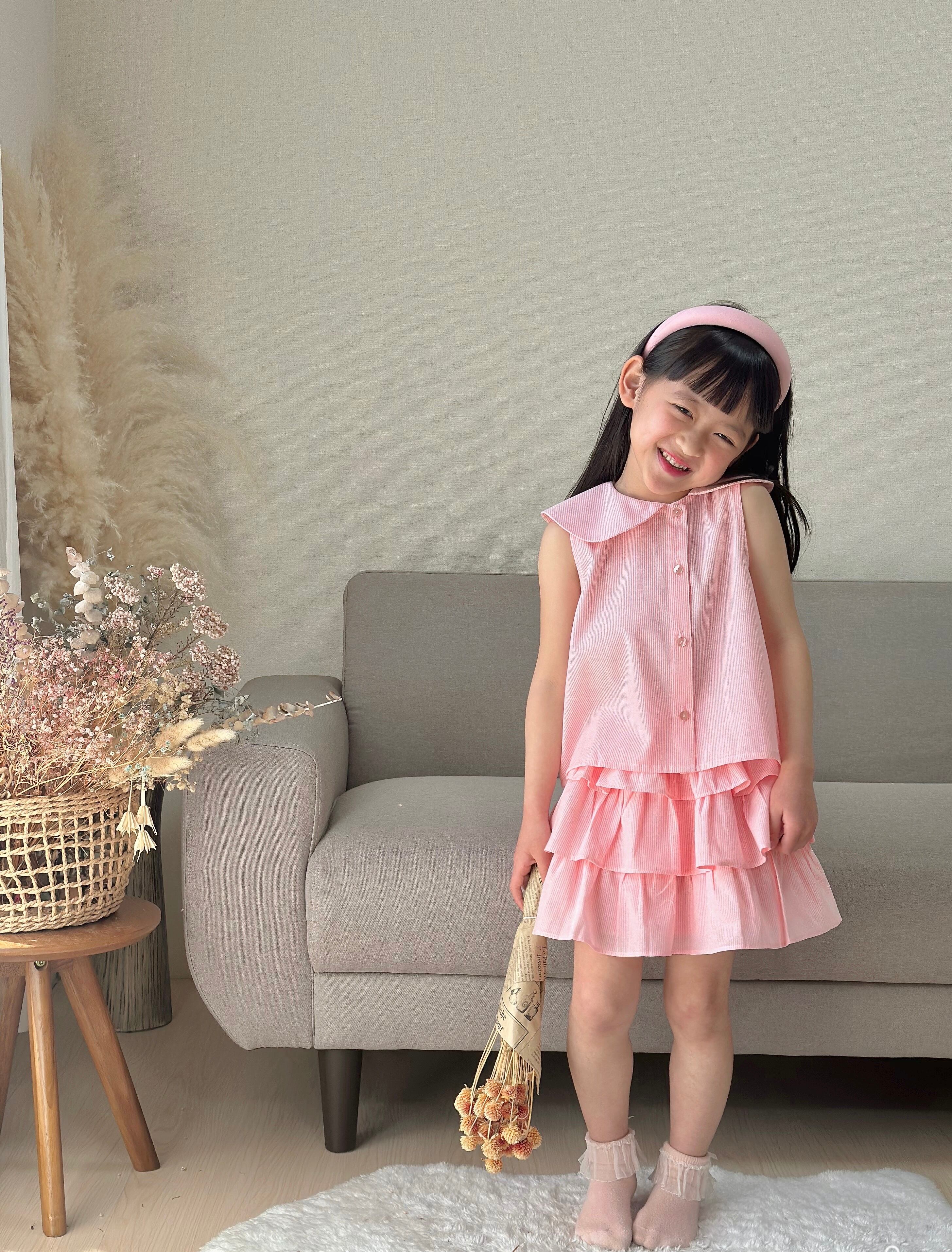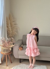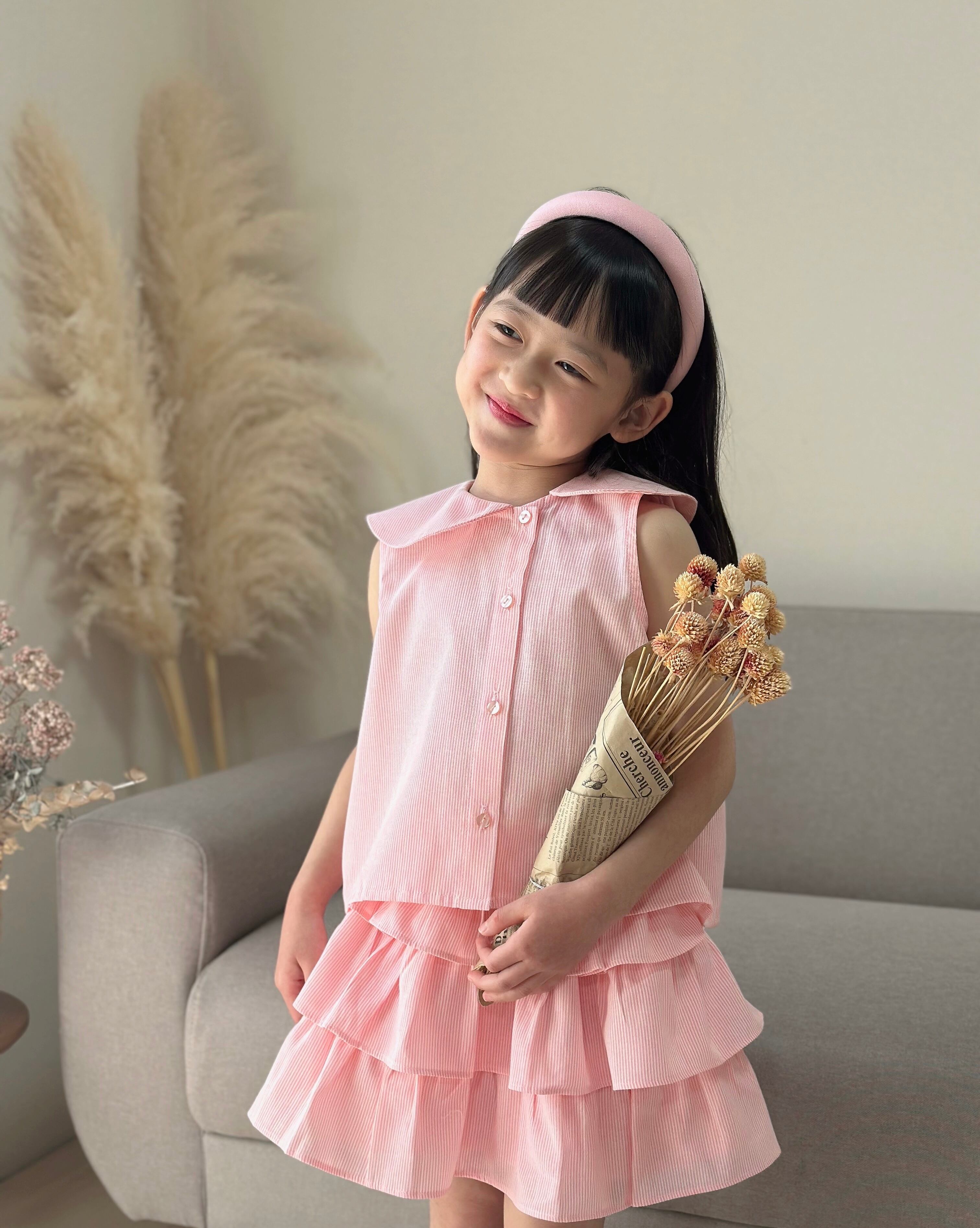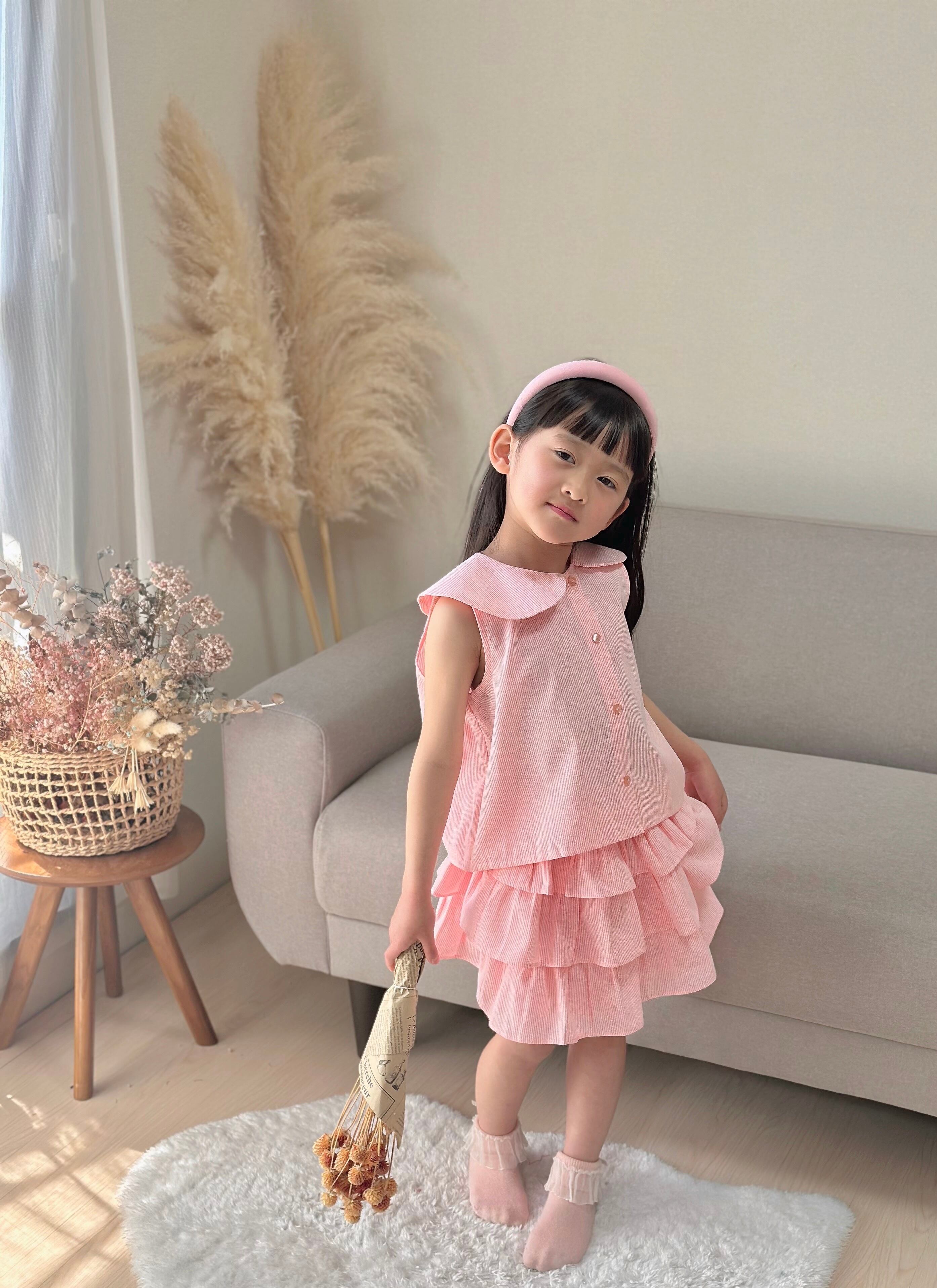 No.H2502ハンドメイド女の子カジュアルブラウンスカートセットヘアバンド付き