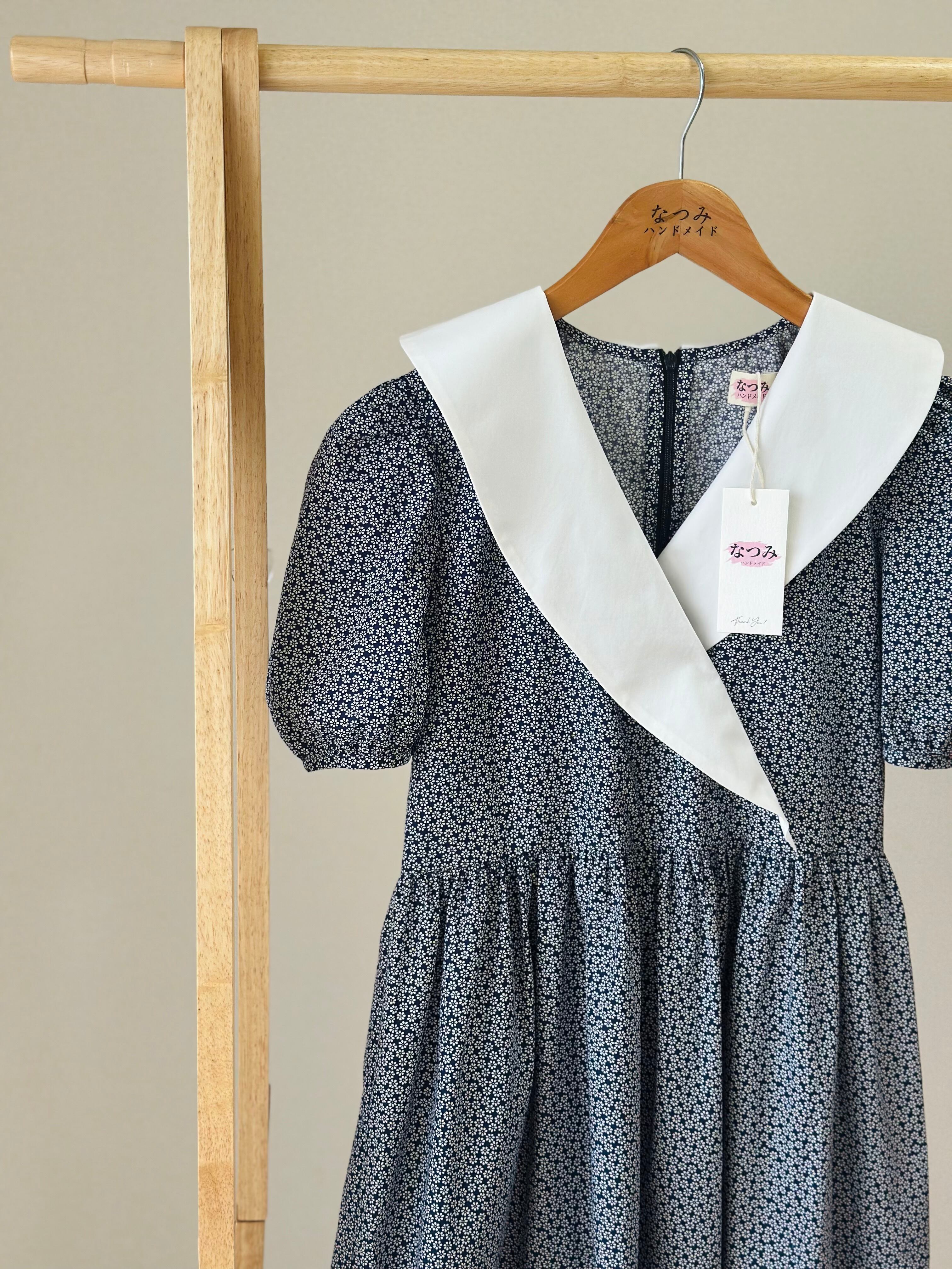 (レディース)No.MCH2503ママ娘お揃い小花柄ネイビーセーラー襟ワンピース