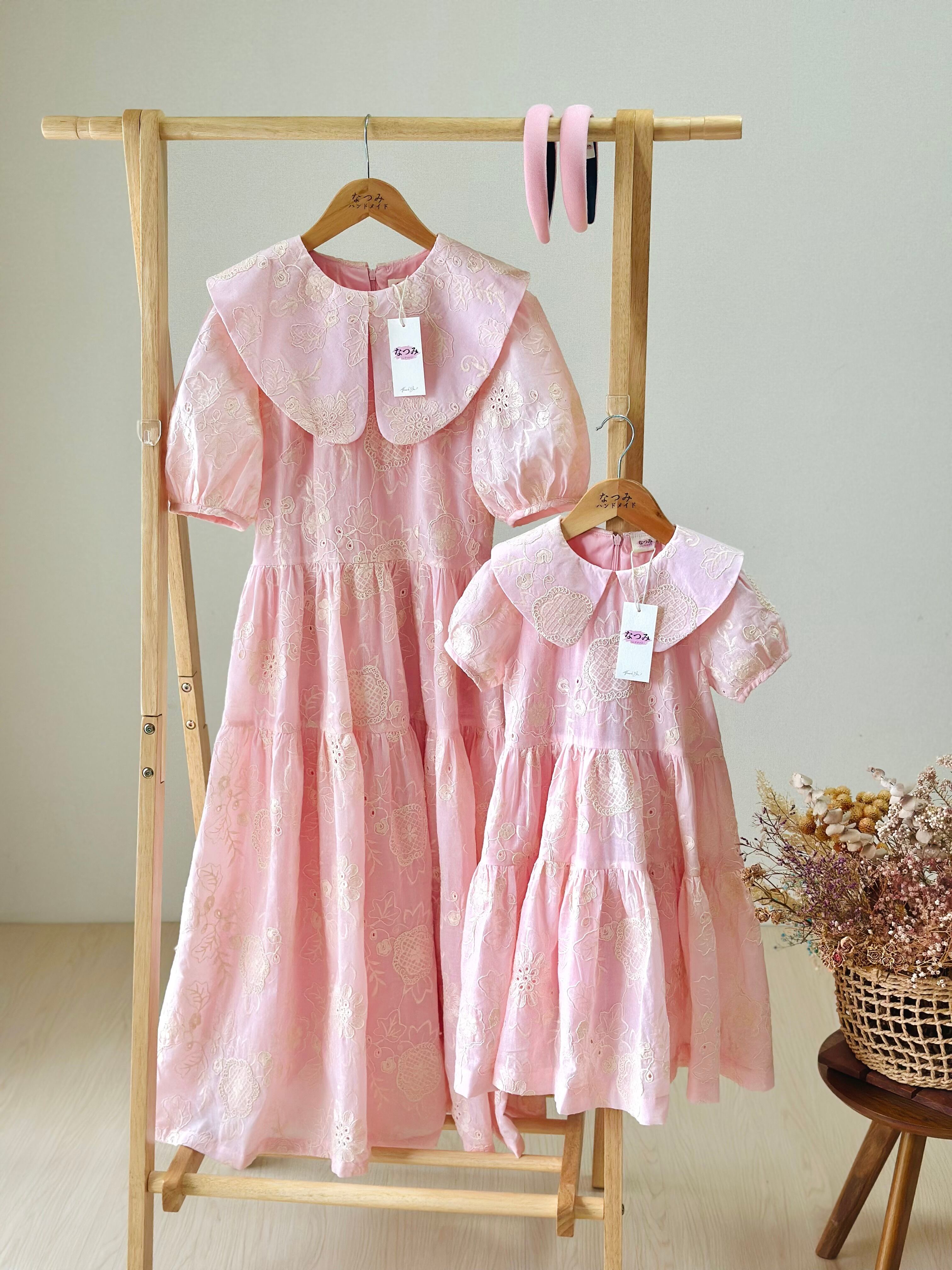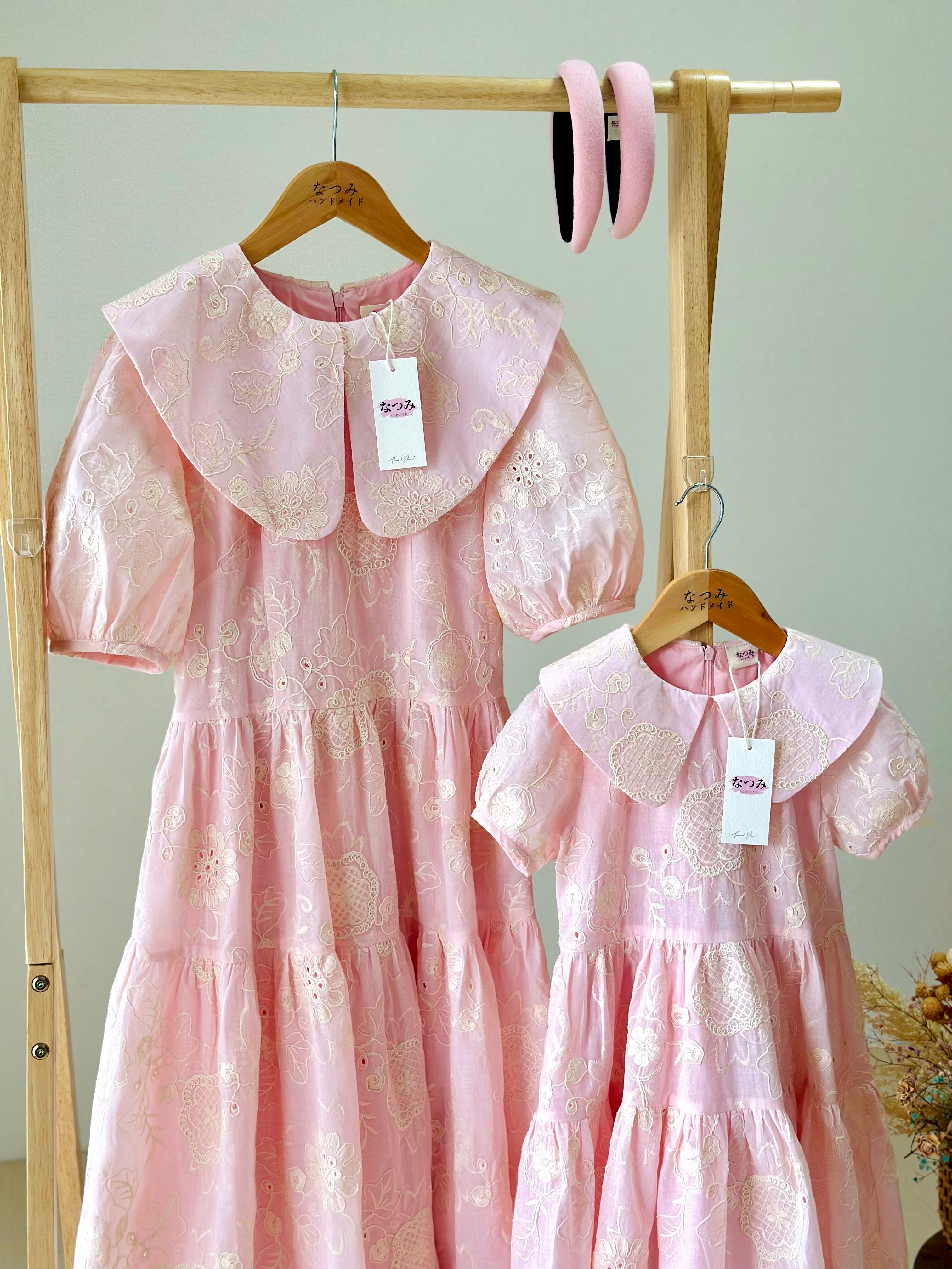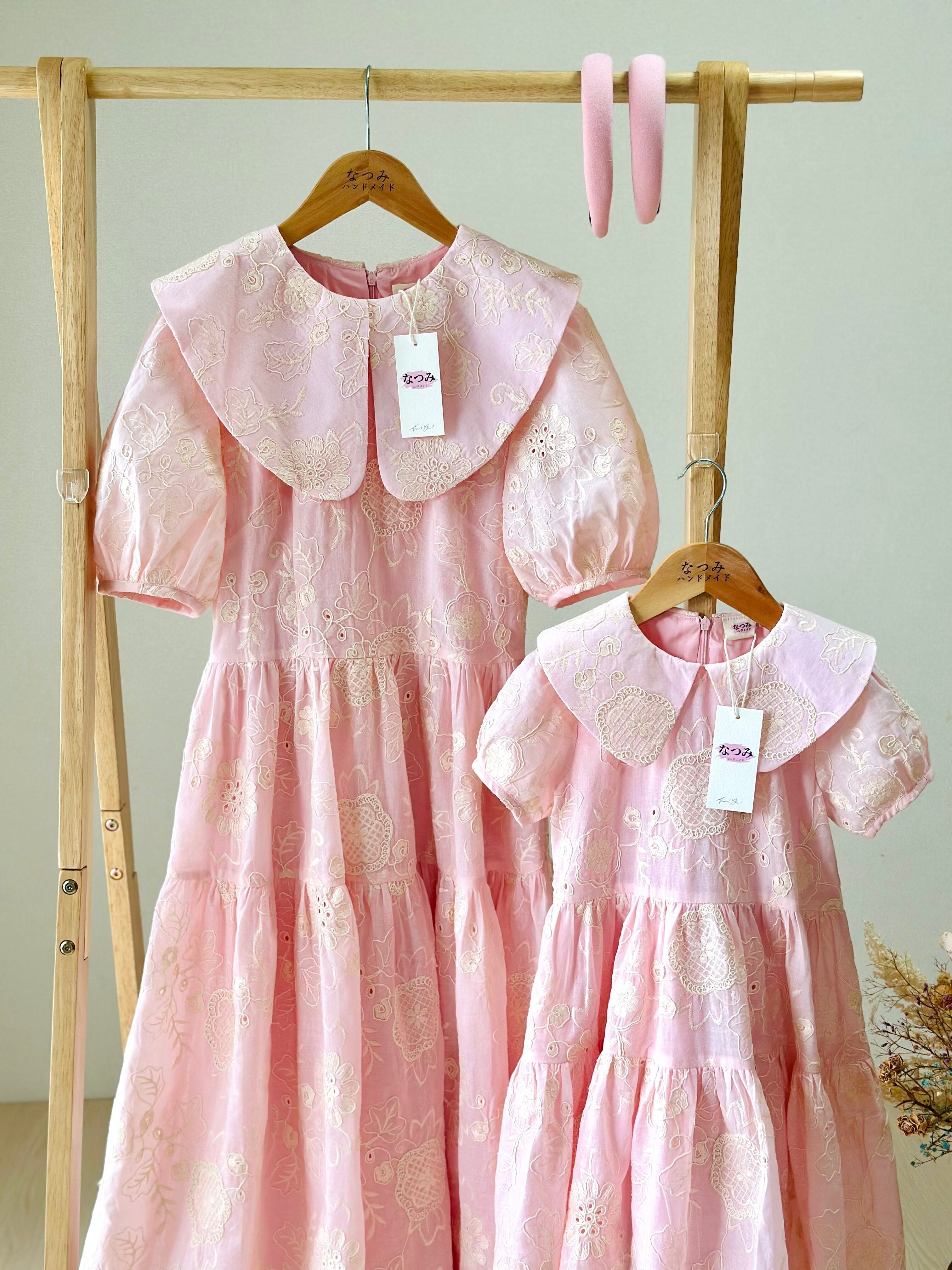 (レディース)No.H2527ハンドメイドママと娘お揃い花柄刺繍ドレス