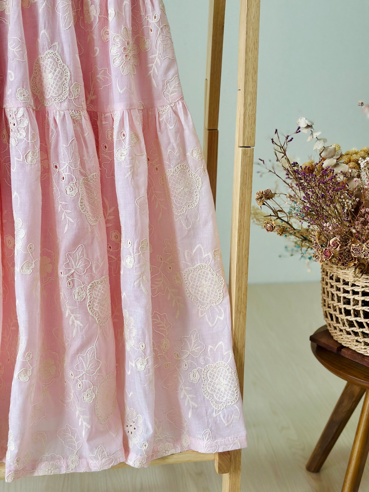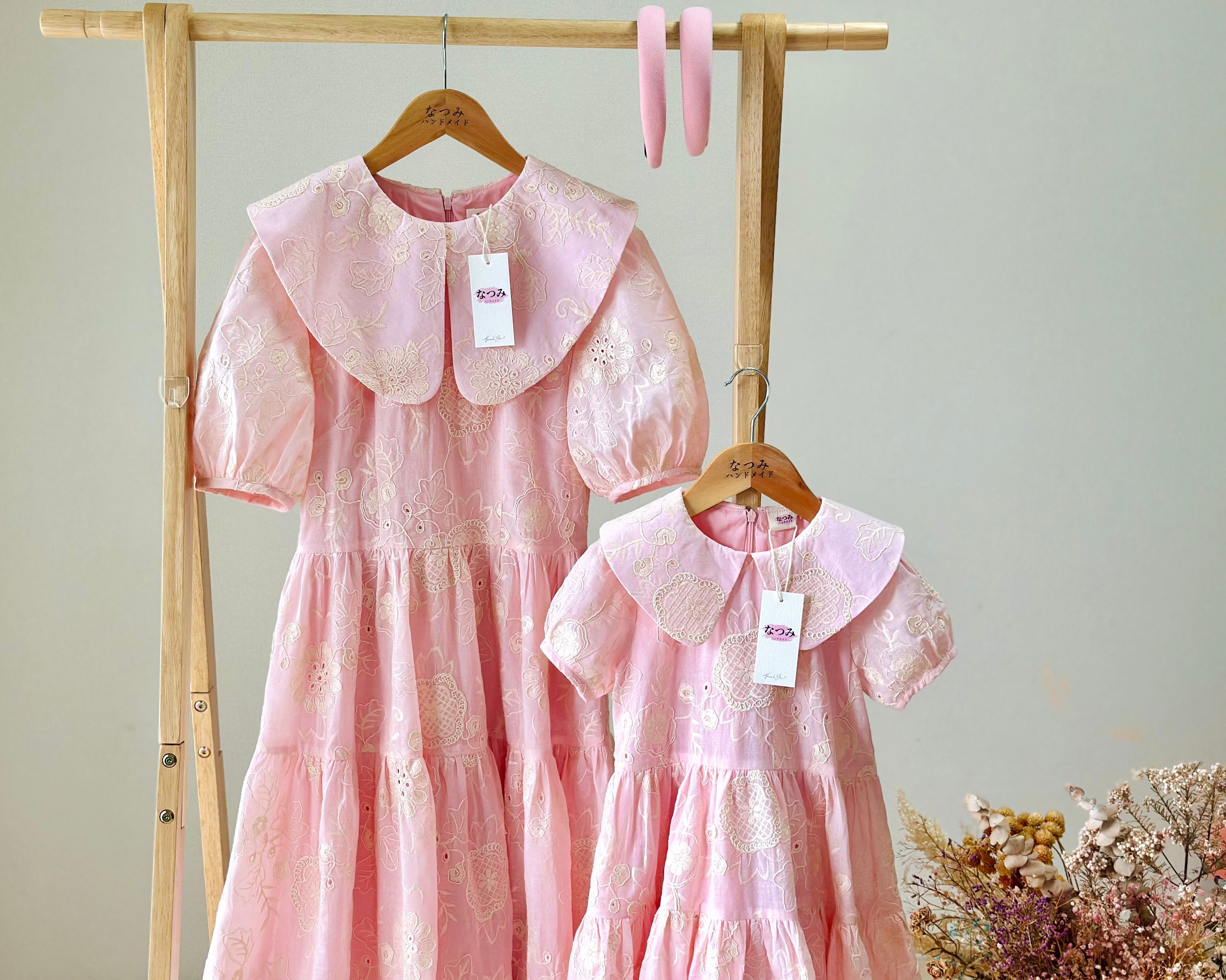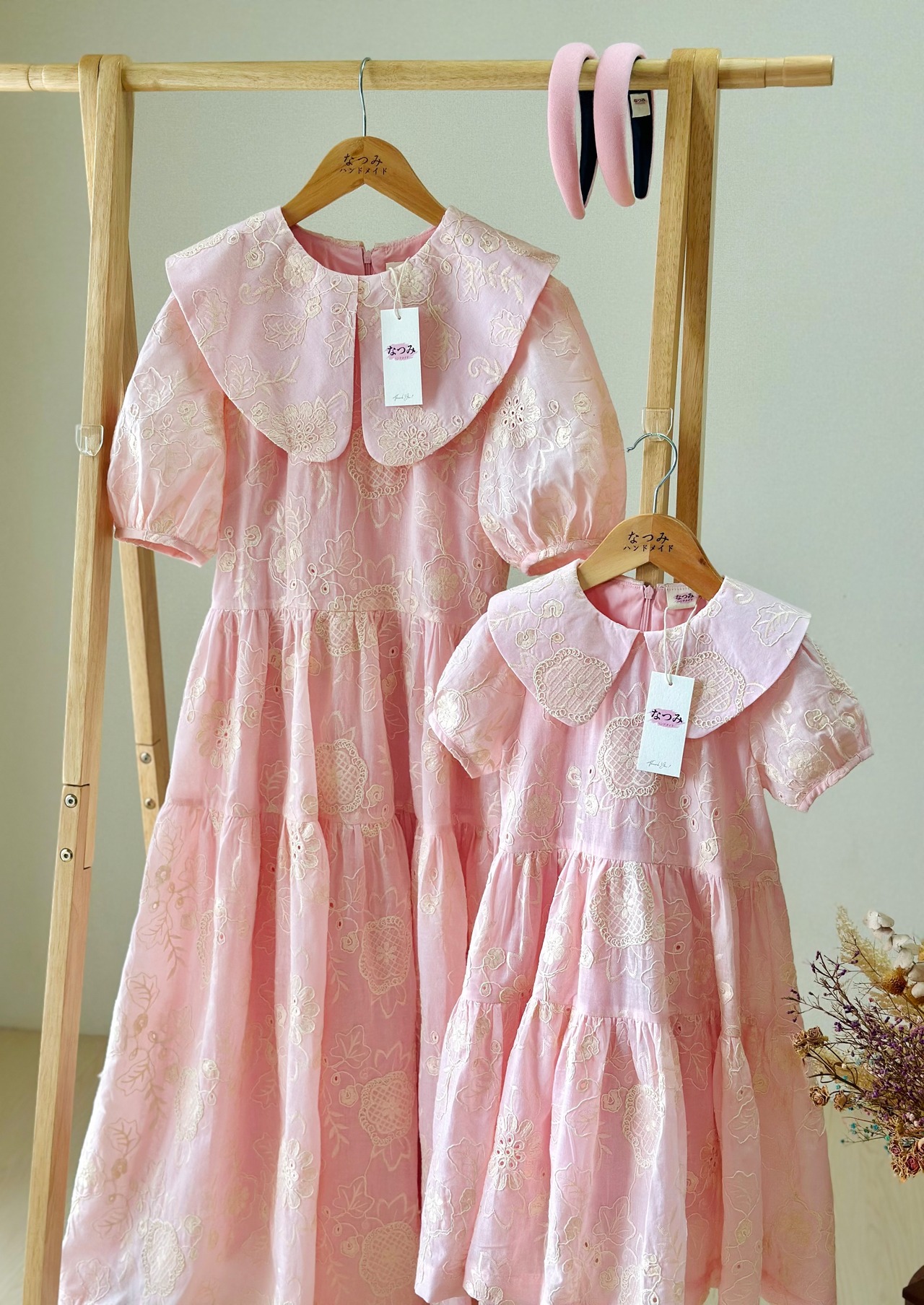 (レディース)No.H2527ハンドメイドママと娘お揃い花柄刺繍ドレス