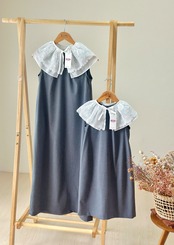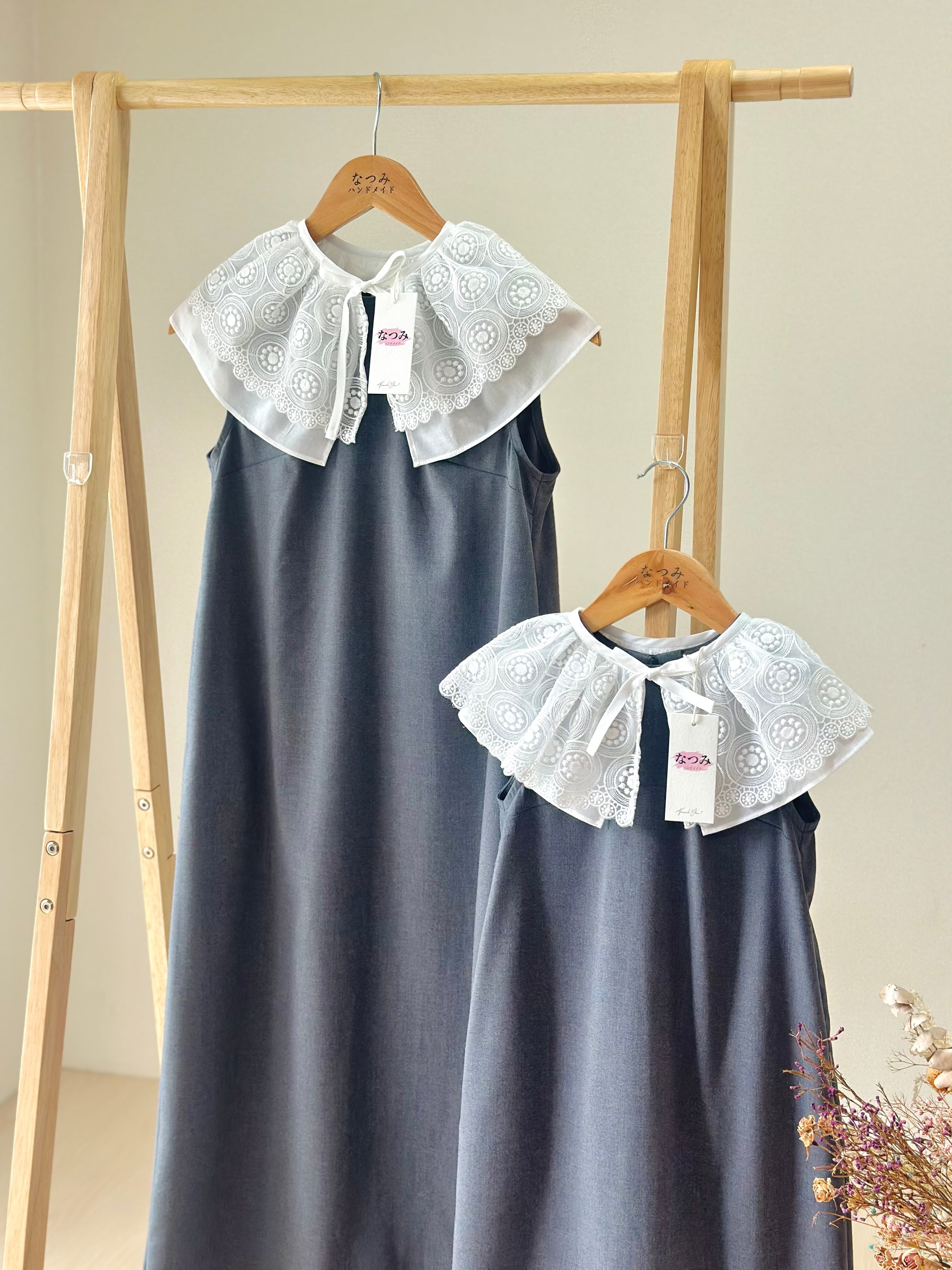 (レディース)No.H2529親子ペアワンピース取り外し可能な襟(レース素材、フリル付き)