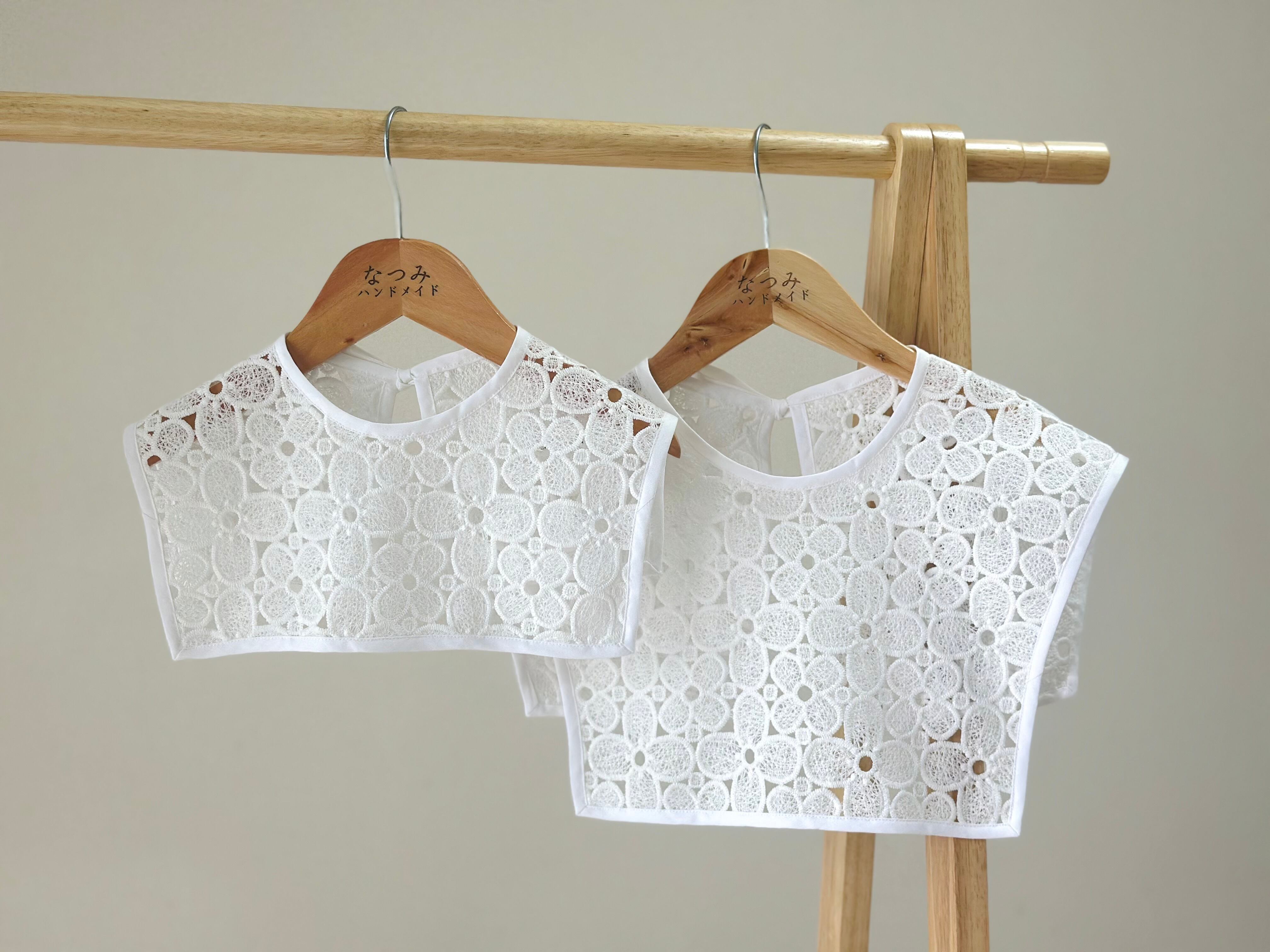 (レディース)No.H2529親子ペアワンピース取り外し可能な襟(スクエアビブ風・レース素材)