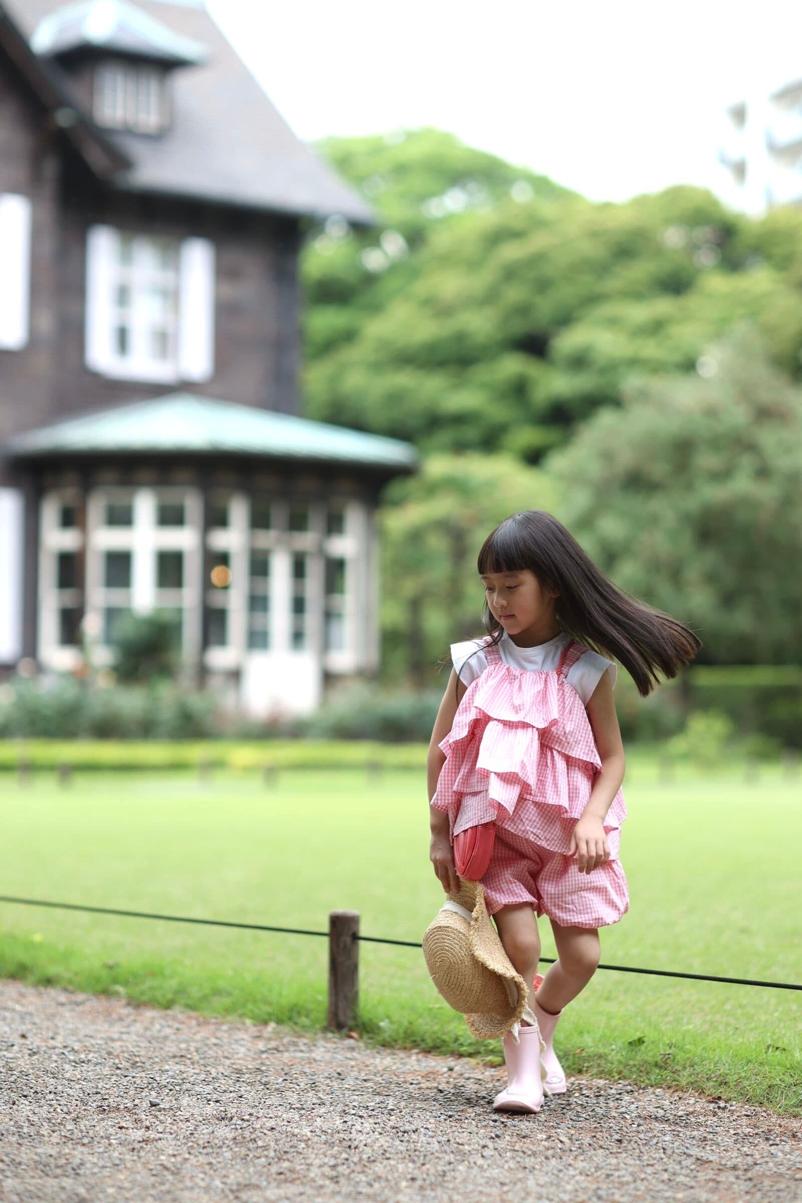 ピンクのギンガムチェック柄がとってもキュートな女の子用スカートセットです。