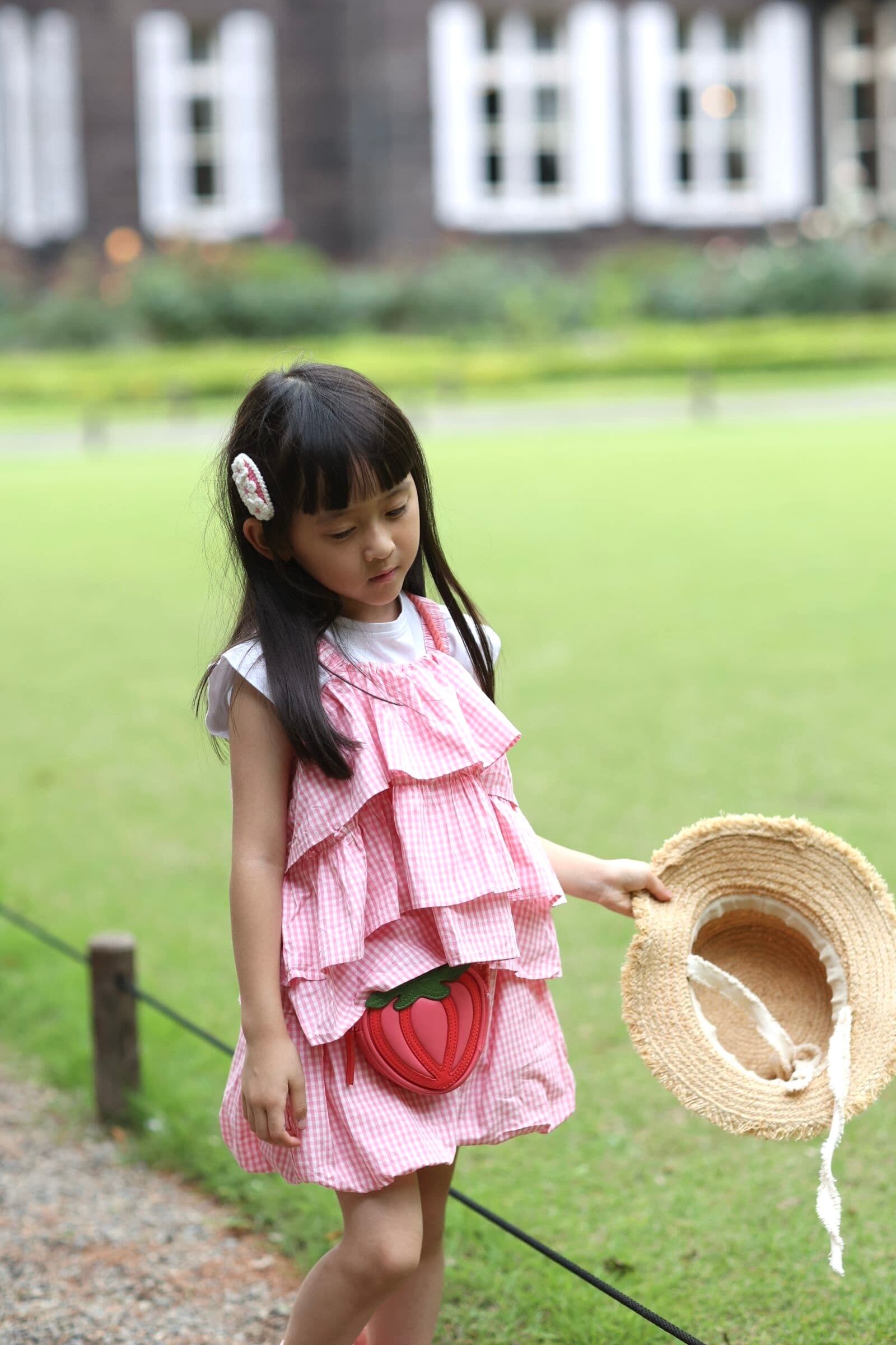 No.H2531ハンドメイド女の子可愛いフリル付き ピンクチェックスカートセット