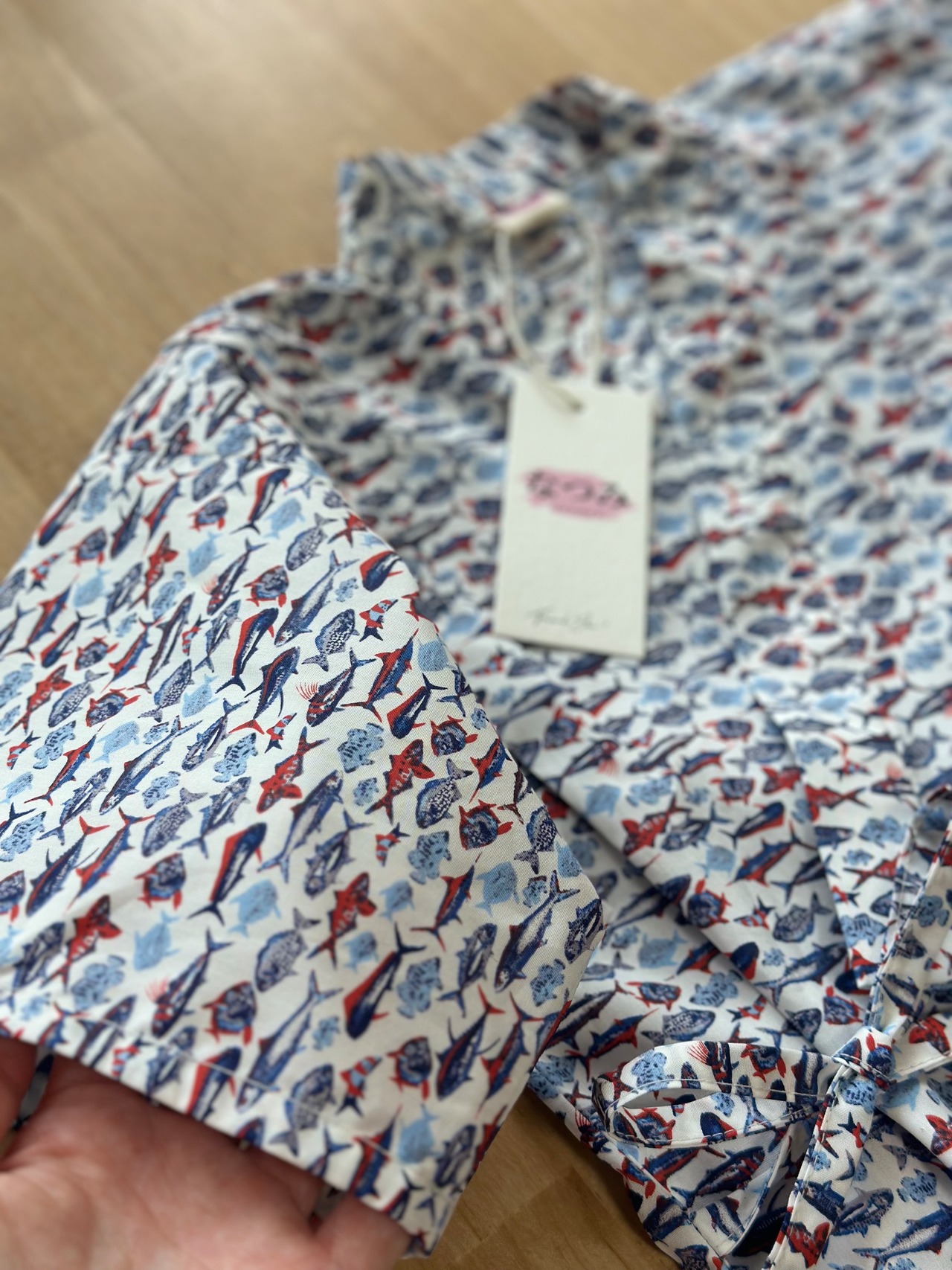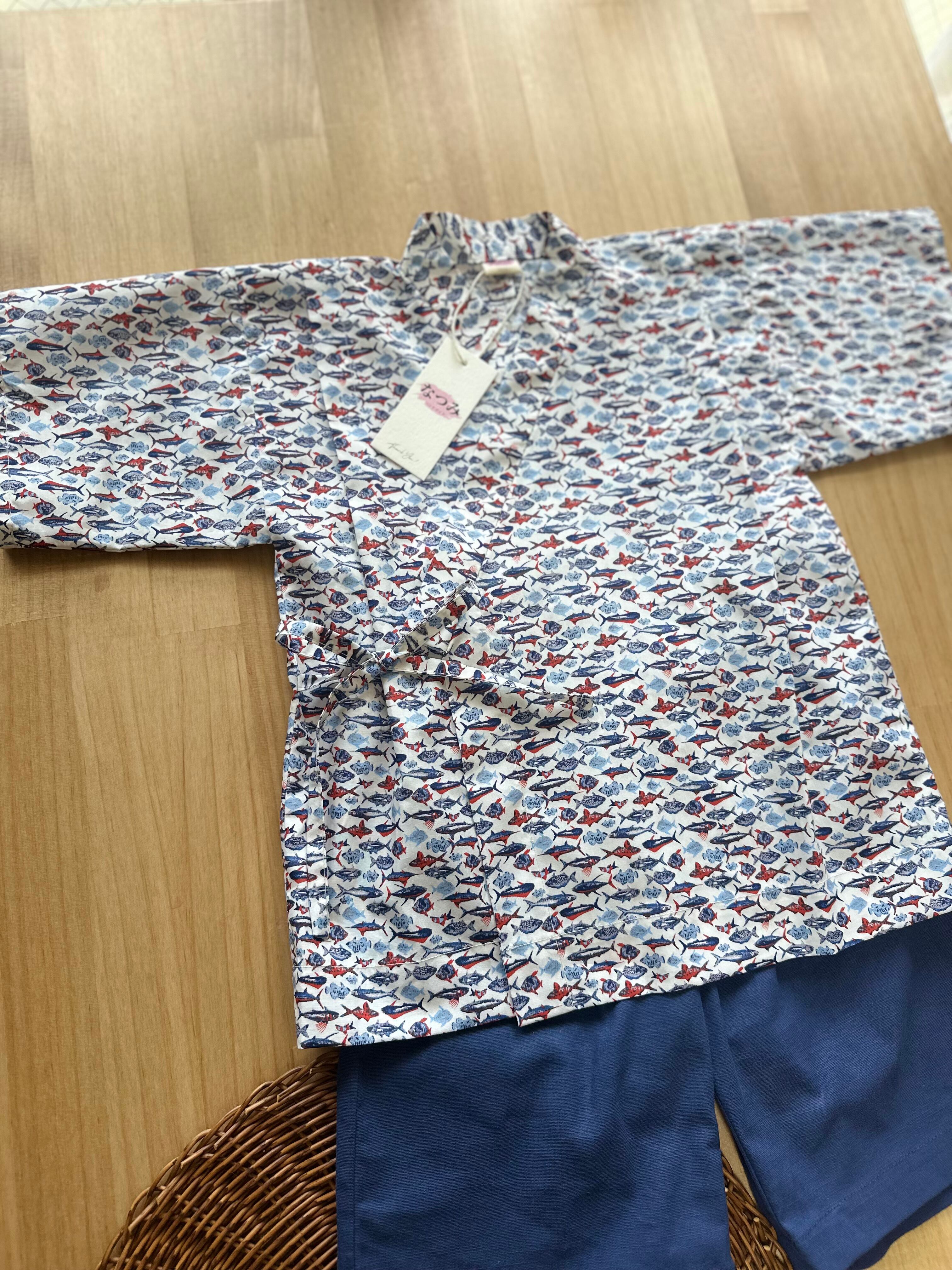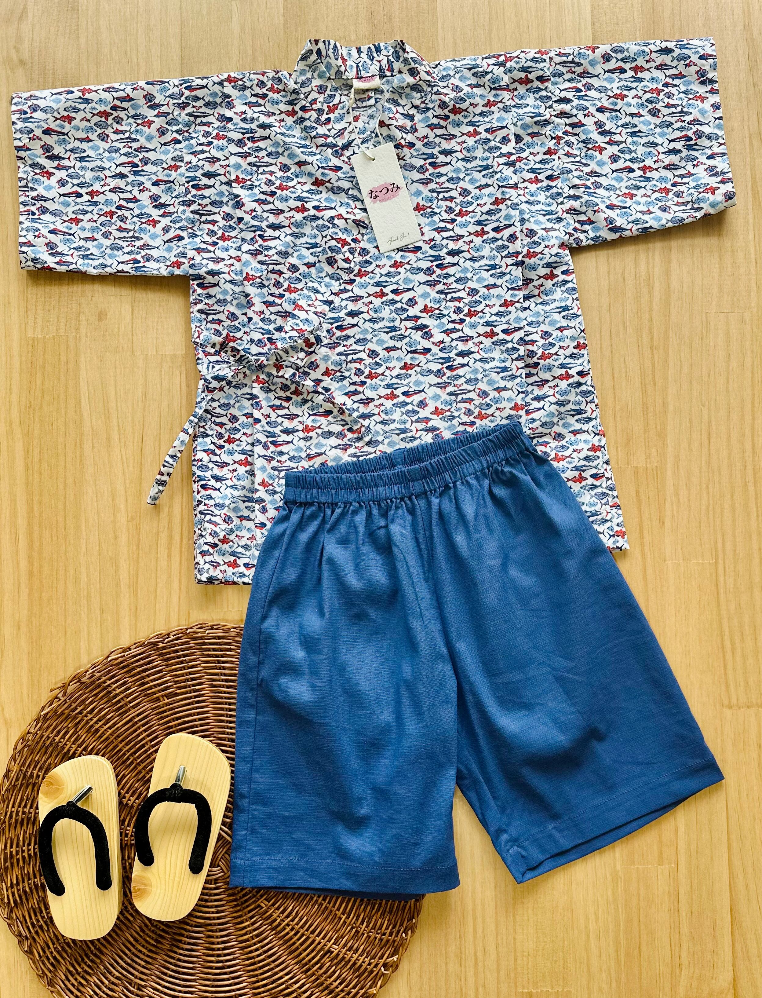 No.JB2501 ハンドメイド男の子魚柄甚平 上下セット