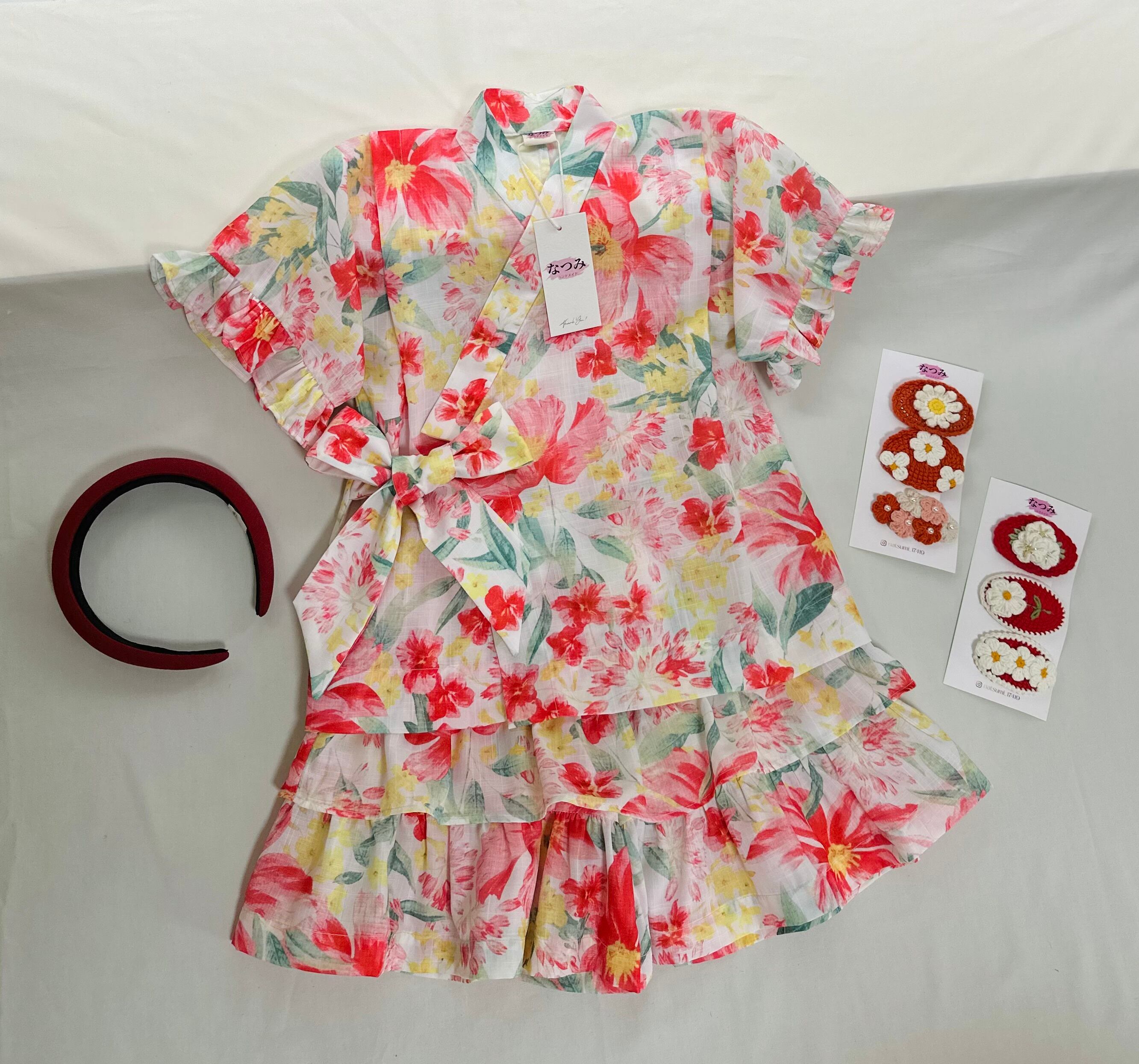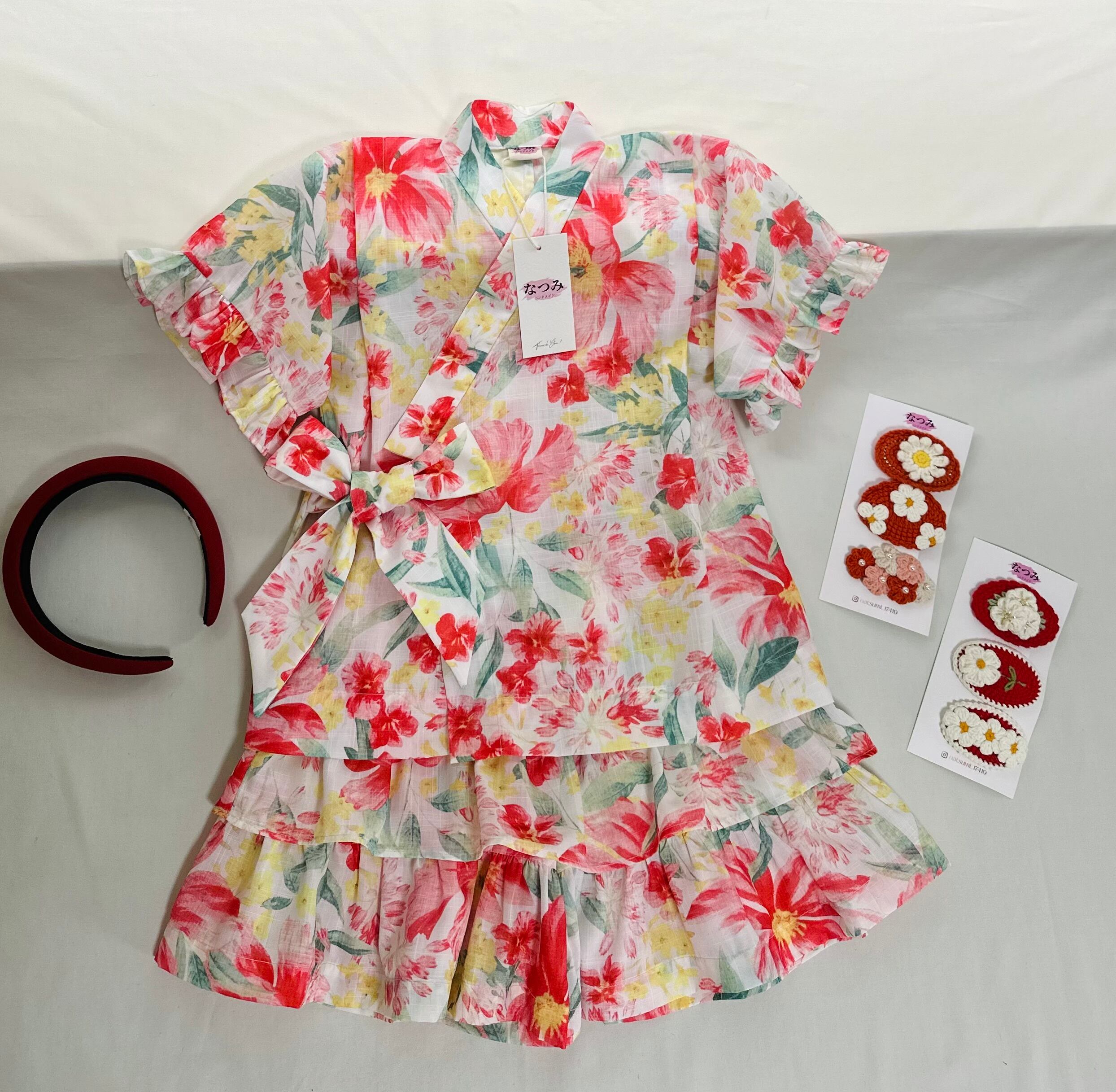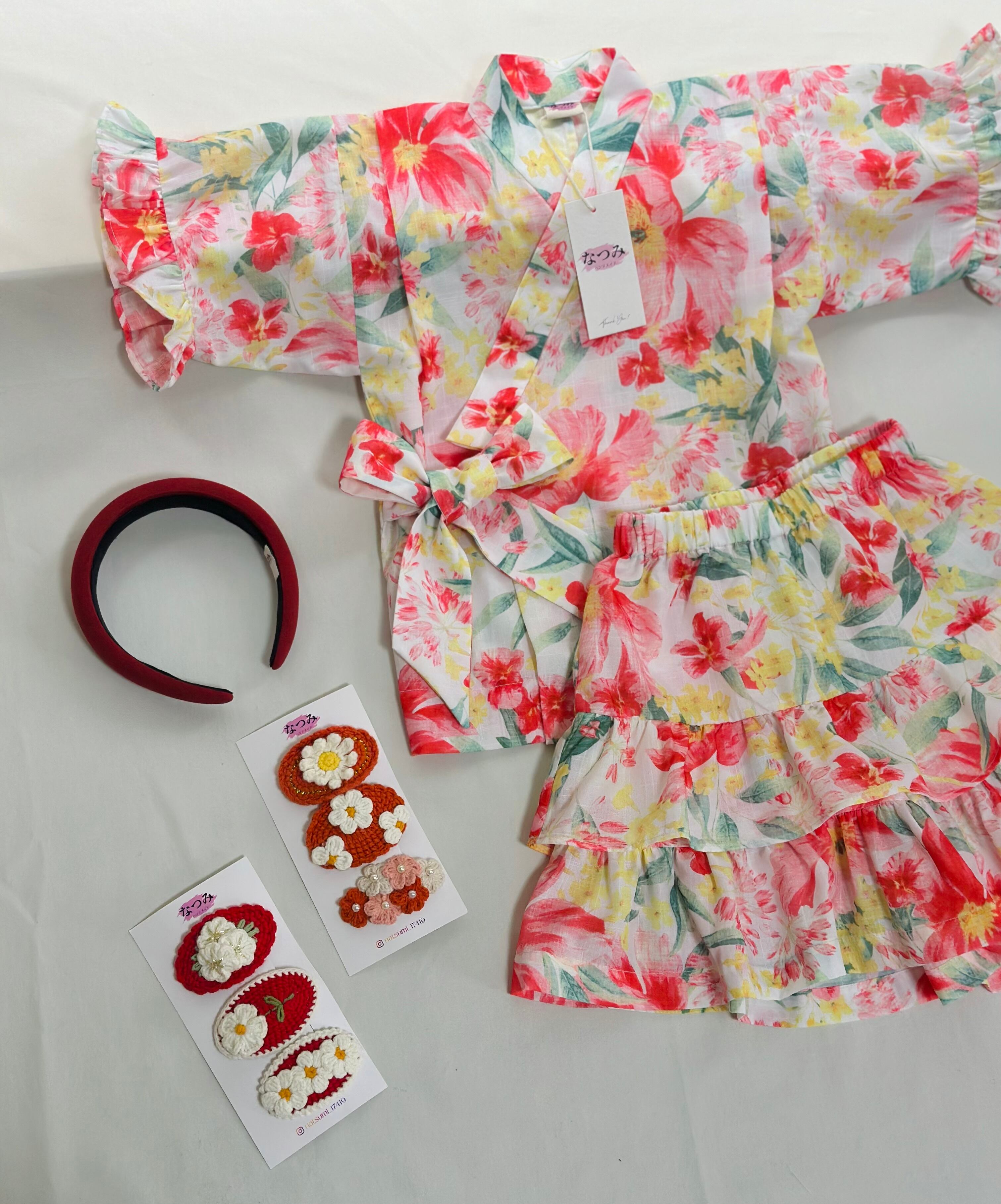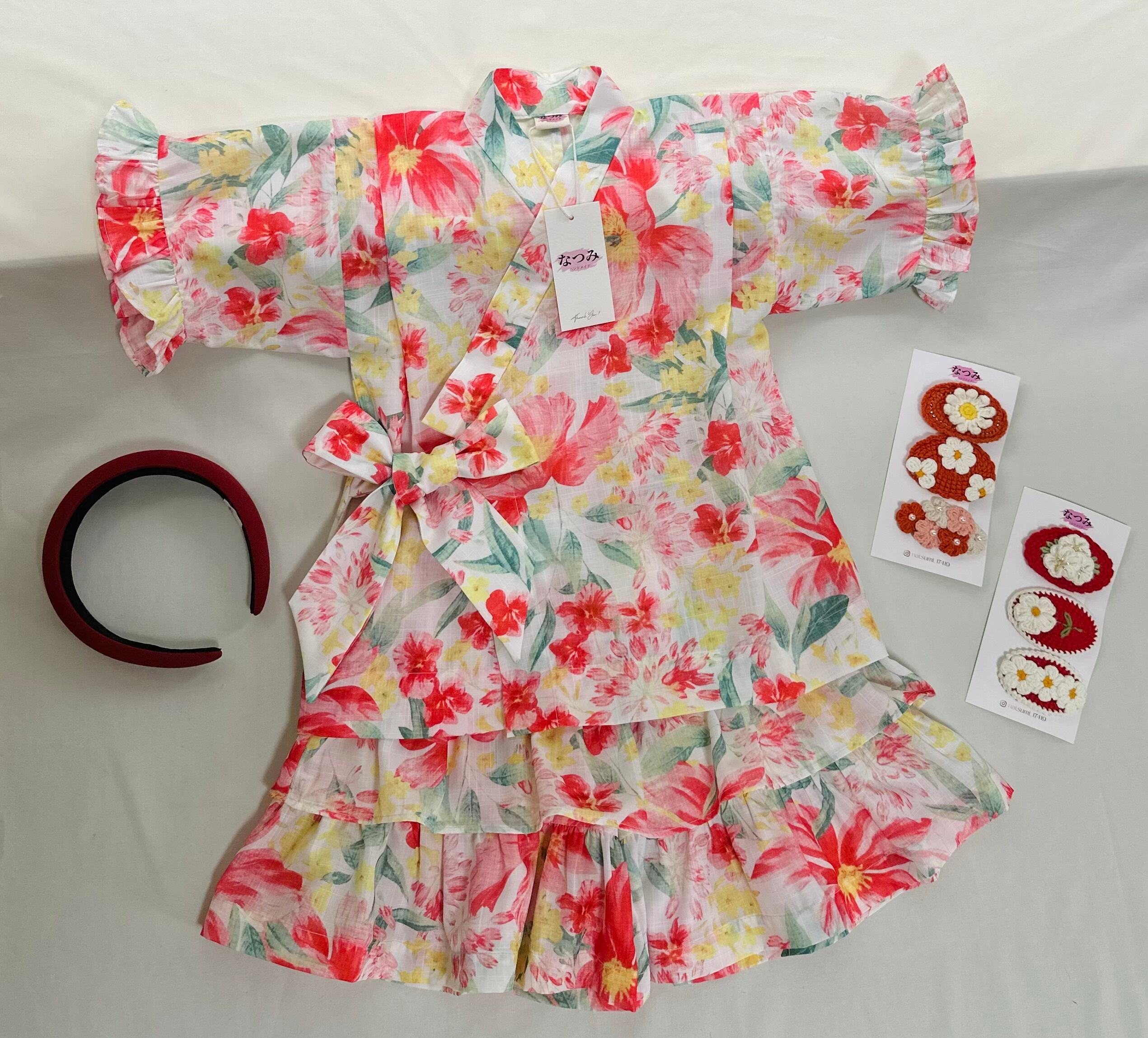 No.JB2502女の子じんべいセットフリルが可愛いヘヤバンド付き