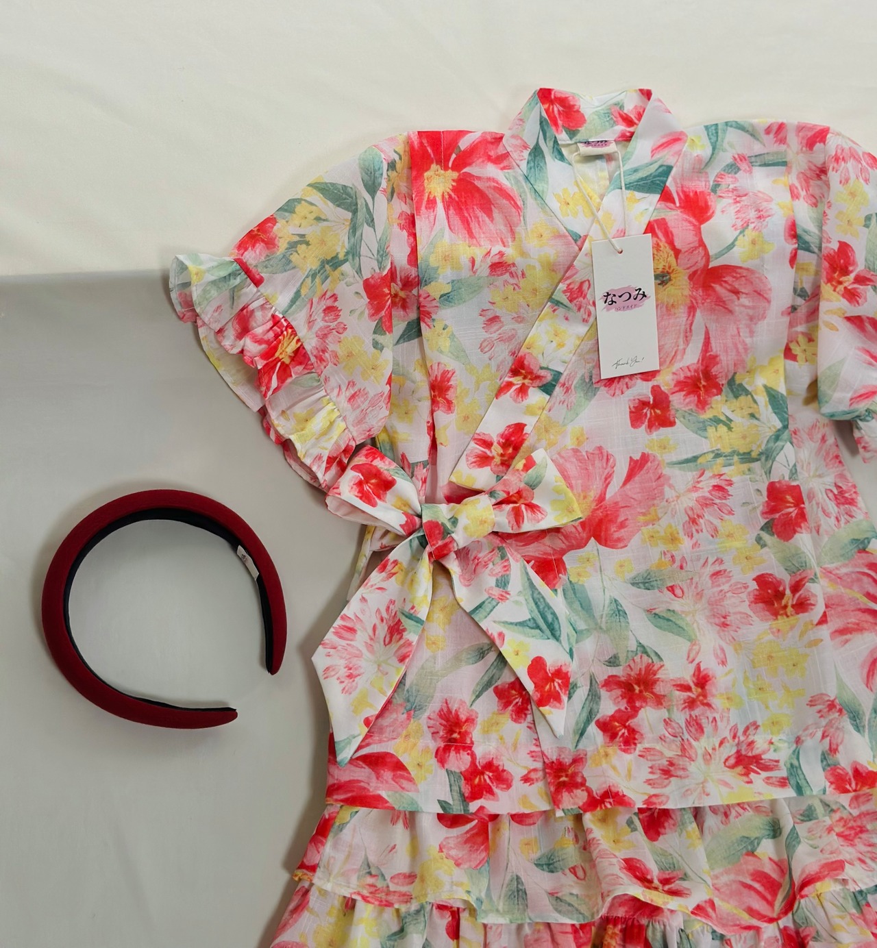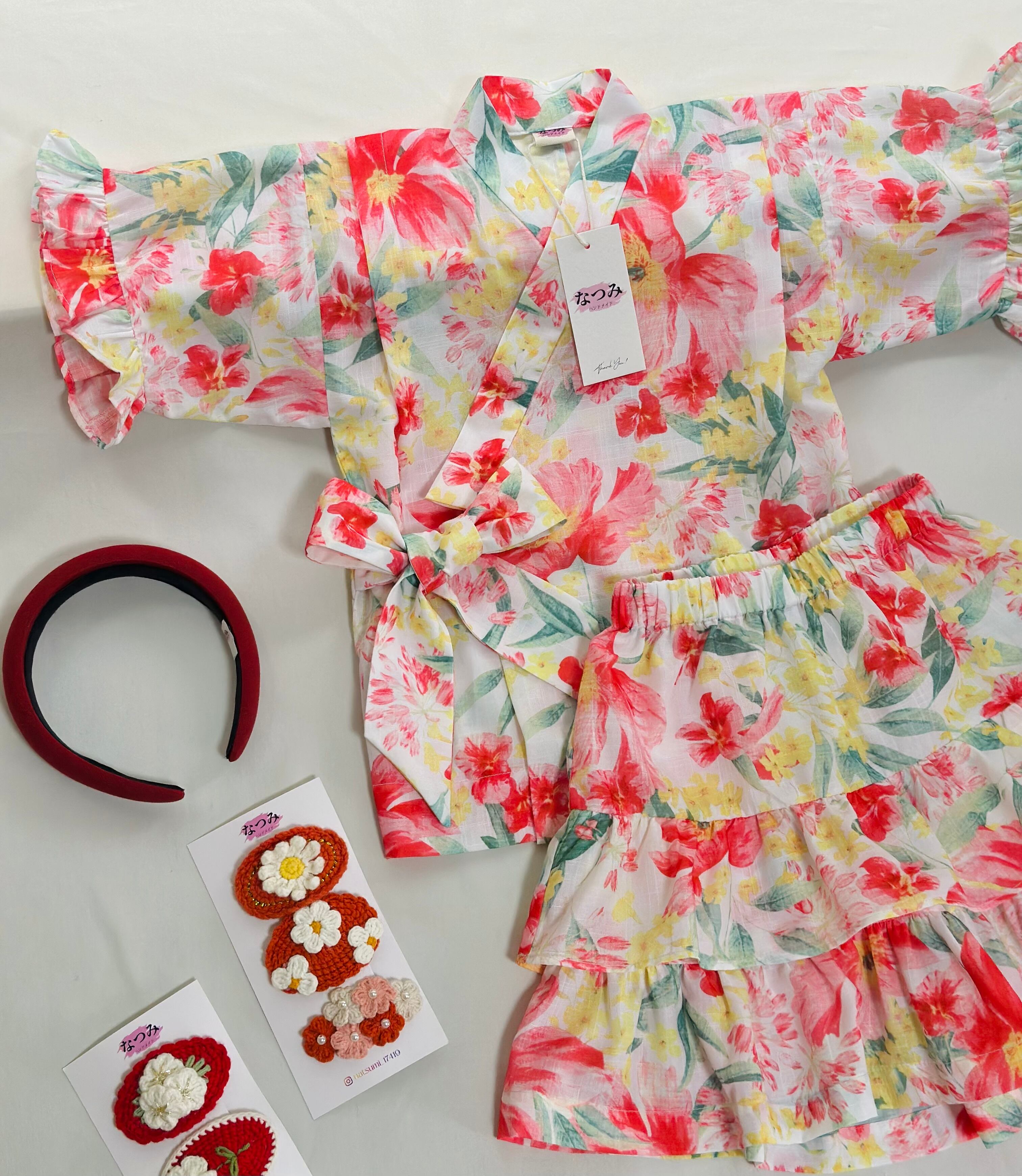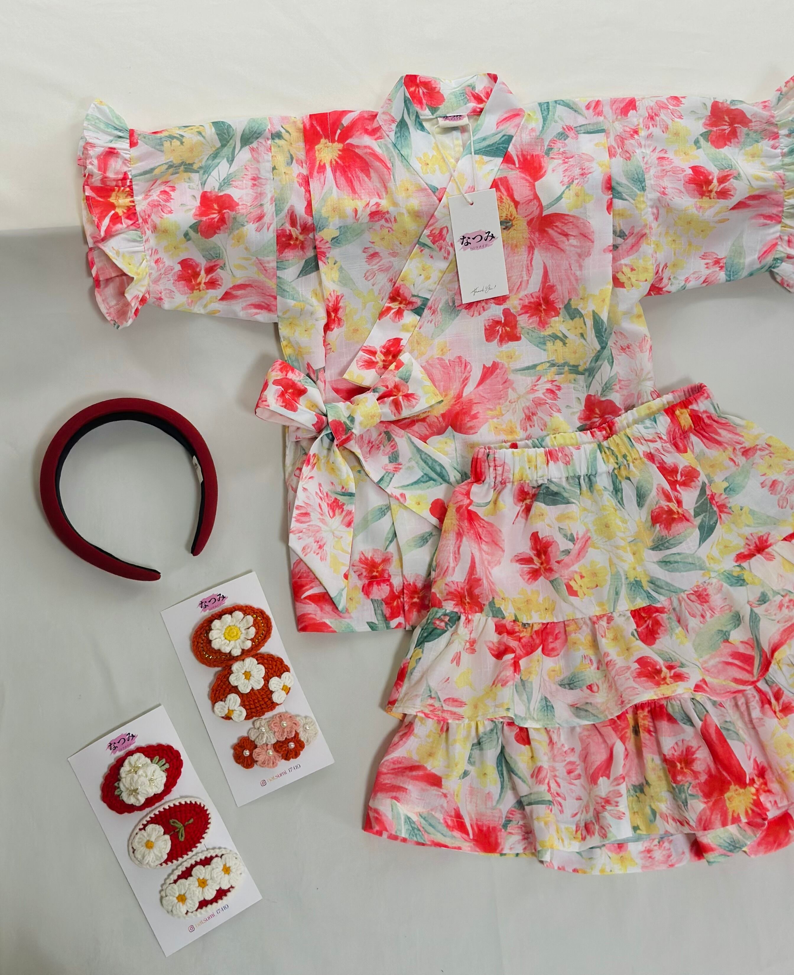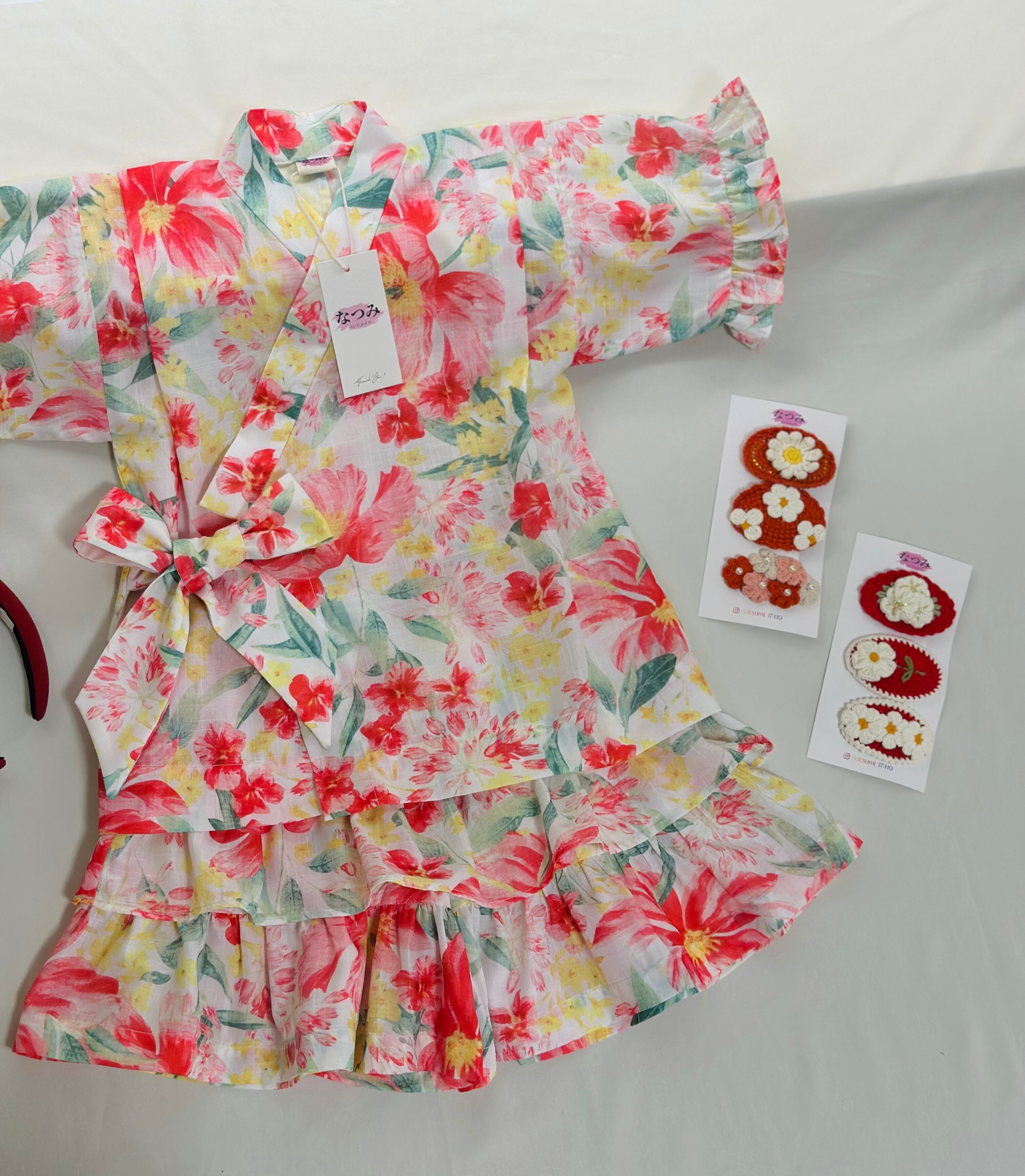 No.JB2502女の子じんべいセットフリルが可愛いヘヤバンド付き