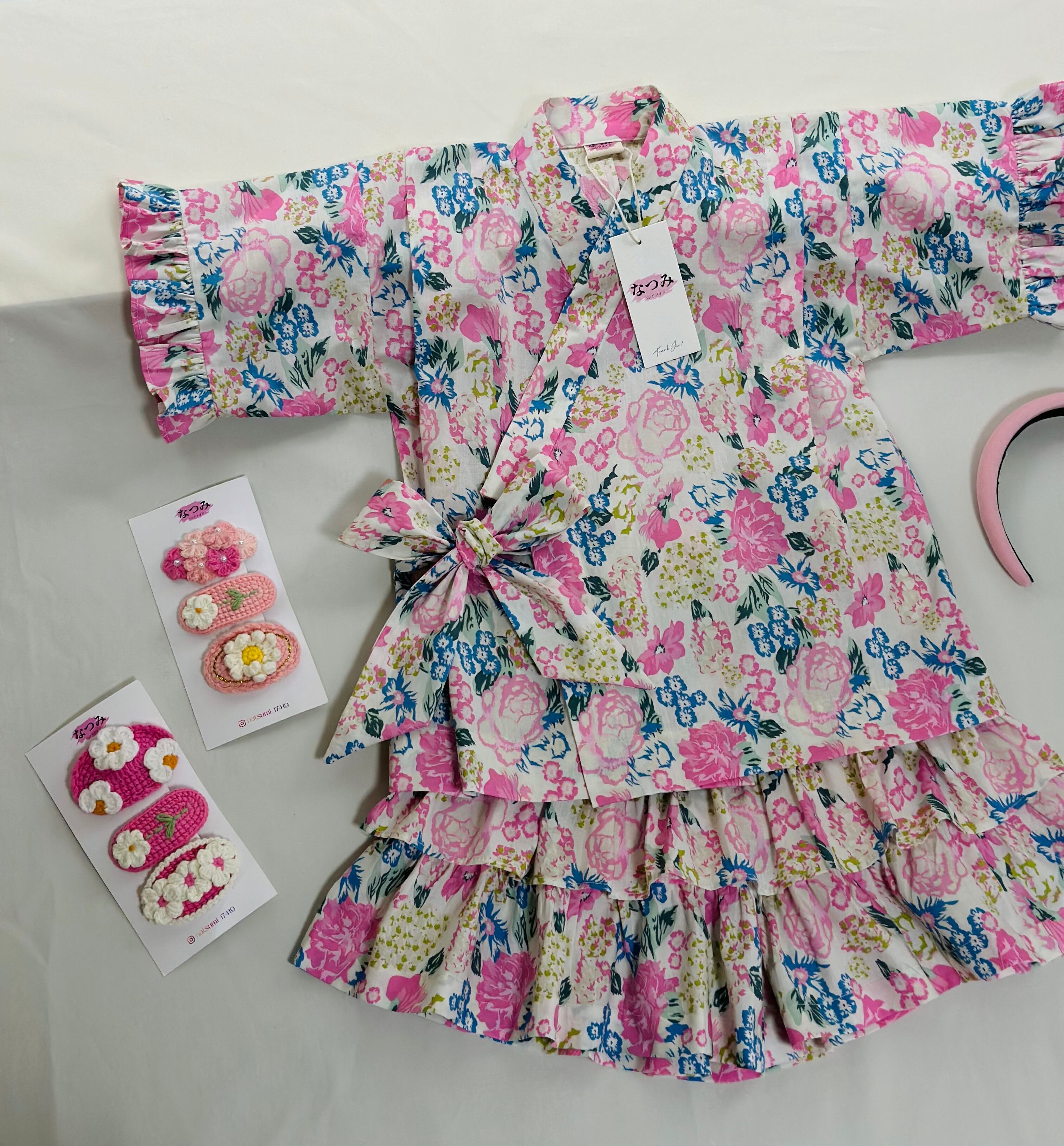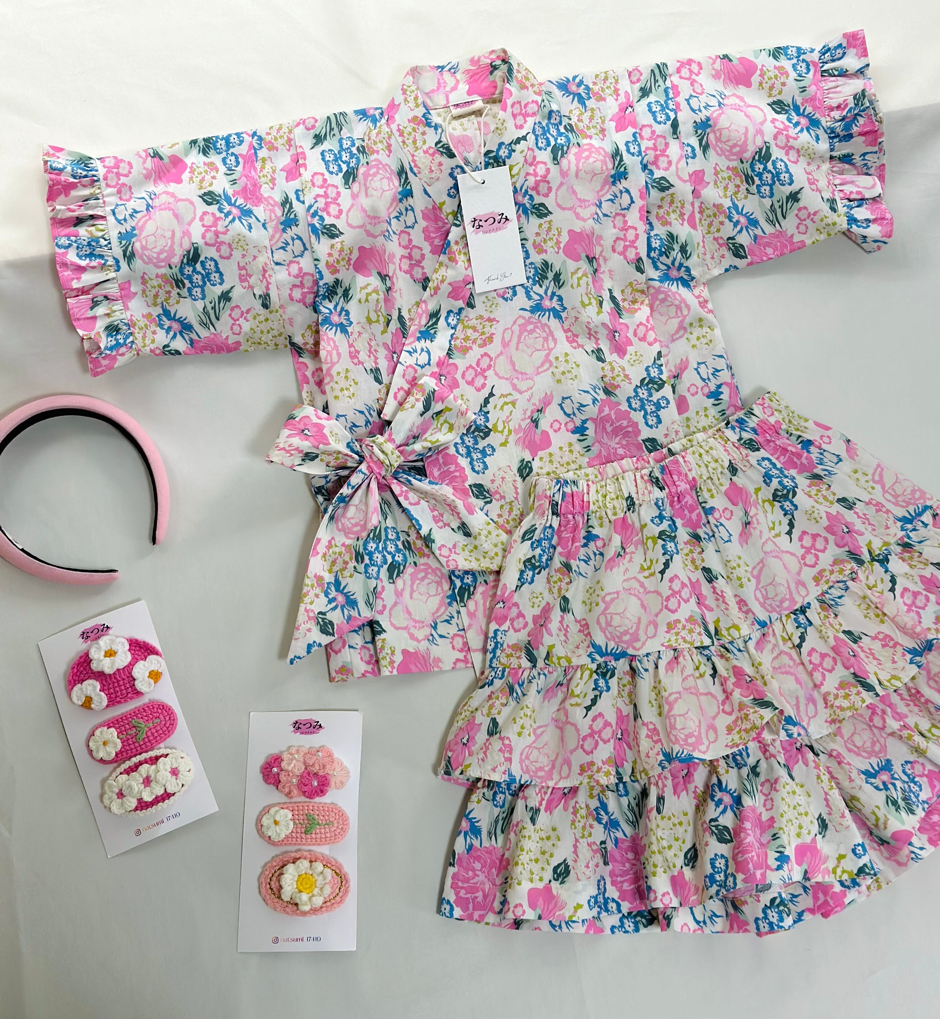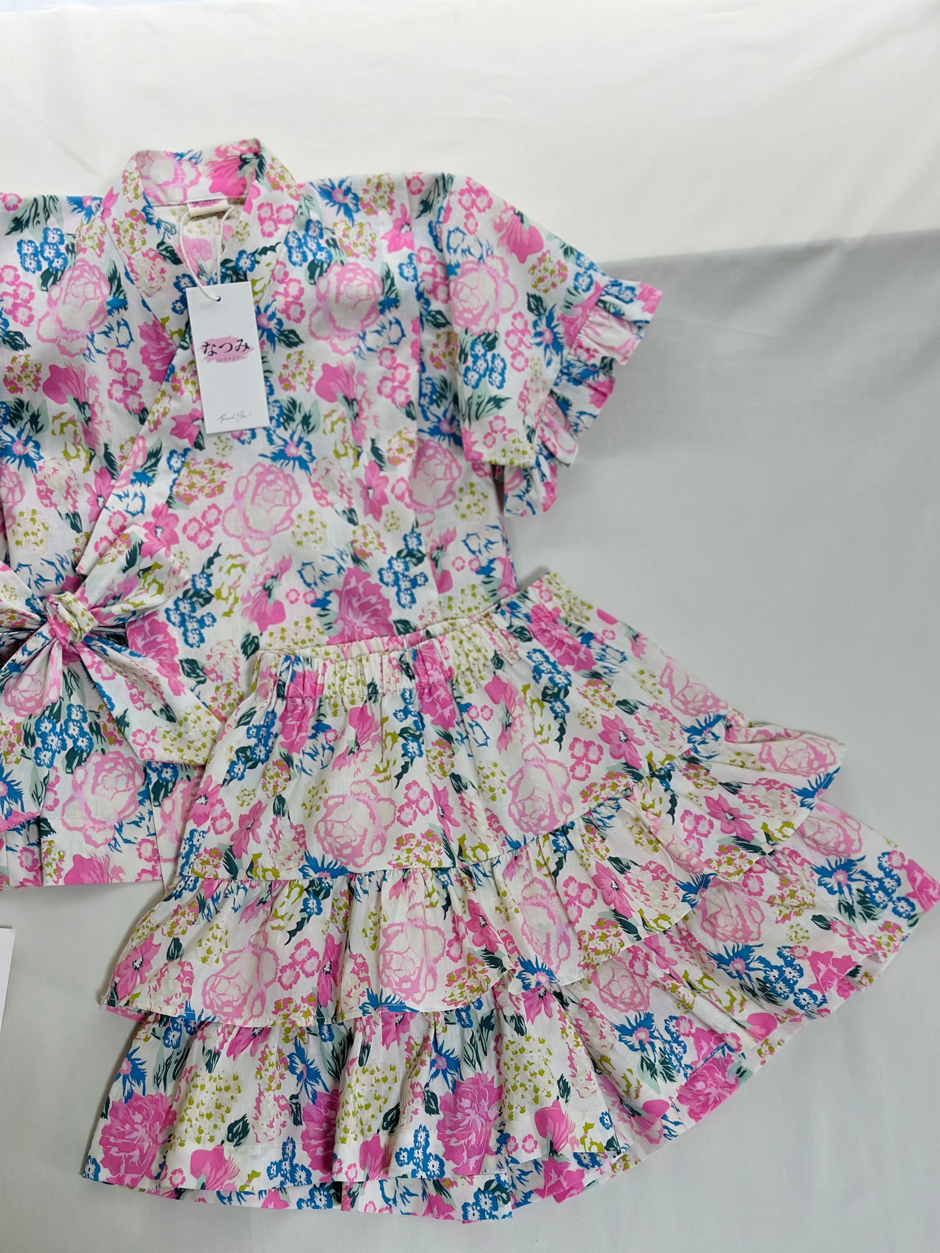 伝統的なじんべいにフリル&スカート風のアレンジを加えた、女の子専用のオシャレな一着。