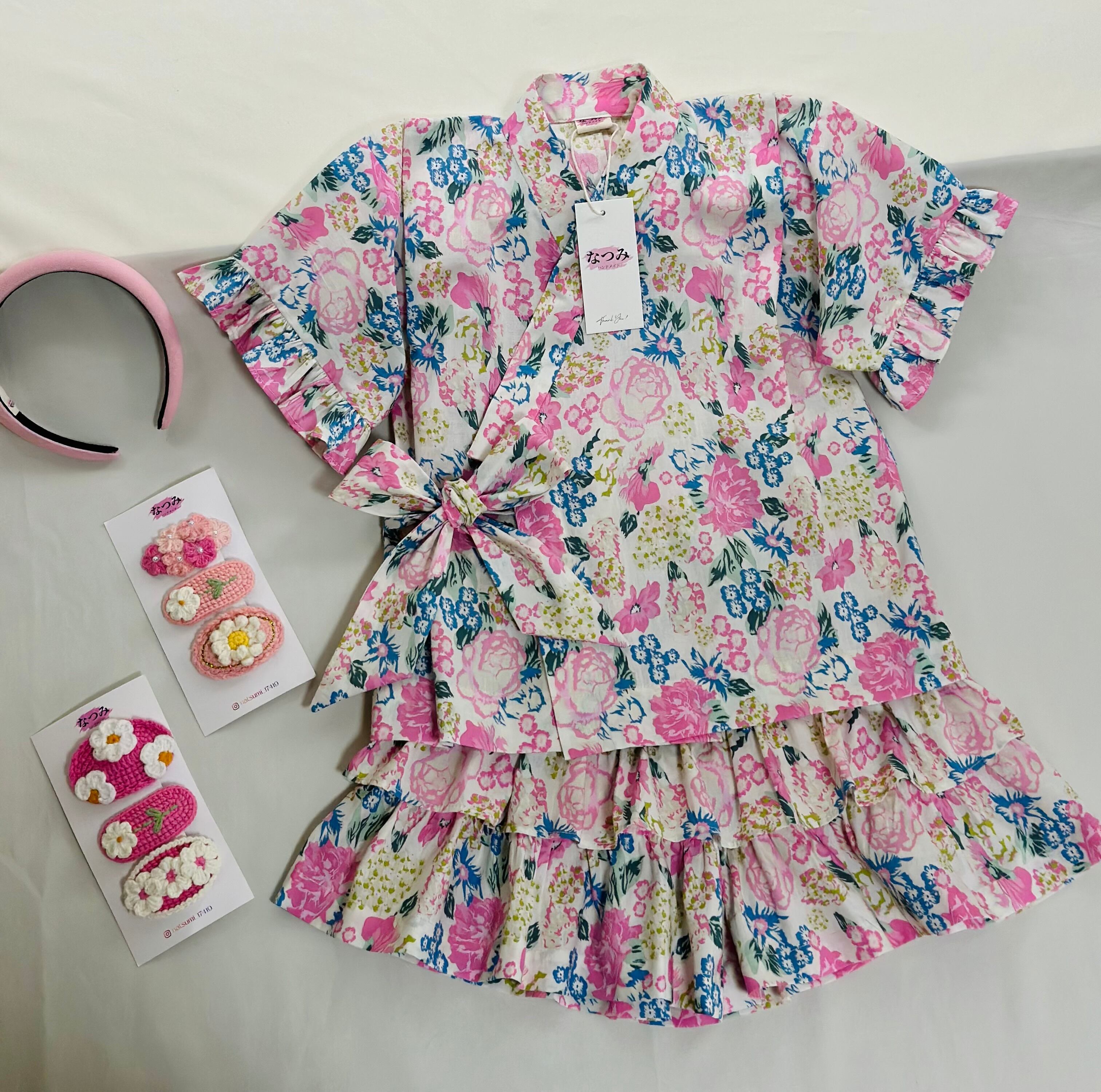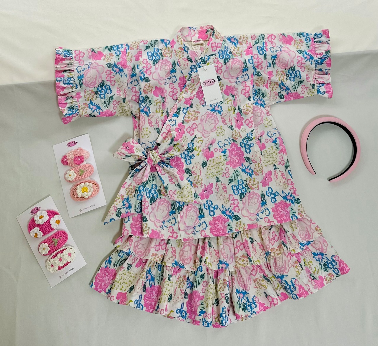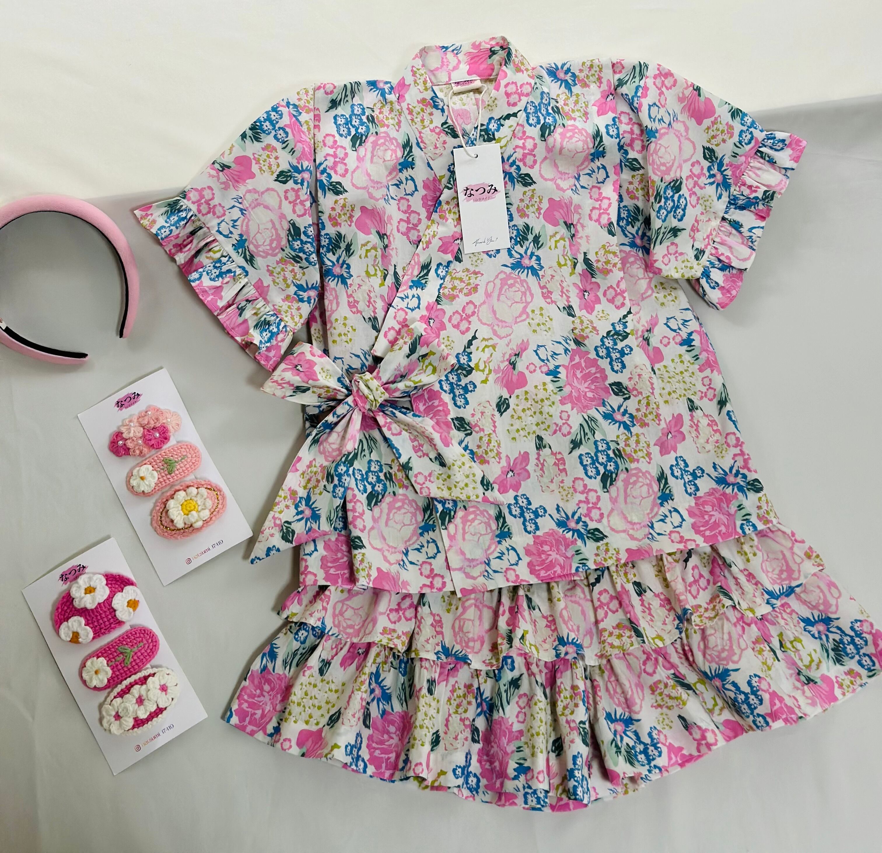 No.JB2505女の子じんべいセットフリルが可愛い夏の定番ヘヤバンド付き