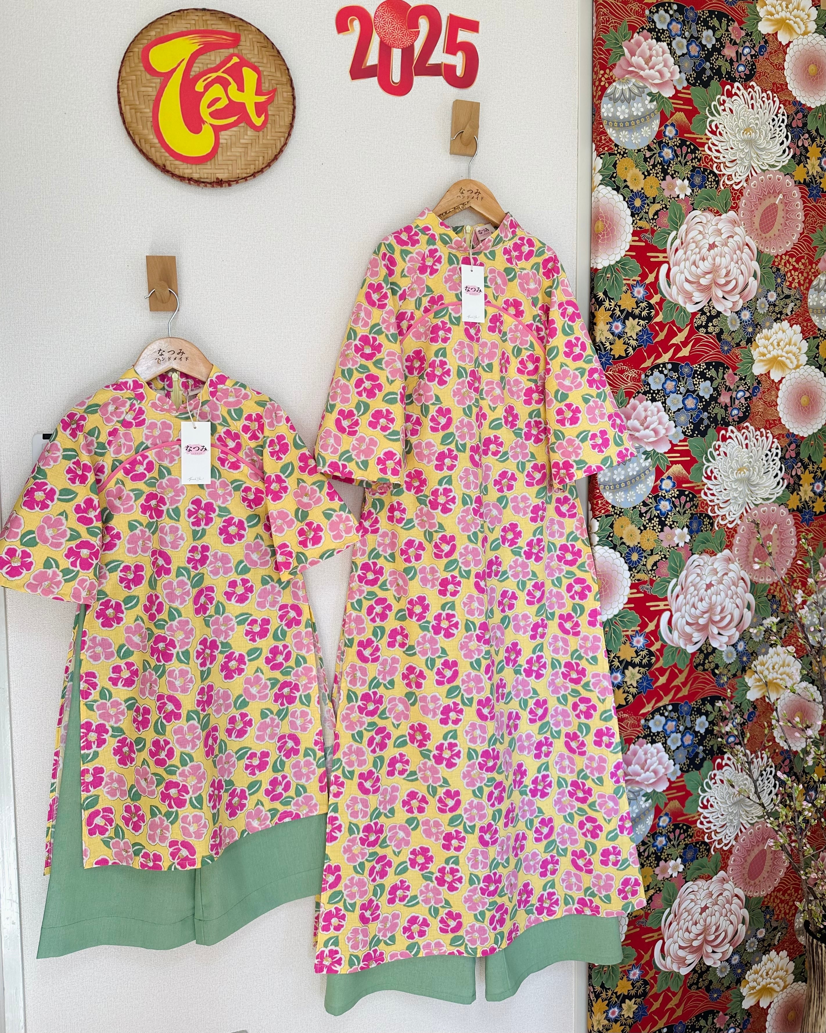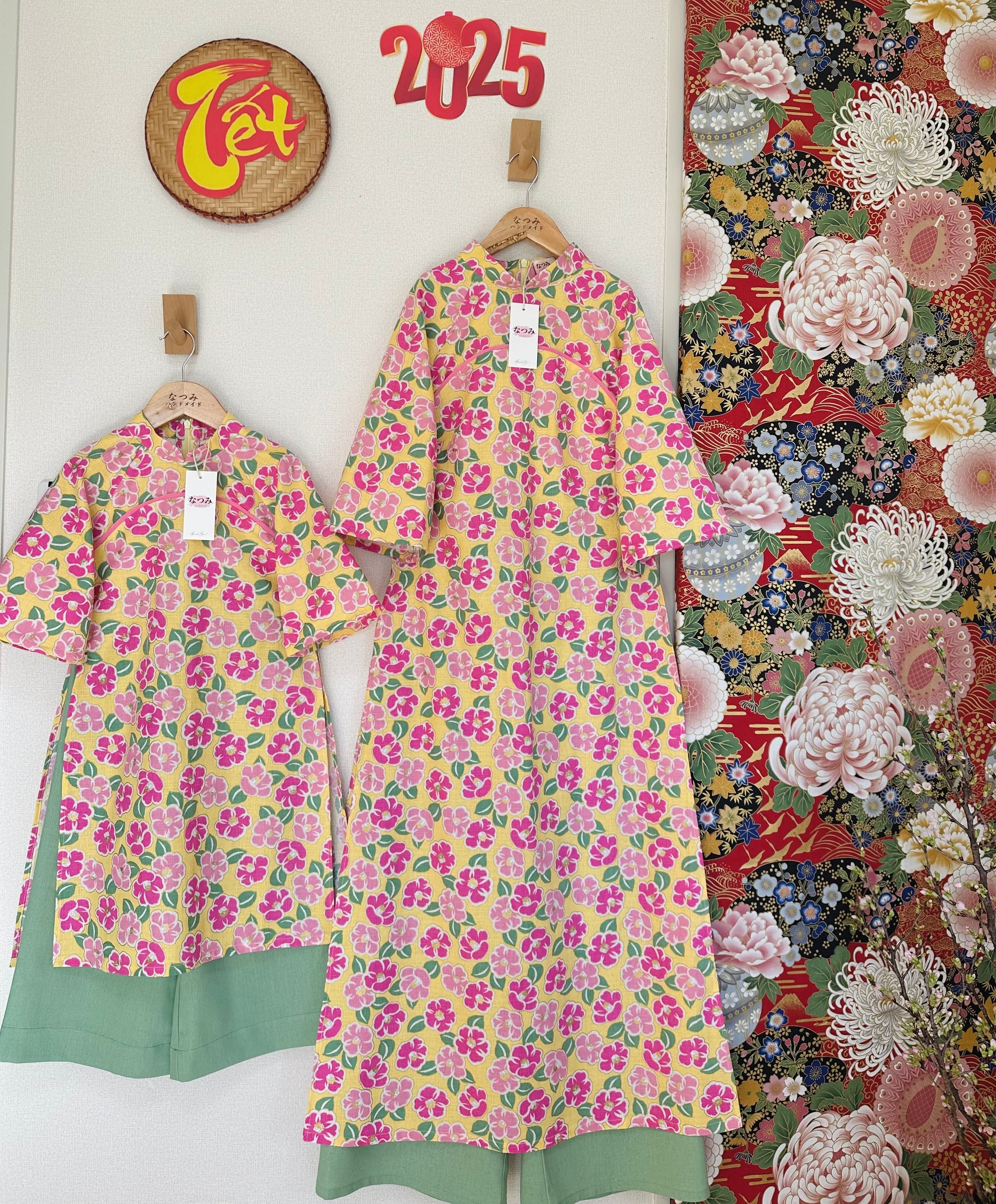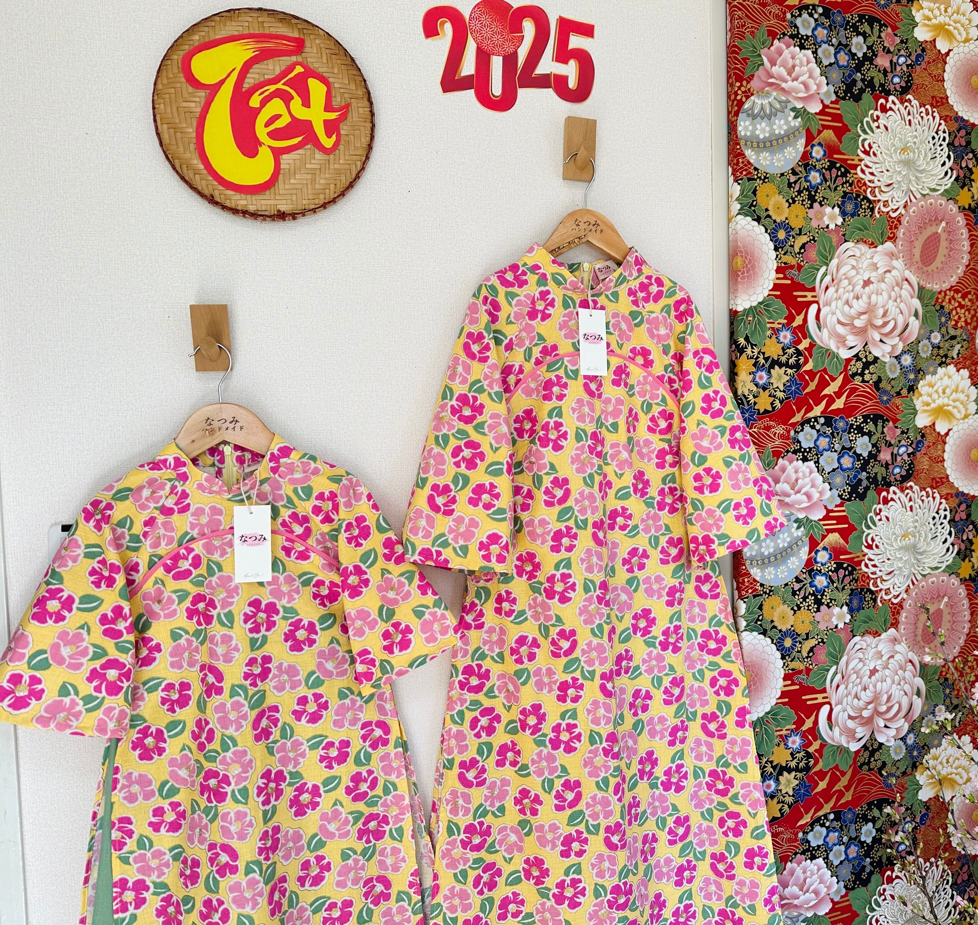 #ナツミハンドメイド #アオザイ #ハンドメイド子供服 #椿柄 #日本生地 #ベトナム衣装