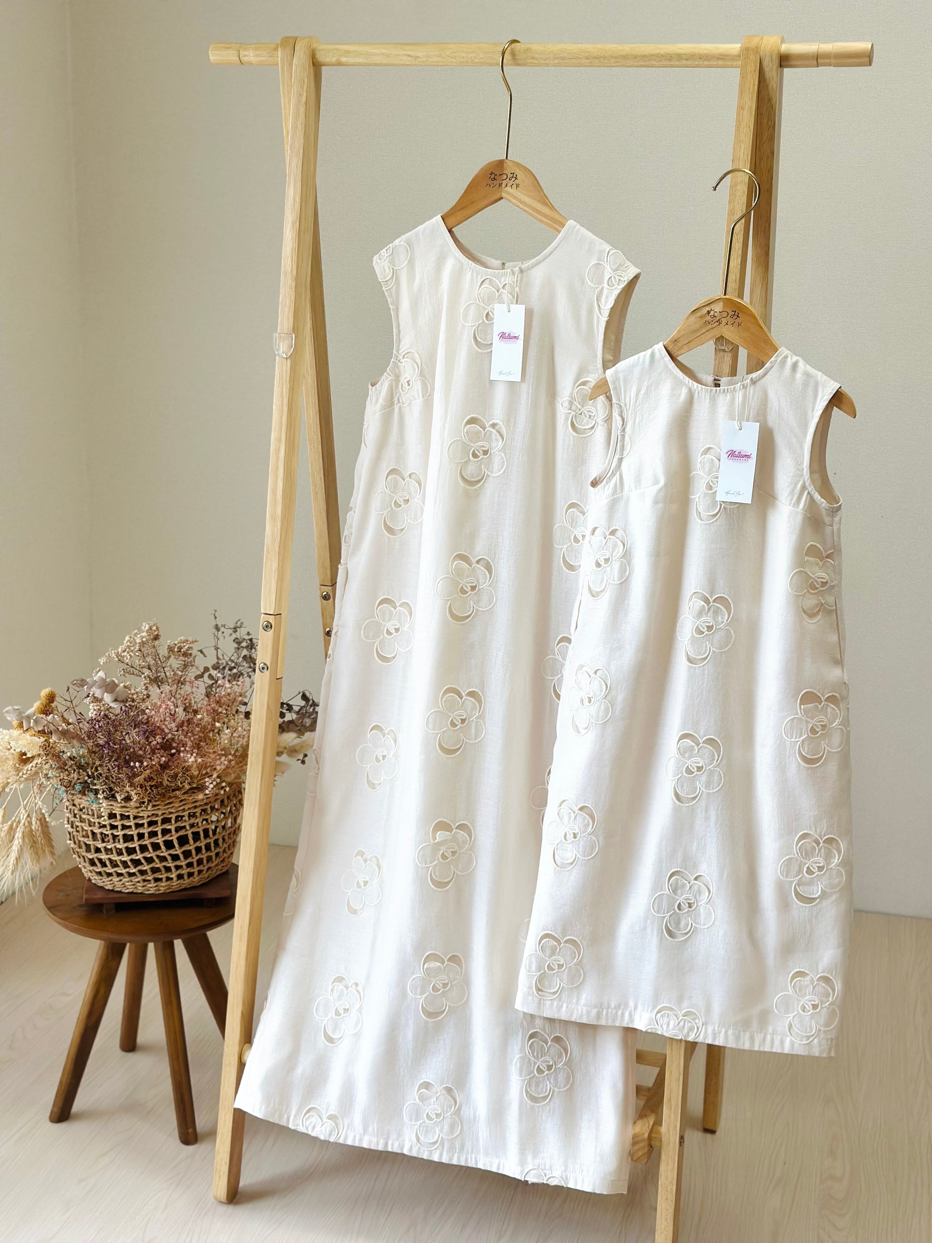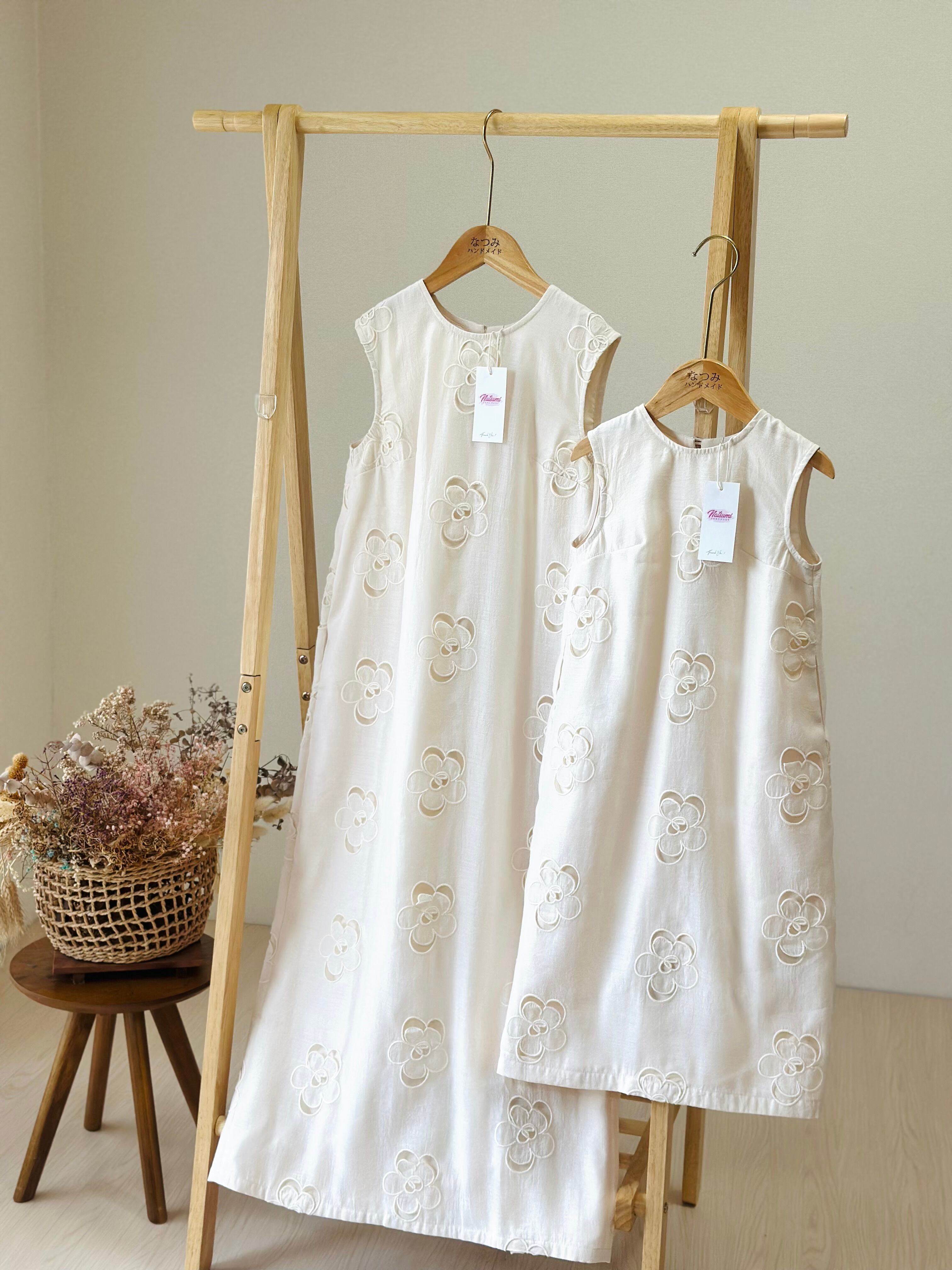 ◎デザイン: ストンとしたシルエットのノースリーブワンピース。お揃いで楽しめます。