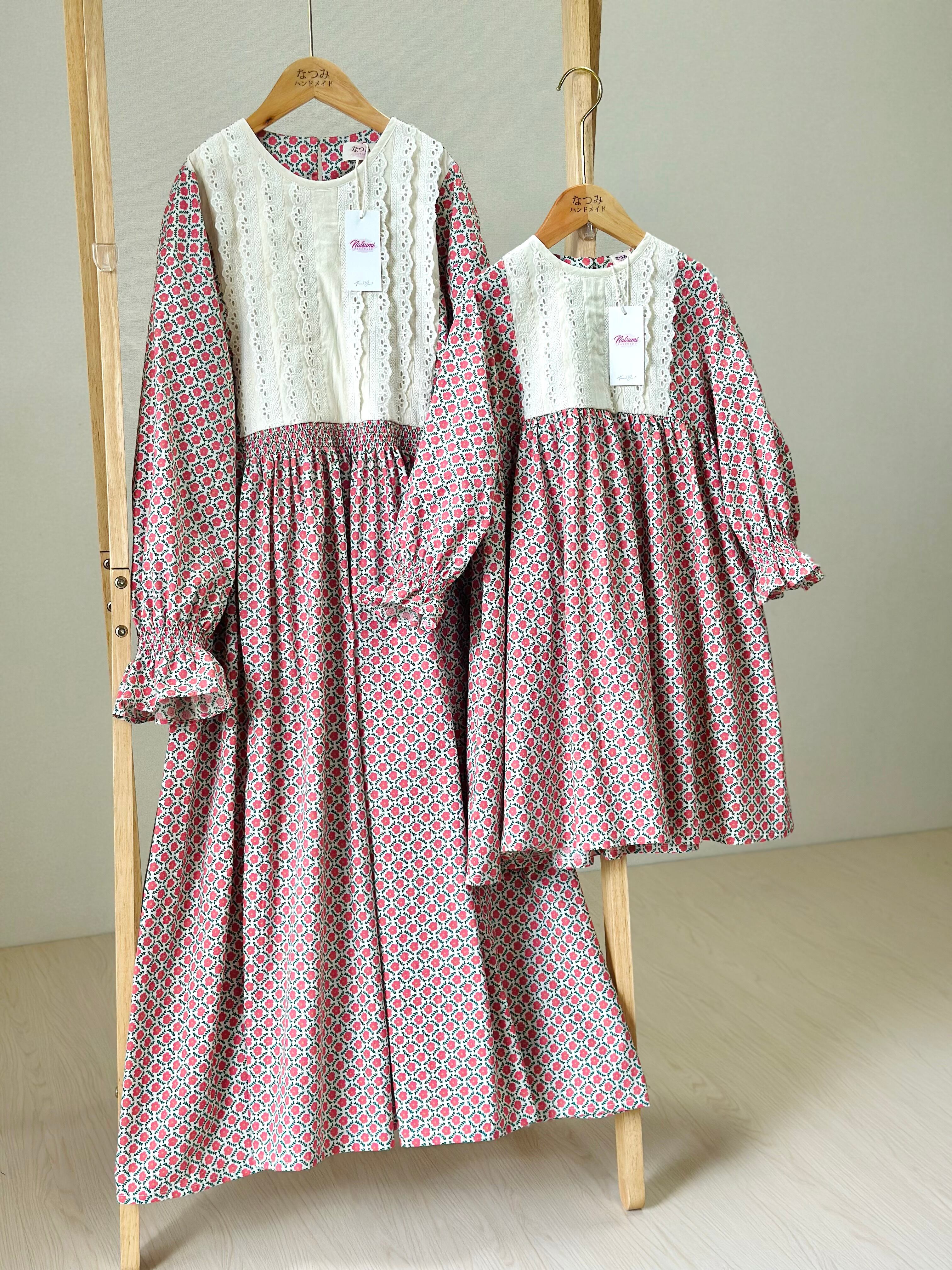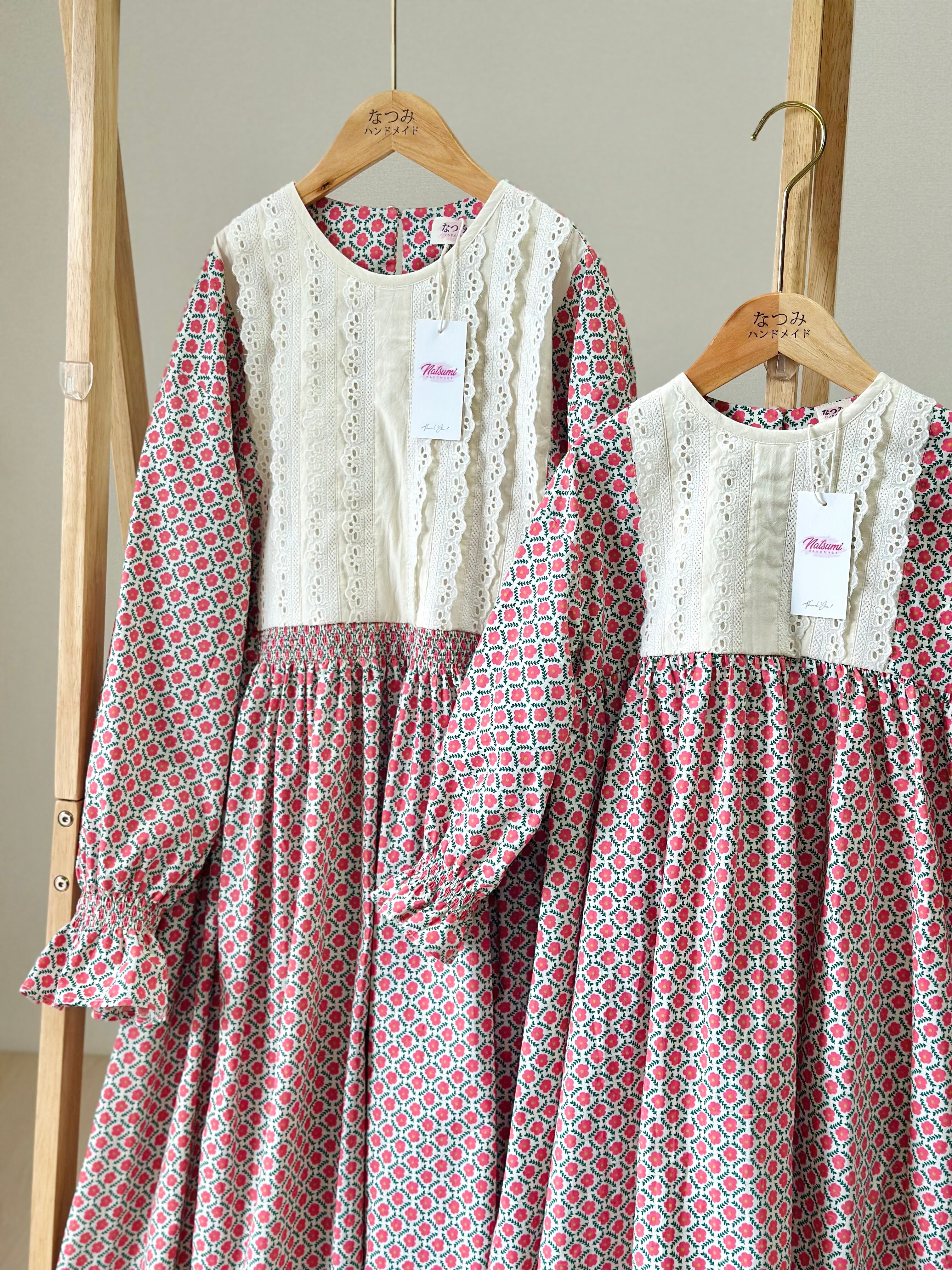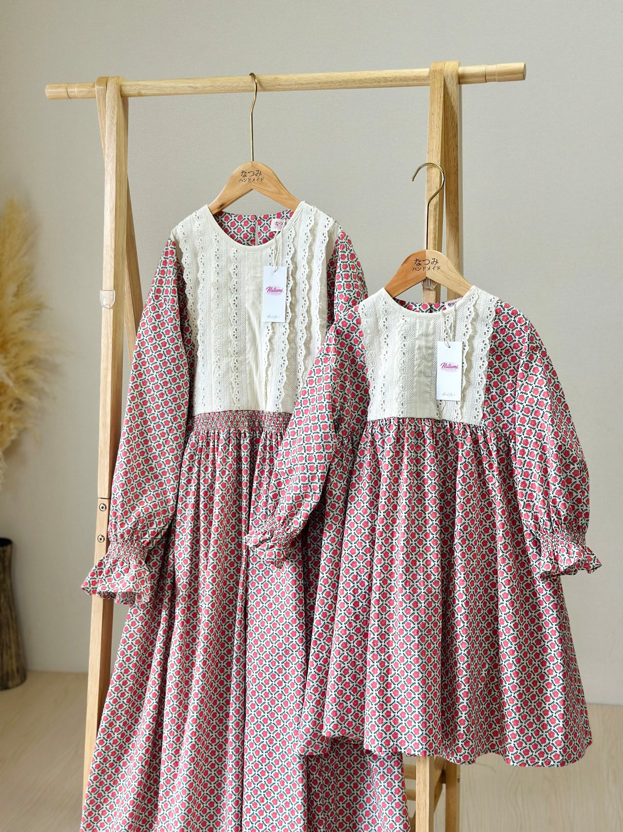 (レディース)No.T2512ハンドメイド可愛いレース付きお揃いワンピース