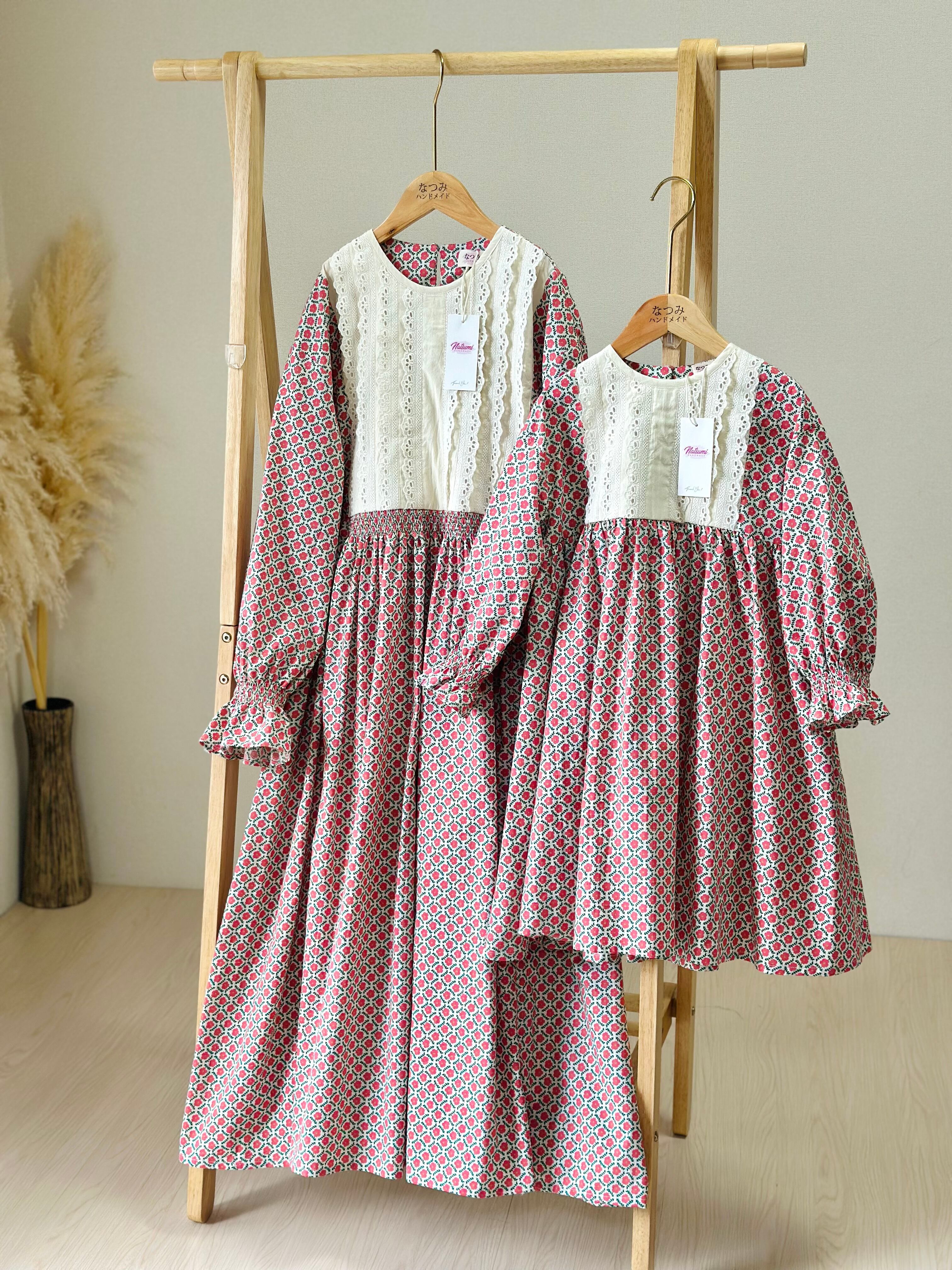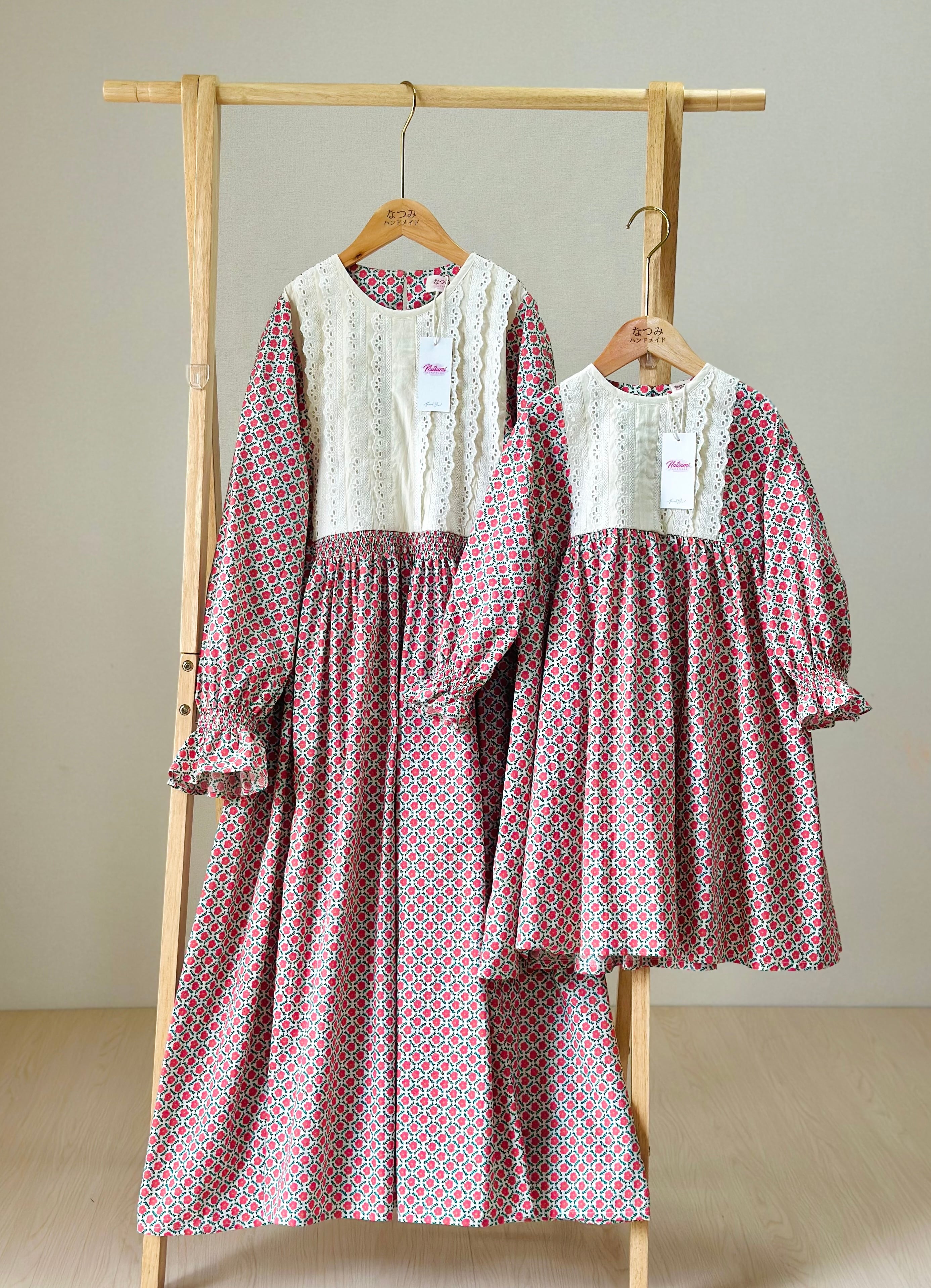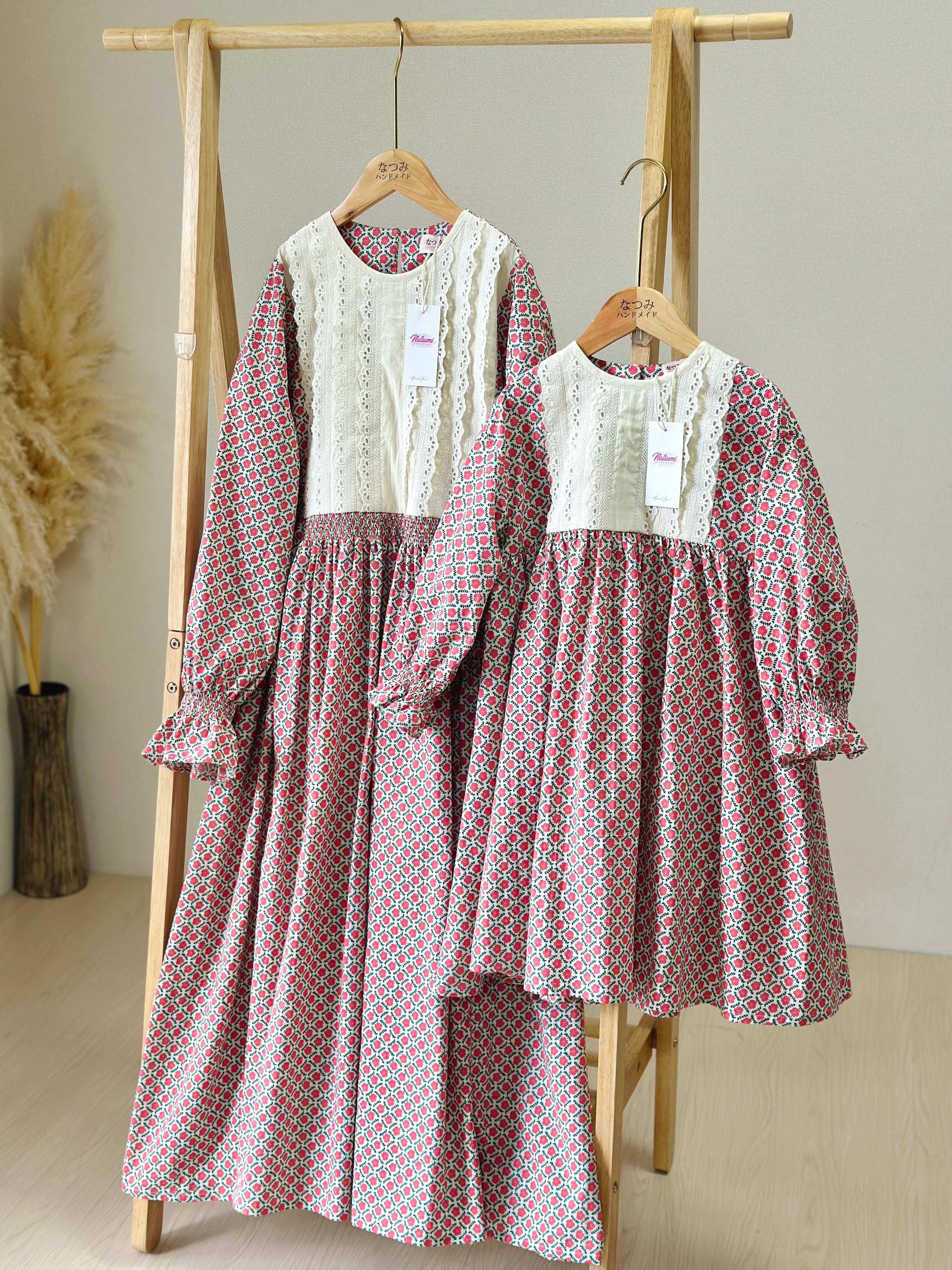 (レディース)No.T2512ハンドメイド可愛いレース付きお揃いワンピース
