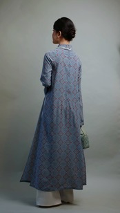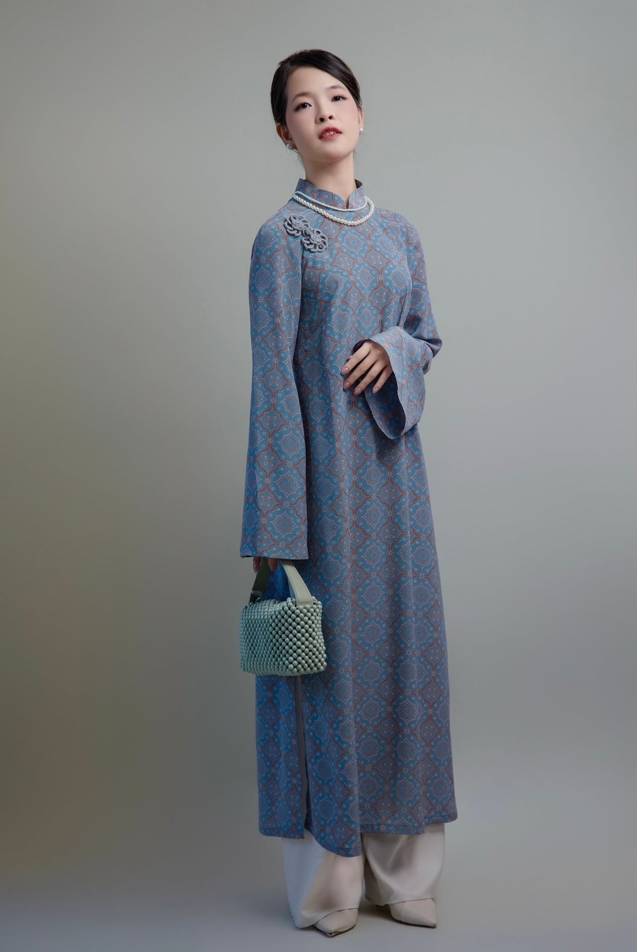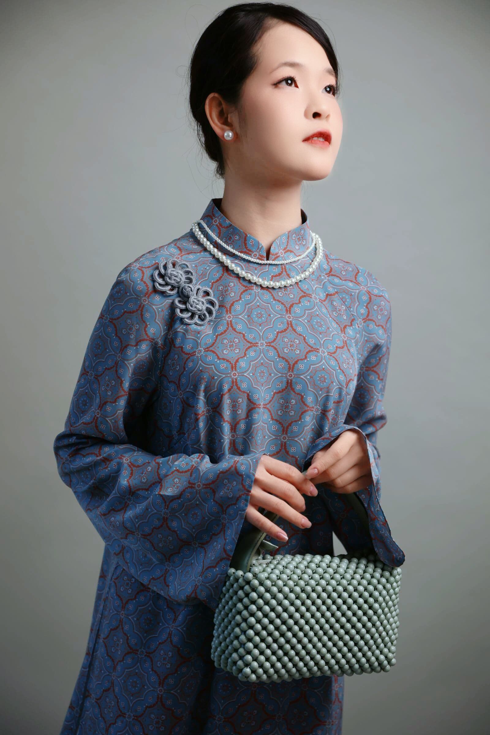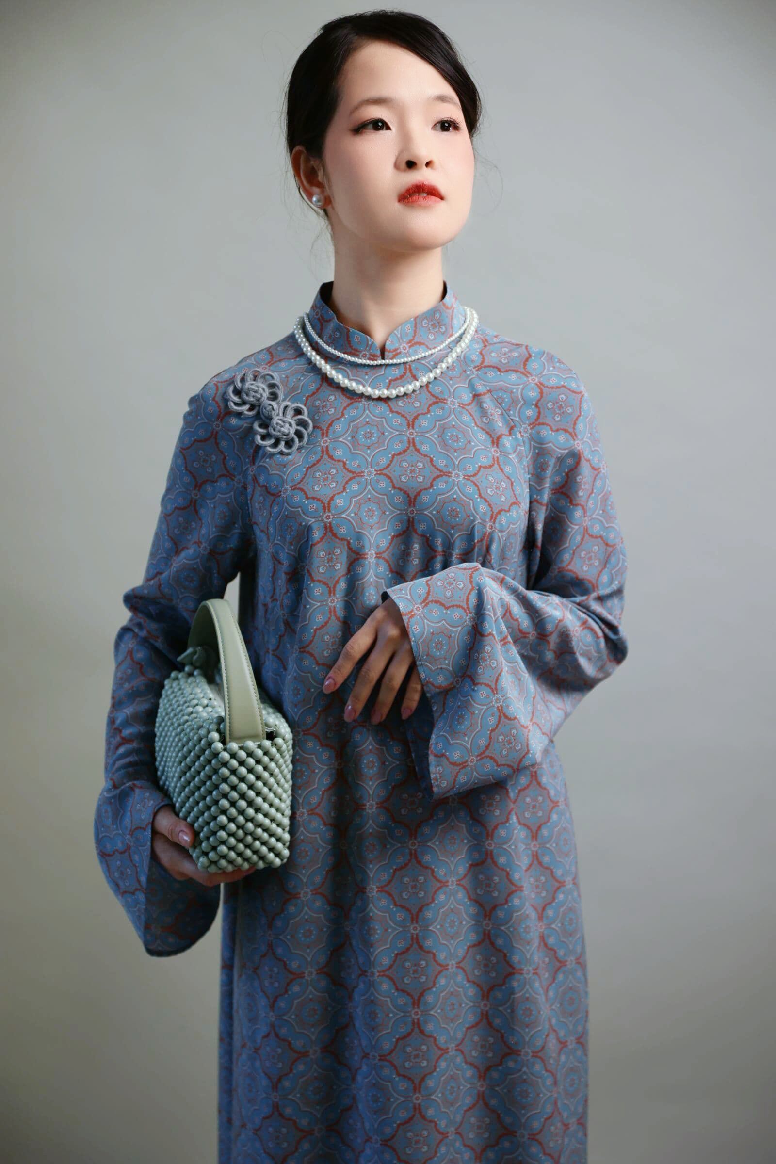 伝統的なスタンドカラーとワイドスリーブが女性らしく、動くたびに美しいラインを描きます。