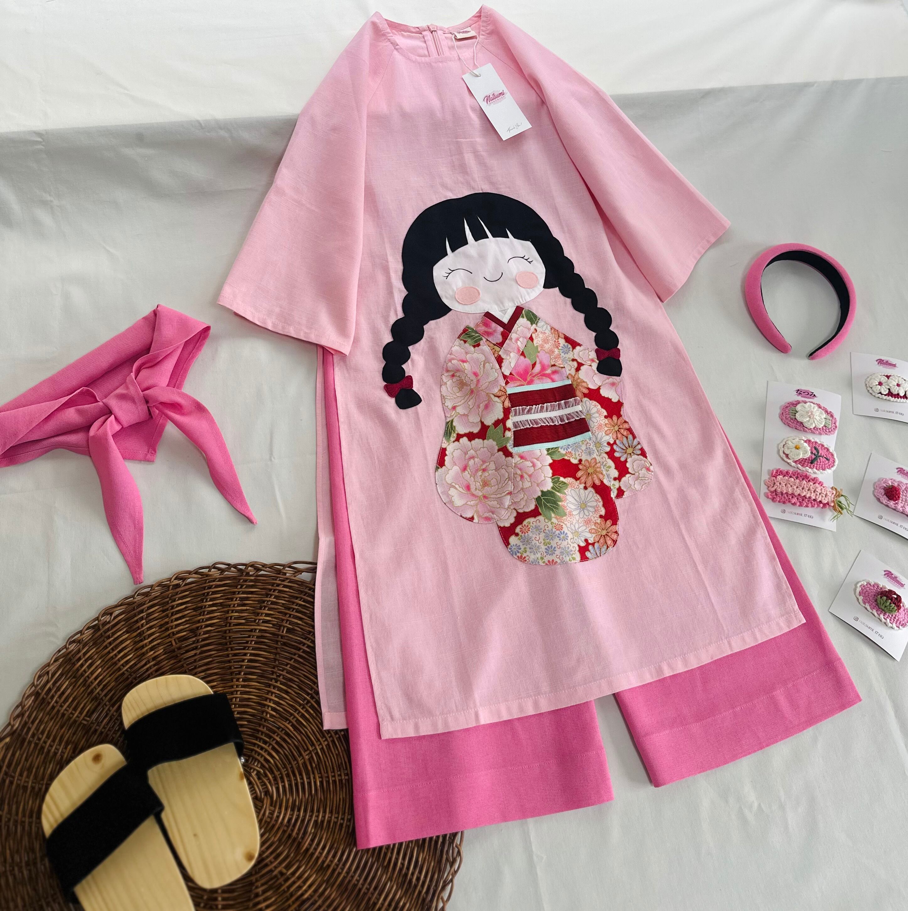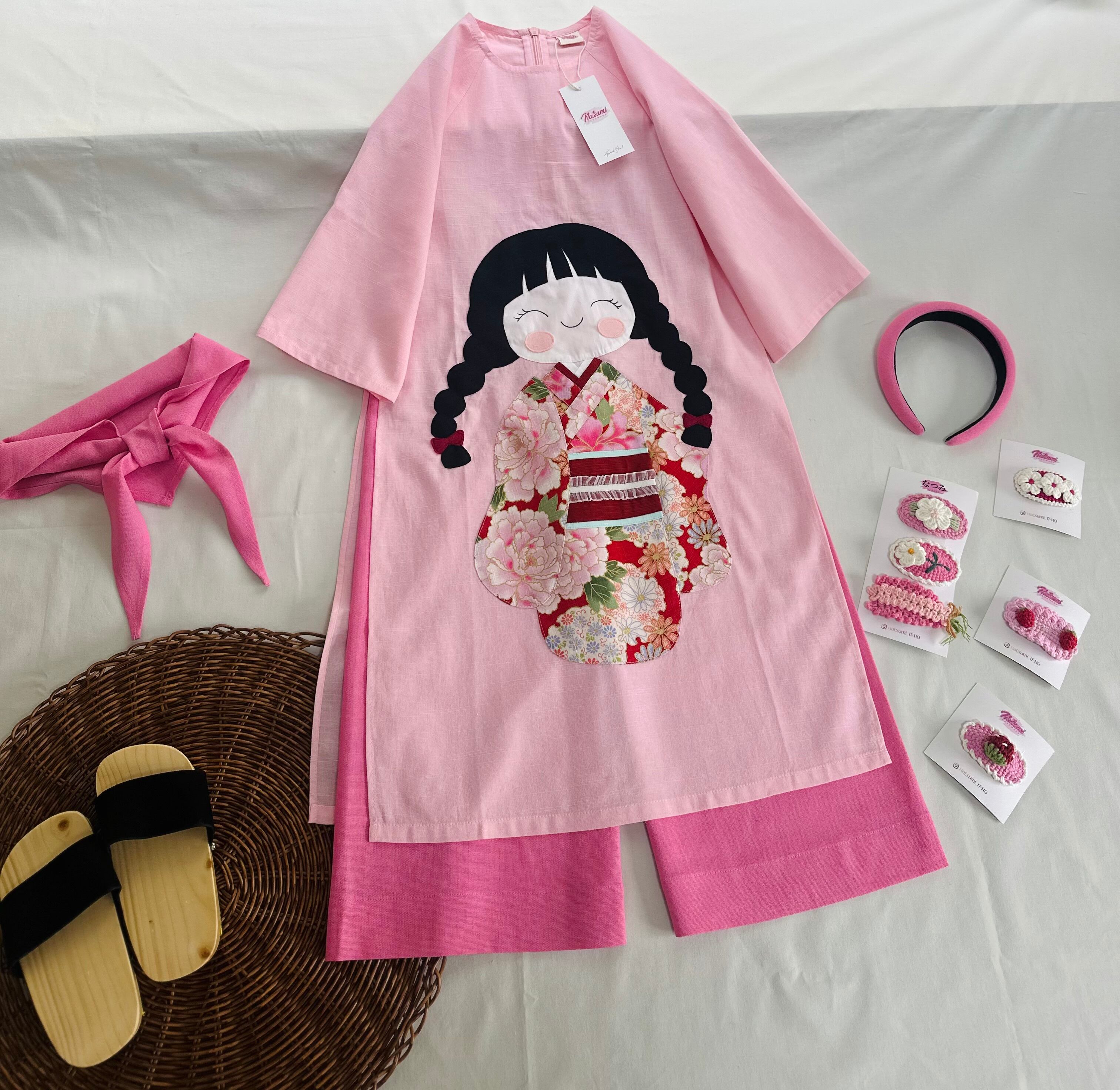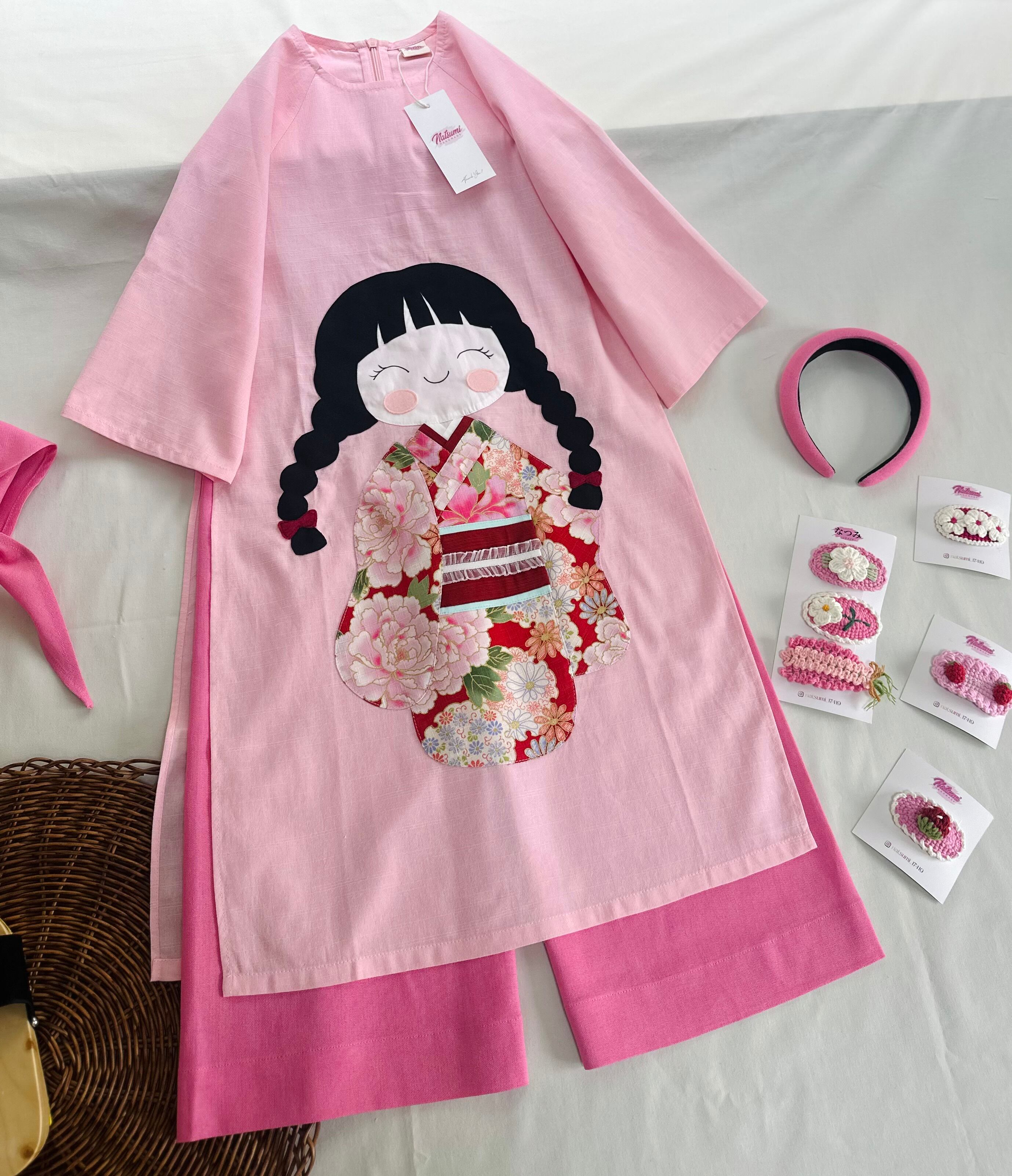 No.BB2602ハンドメイド女の子リネンベトナムアオザイセット➖可愛いキルト