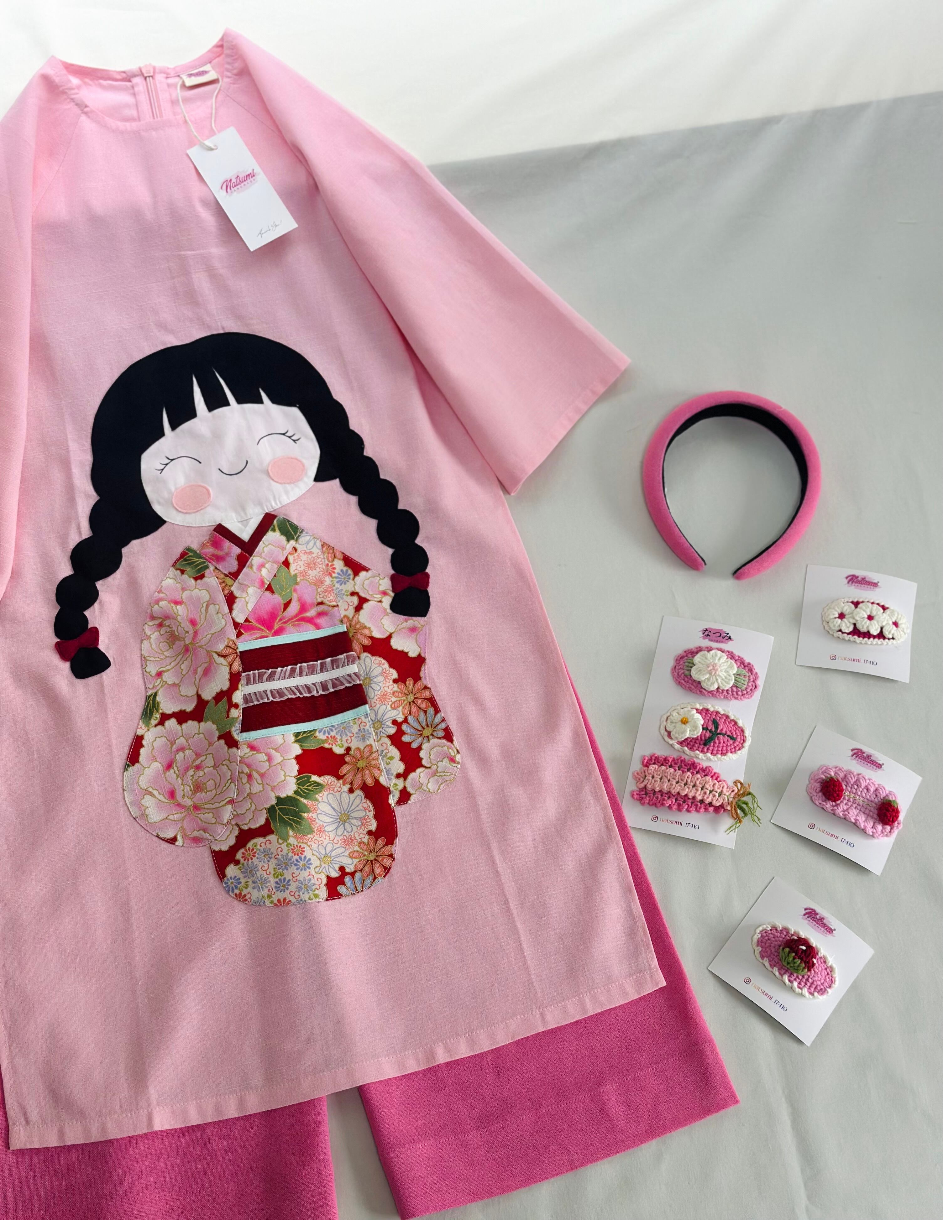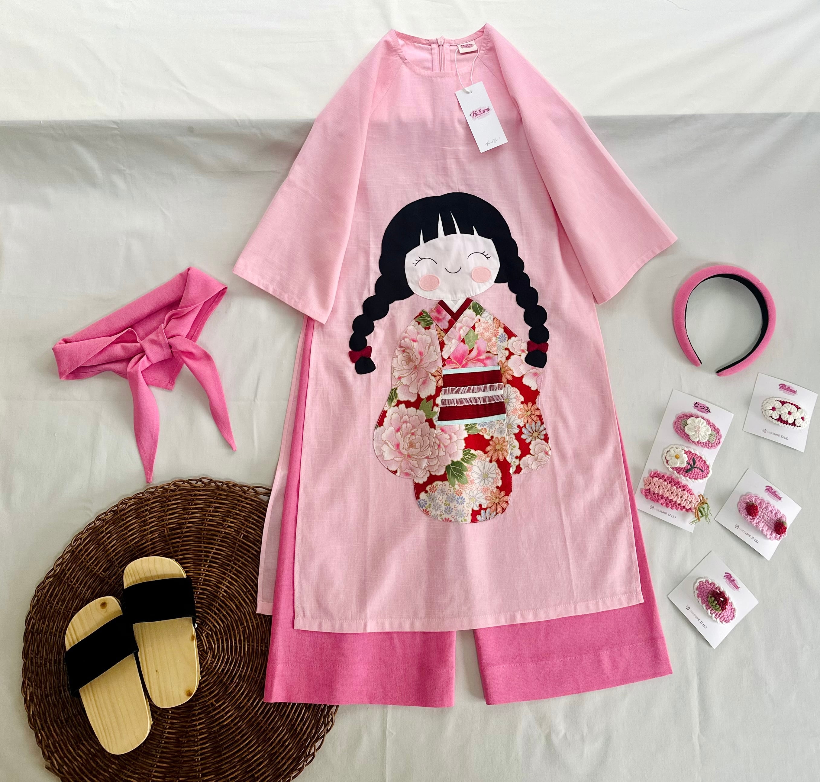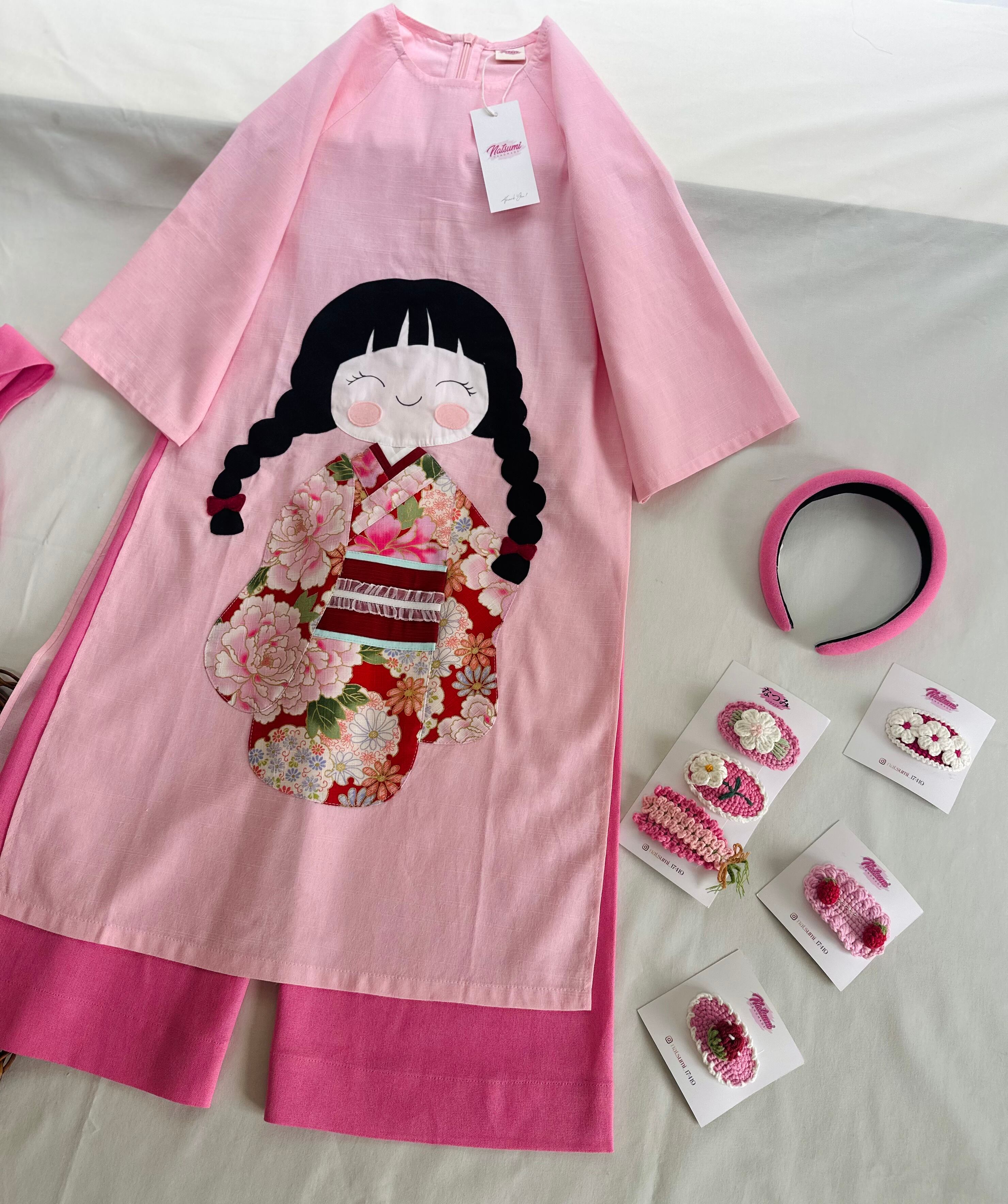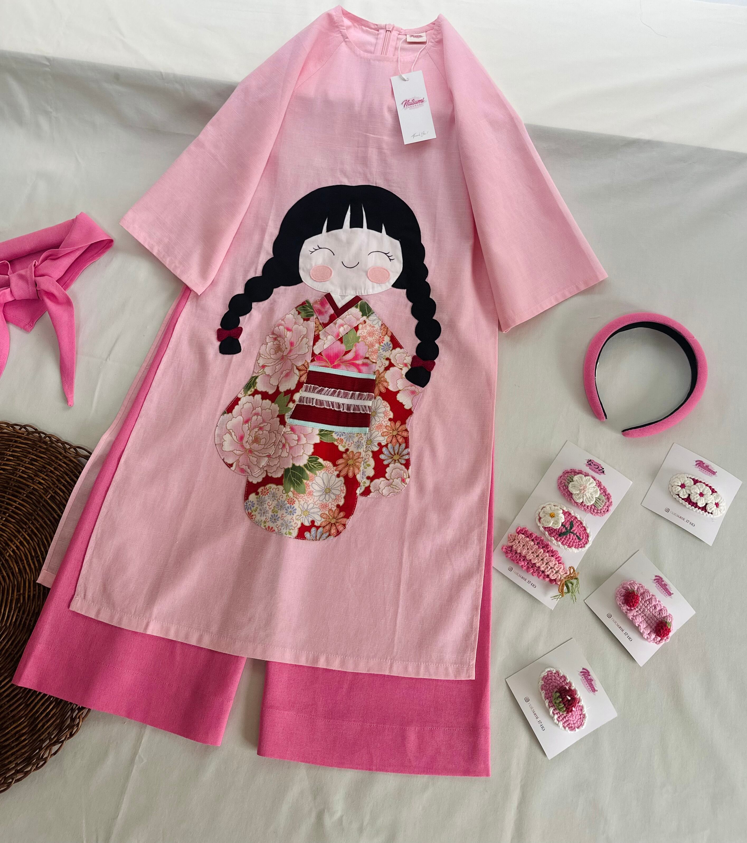 No.BB2602ハンドメイド女の子リネンベトナムアオザイセット➖可愛いキルト