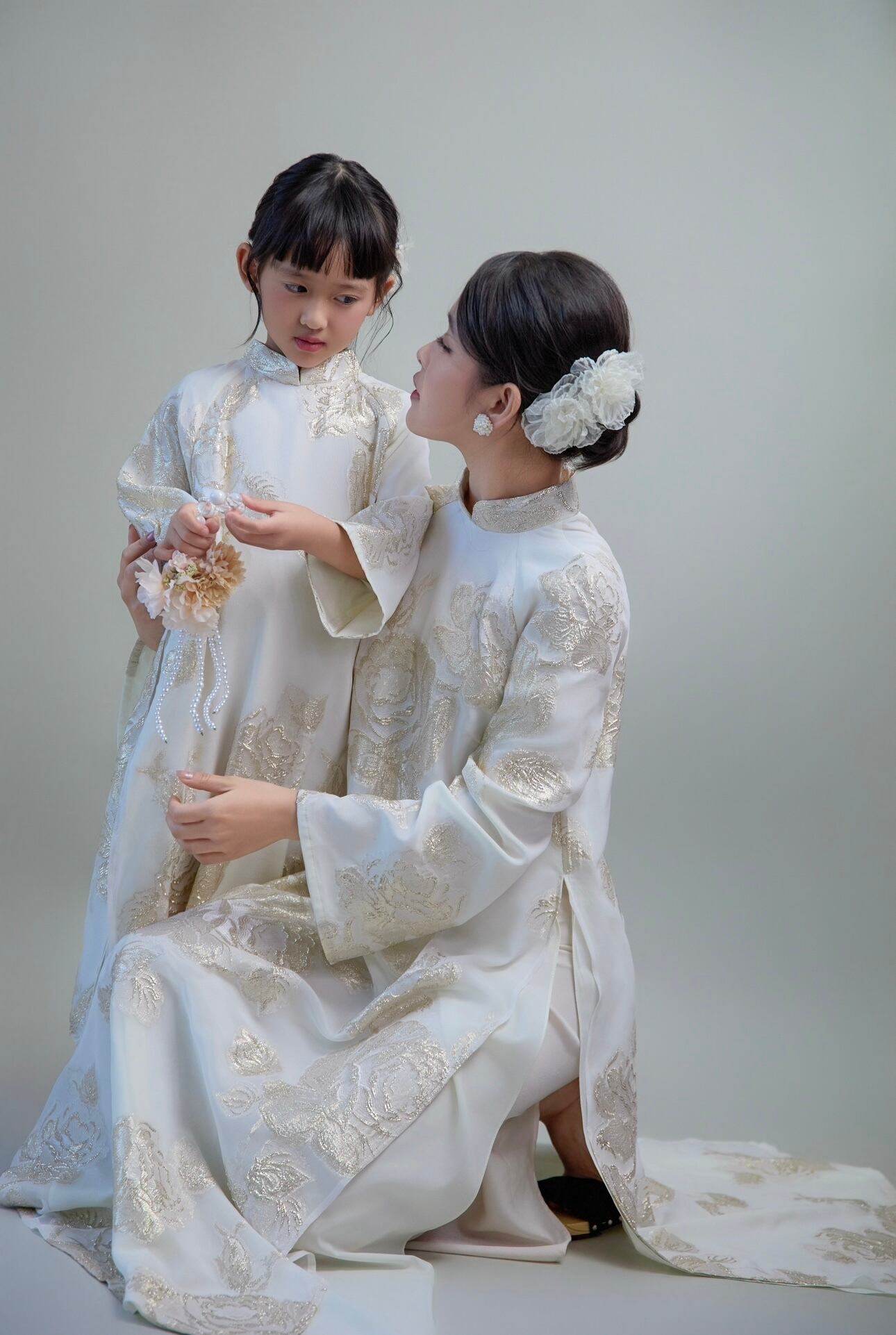 (ガール)No.T2608ゴールド刺繍シルクハンドメイドアオザイセット