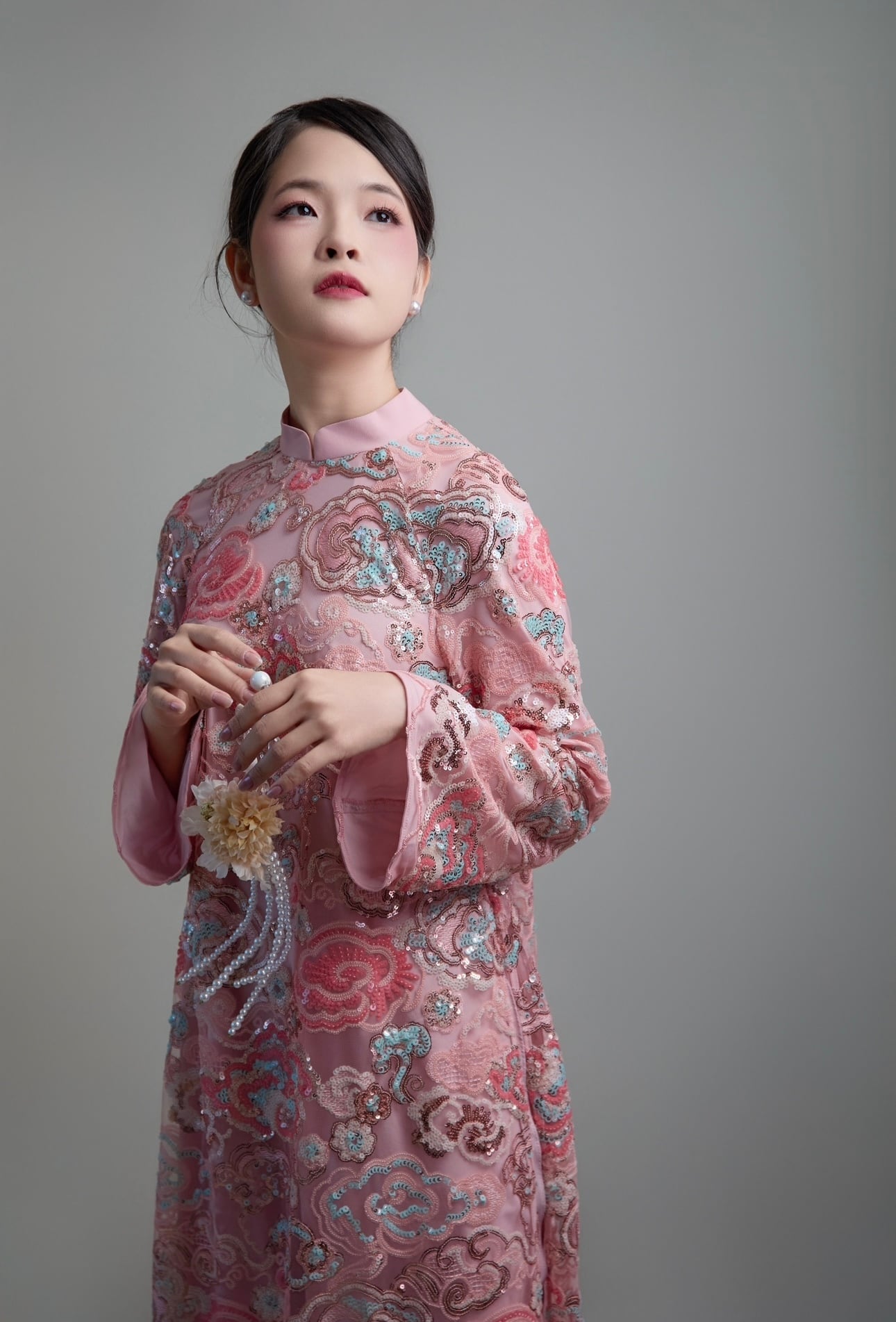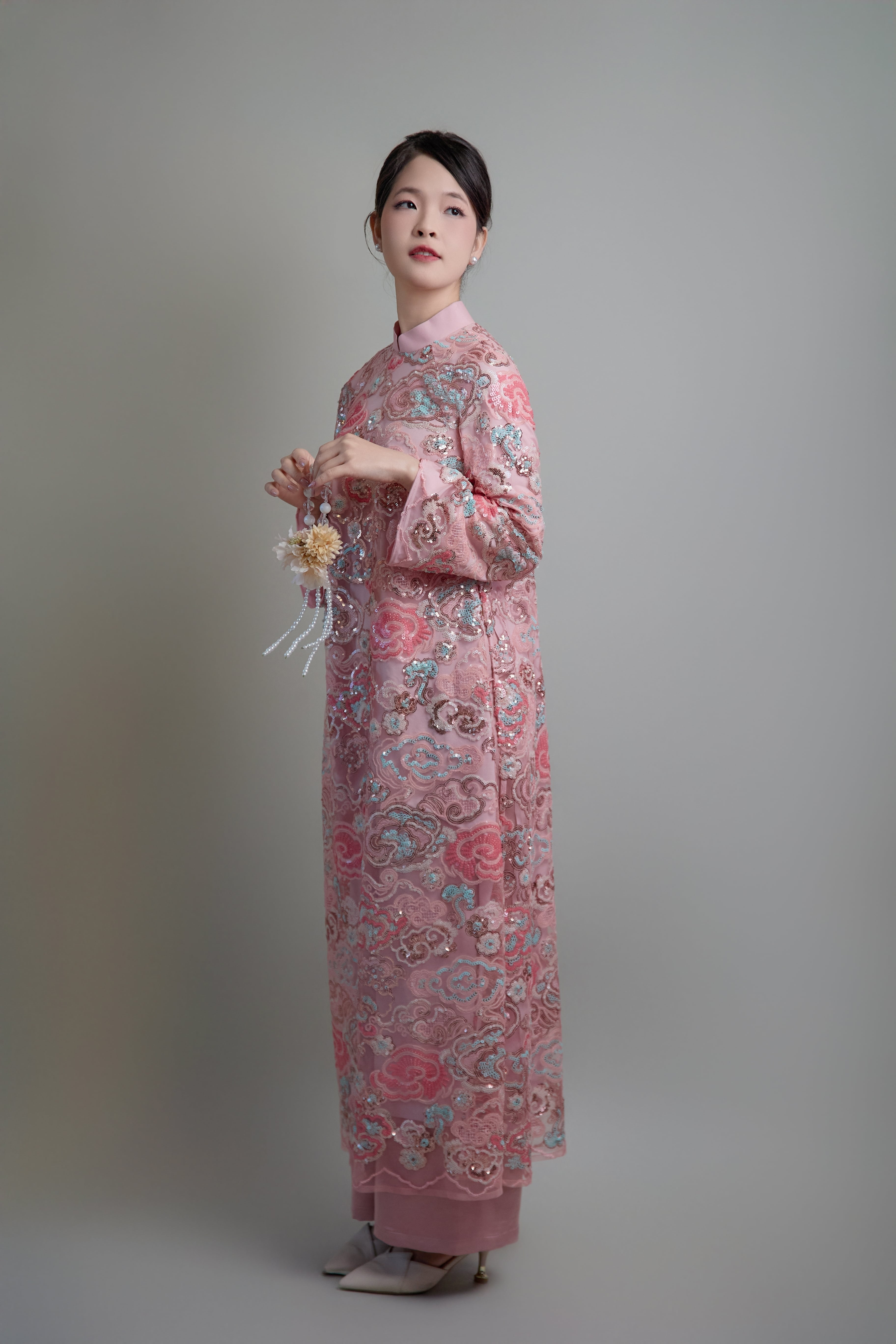 #アオザイ #ハンドメイド #ナツミハンドメイド #ベトナムアオザイ #スパンコール刺繍 #フォーマルドレス #結婚式コーデ #アジアンファッション #ピンクドレス #シルクドレス