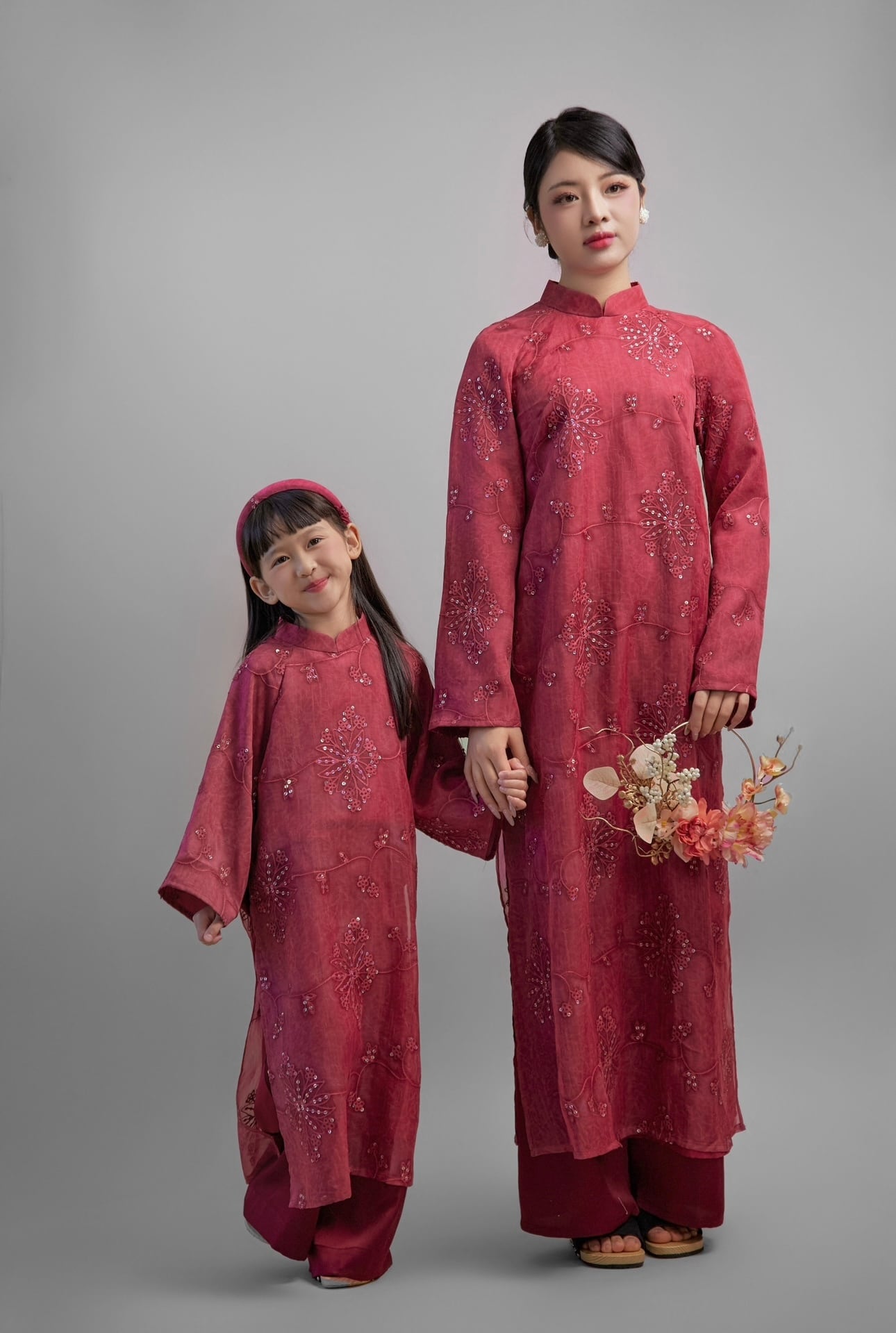 #アオザイ #ハンドメイド #ナツミハンドメイド #ベトナムアオザイ #親子リンクコーデ #シルクドレス #フォーマルドレス #刺繍ドレス #ビーズ刺繍 #レッドドレス
