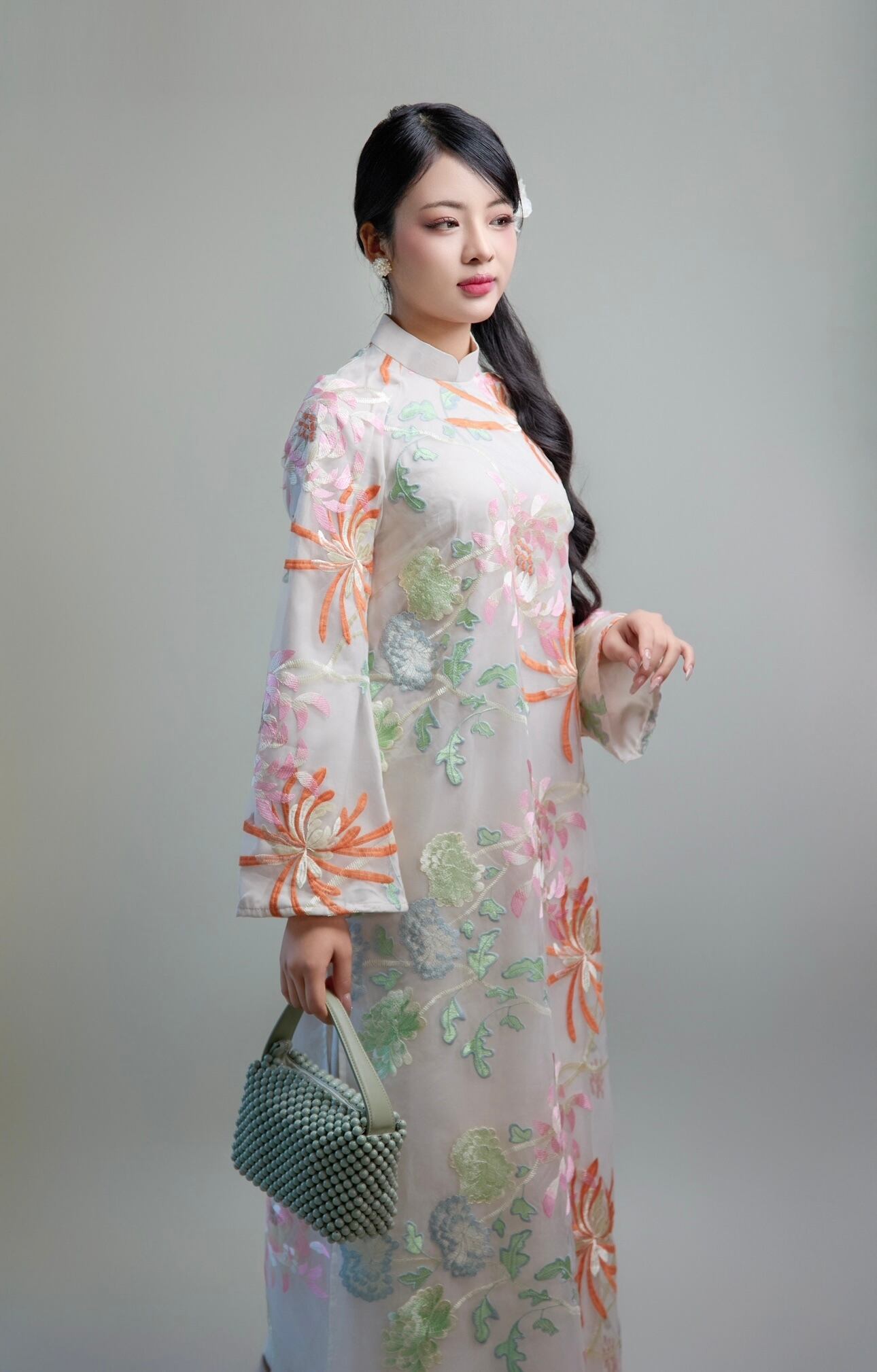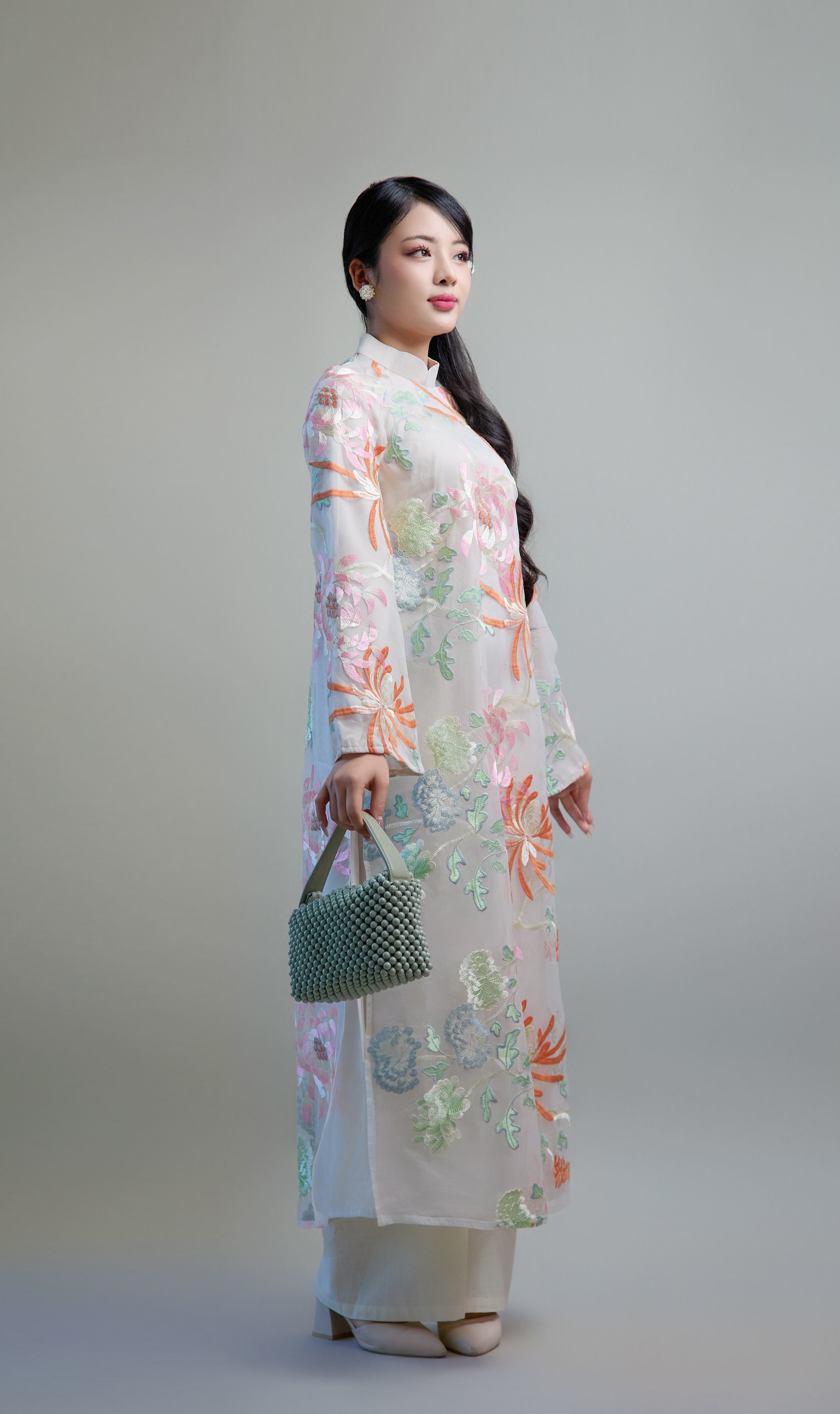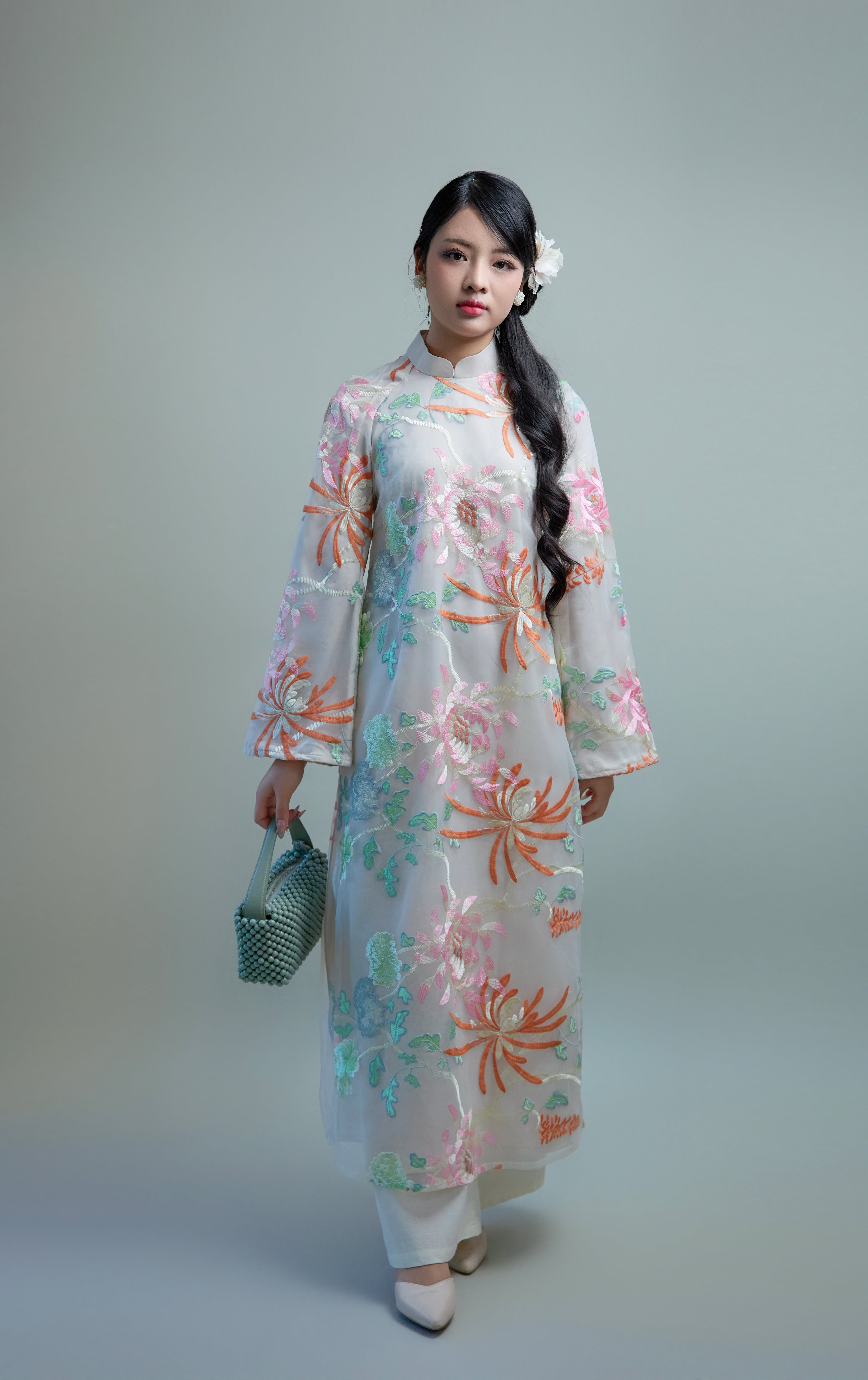 #アオザイ #ハンドメイド #ナツミハンドメイド #ベトナムアオザイ #刺繍ドレス #オーガンジー #フォーマルドレス #花柄シルク #ホワイトドレス #シルクアオザイ