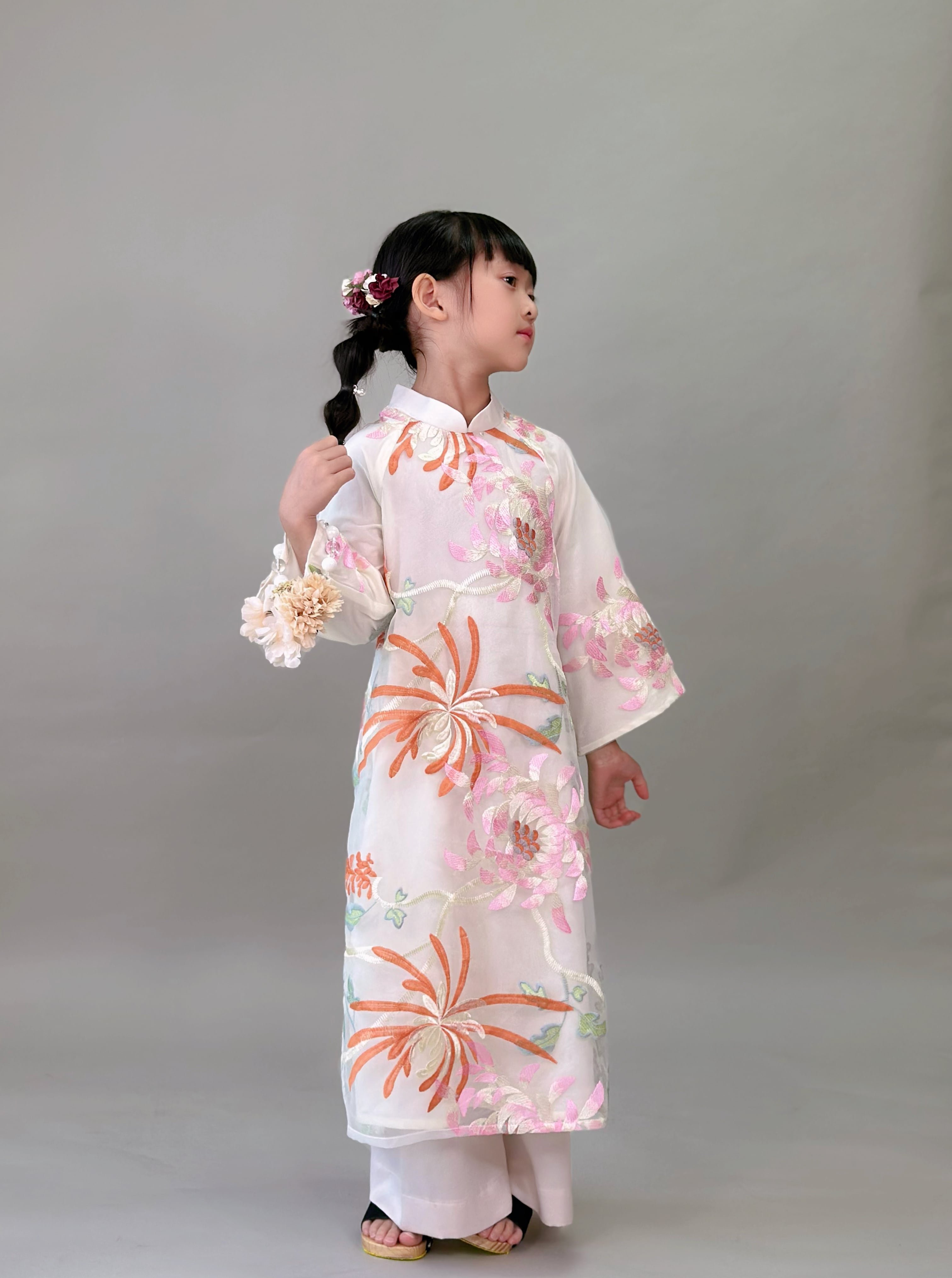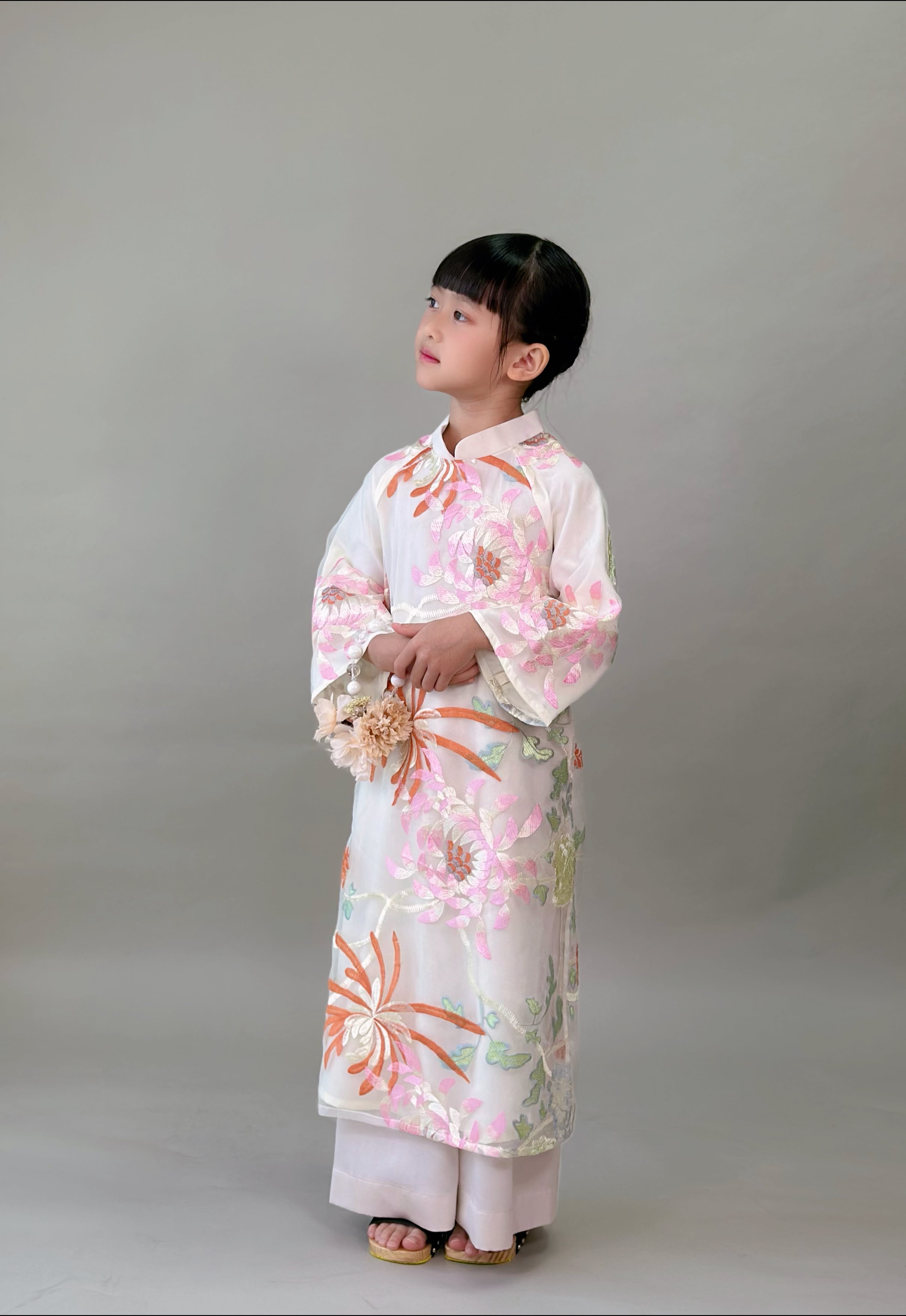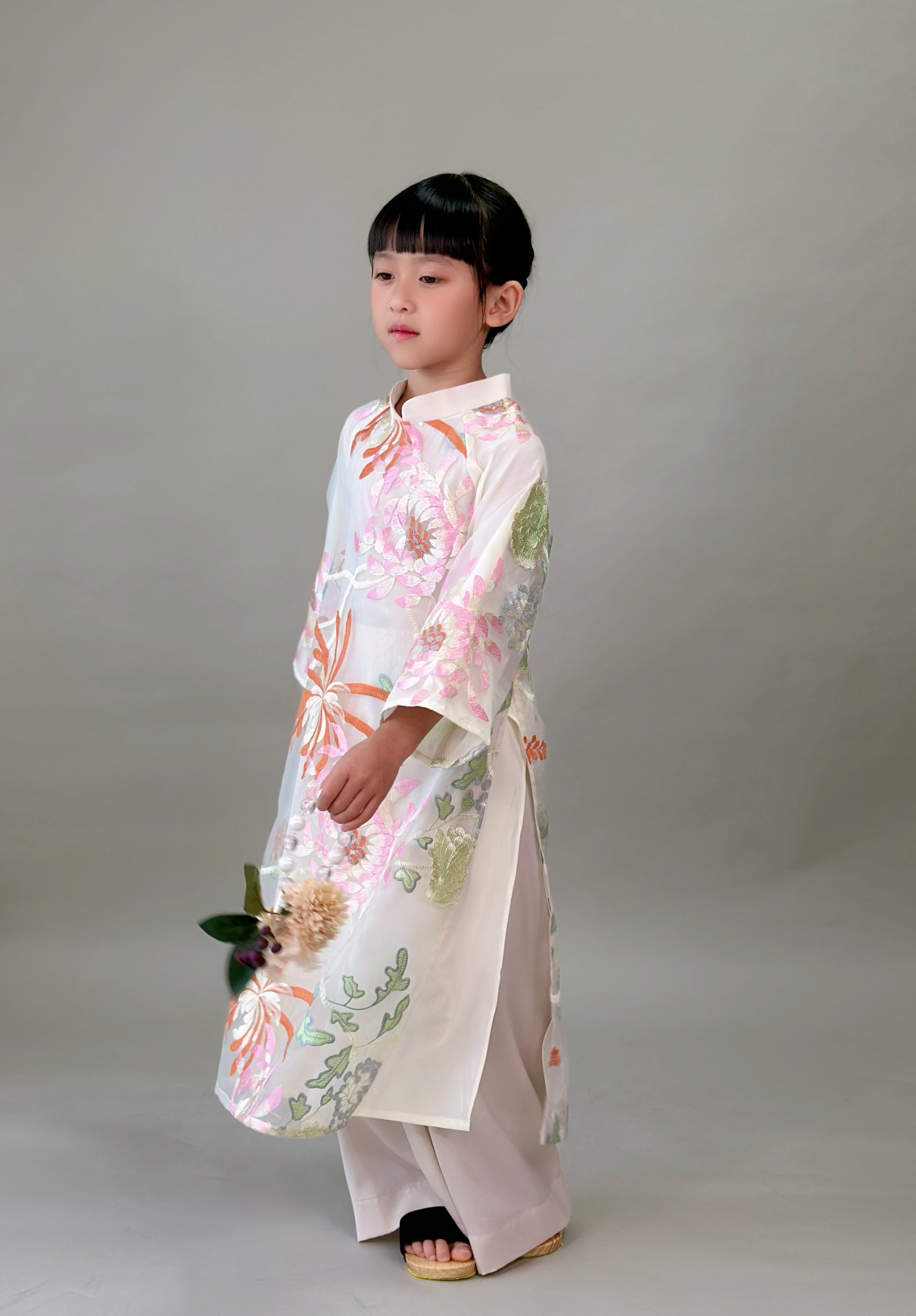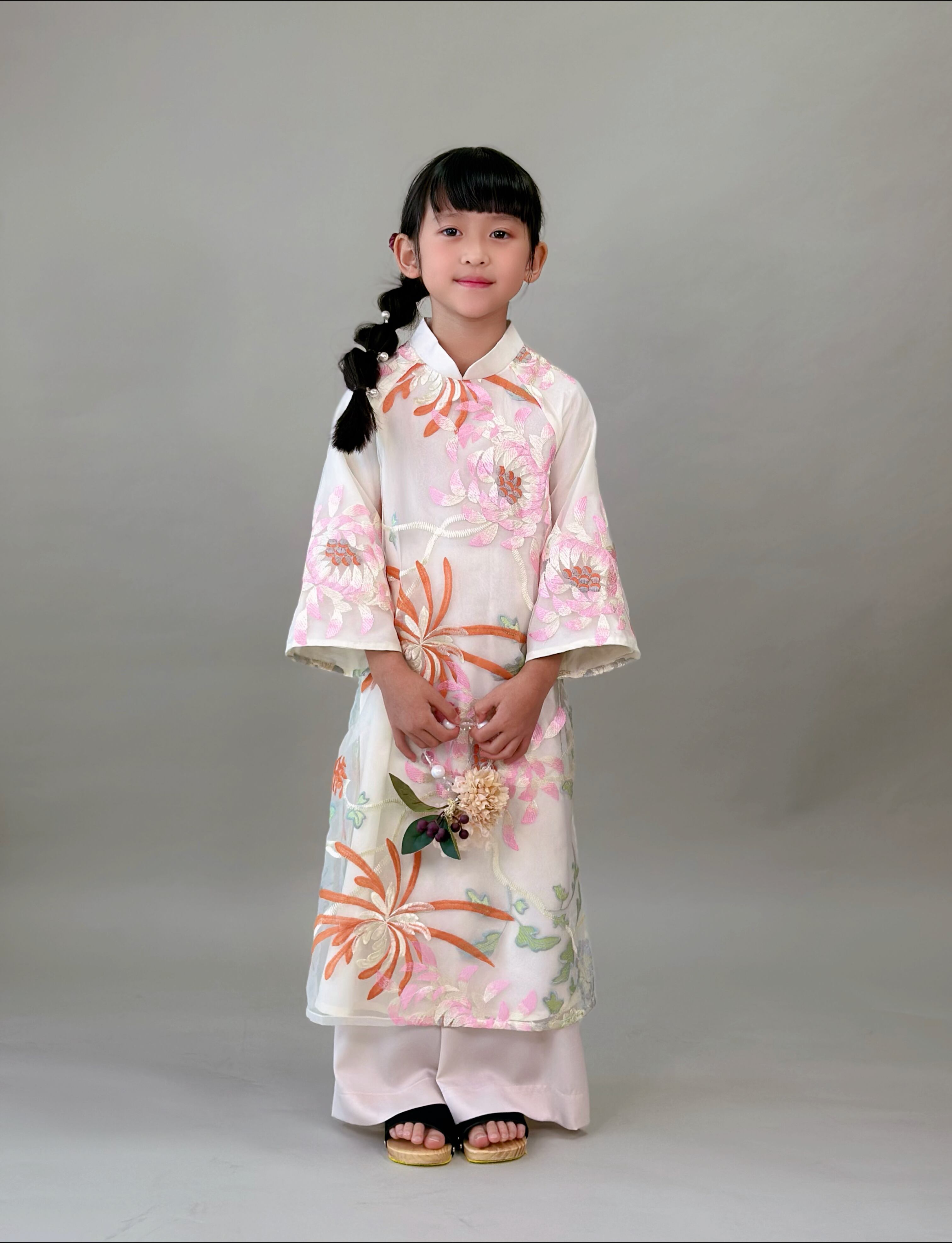 #アオザイ #ハンドメイド #ナツミハンドメイド #ベトナムアオザイ #刺繍ドレス #オーガンジー #フォーマルドレス #花柄シルク #ホワイトドレス #シルクアオザイ