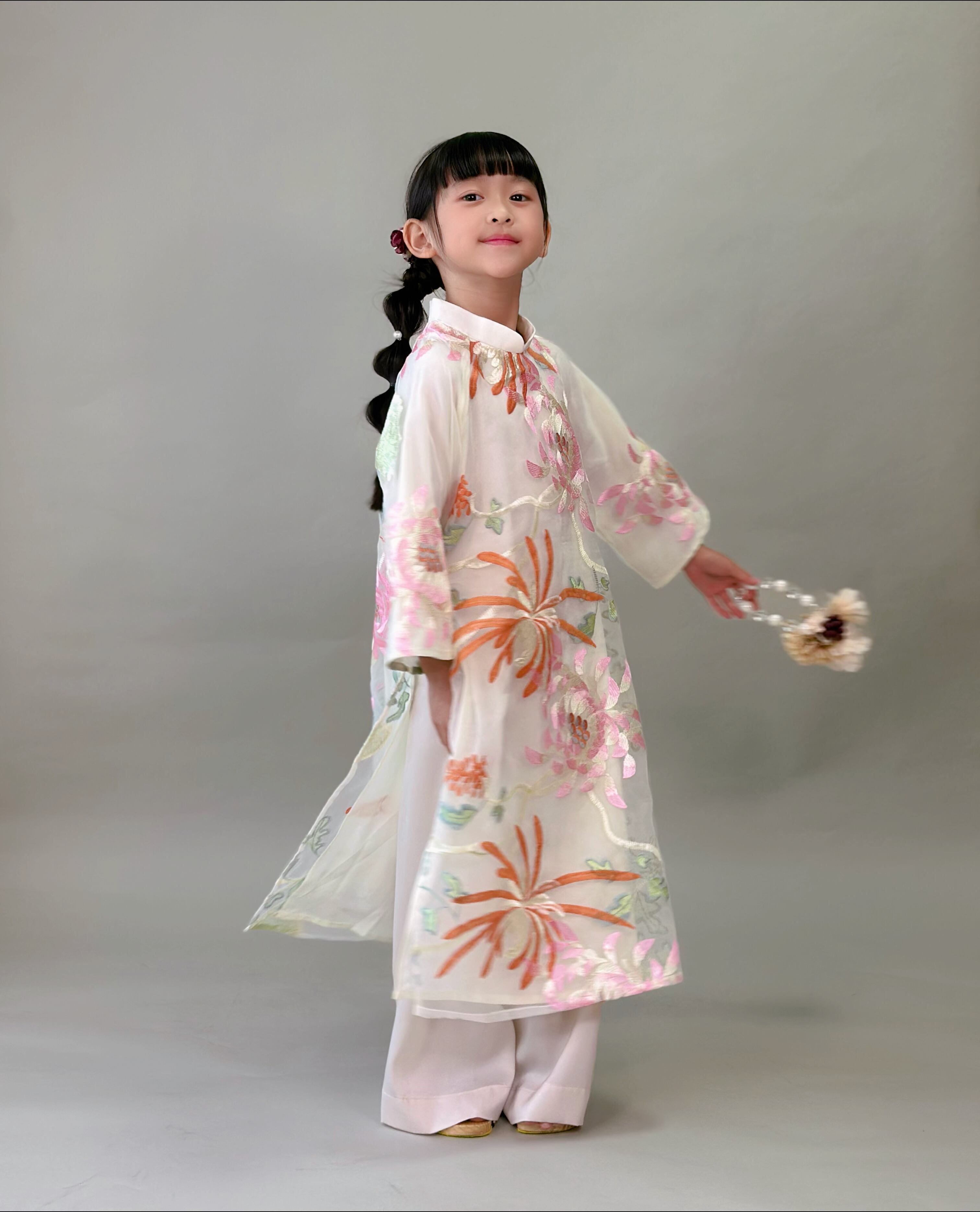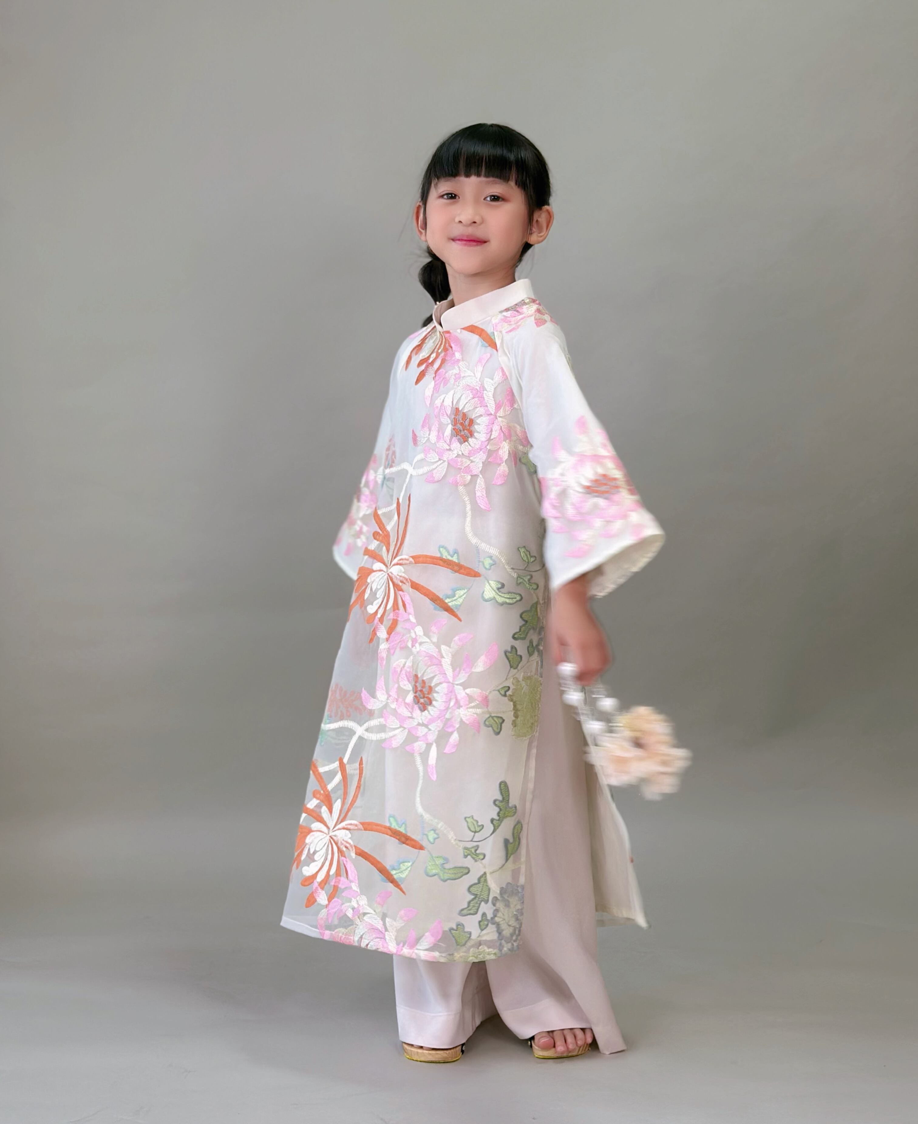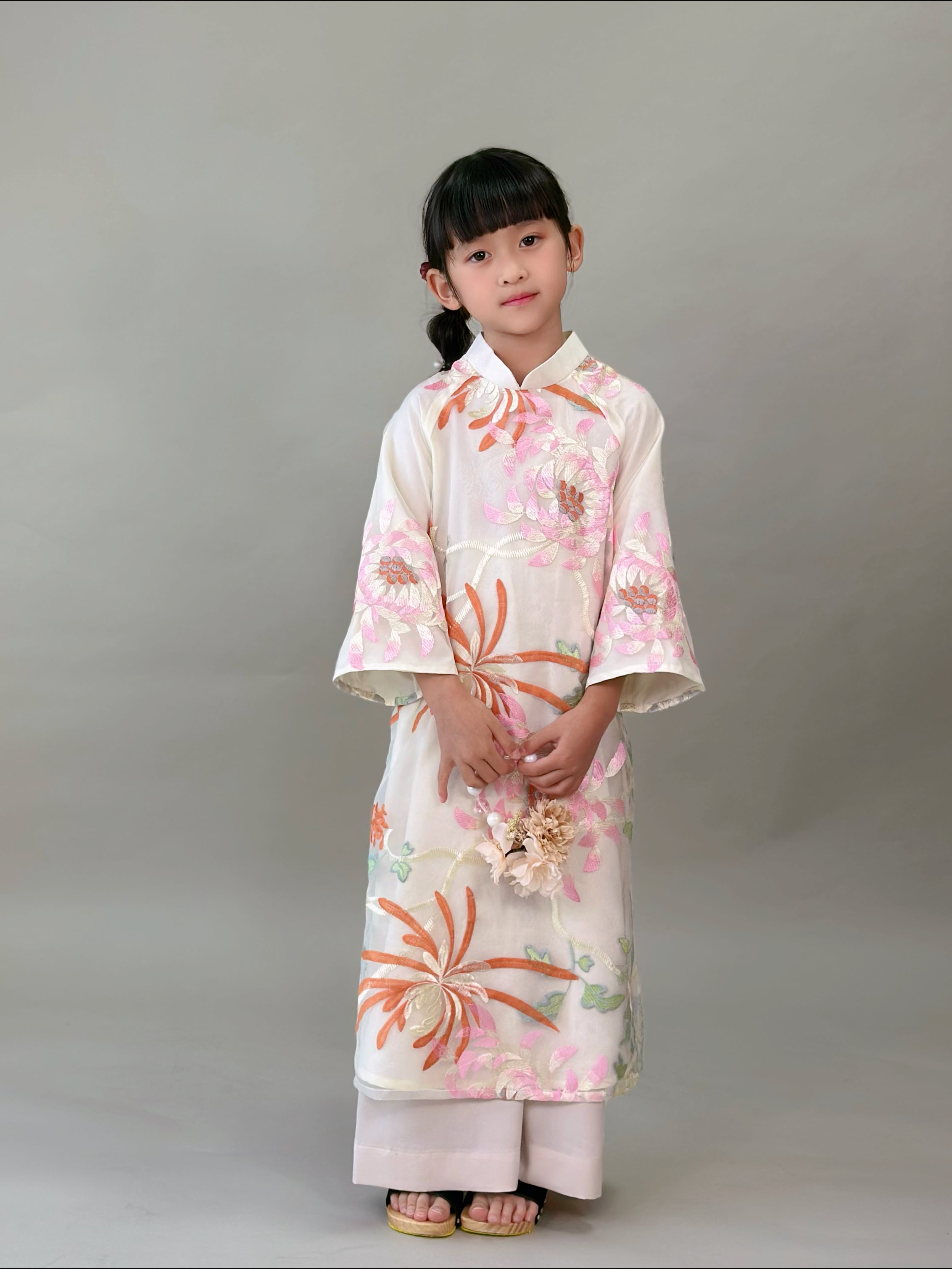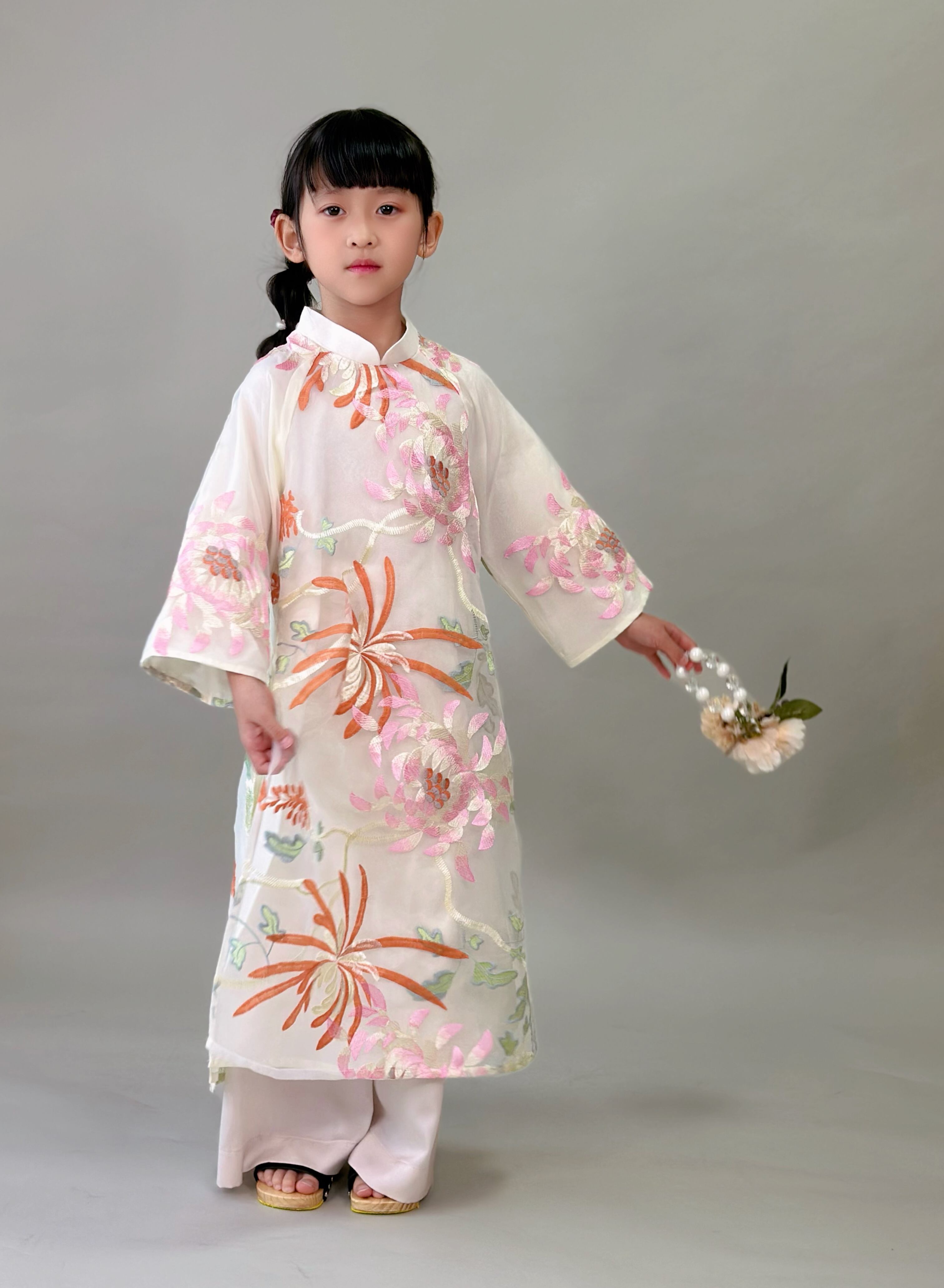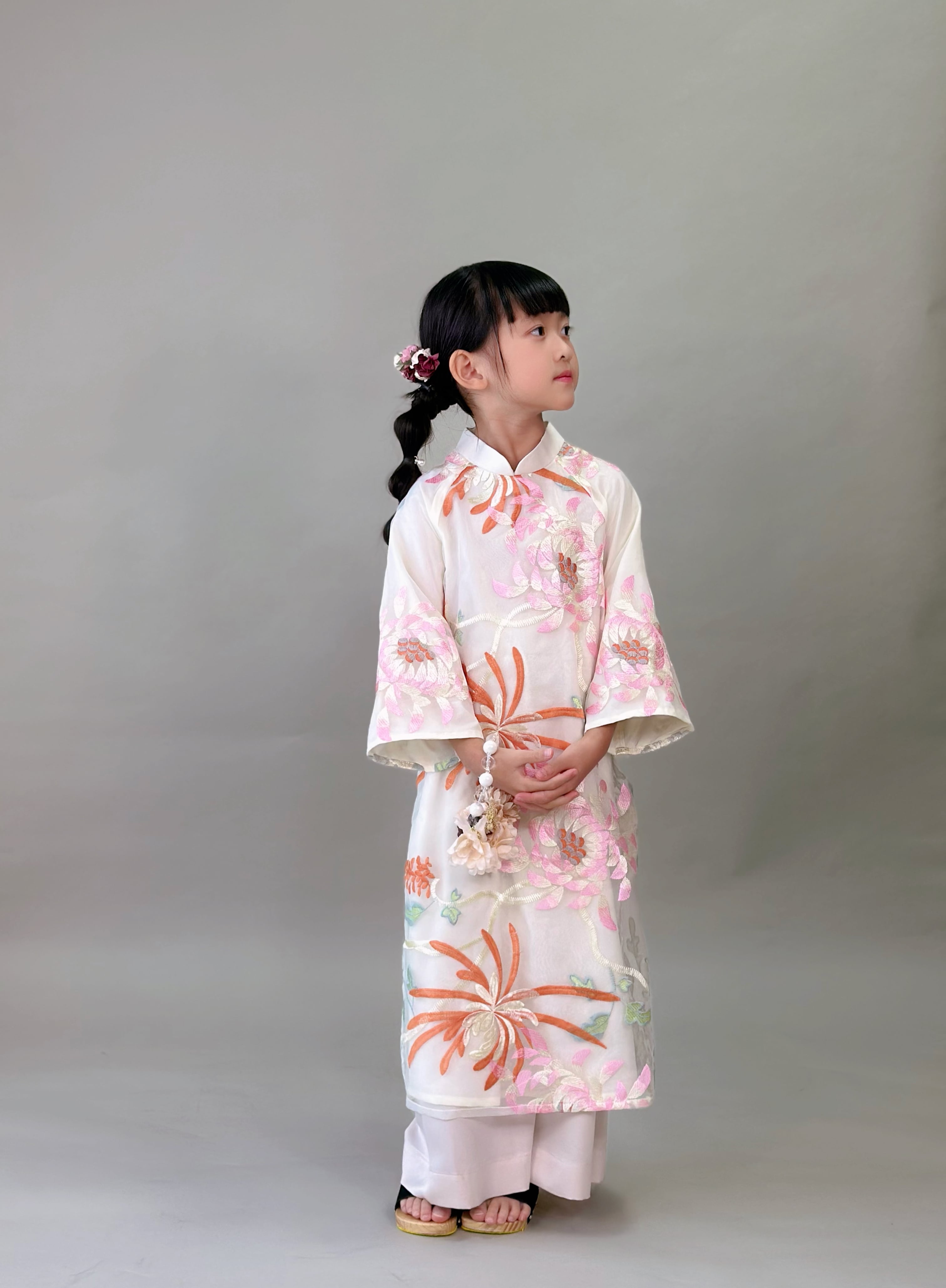 #アオザイ #ハンドメイド #ナツミハンドメイド #ベトナムアオザイ #刺繍ドレス #オーガンジー #フォーマルドレス #花柄シルク #ホワイトドレス #シルクアオザイ