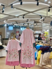 #ナツミハンドメイド #アオザイ #親子リンクコーデ #リネンアオザイ #ハンドメイド #手刺繍 #コスモス刺繍 #春コーデ #フォーマルドレス #ピンクコーデ