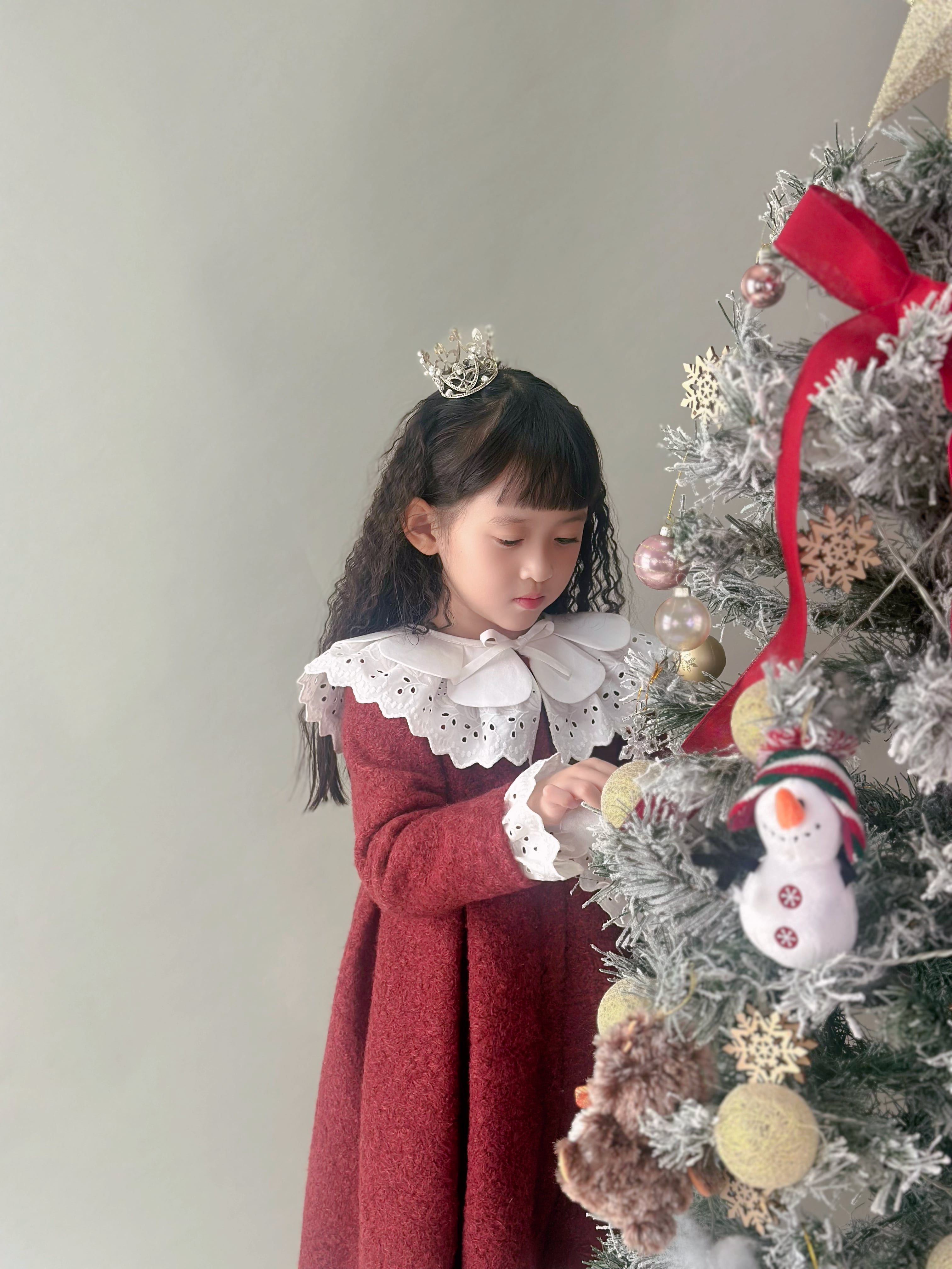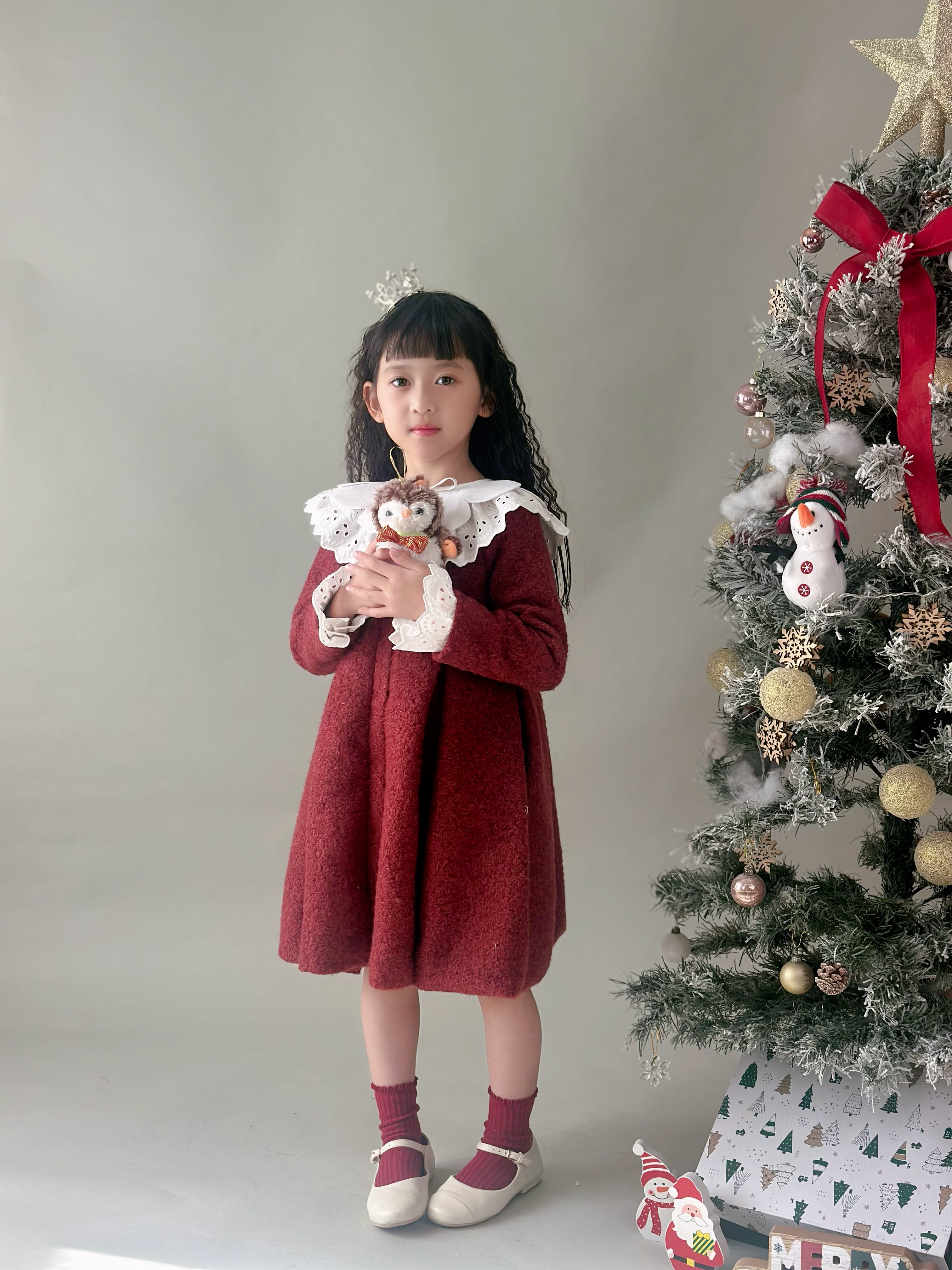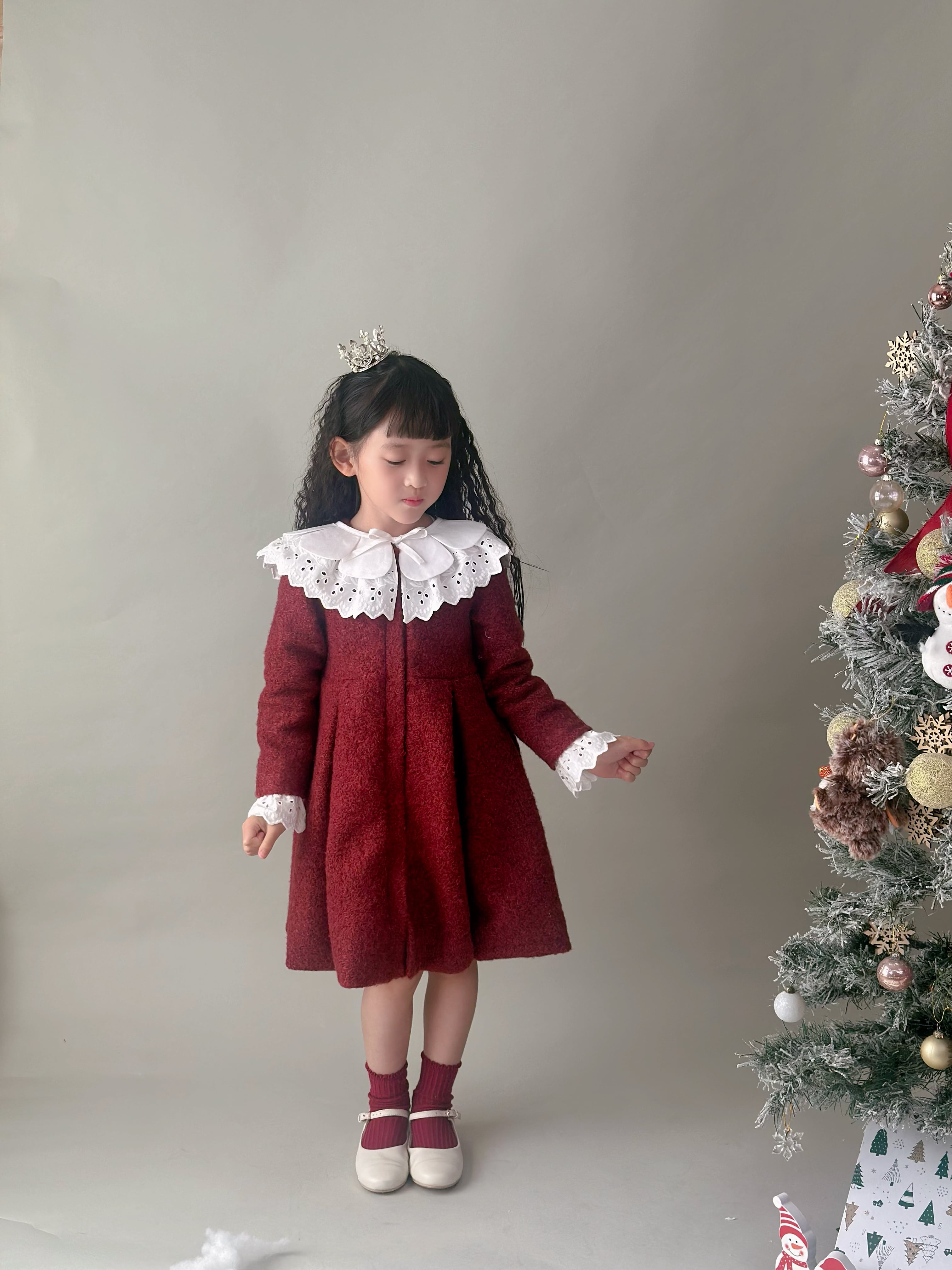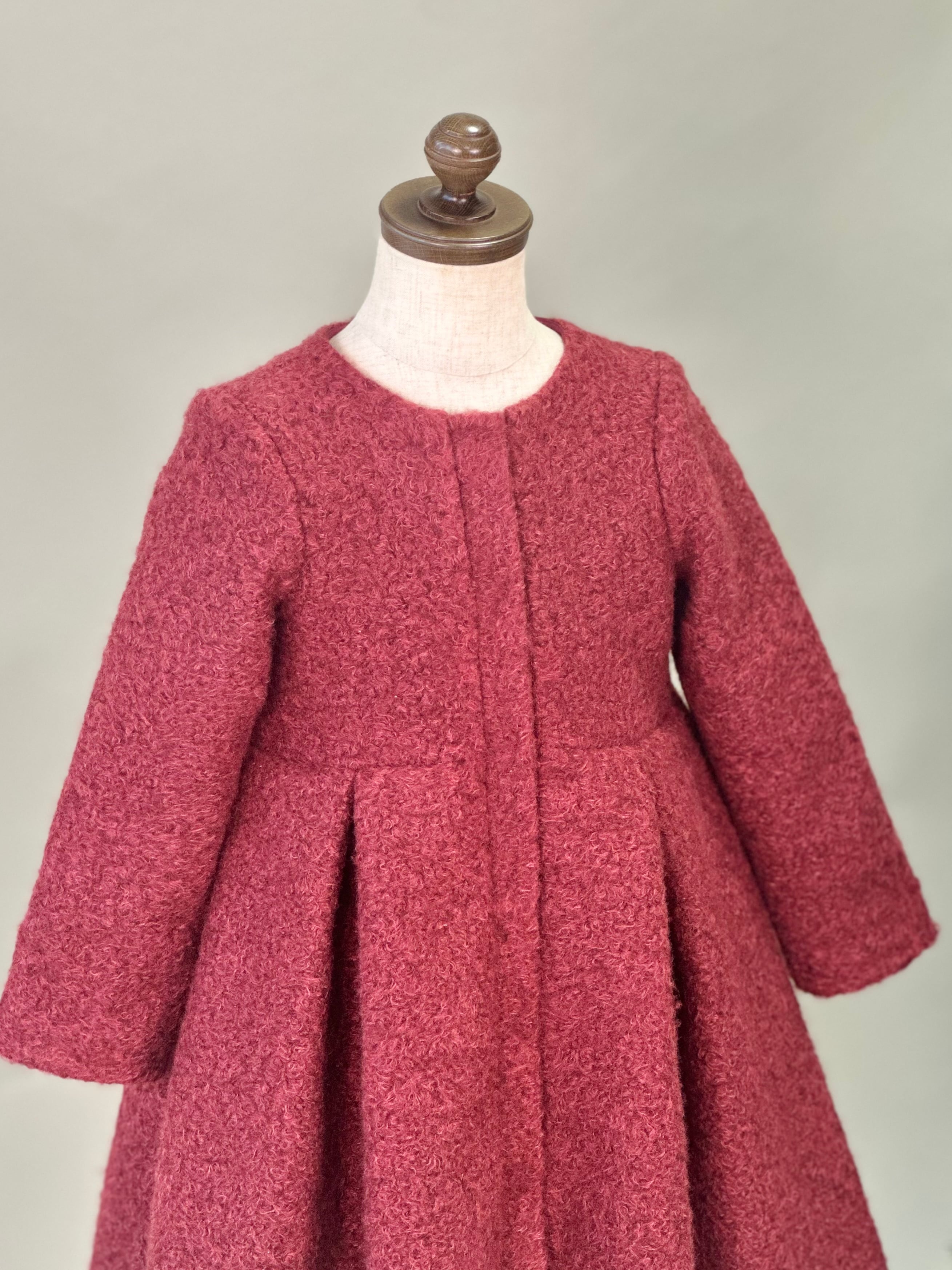 No.GS2603|ハンドメイド赤ウール混コート刺繍レース襟の可愛い子供服