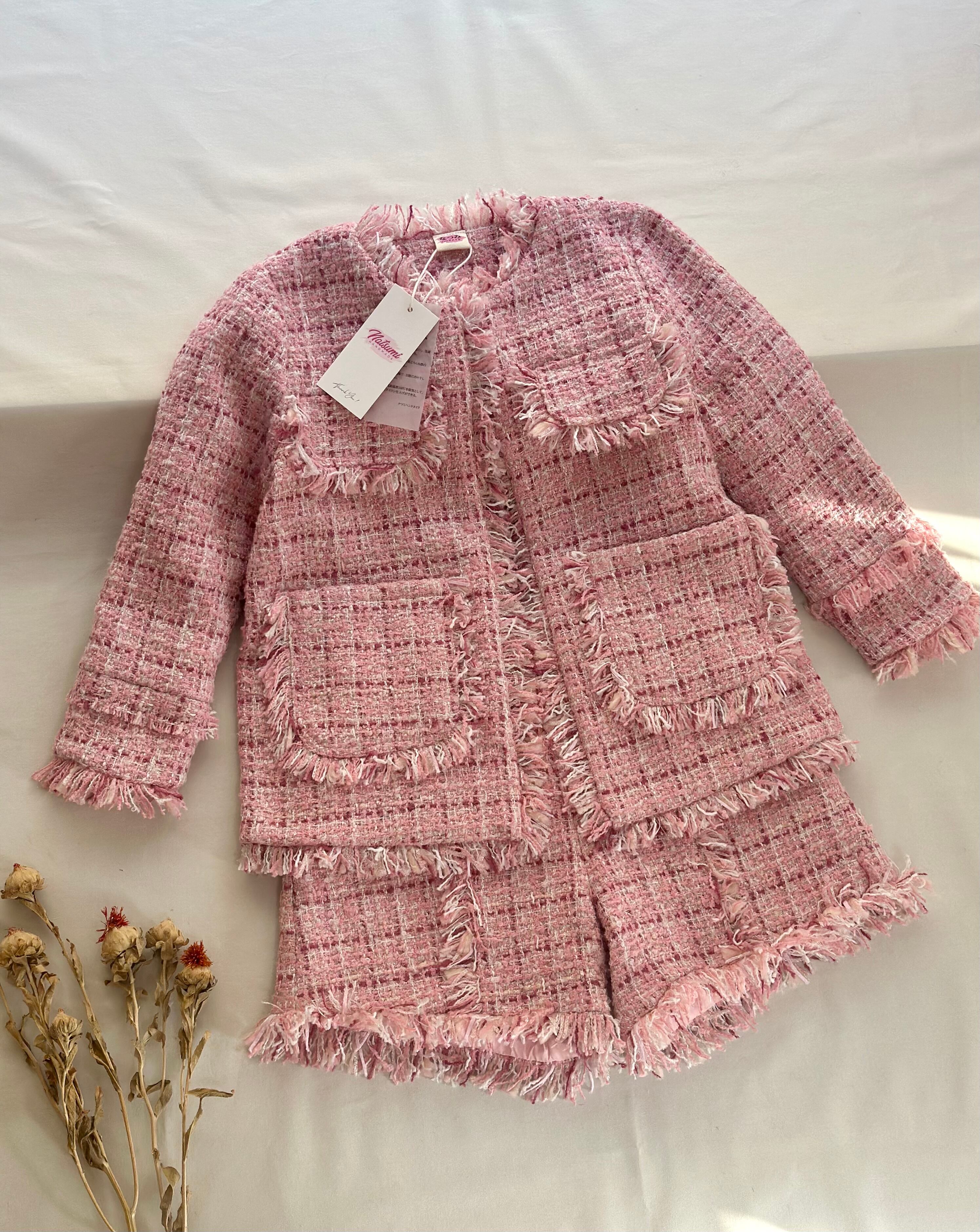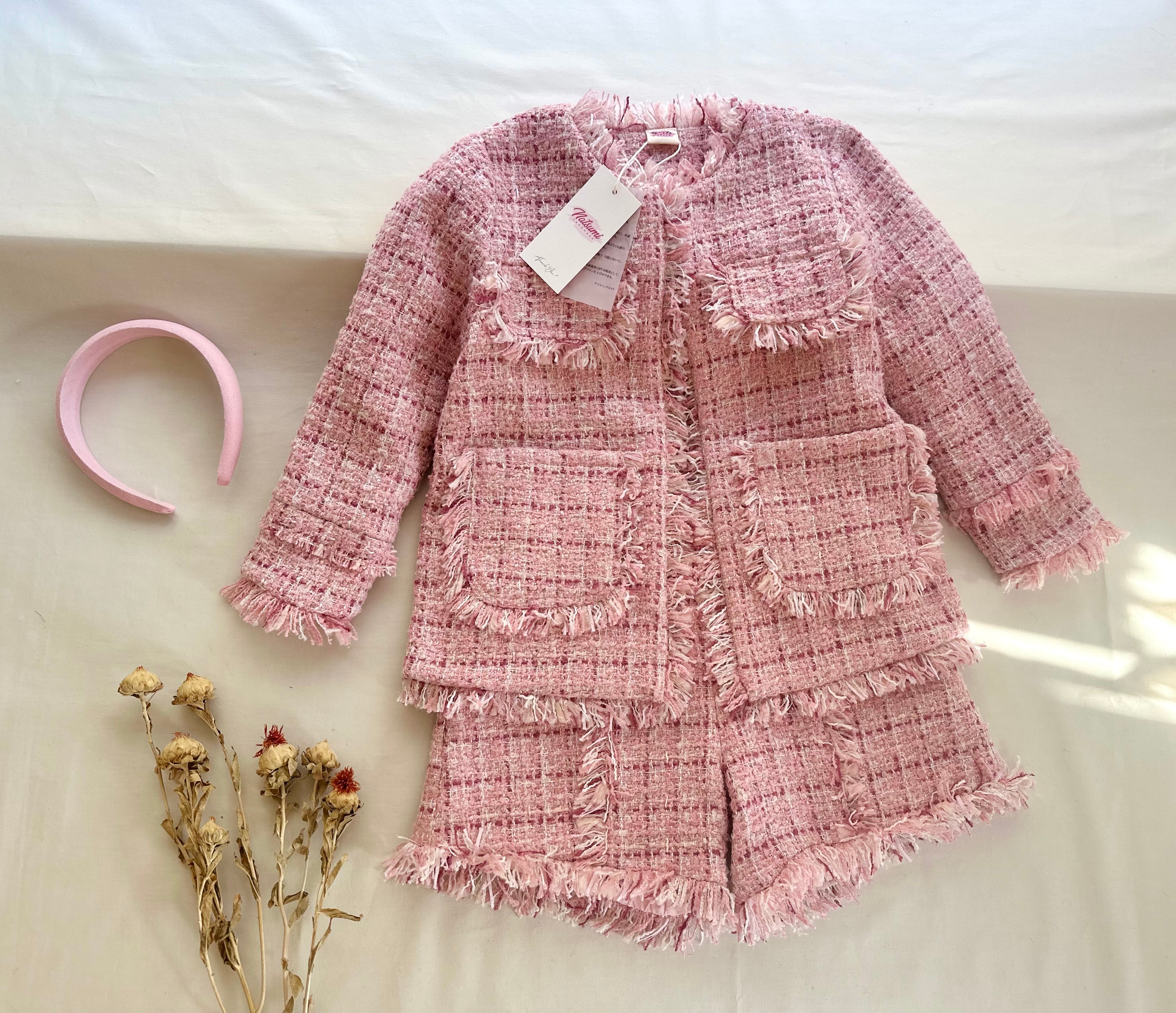 No.GS2606|ハンドメイドピンクツイードセットアップ可愛い子供服