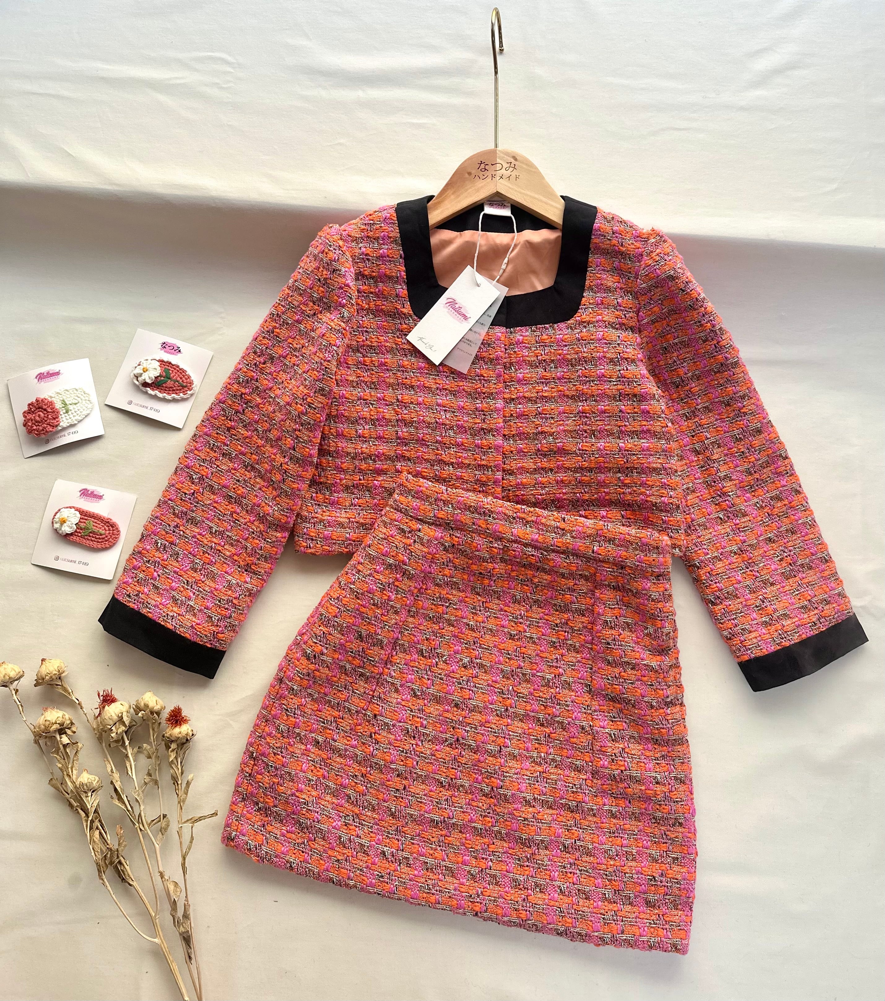 No.GS2607|ハンドメイドオレンジツイードセットアップ可愛い子供服