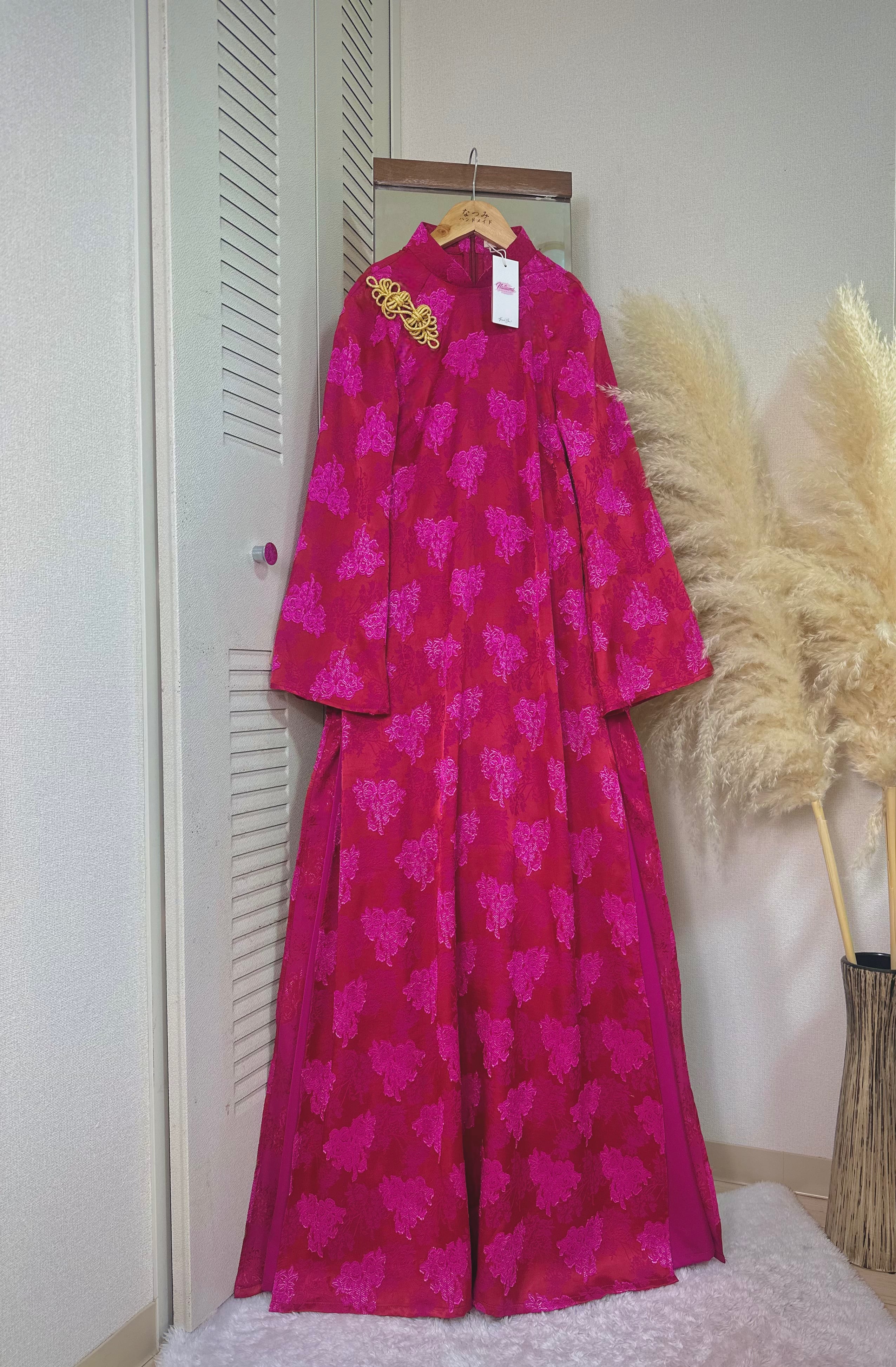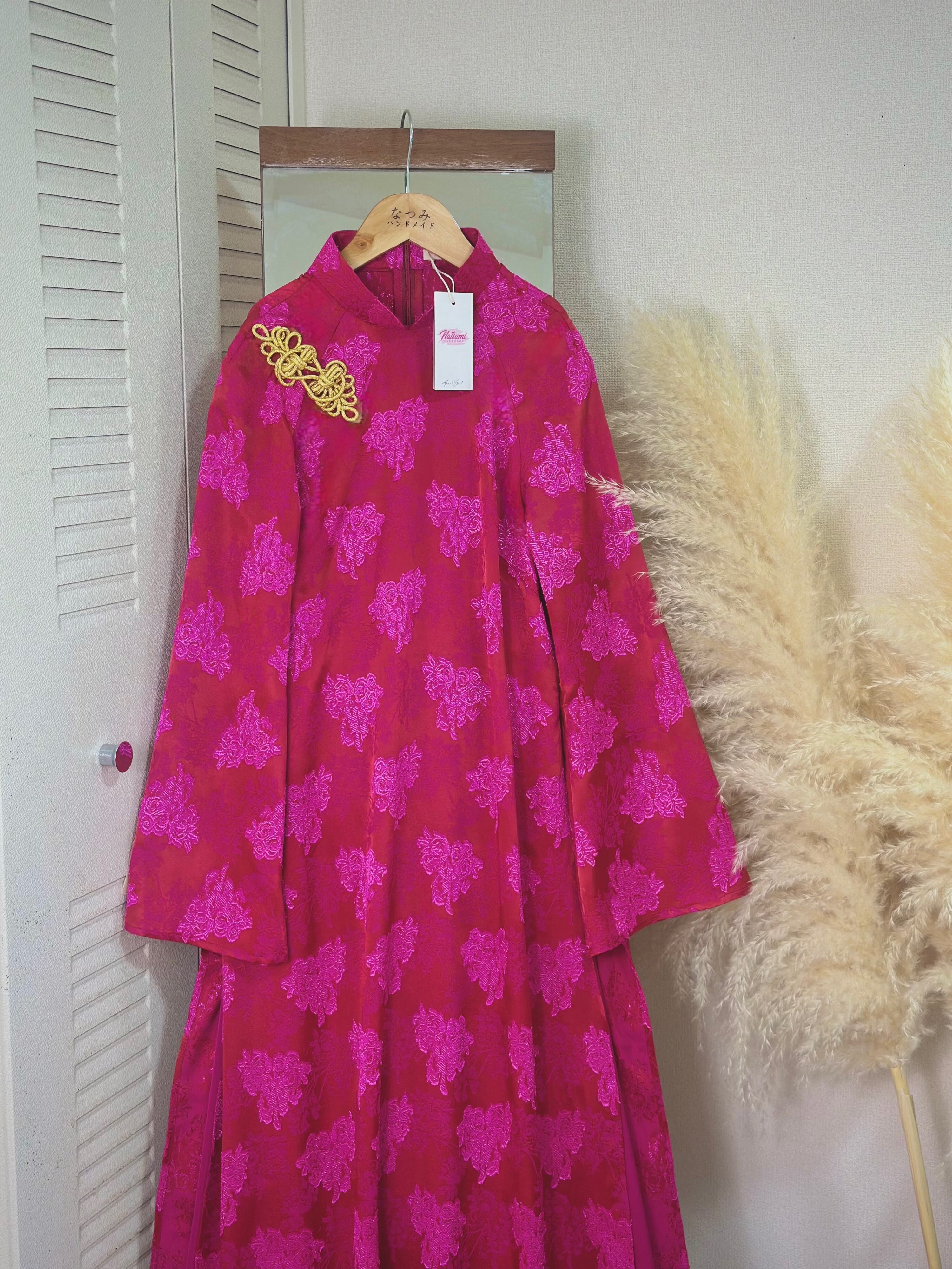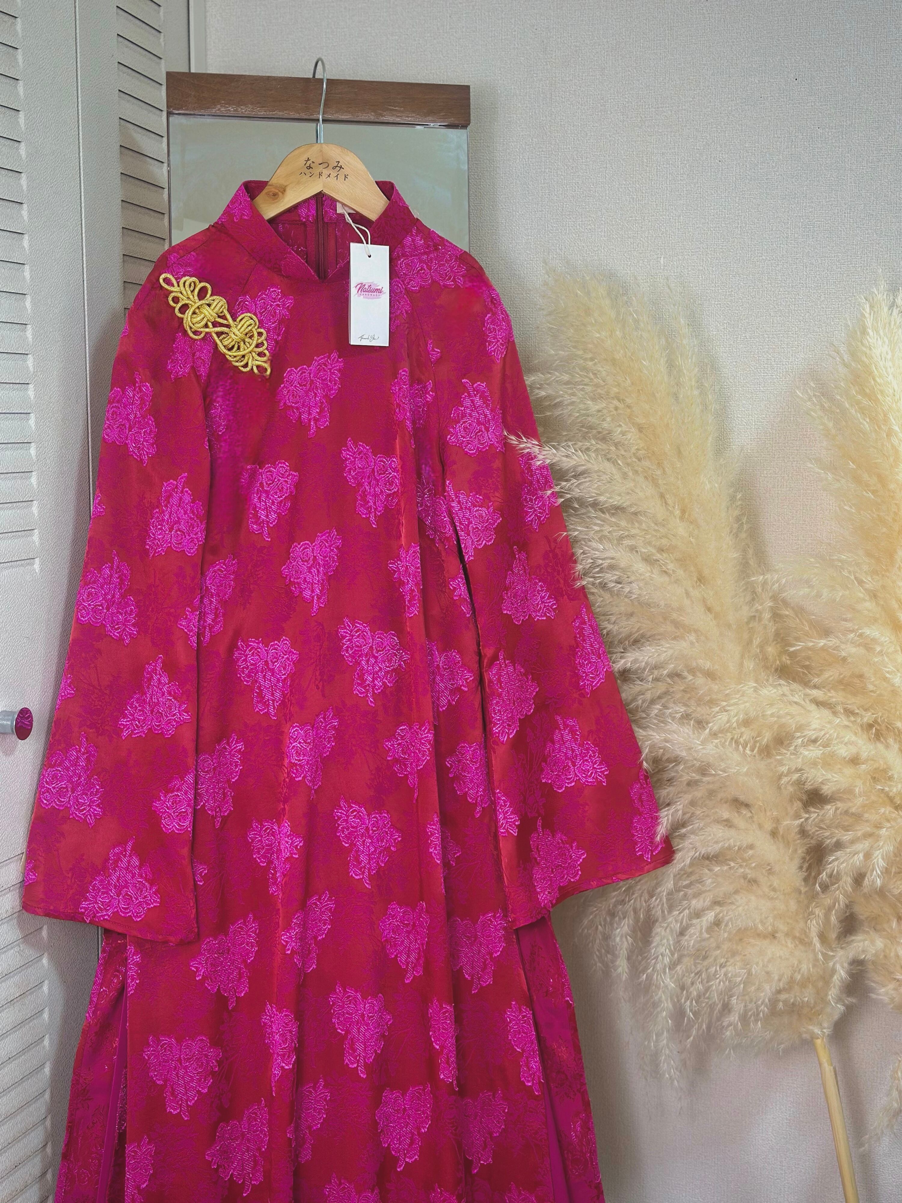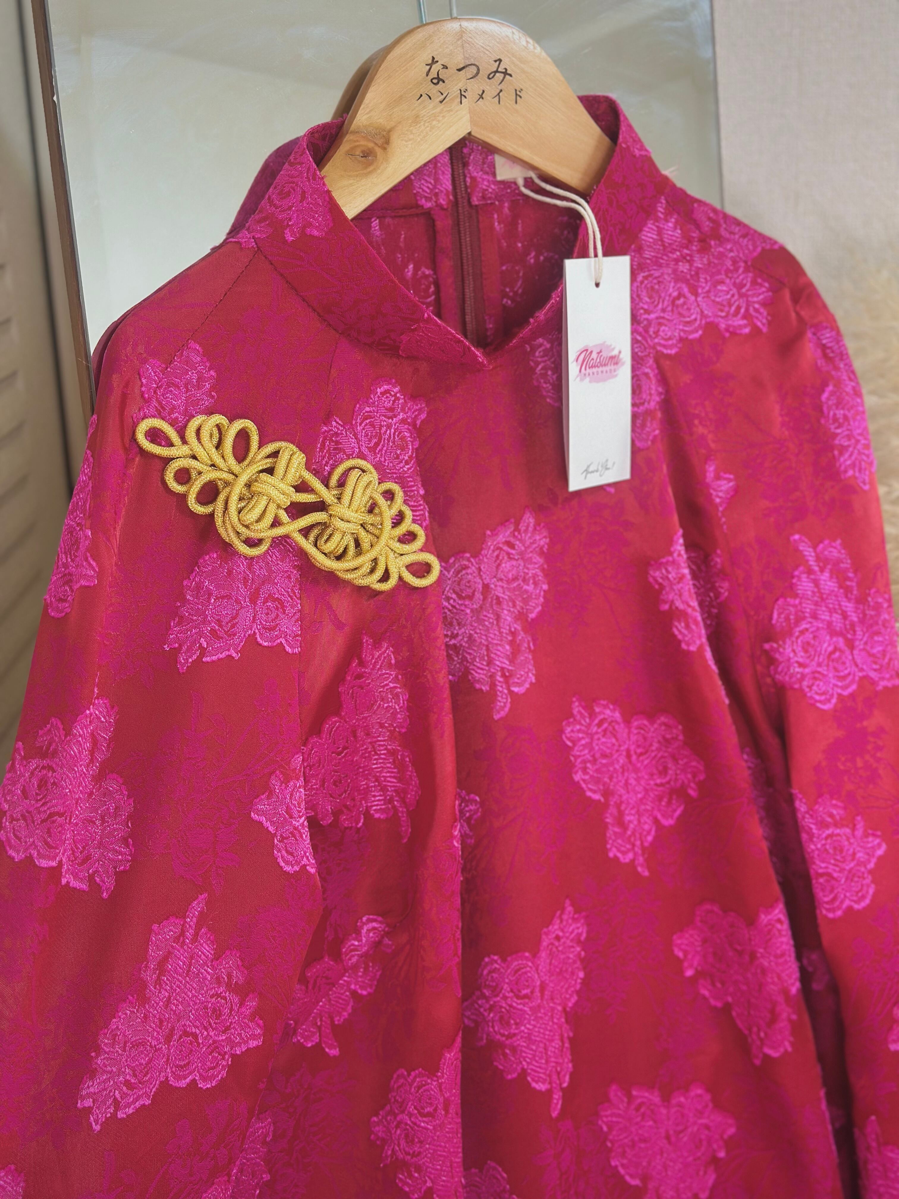 胸元には金色のチャイナボタンをあしらい、上品なアクセントを加えました。