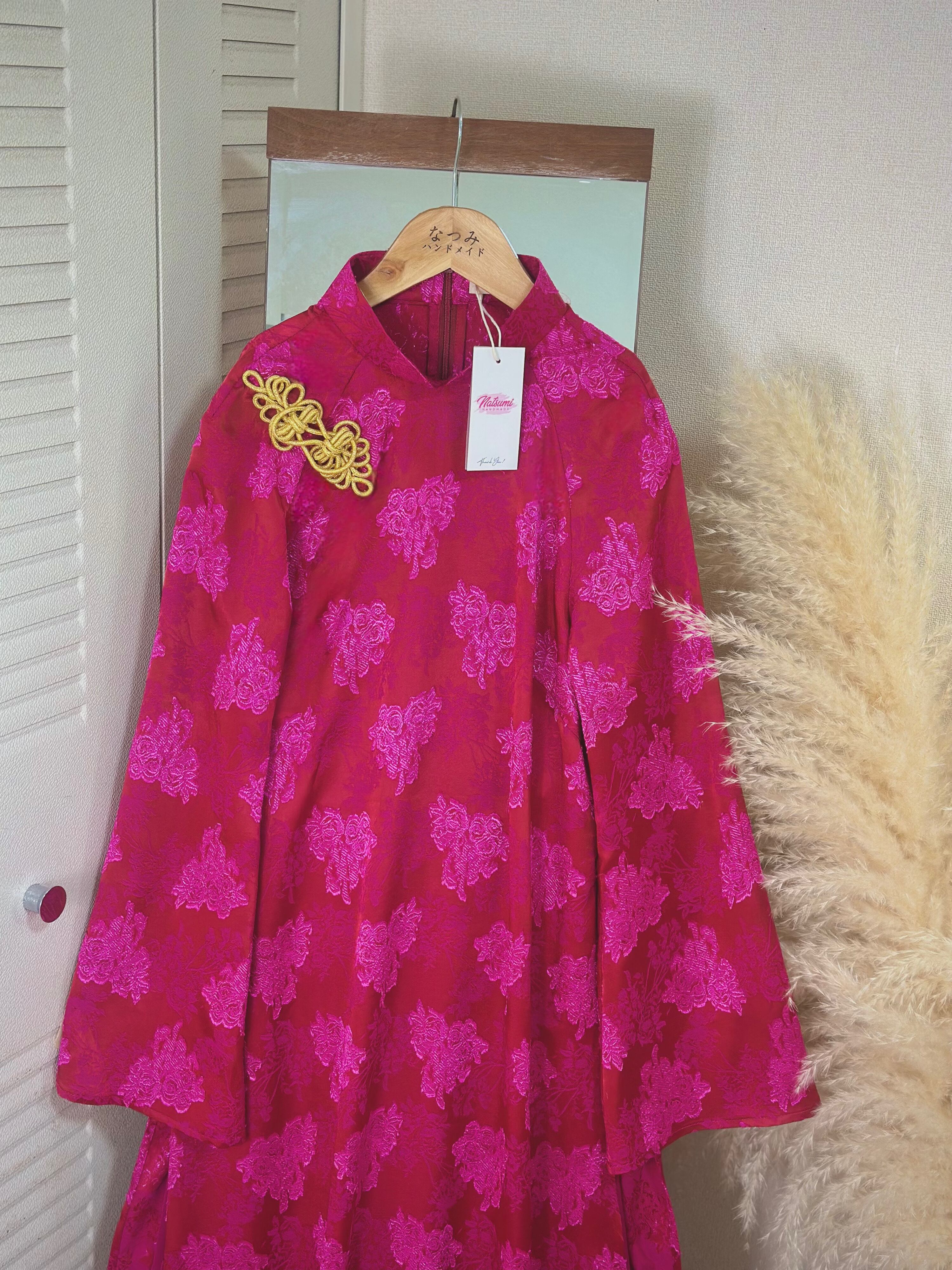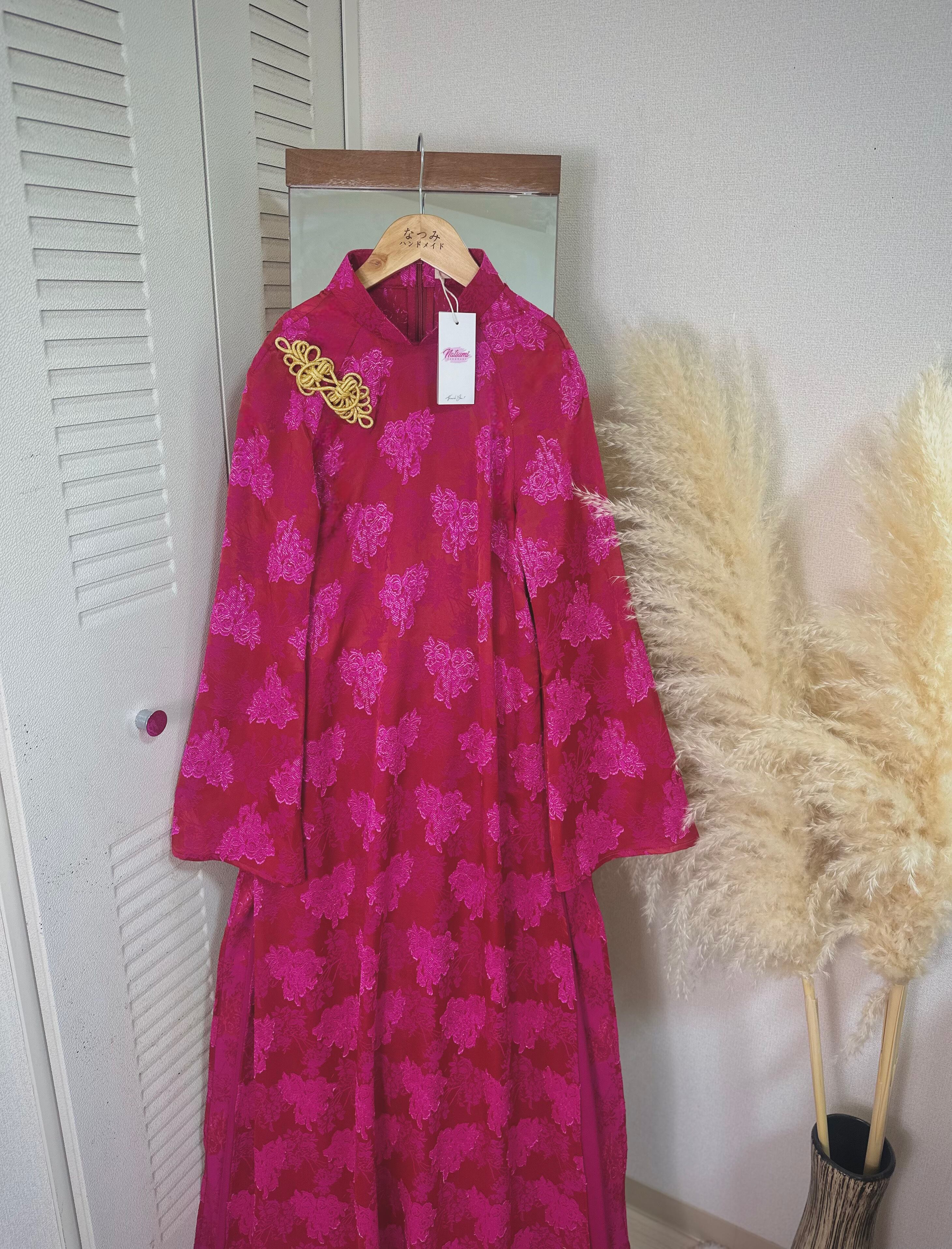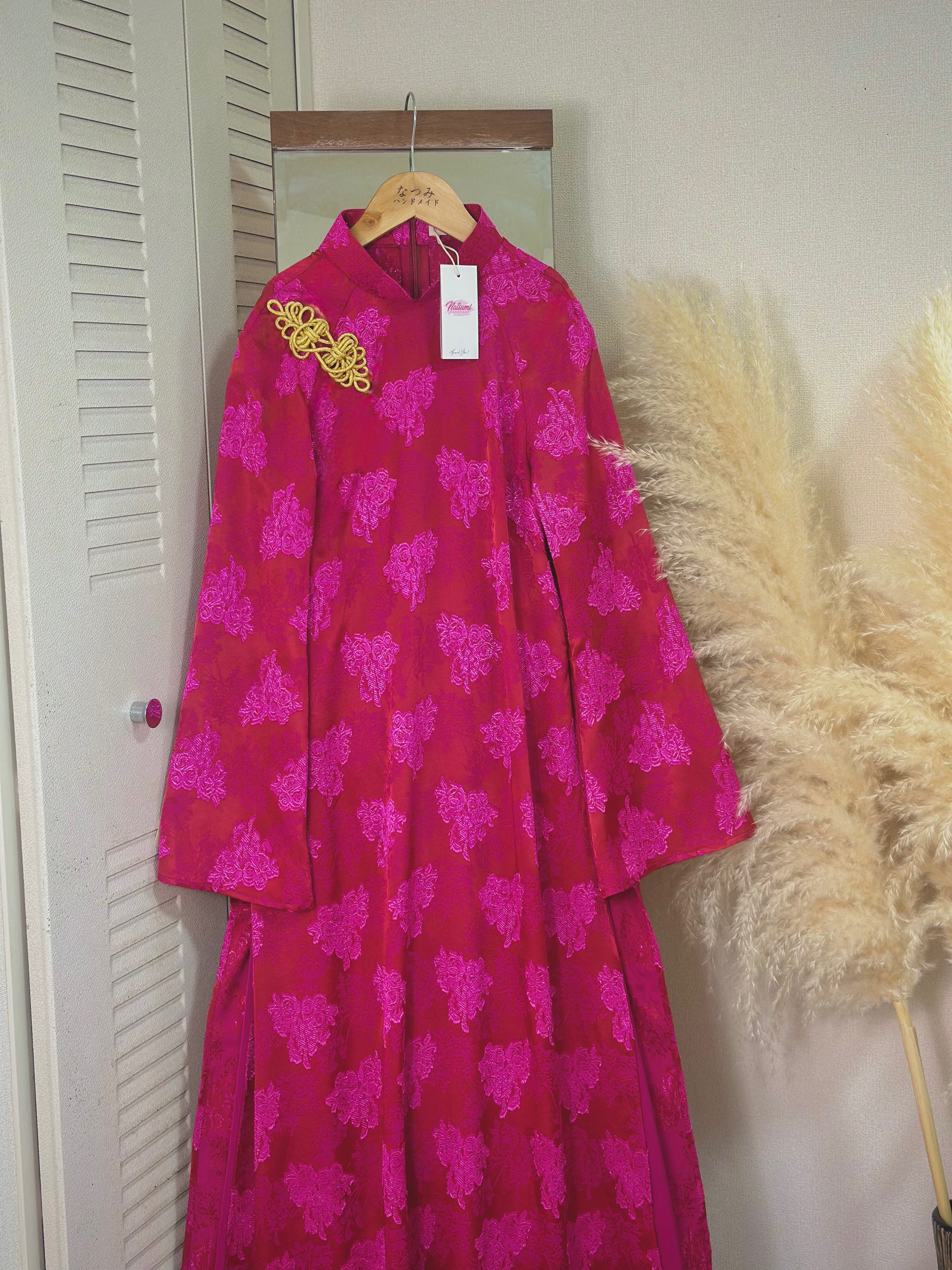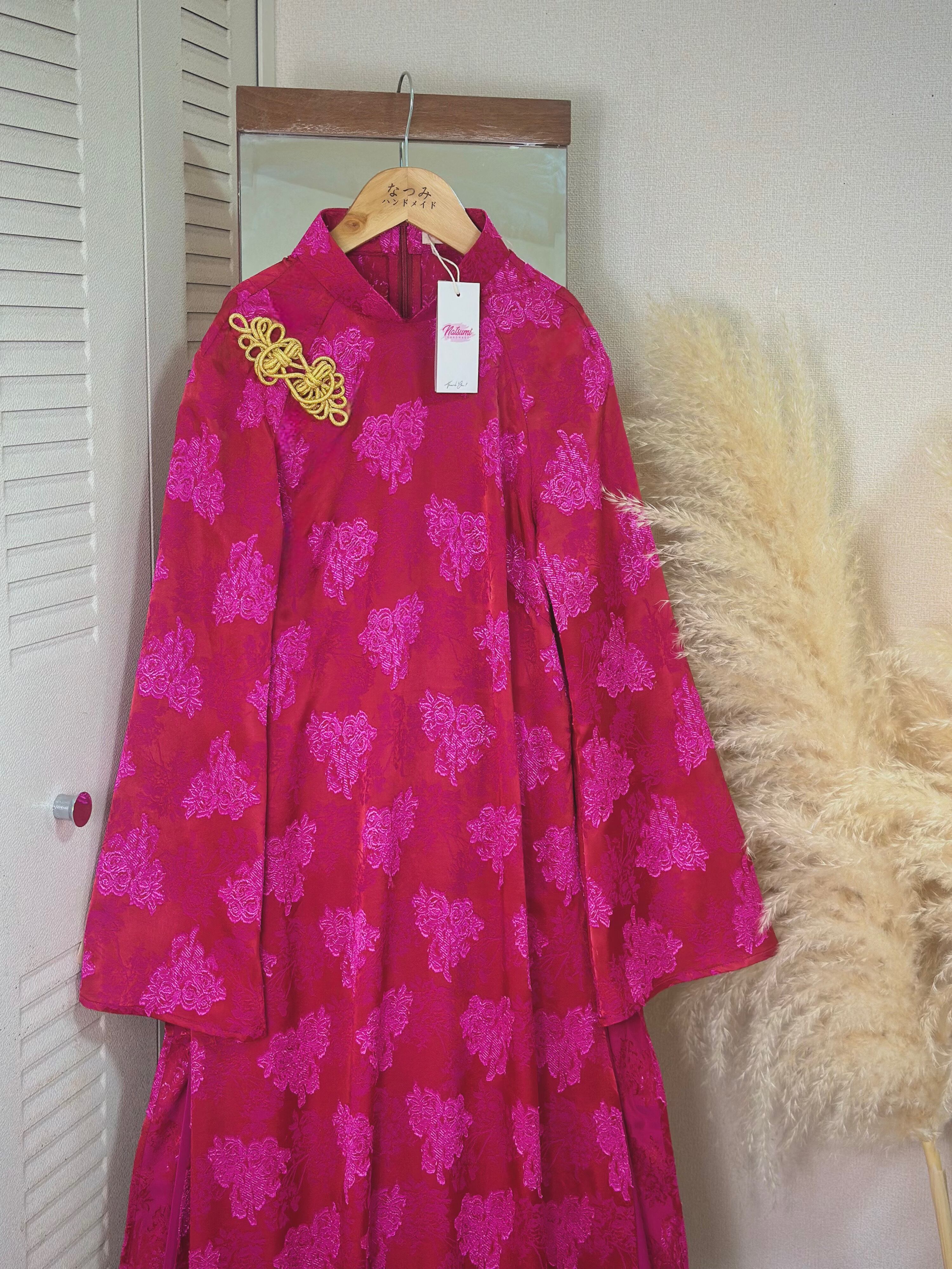 胸元には金色のチャイナボタンをあしらい、上品なアクセントを加えました。
