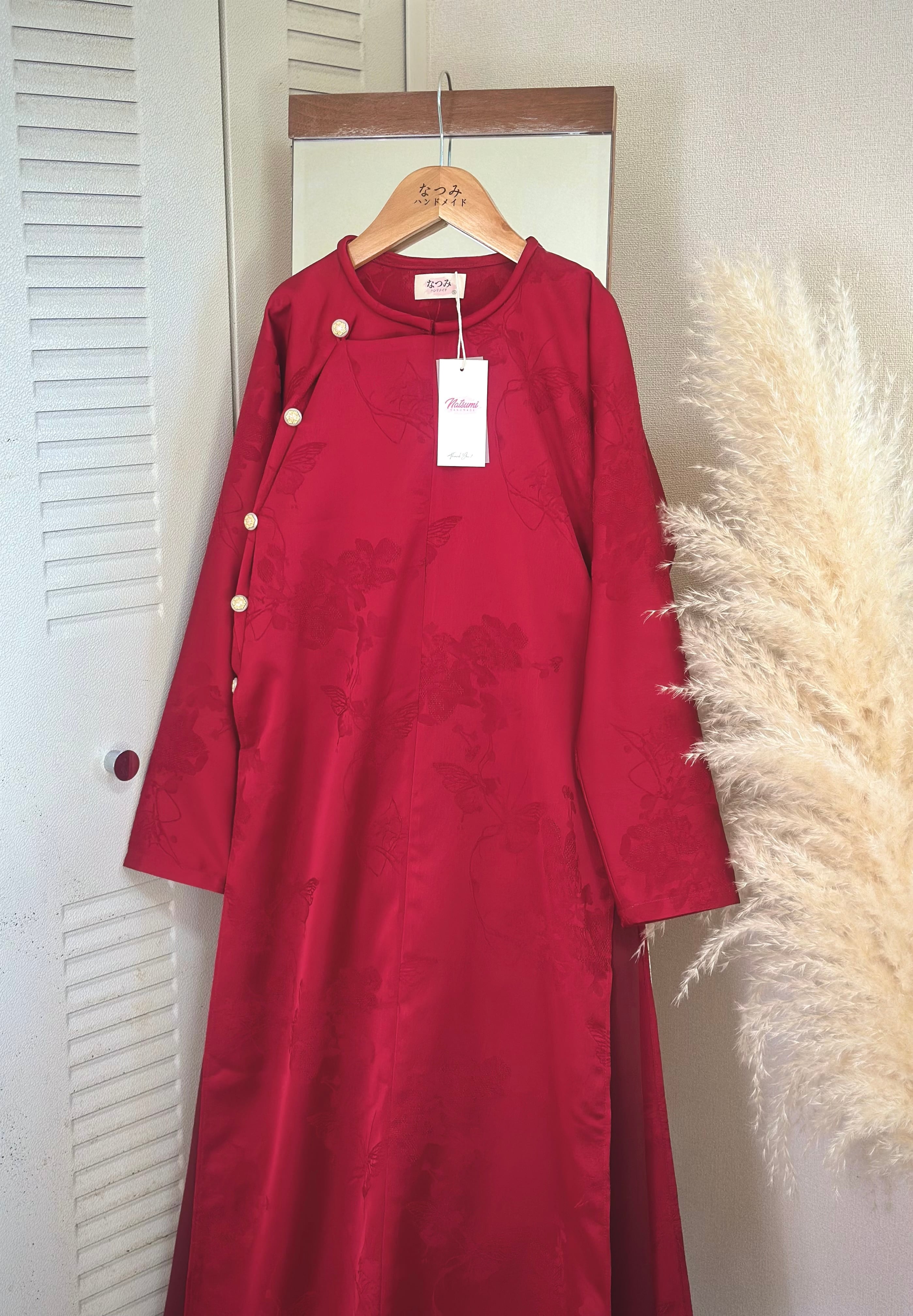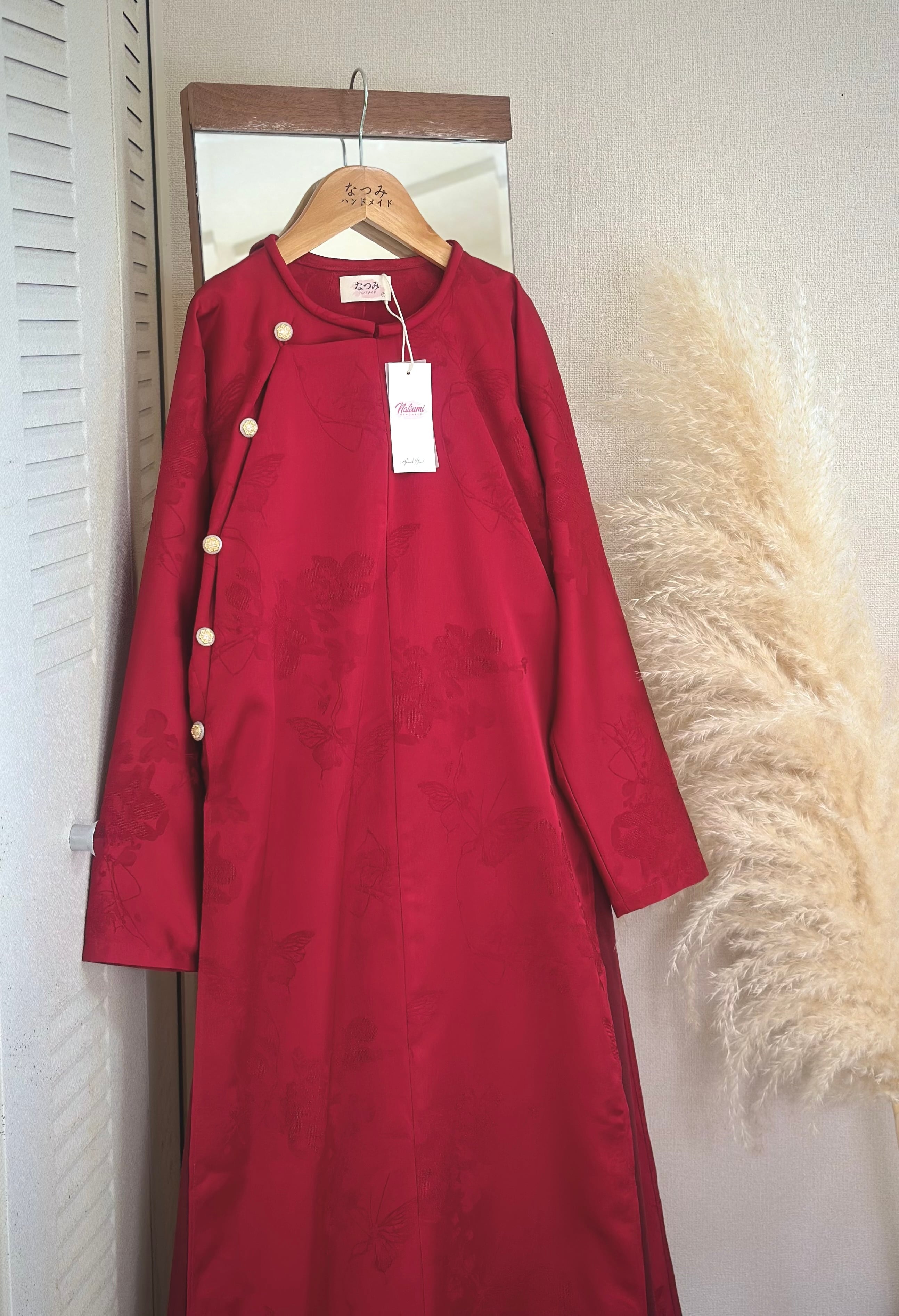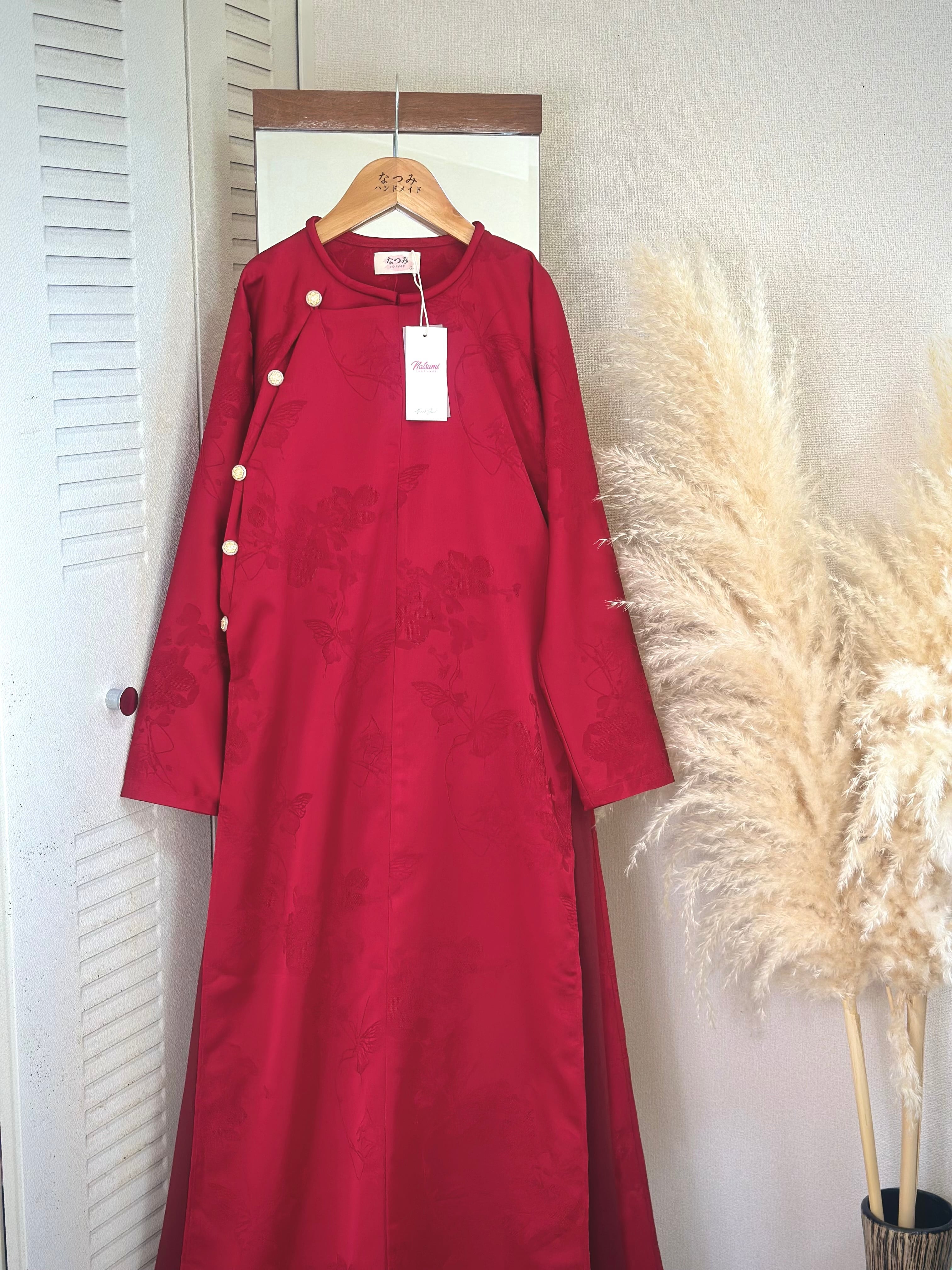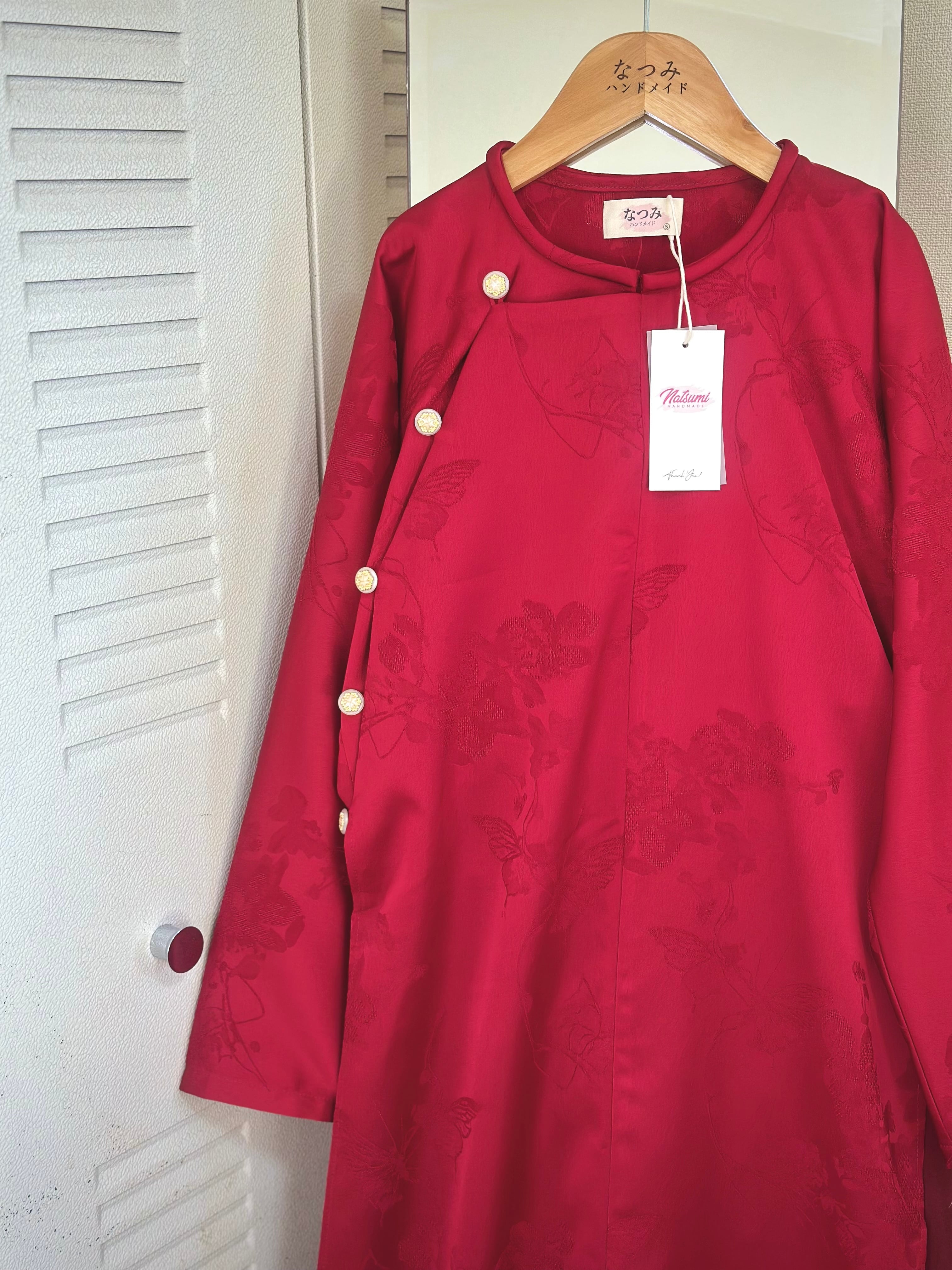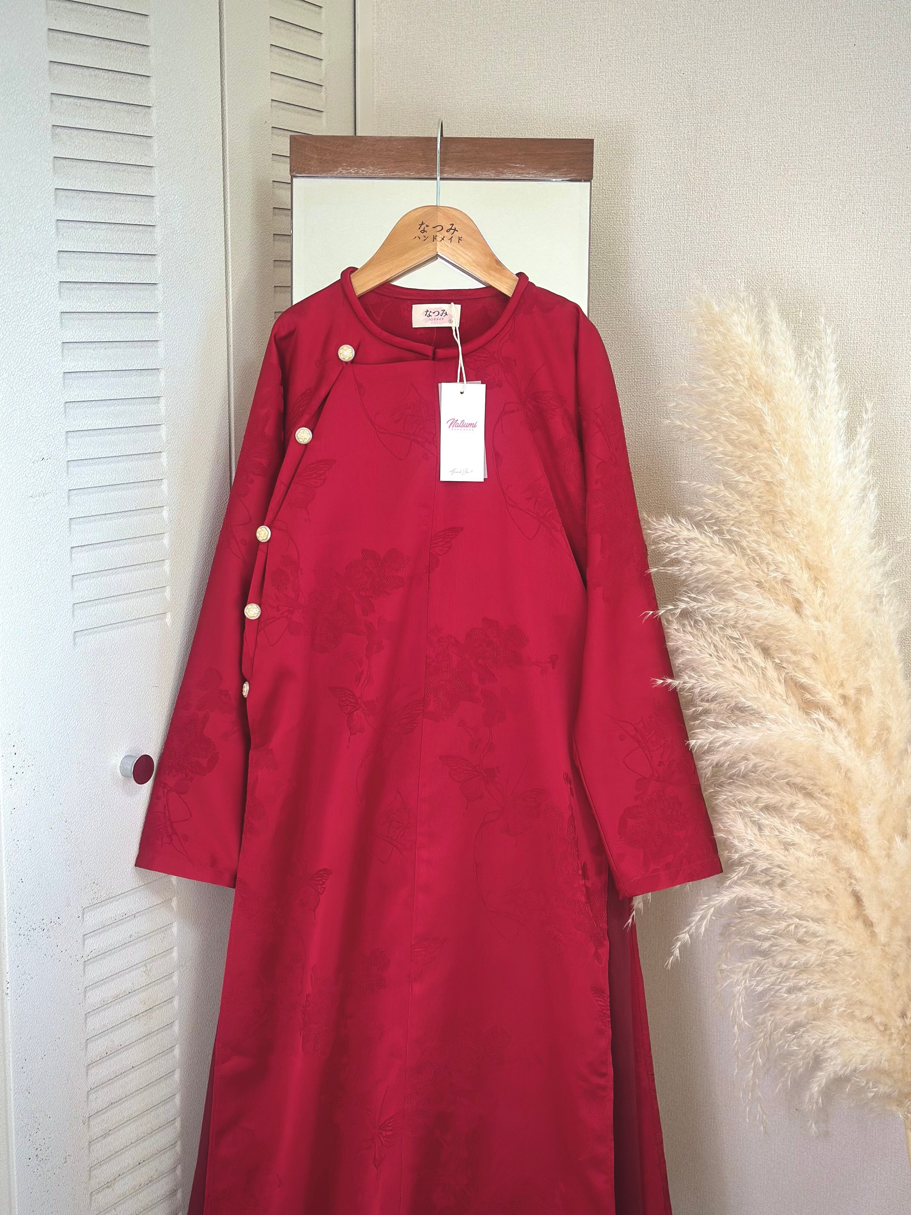 No.T2643|ハンドメイド レディースアオザイ(シルク・花と蝶の織り柄)