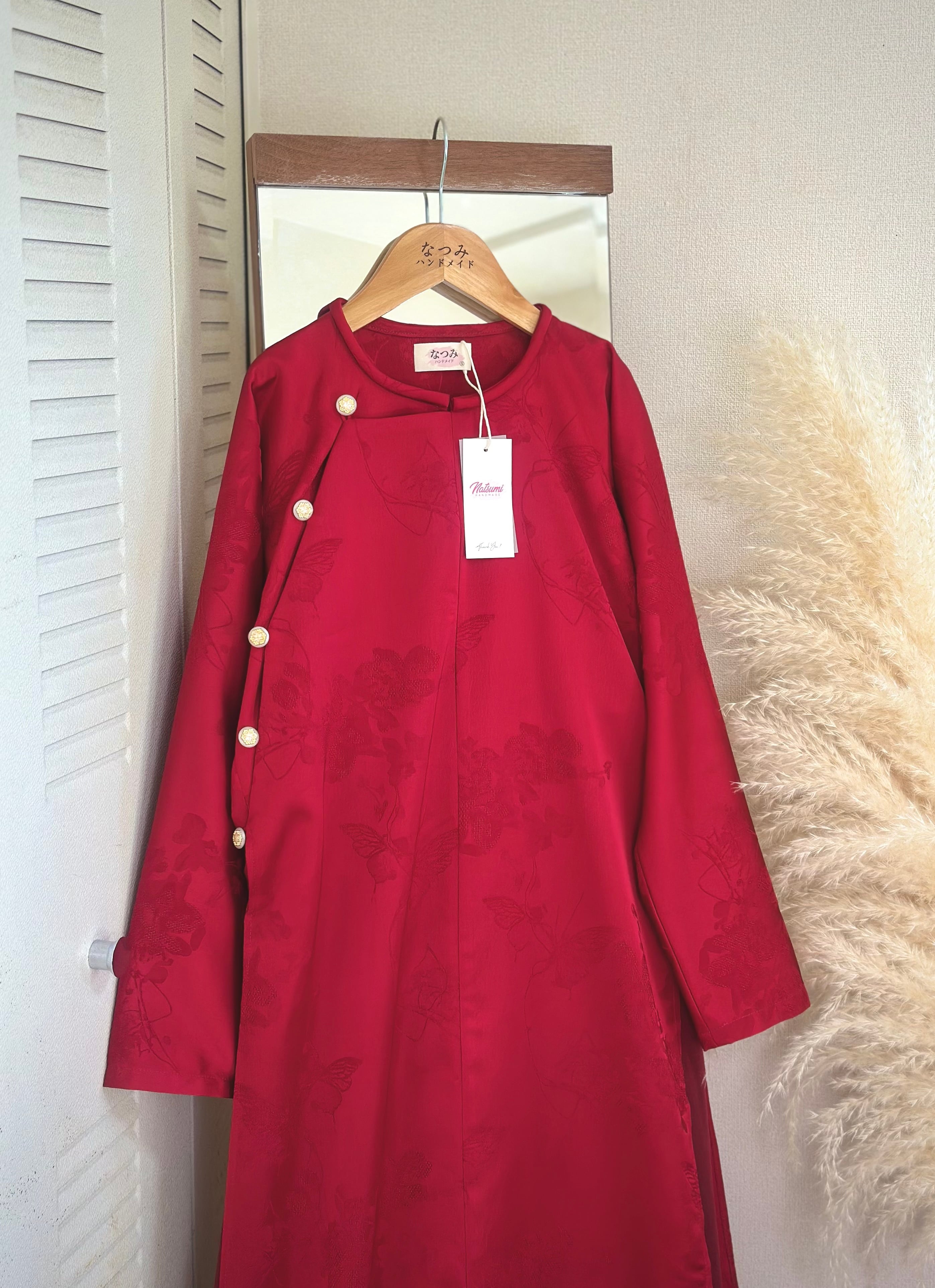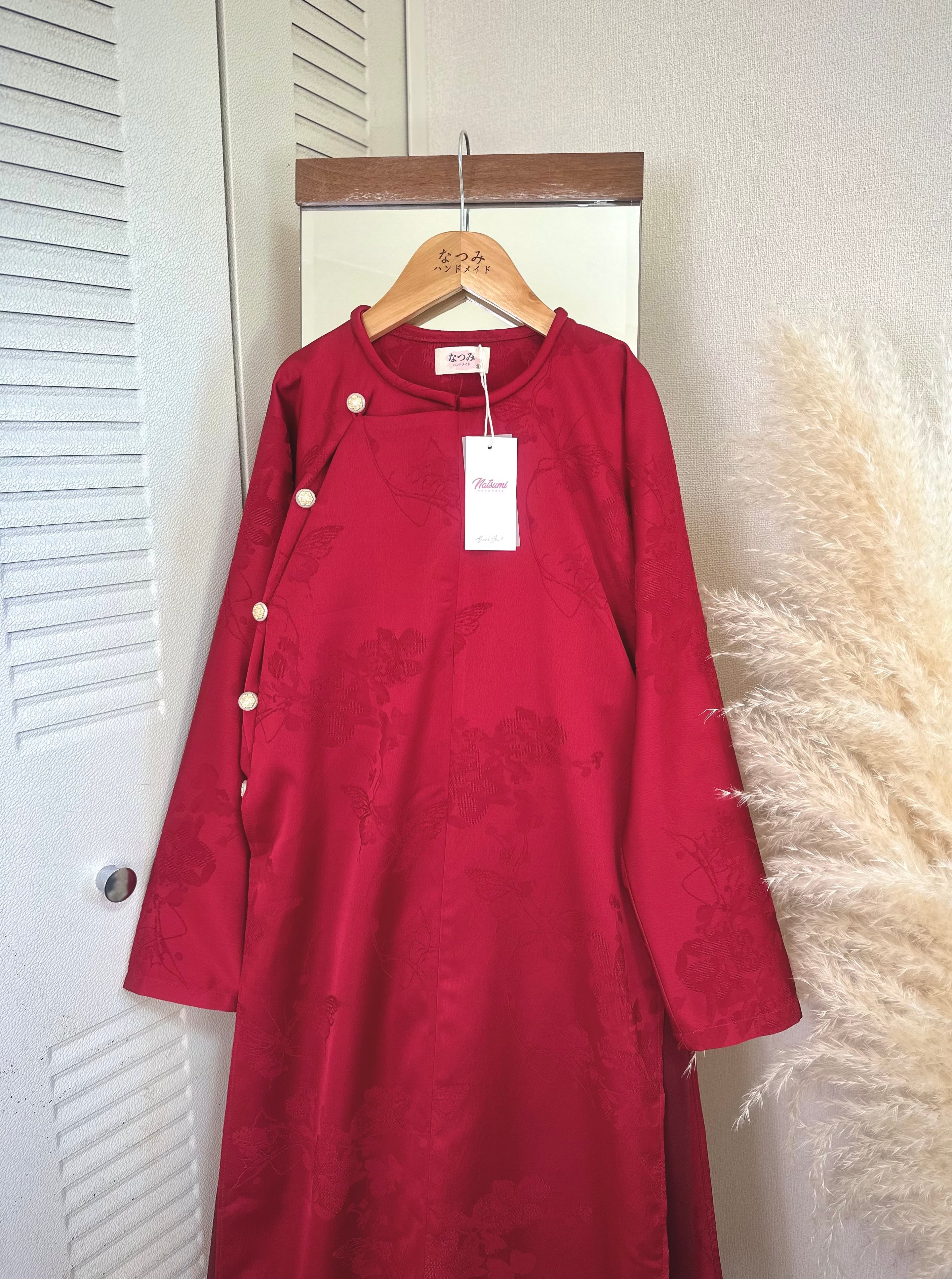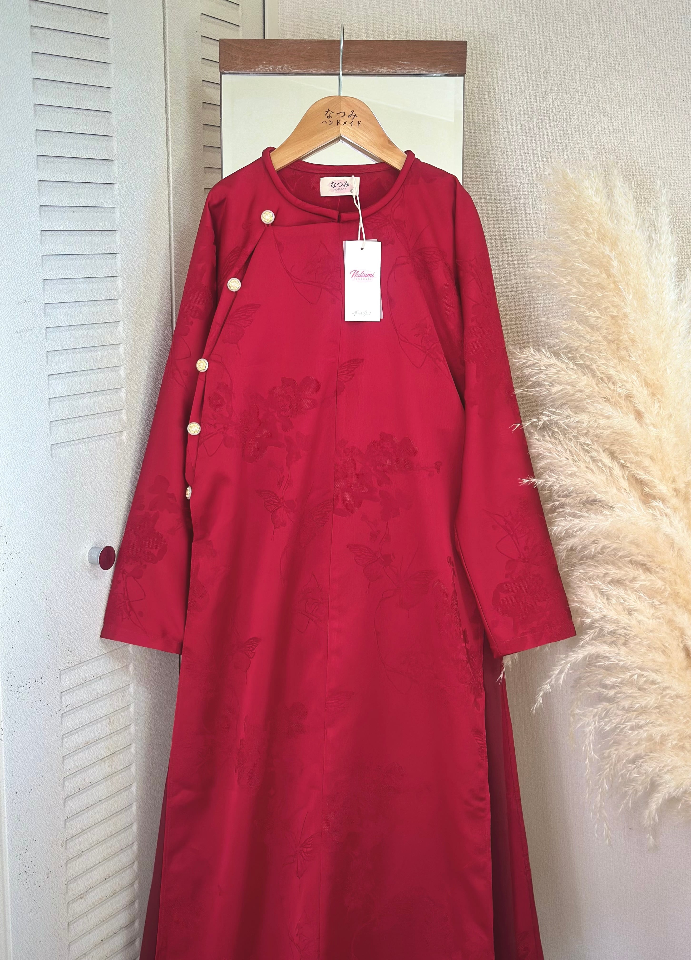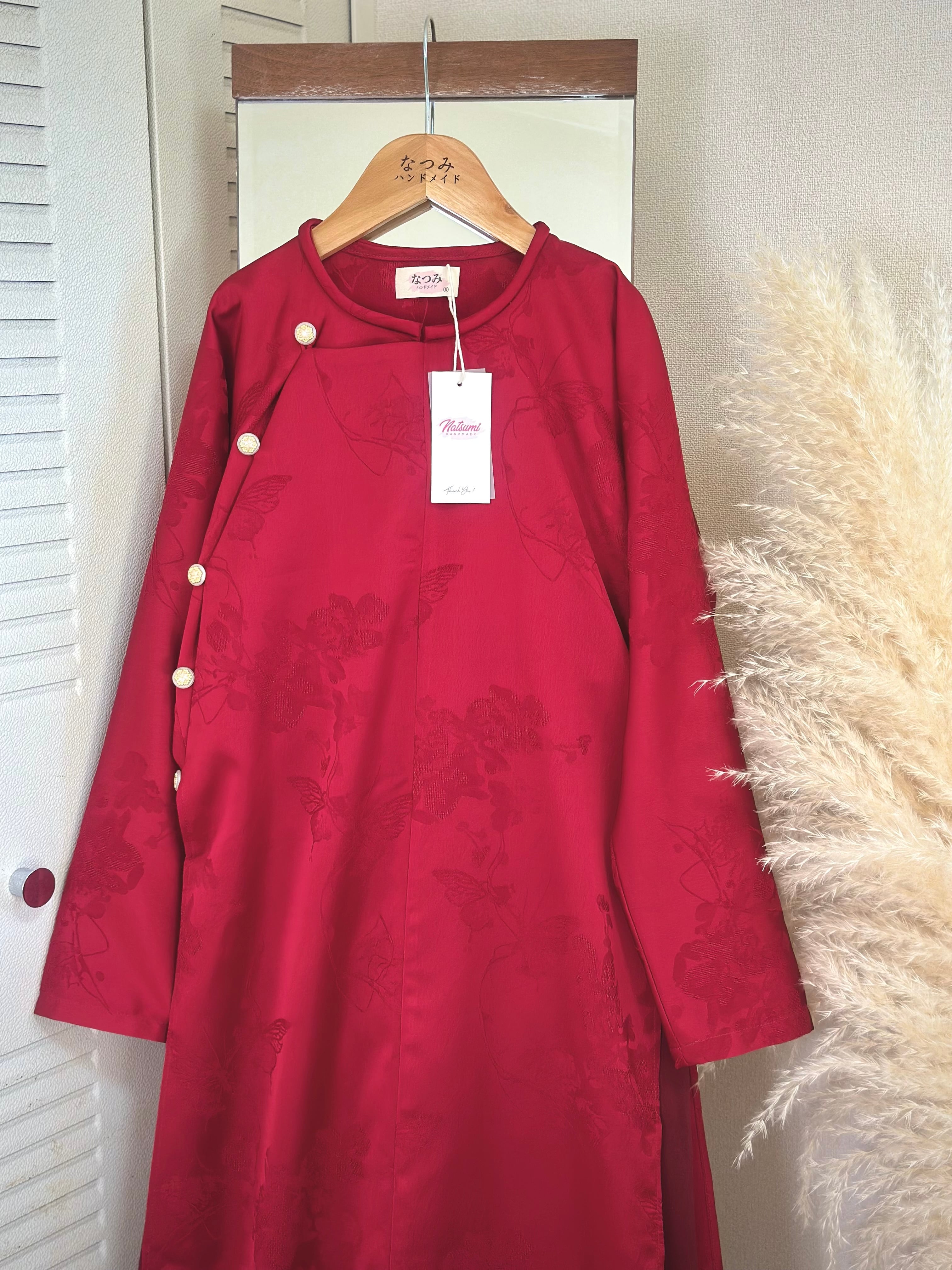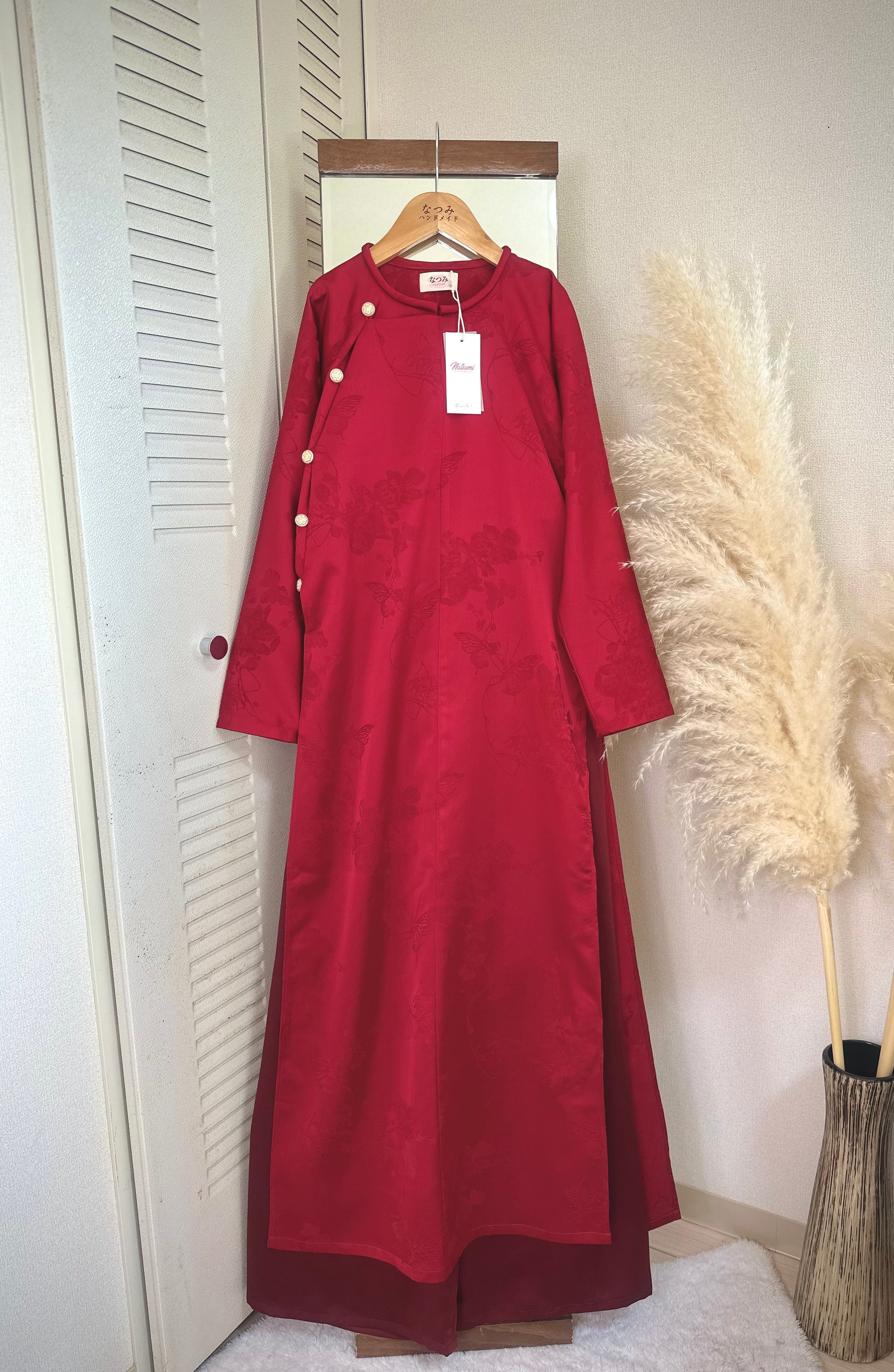 No.T2643|ハンドメイド レディースアオザイ(シルク・花と蝶の織り柄)