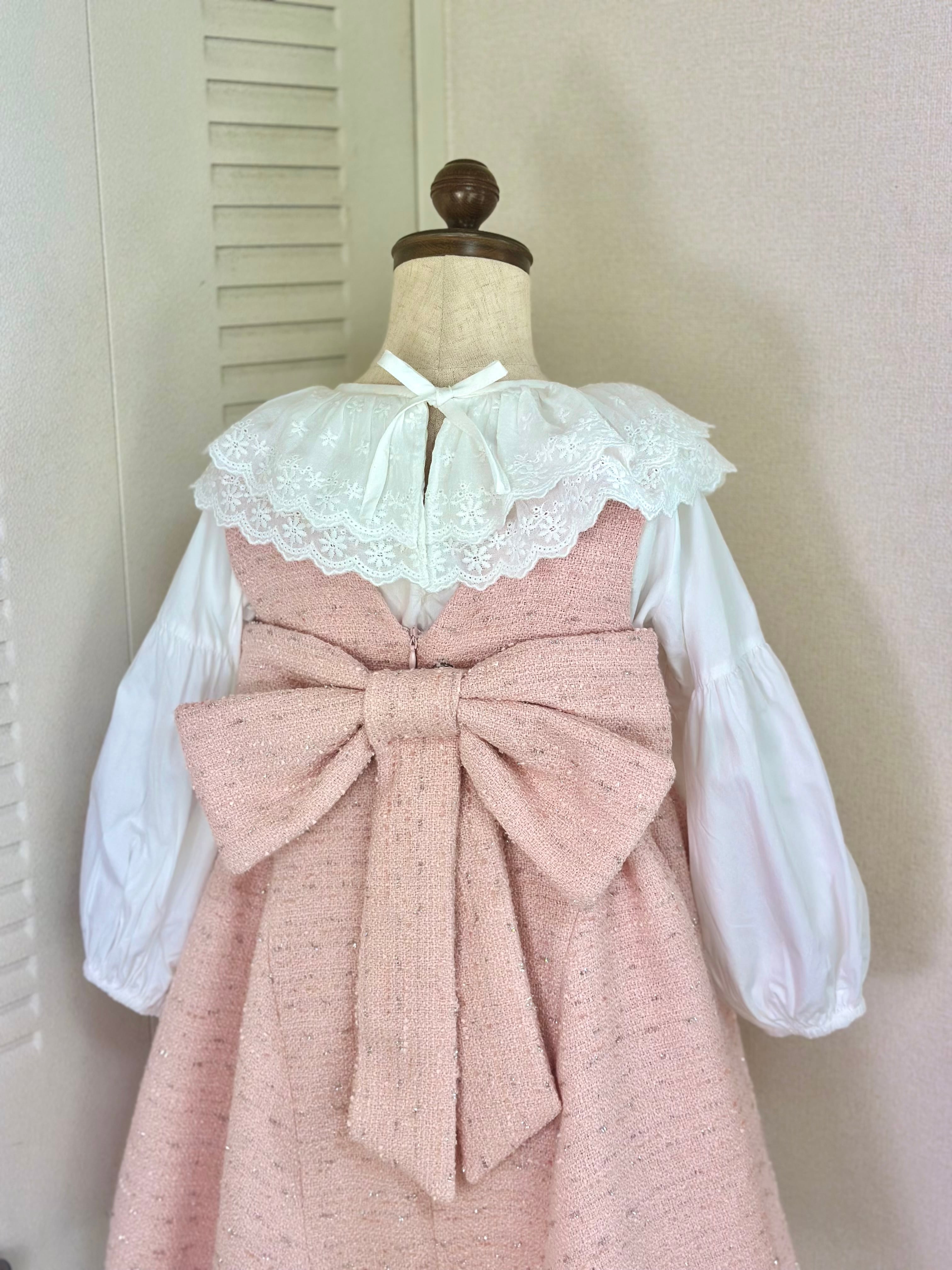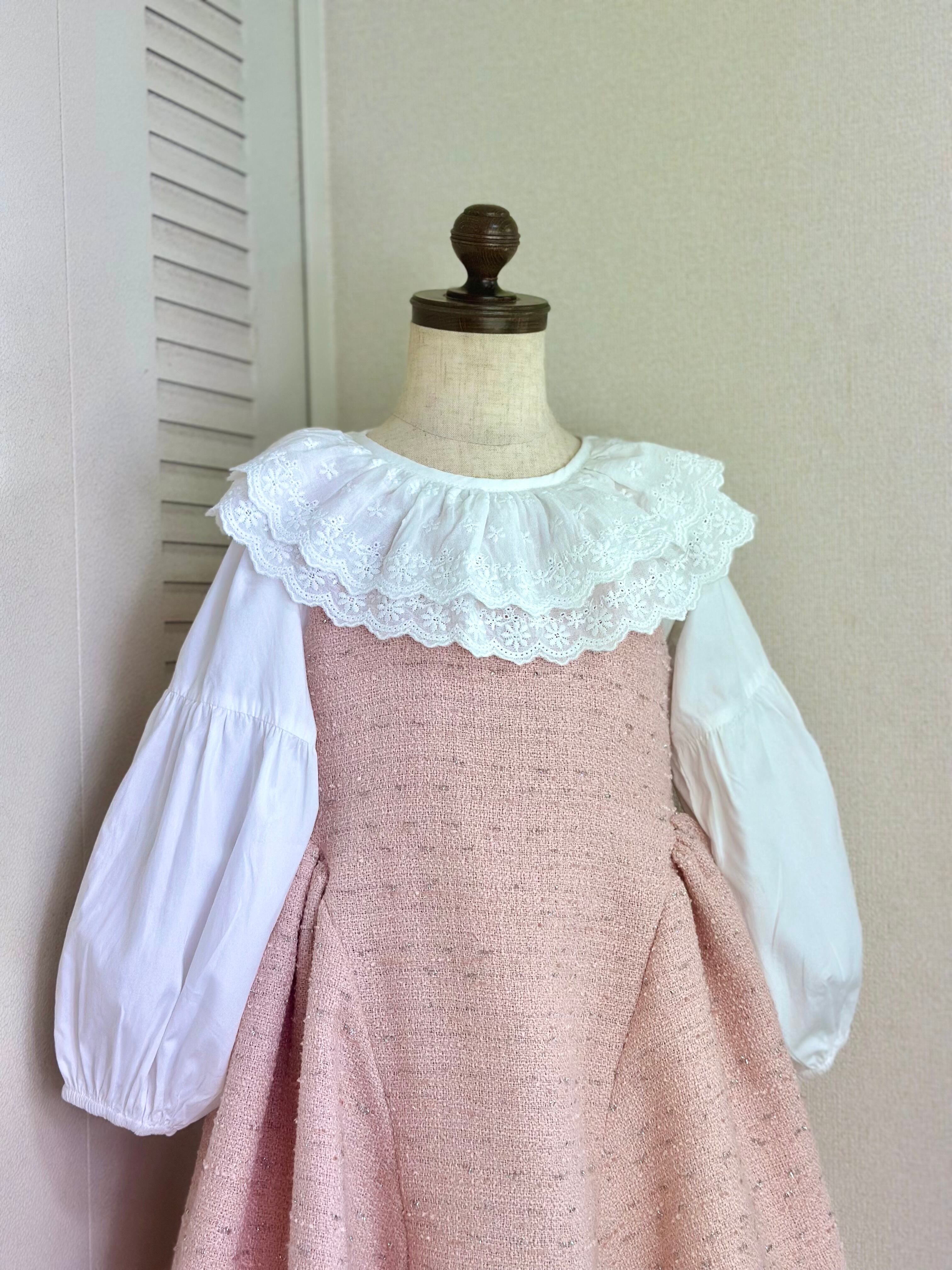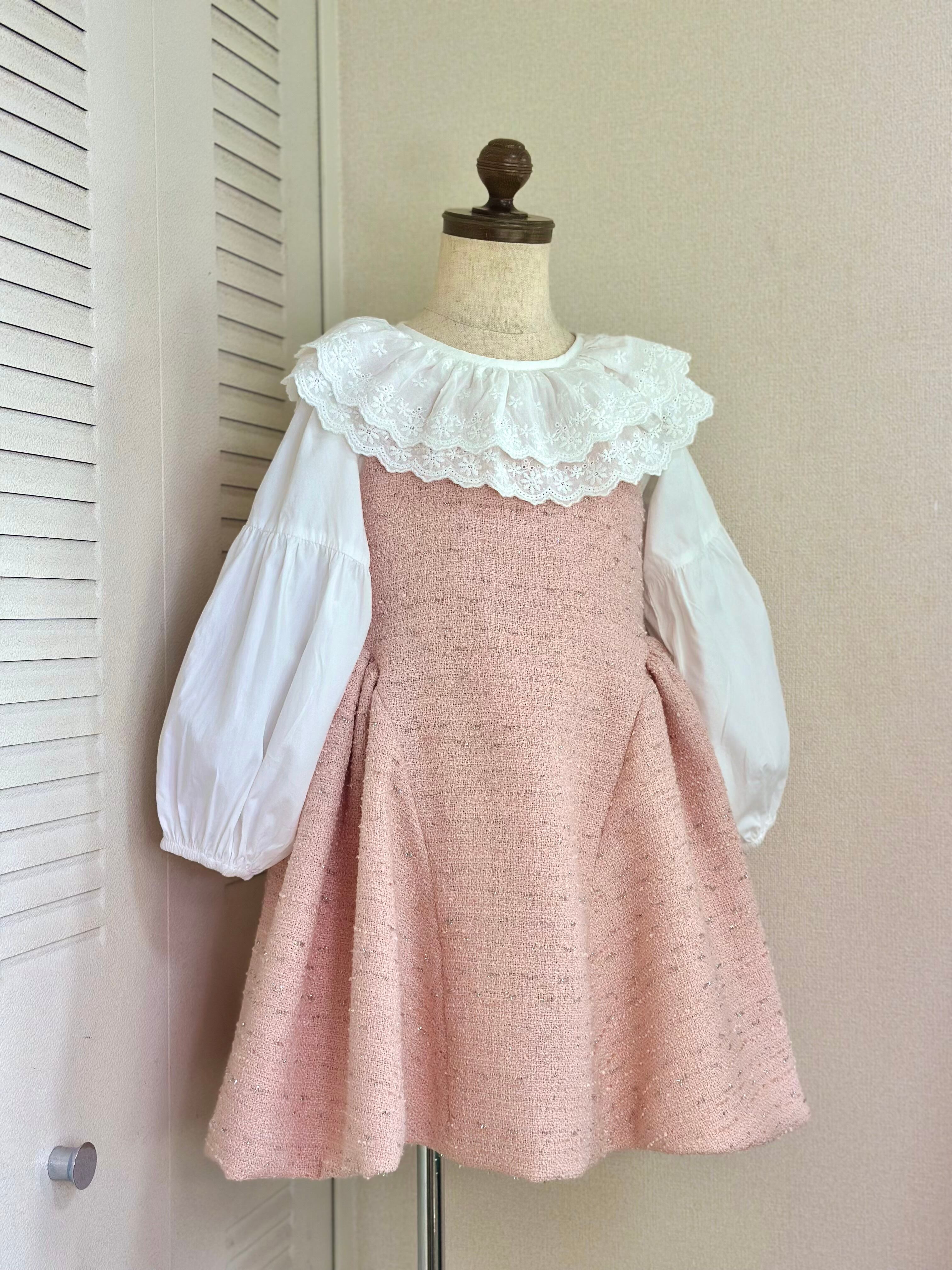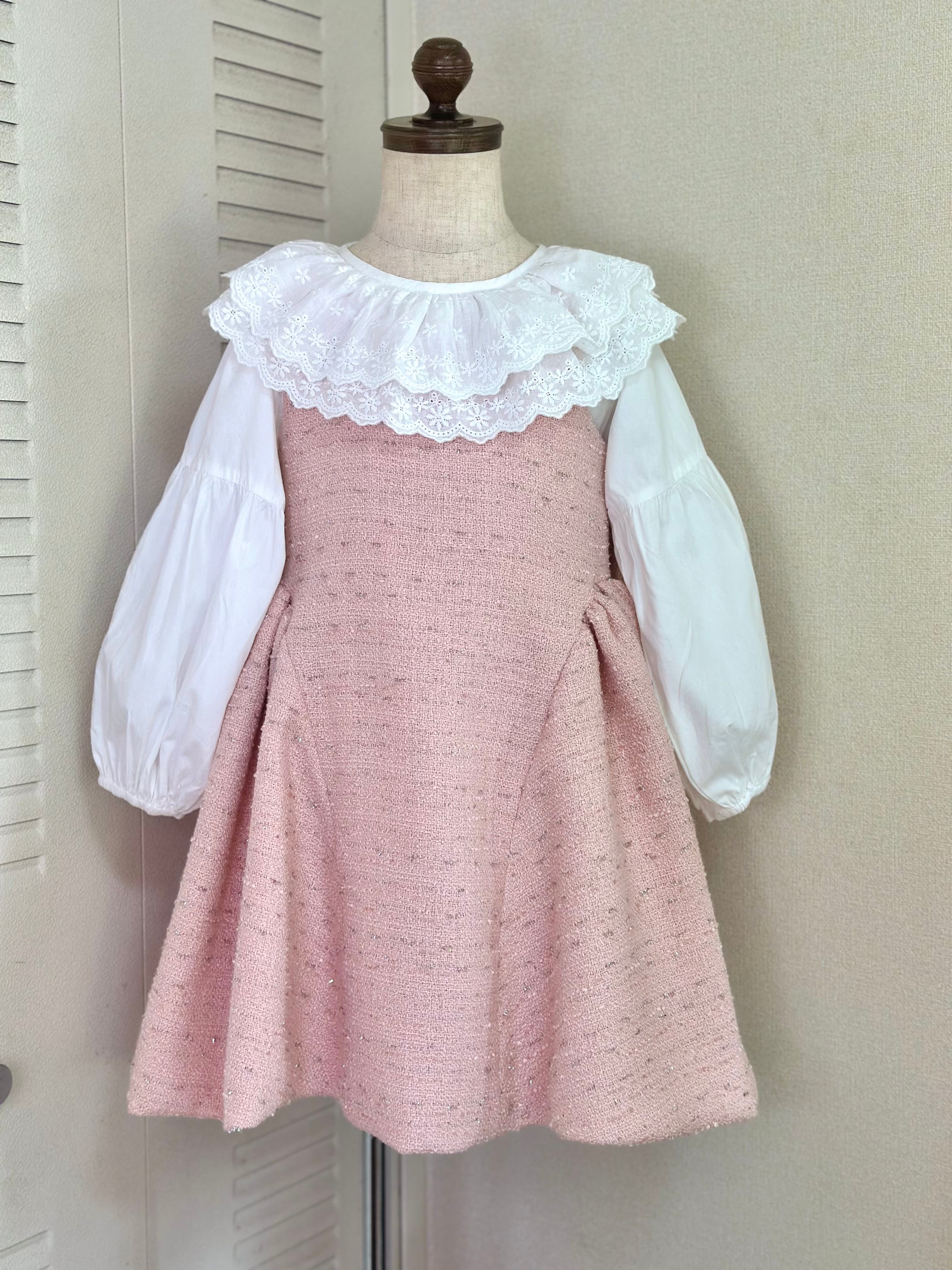 No.X2604|ハンドメイド 女の子用ツイードワンピースxレース襟ブラウス
