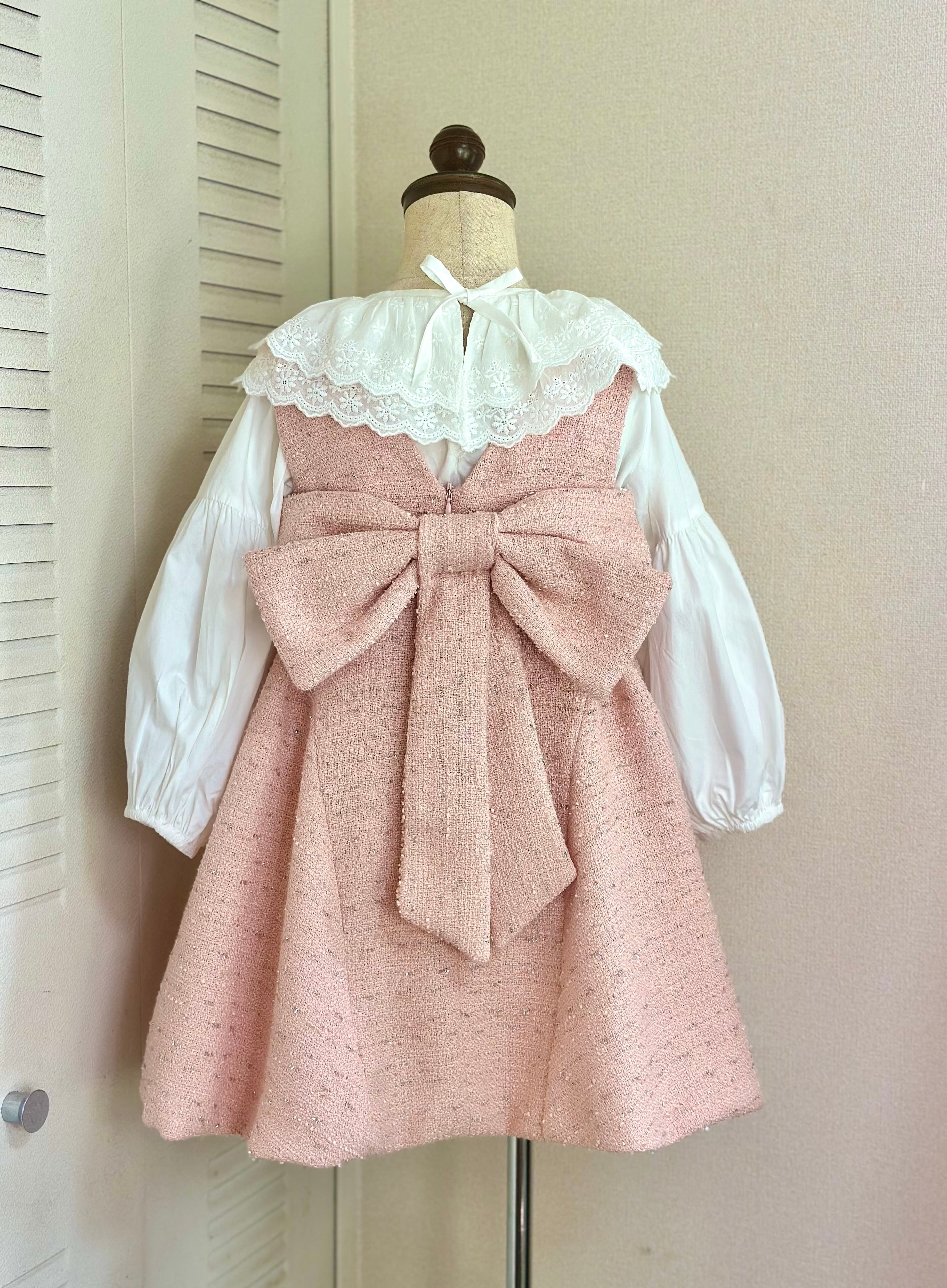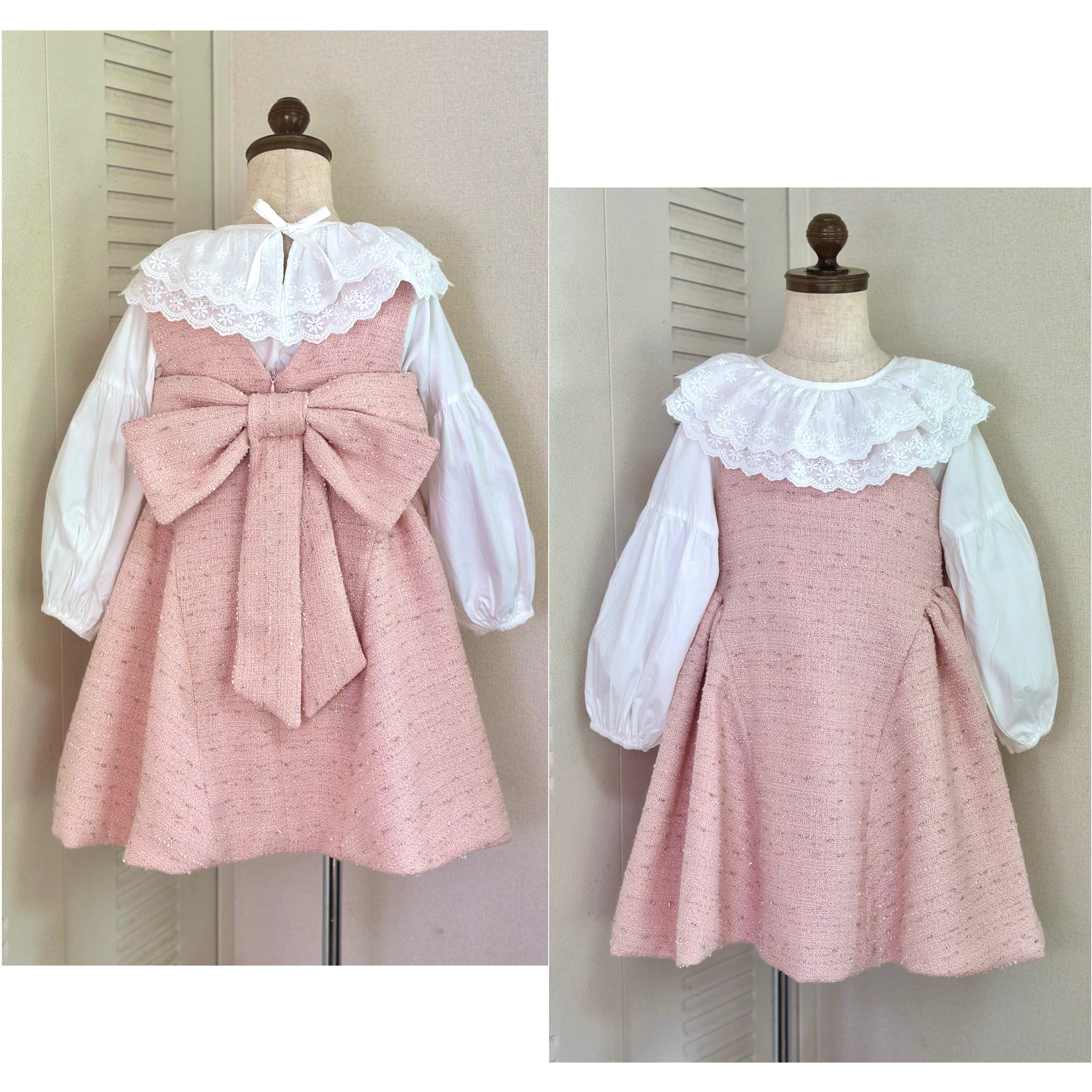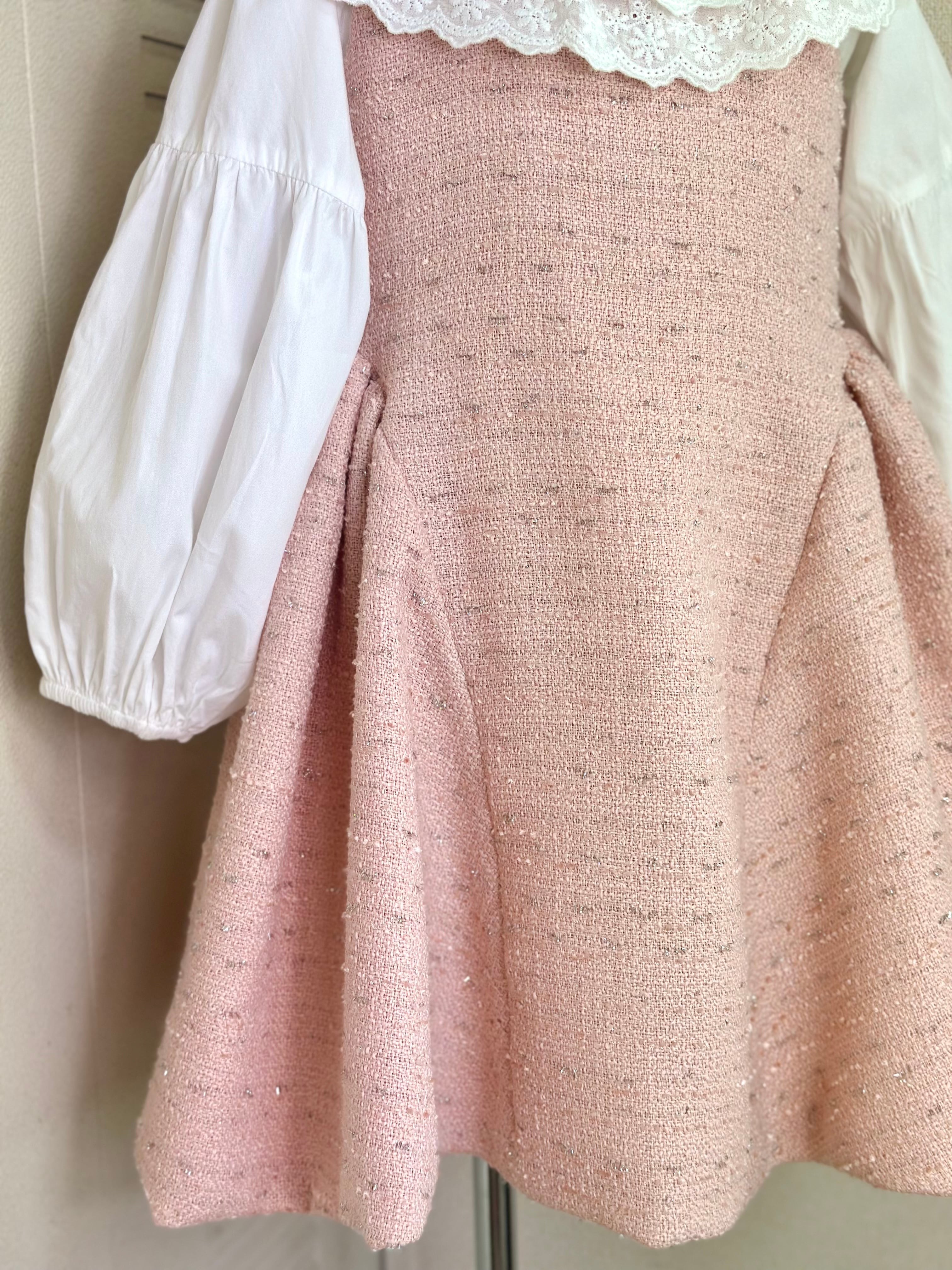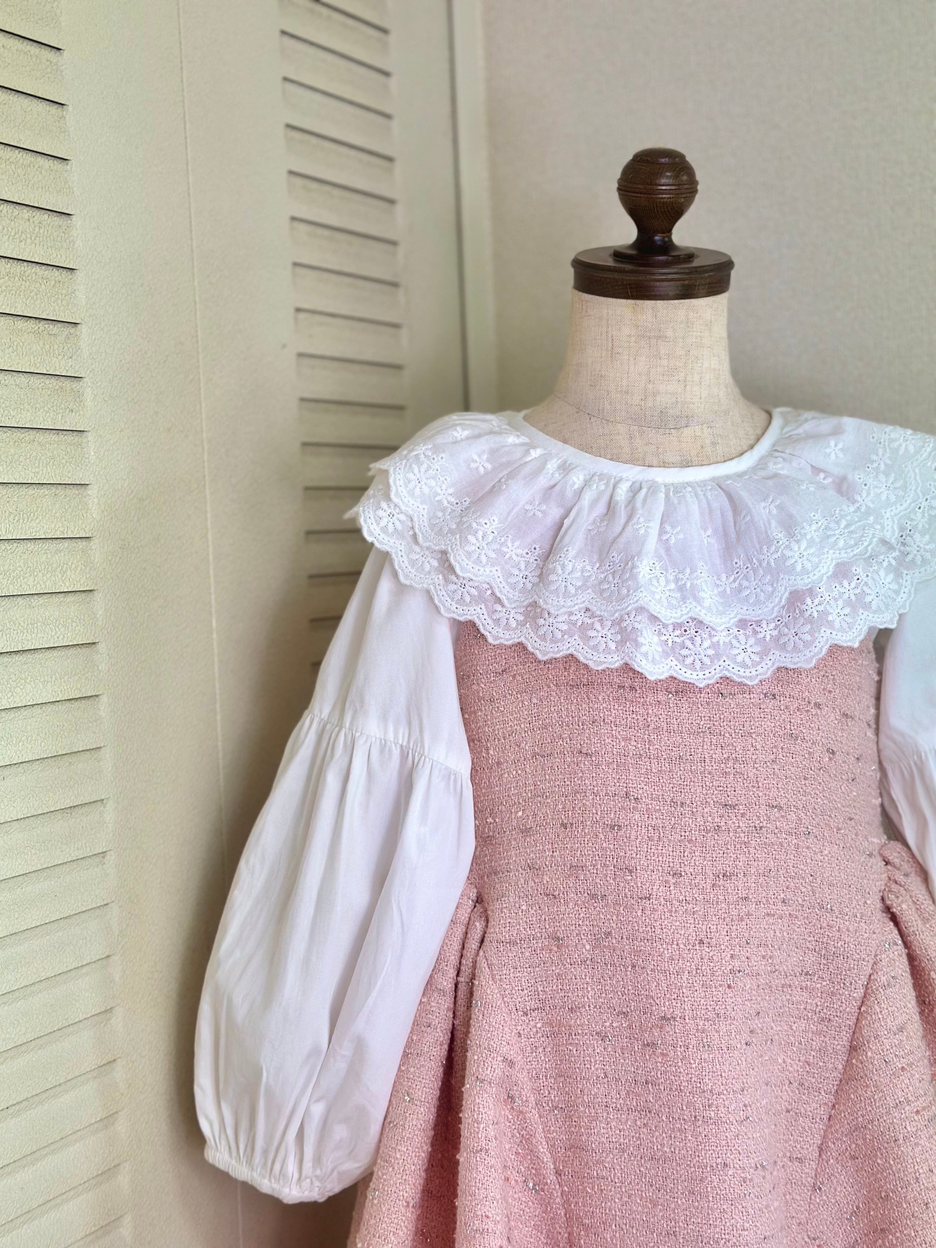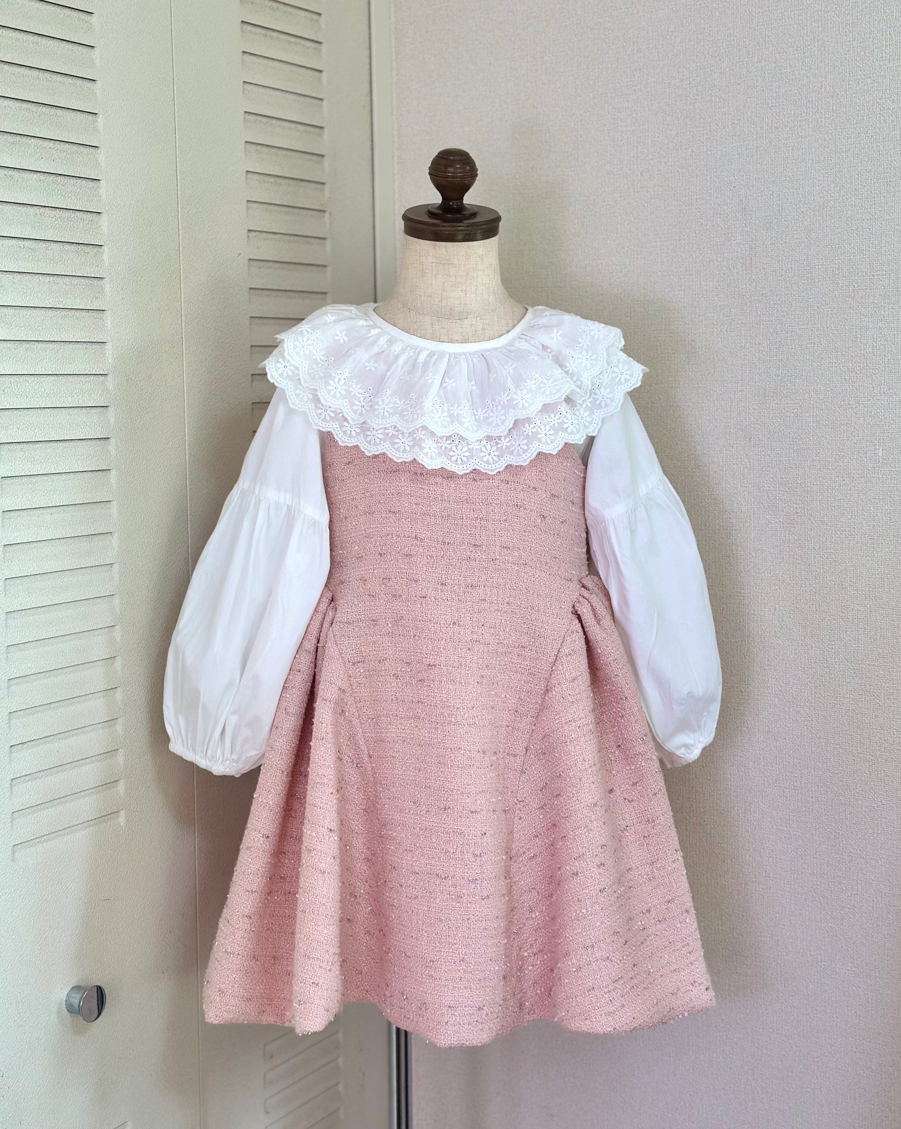 No.X2604|ハンドメイド 女の子用ツイードワンピースxレース襟ブラウス