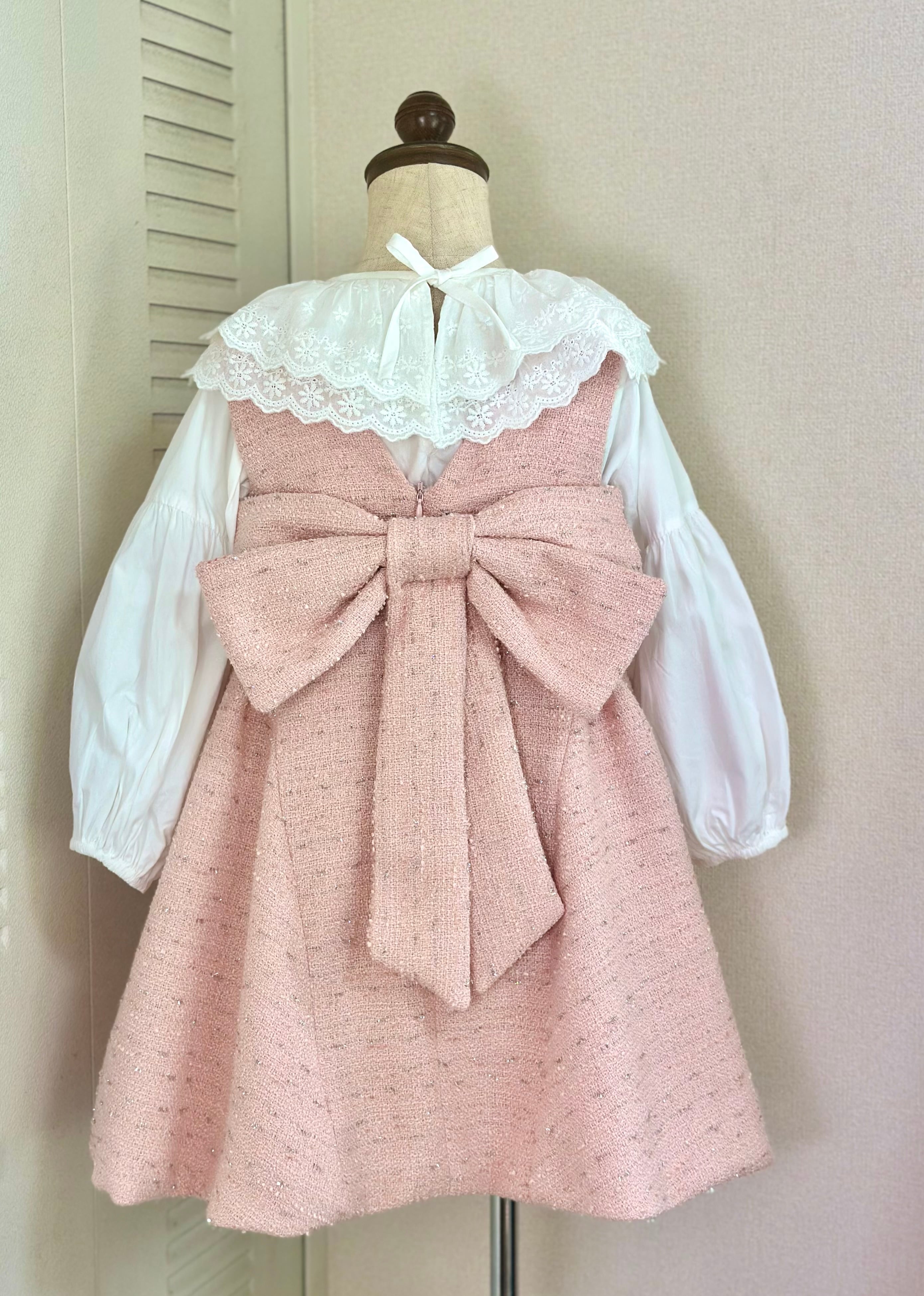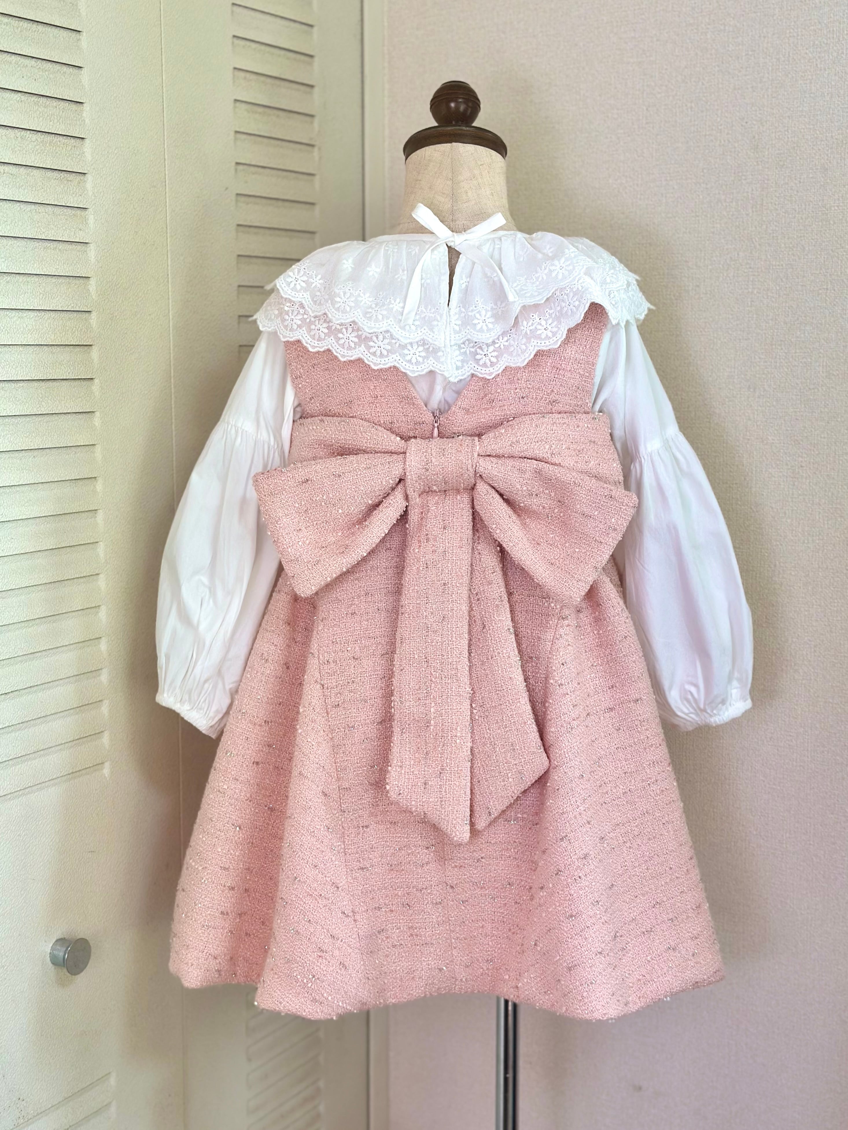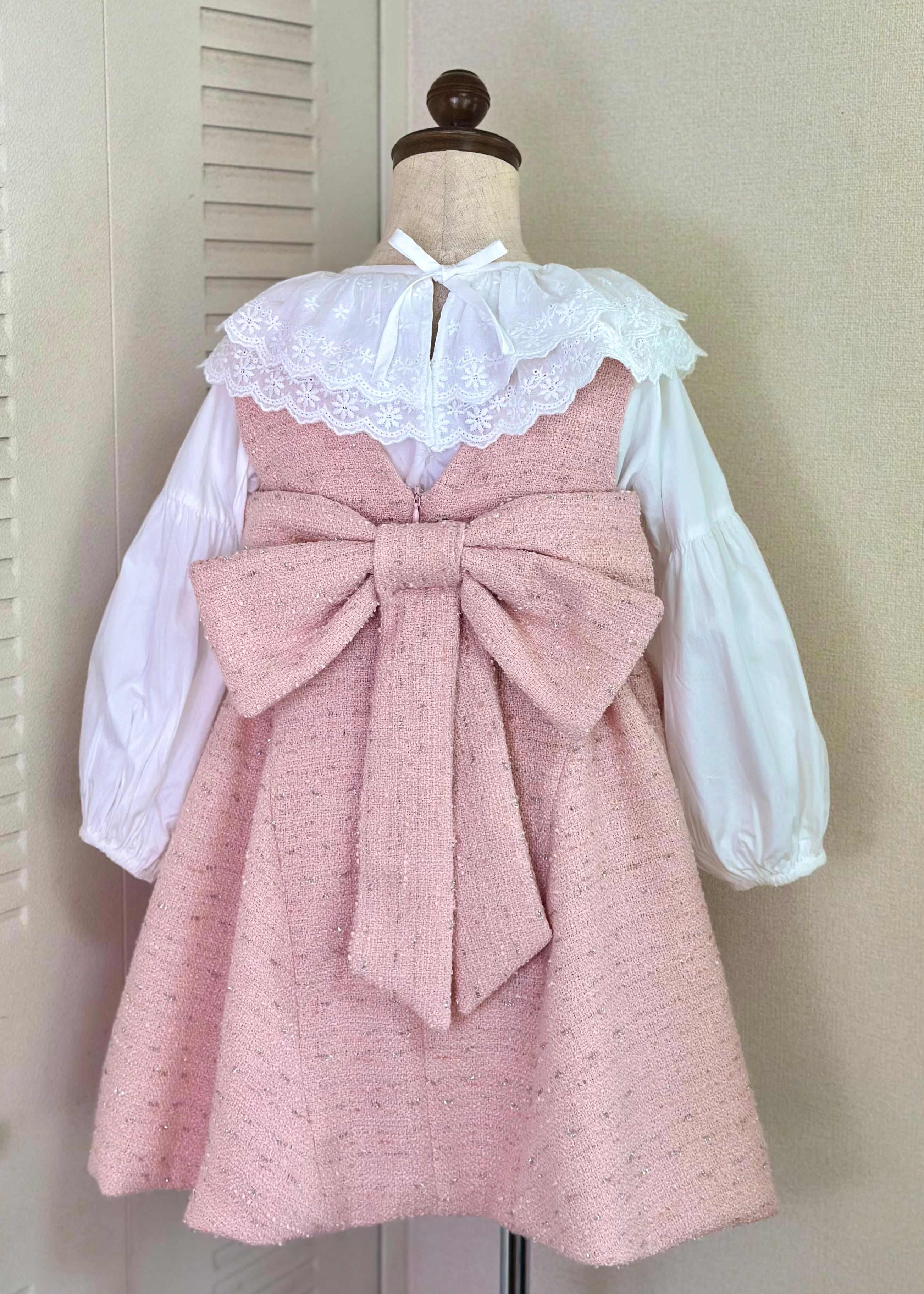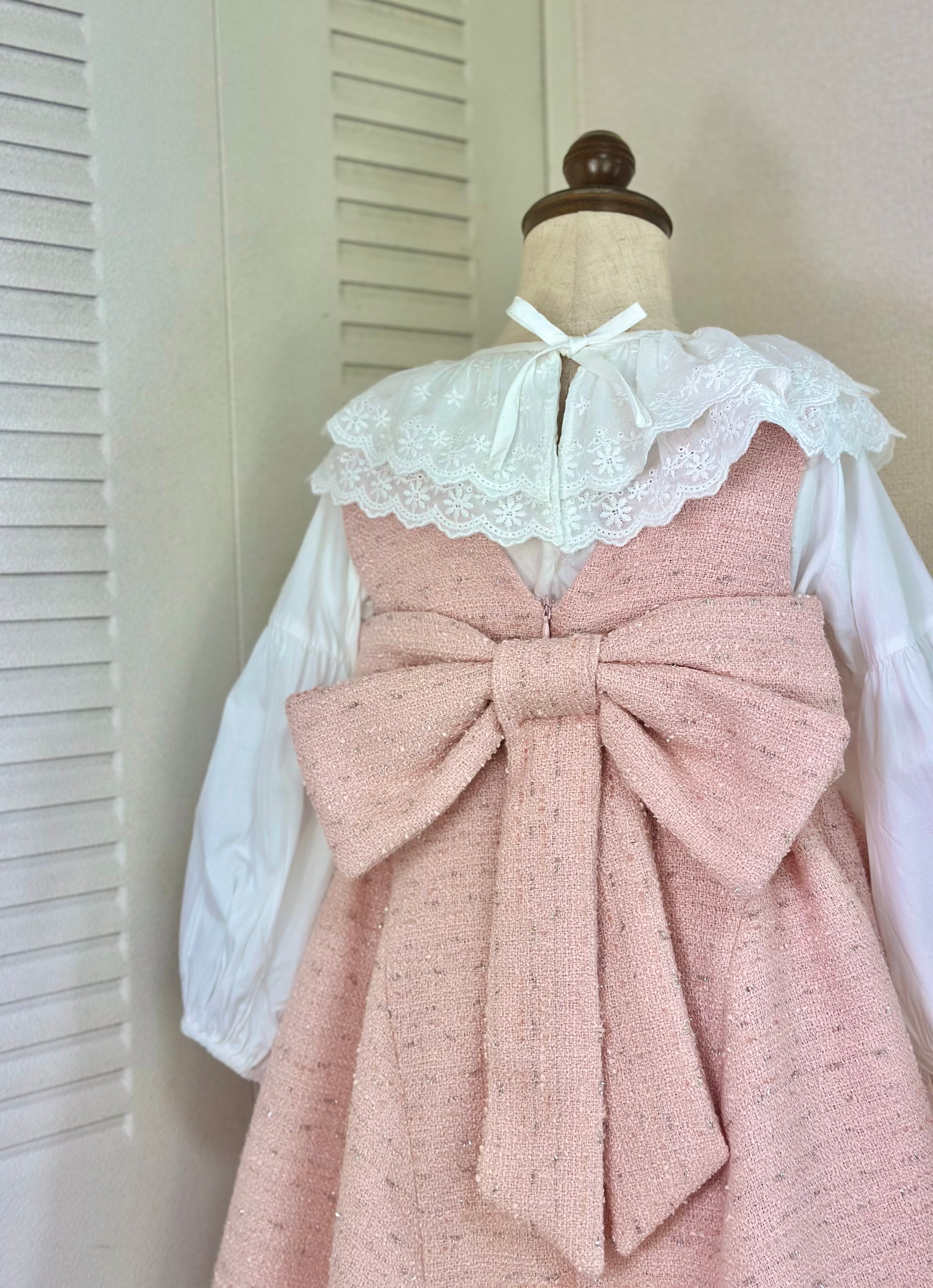No.X2604|ハンドメイド 女の子用ツイードワンピースxレース襟ブラウス