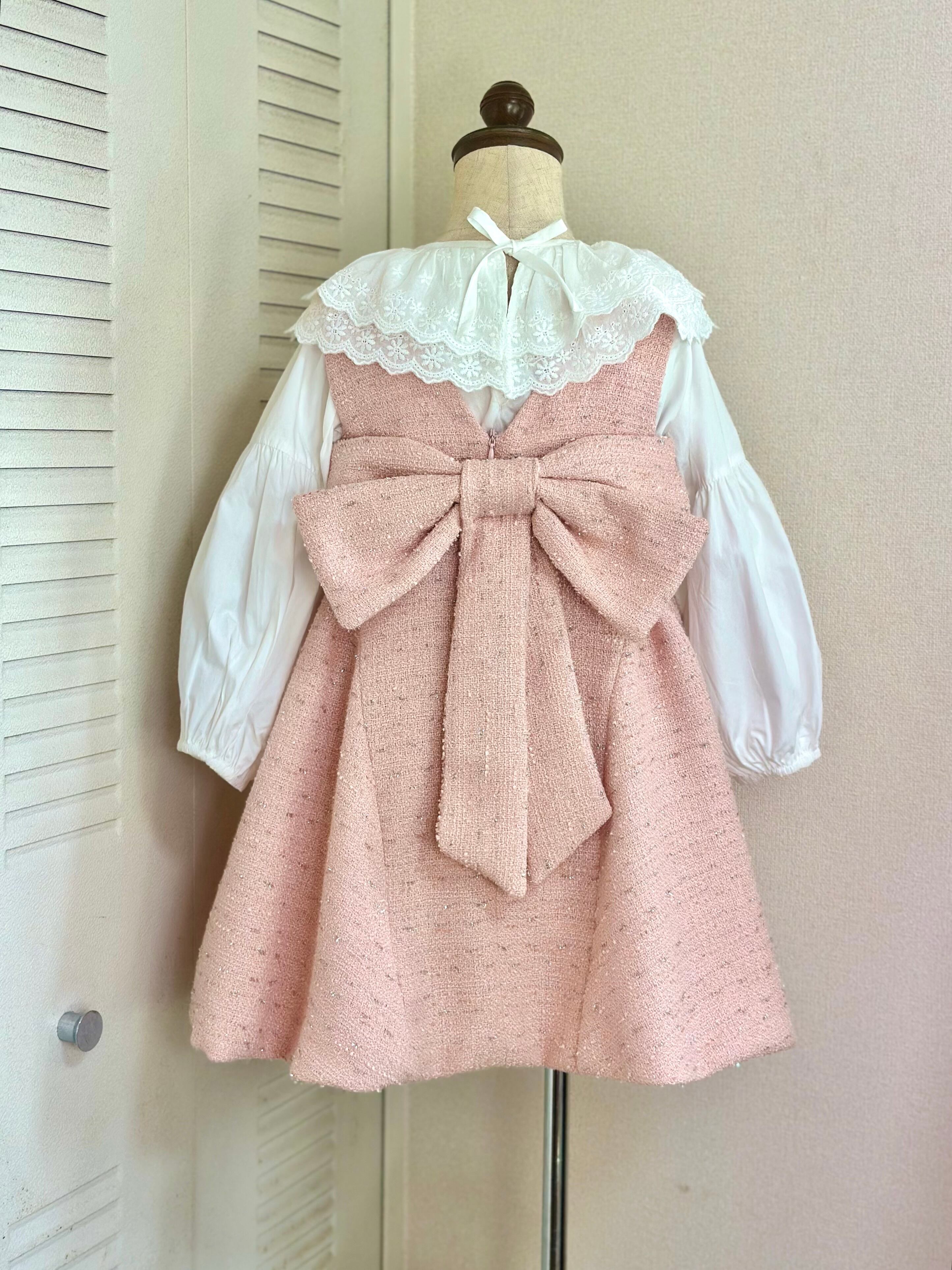・ツイードワンピース(リボン付き・取り外し可能)