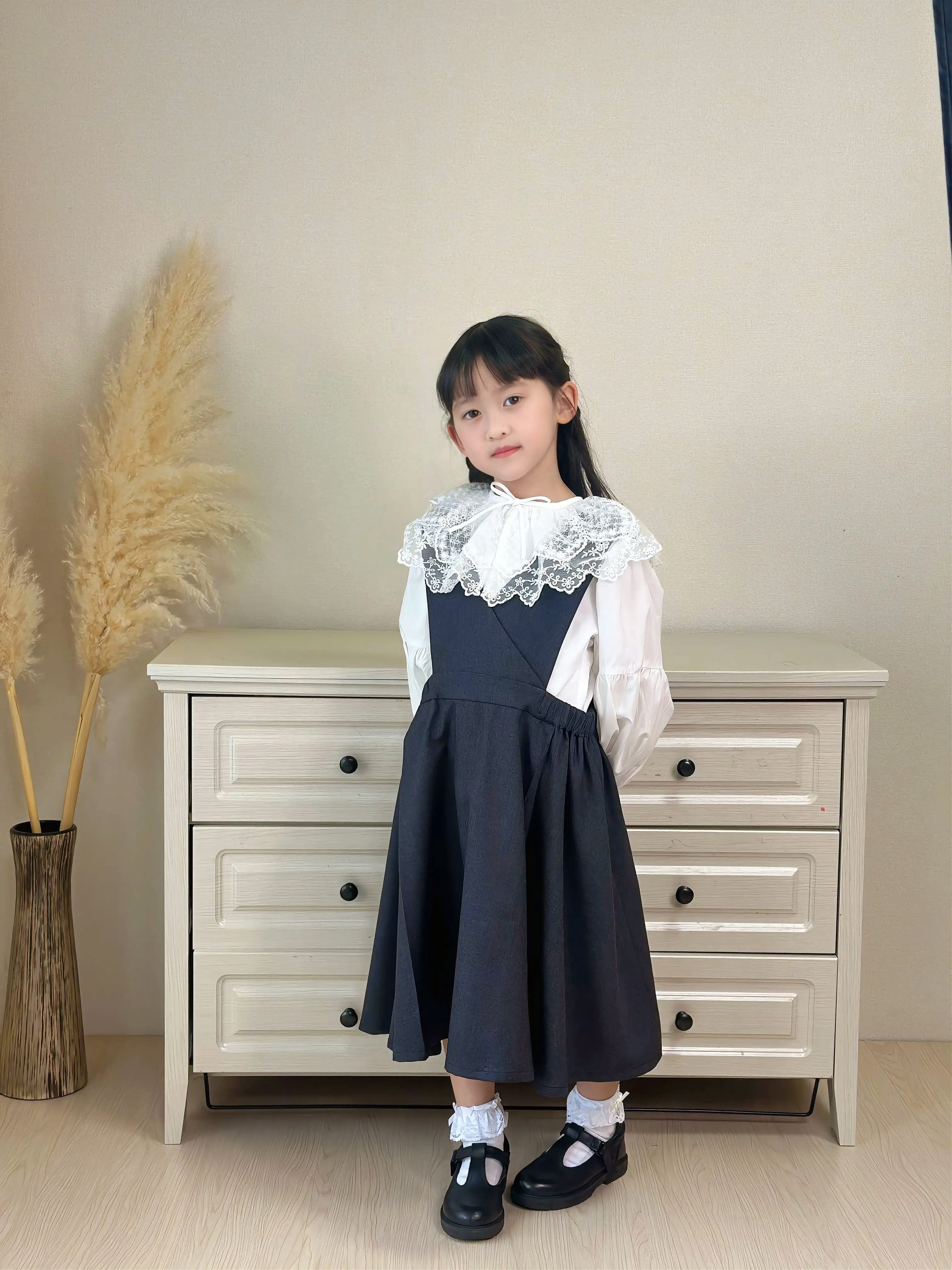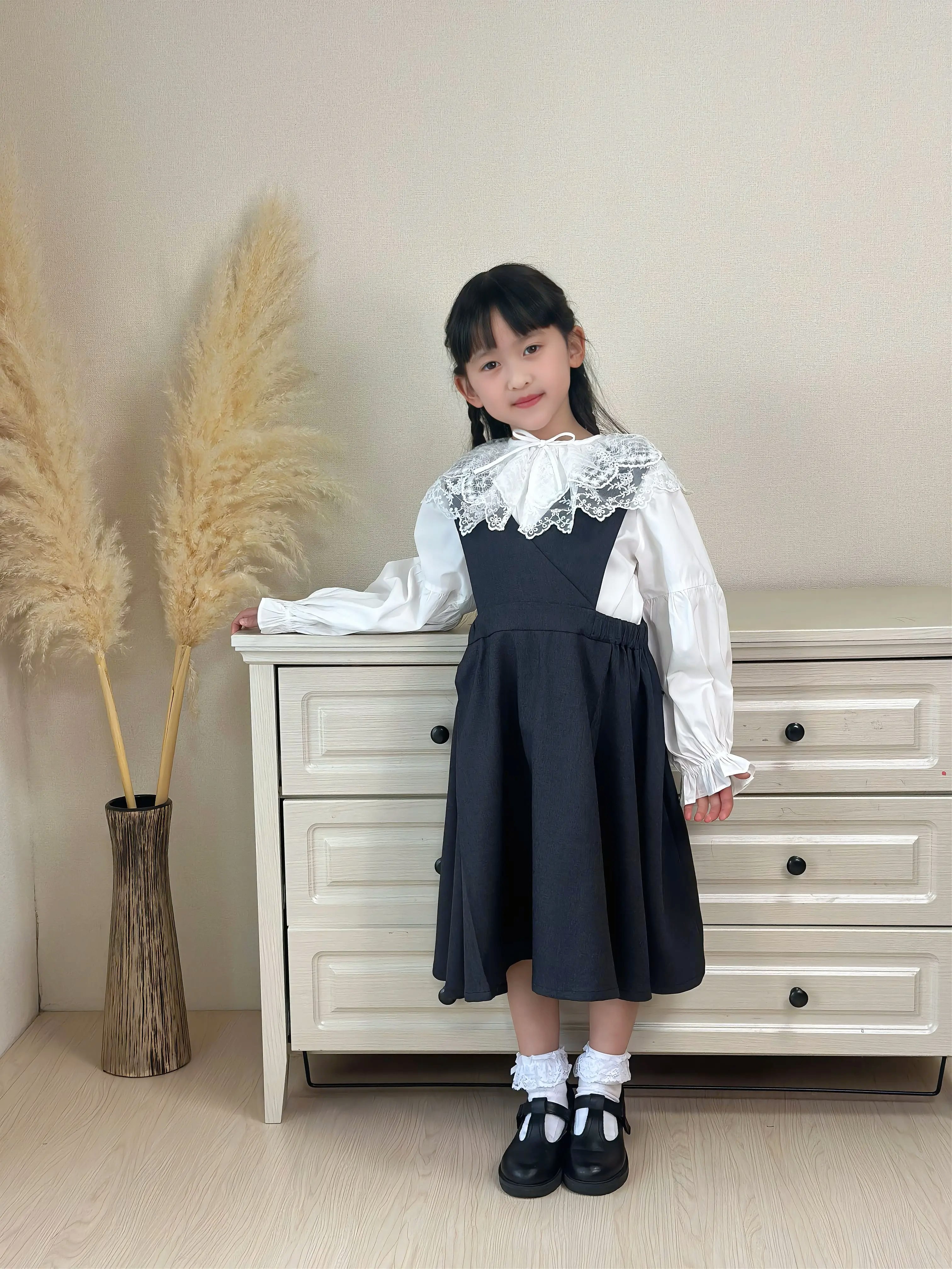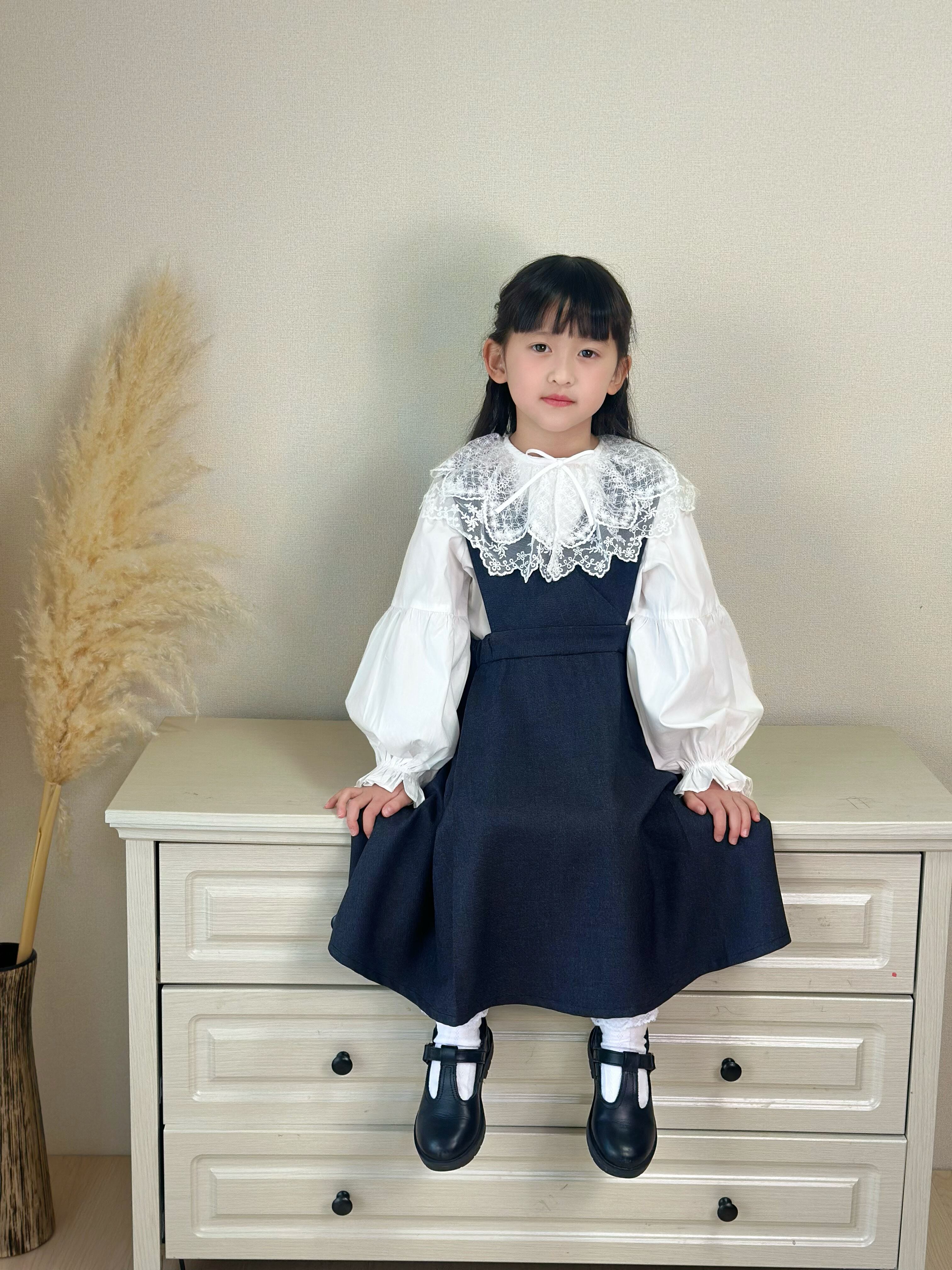 No.X2609|ハンドメイド女の子用 入学式セットレース襟ブラウス×ワンピース