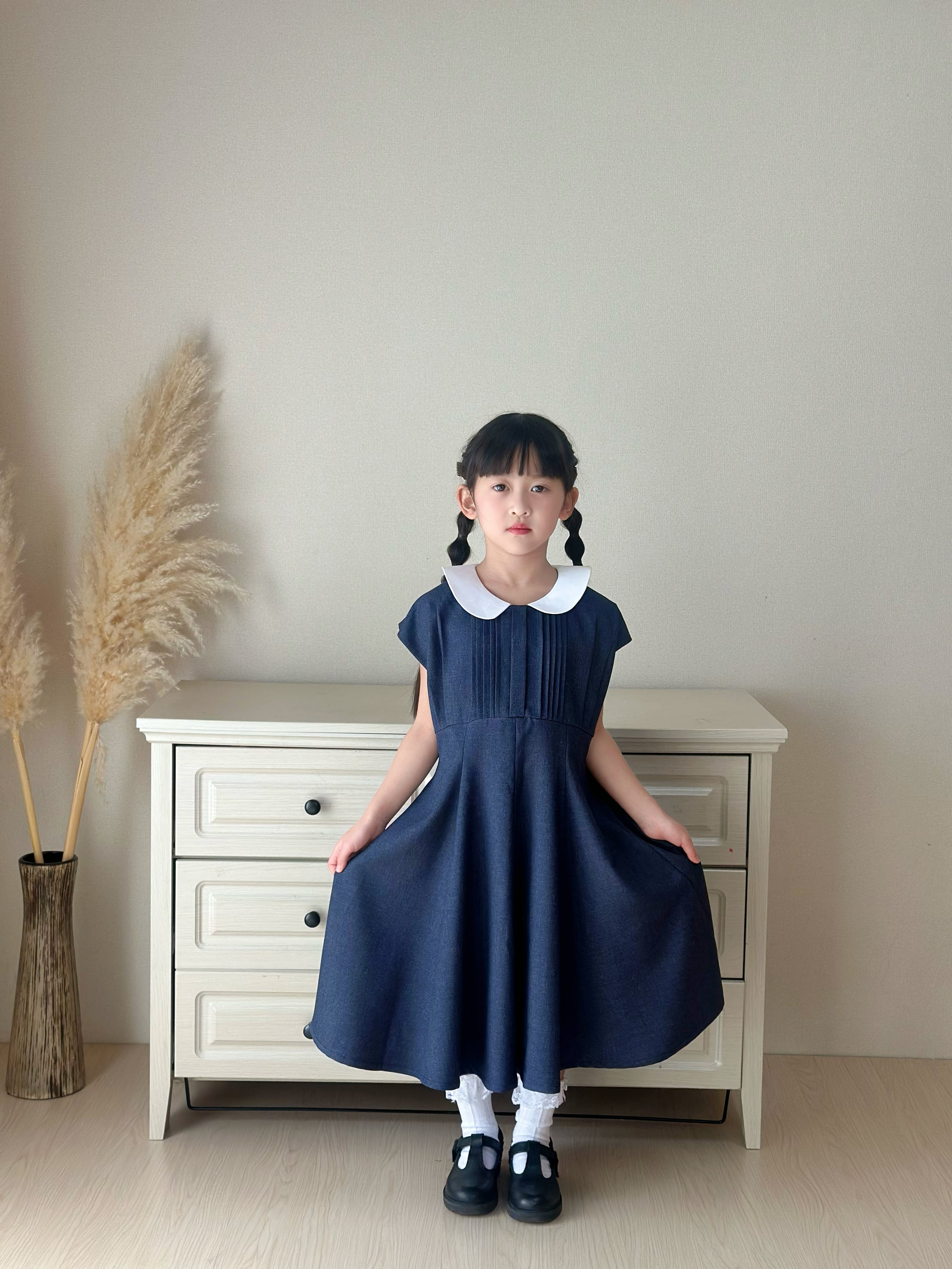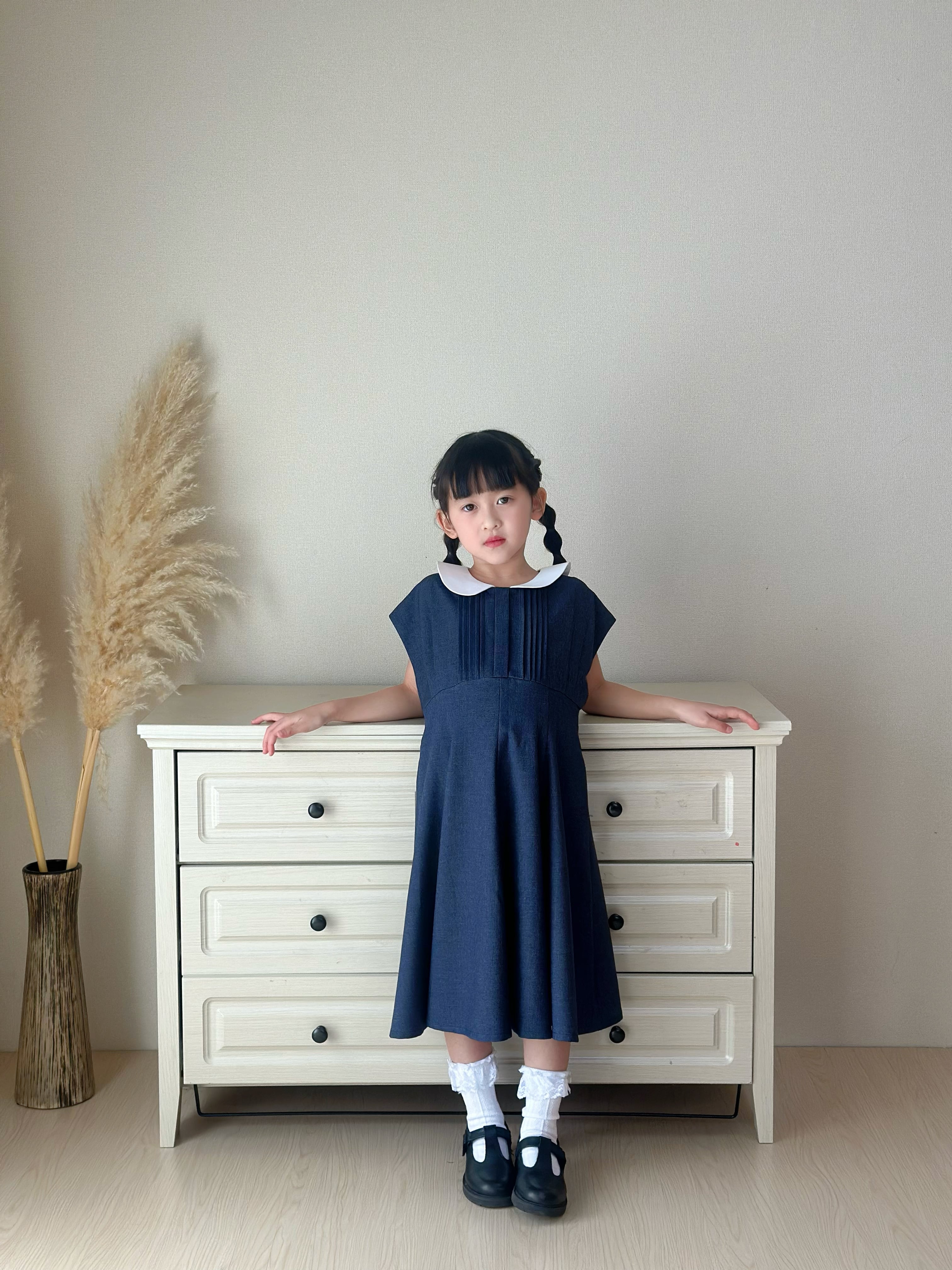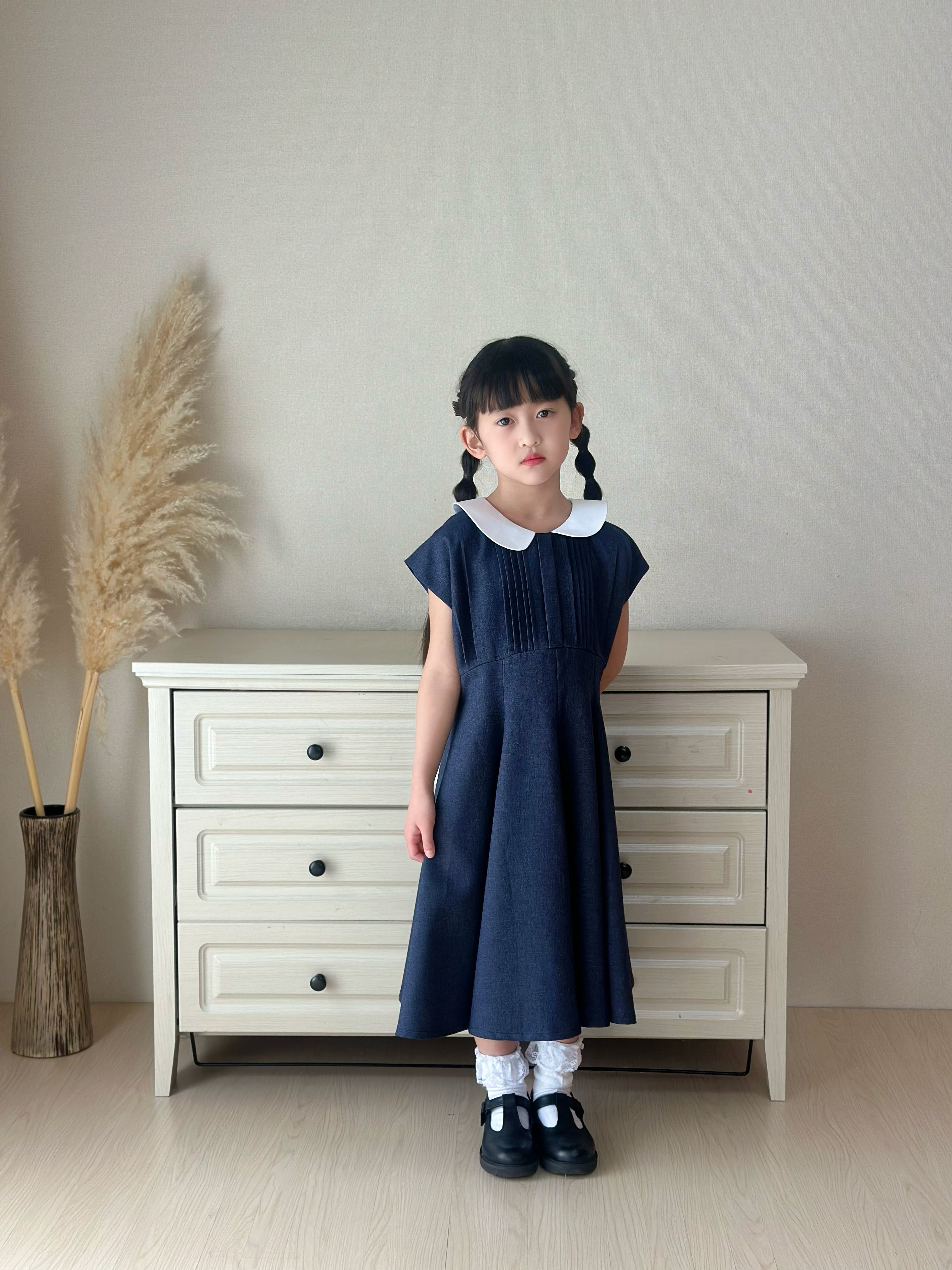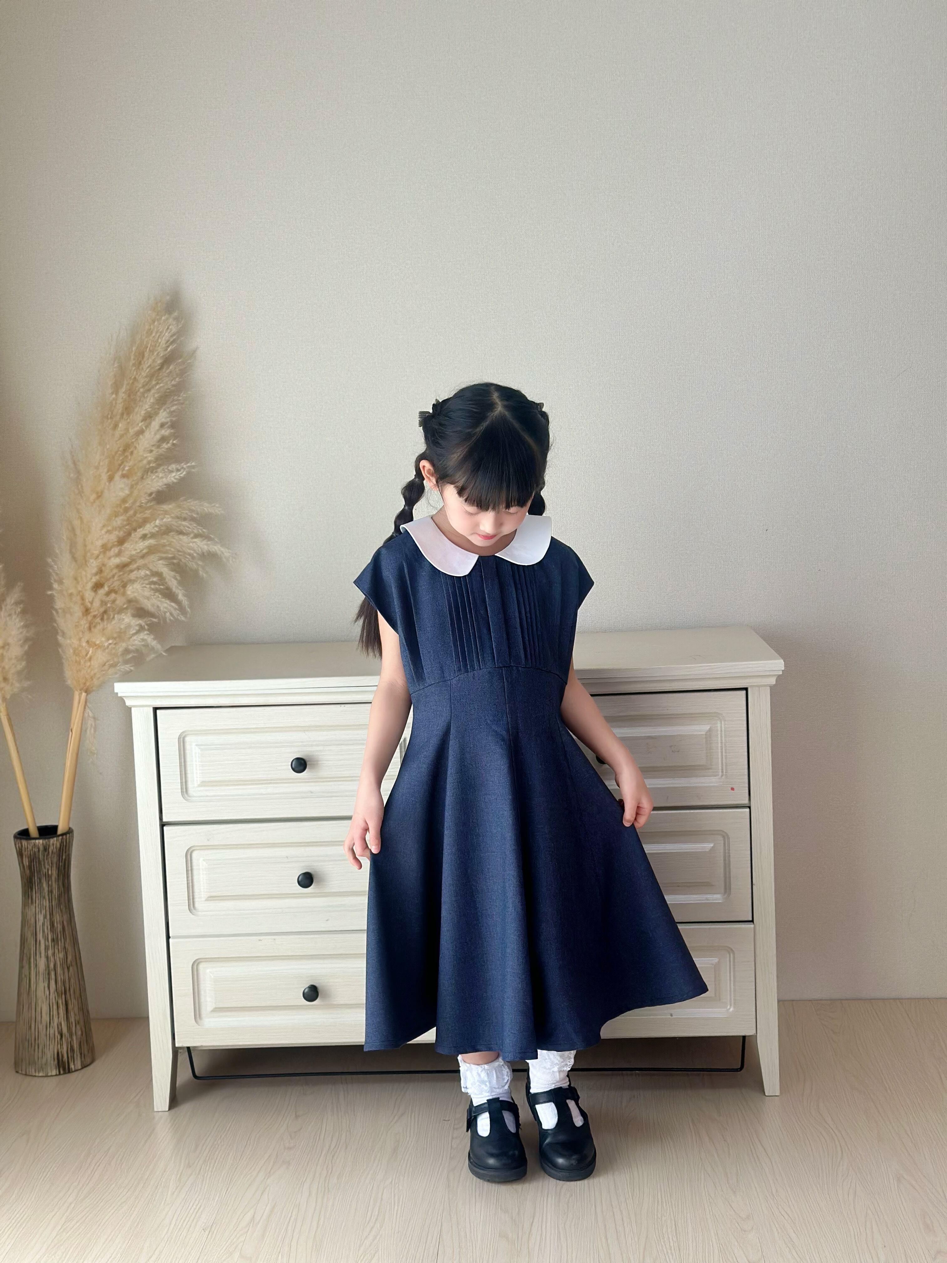 白い丸襟(セーラーカラー風)がやさしいアクセントになっています。