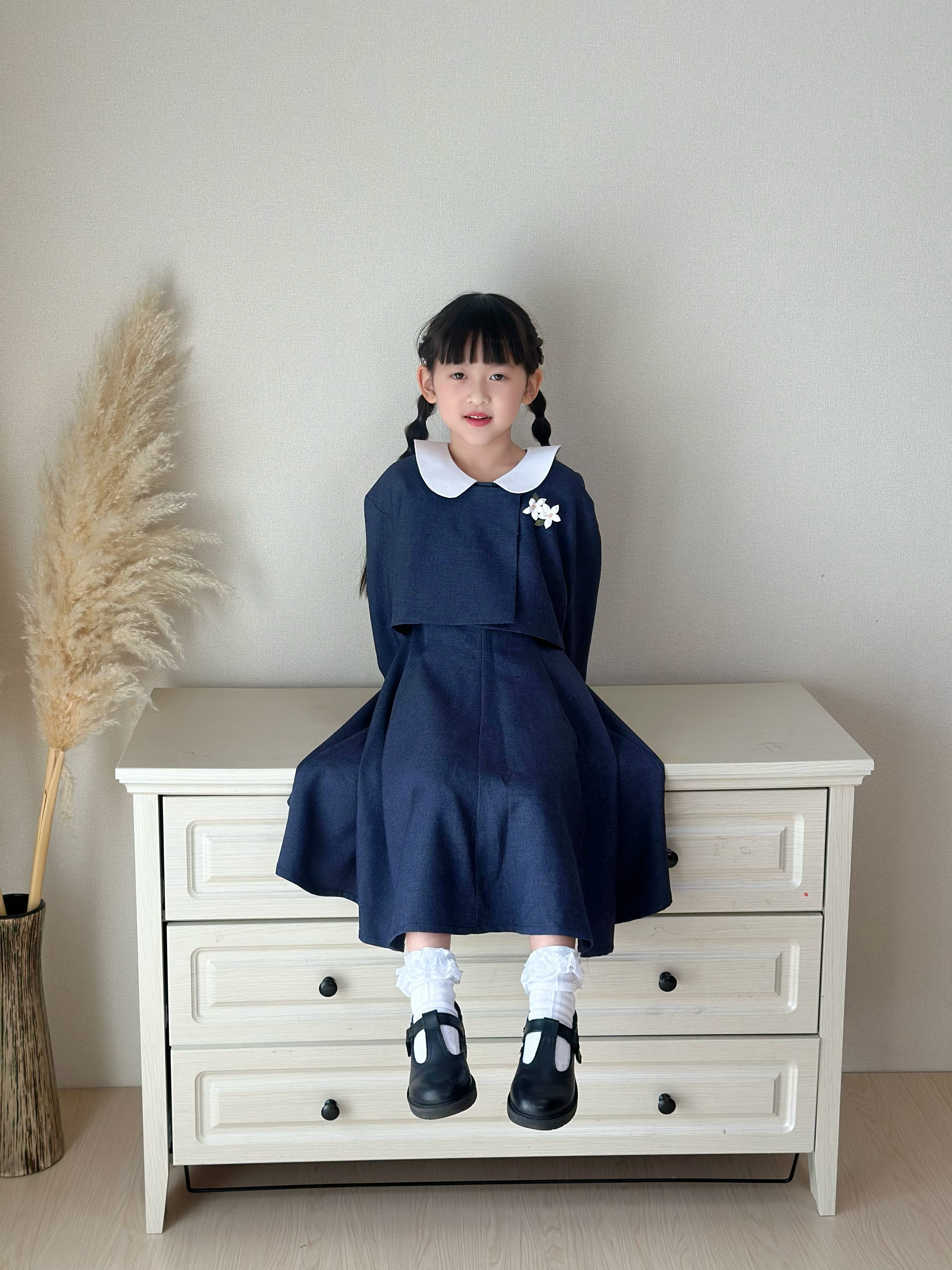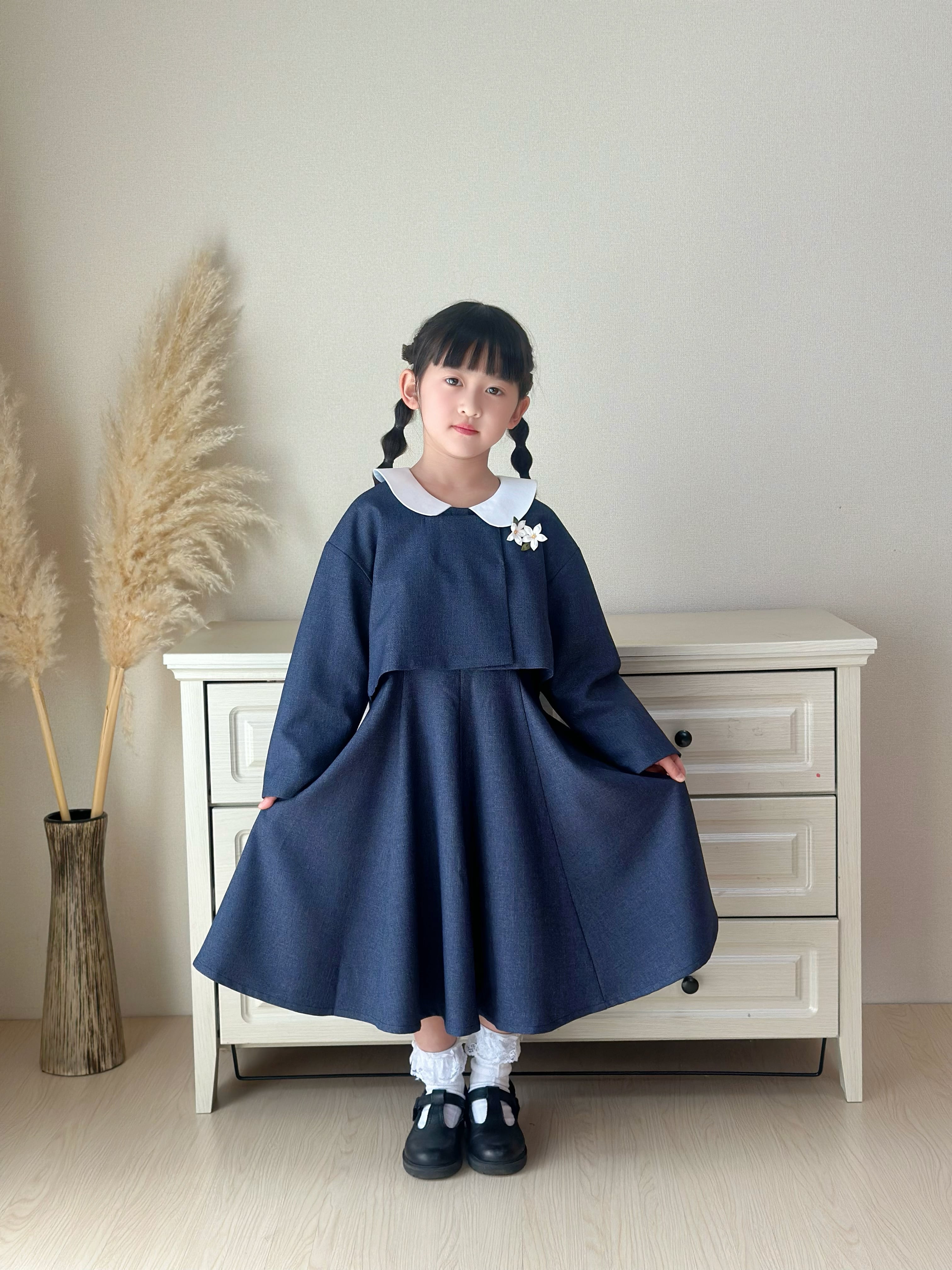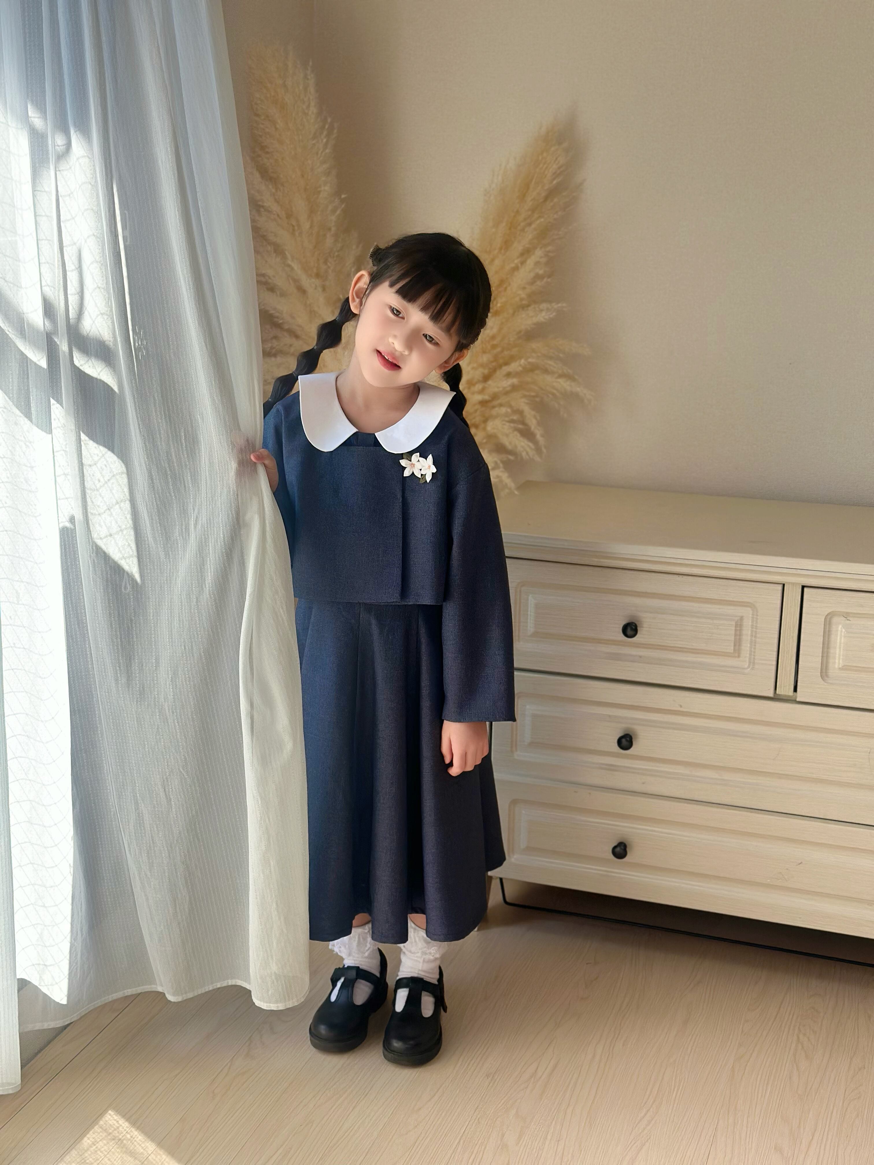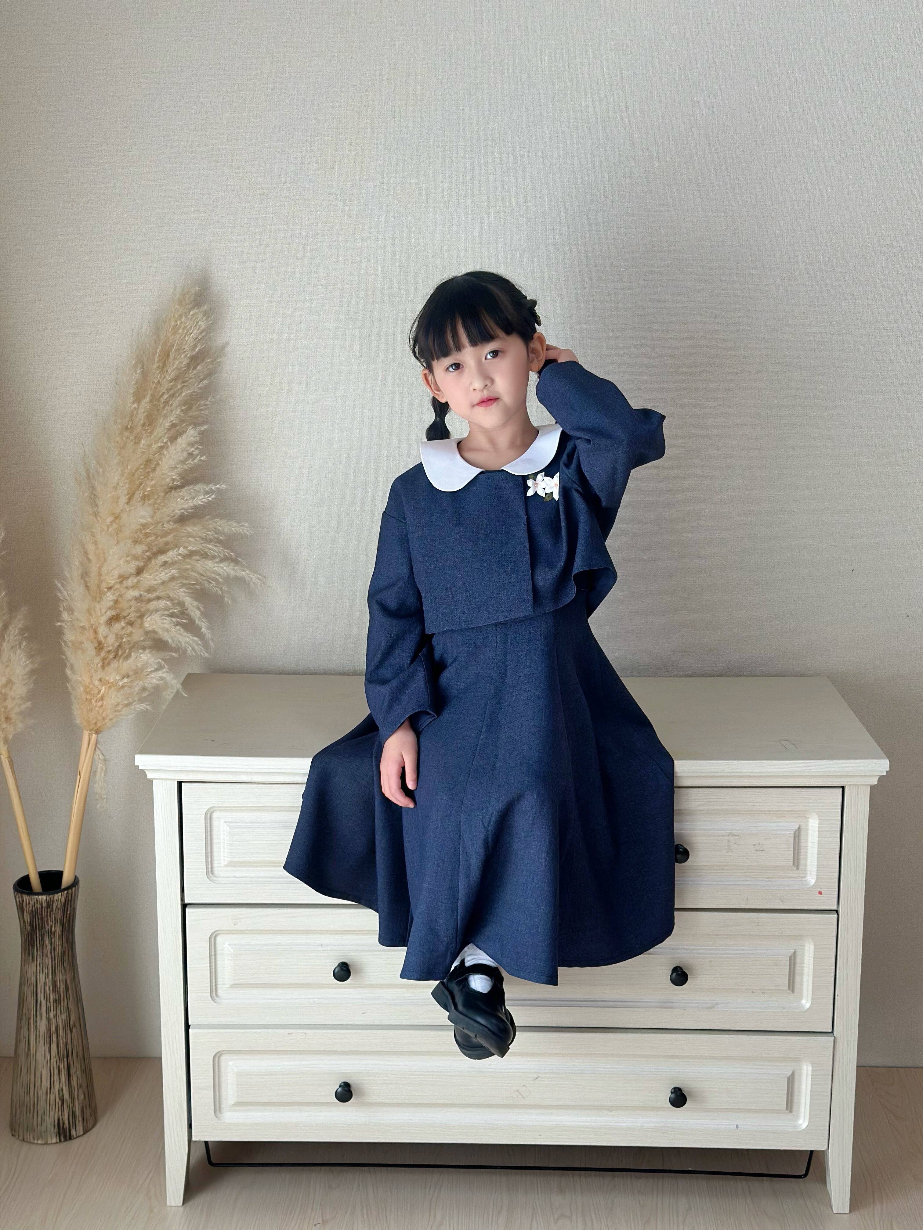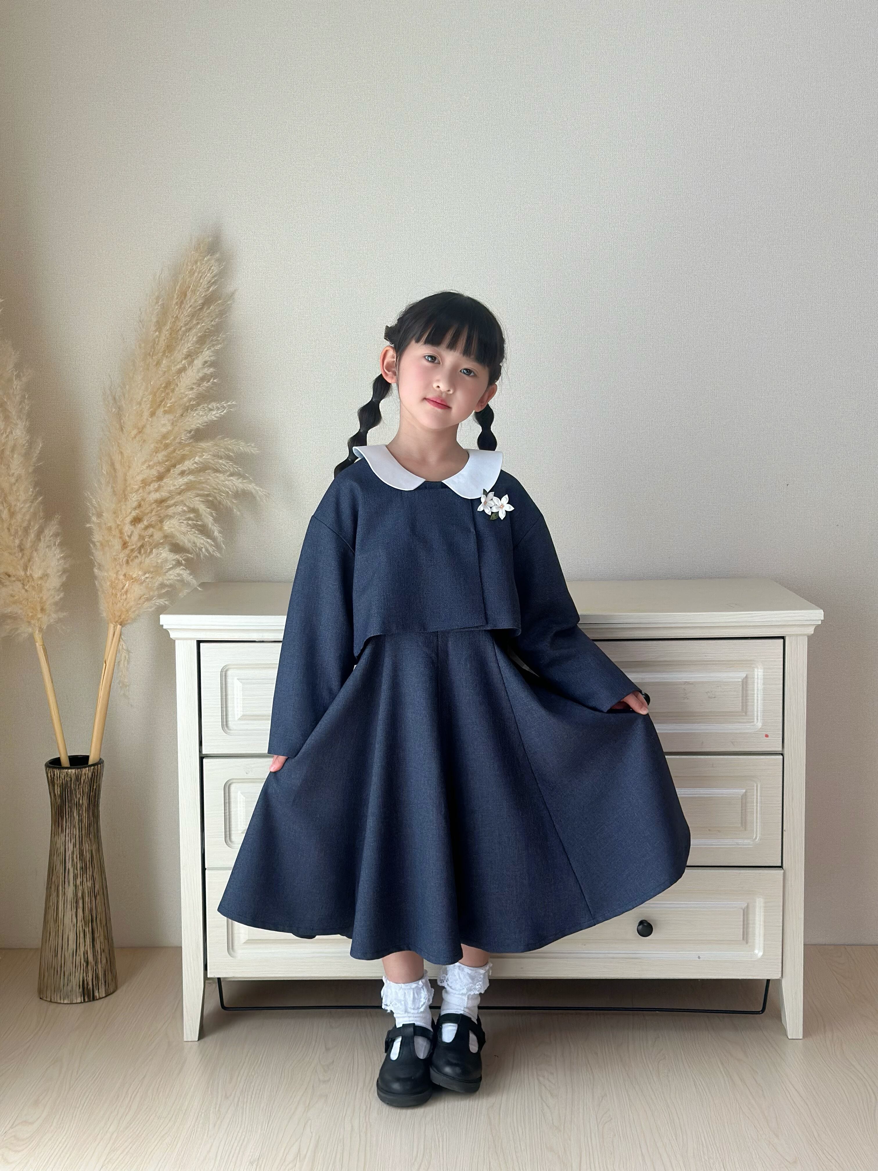 白い丸襟(セーラーカラー風)がやさしいアクセントになっています。