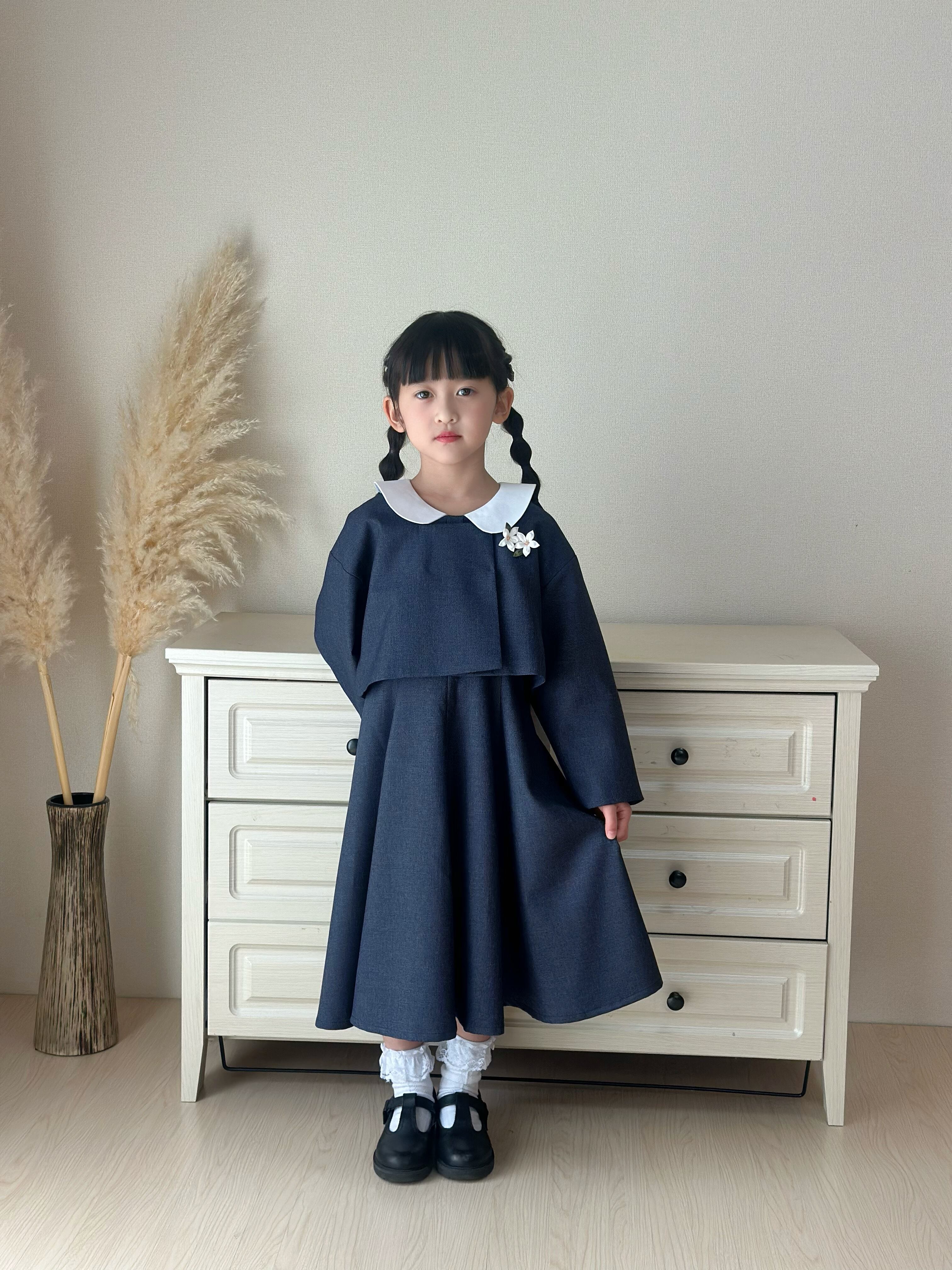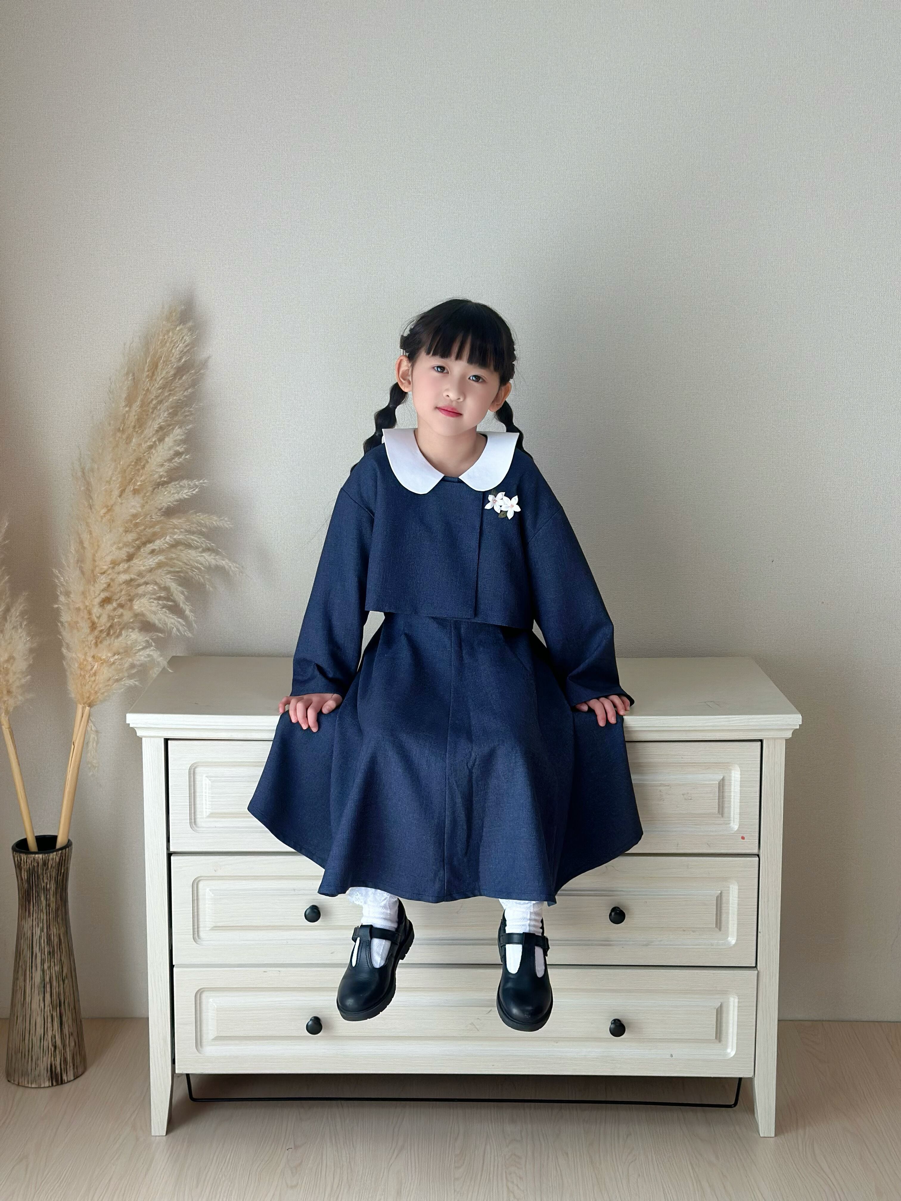 入学式やフォーマルなシーンにぴったりな、上品で落ち着いたネイビーカラーの女の子用セットです。