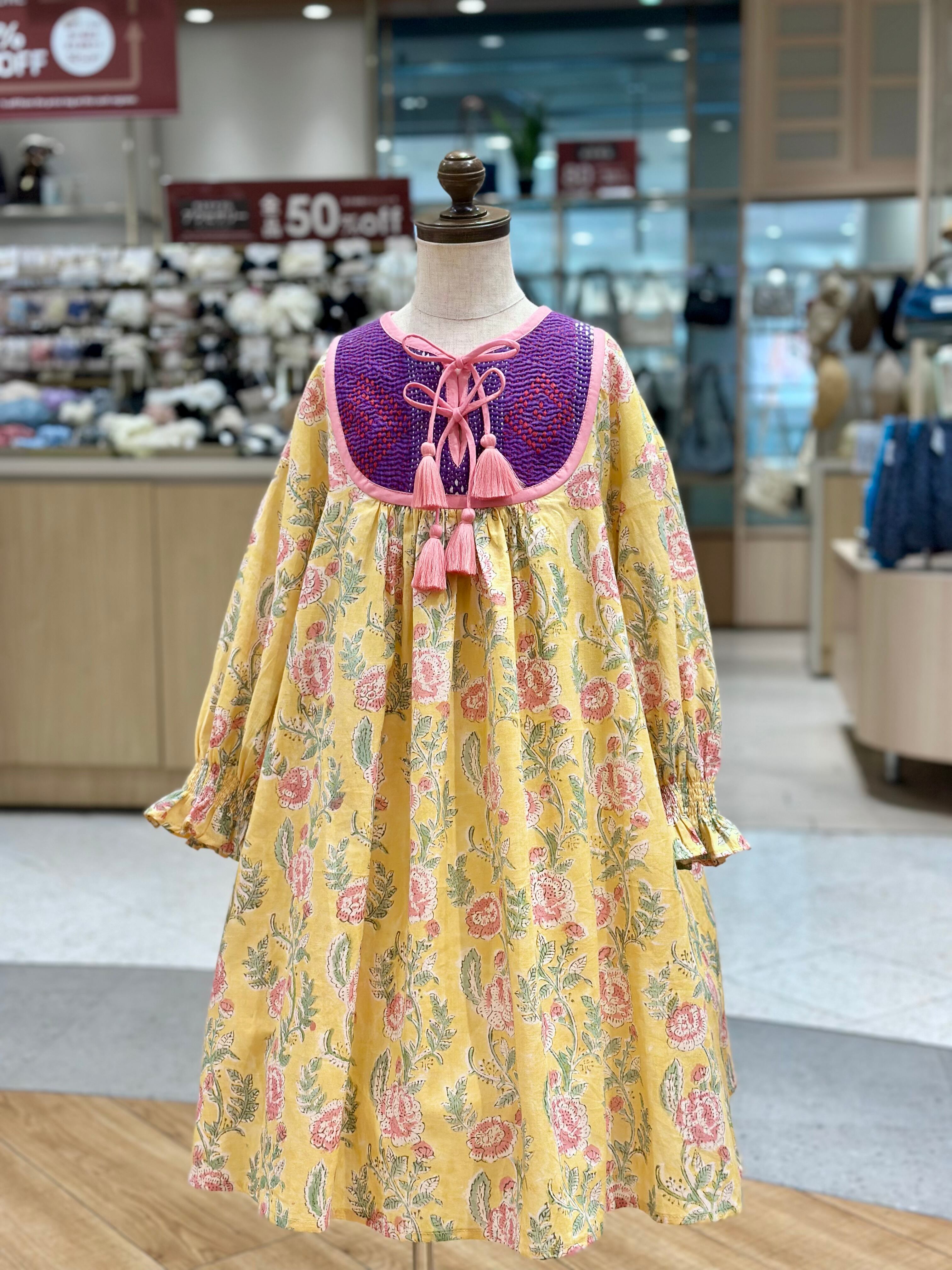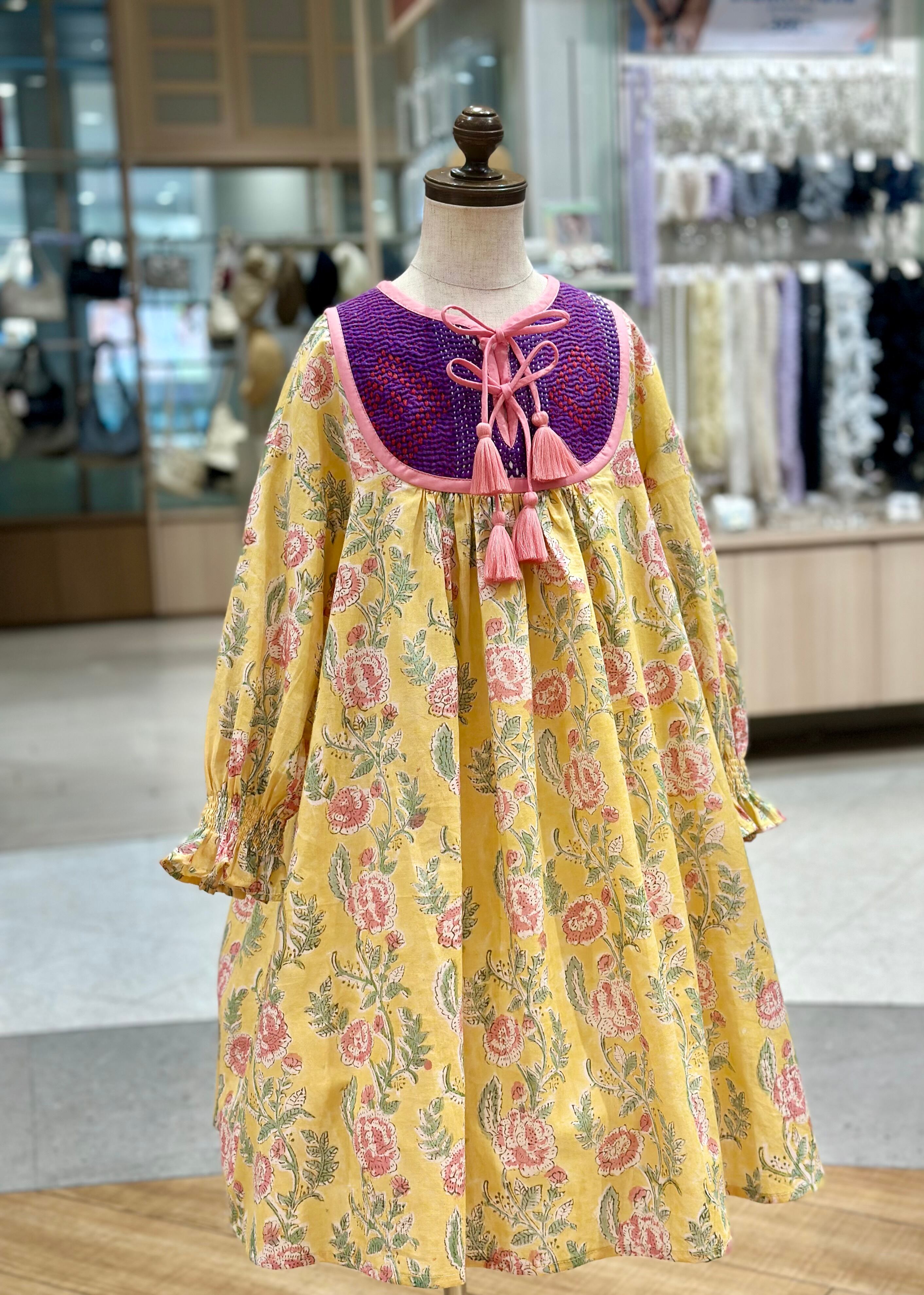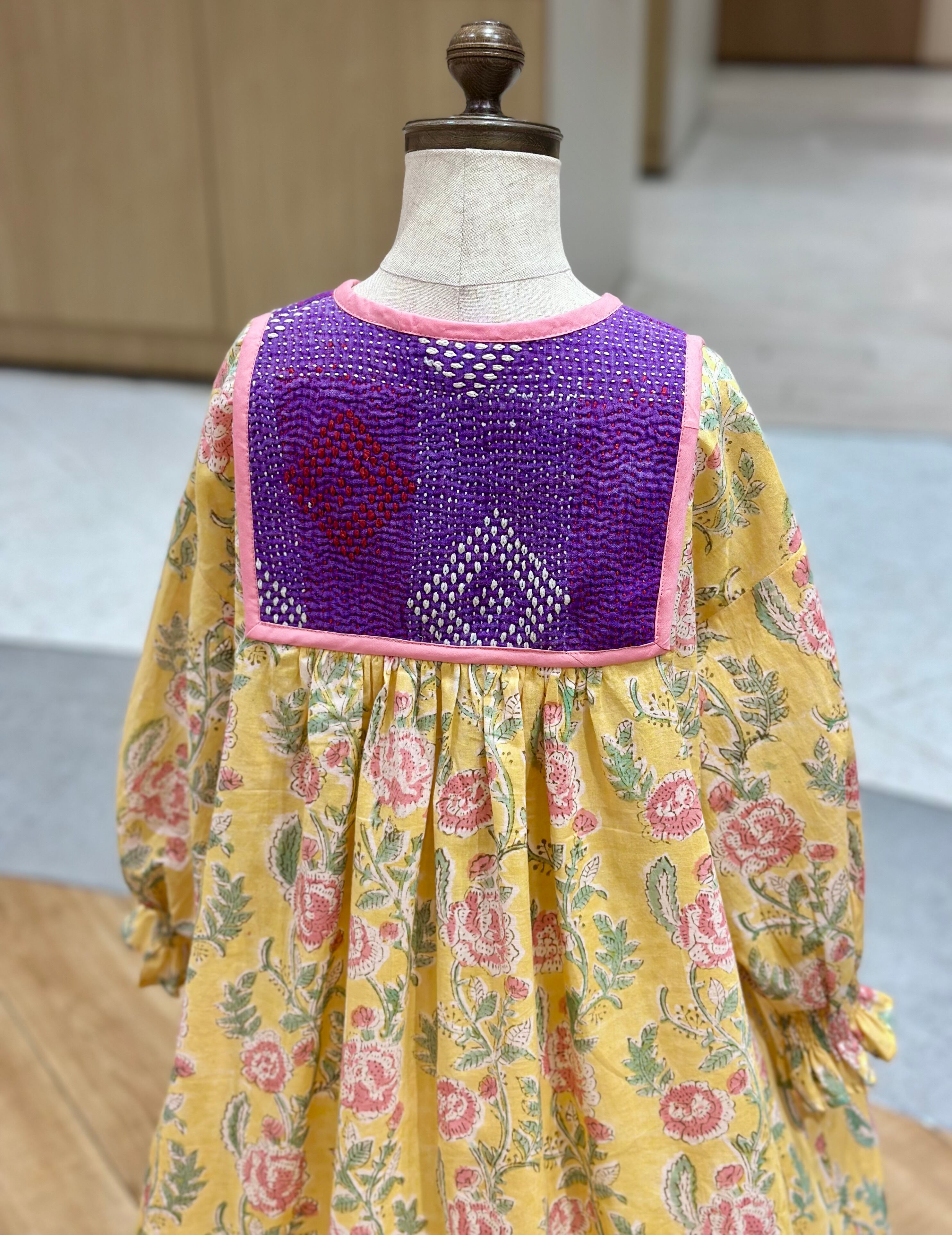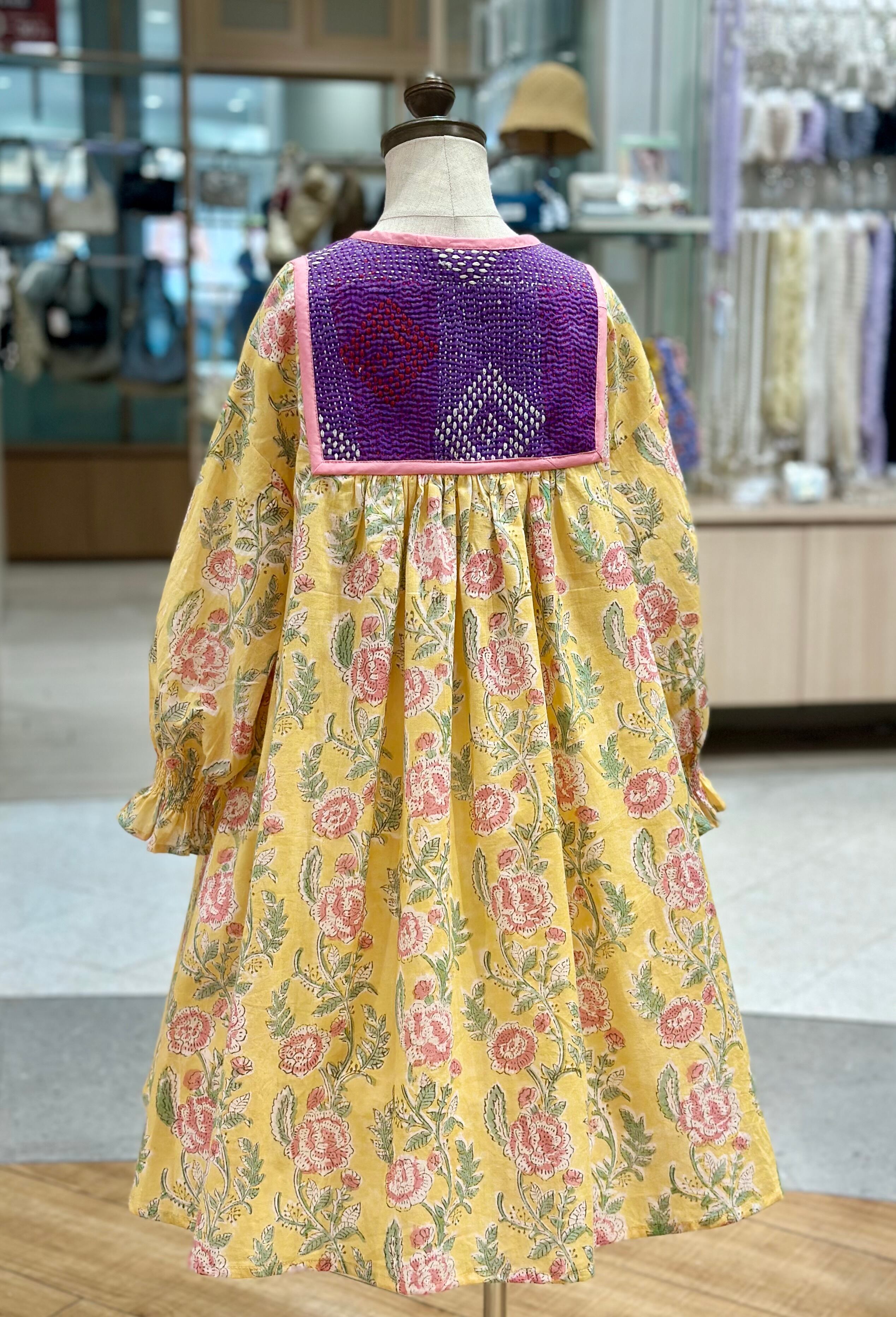 No.IN05|ハンドメイ女の子一点物インド綿カンタキルトワンピース