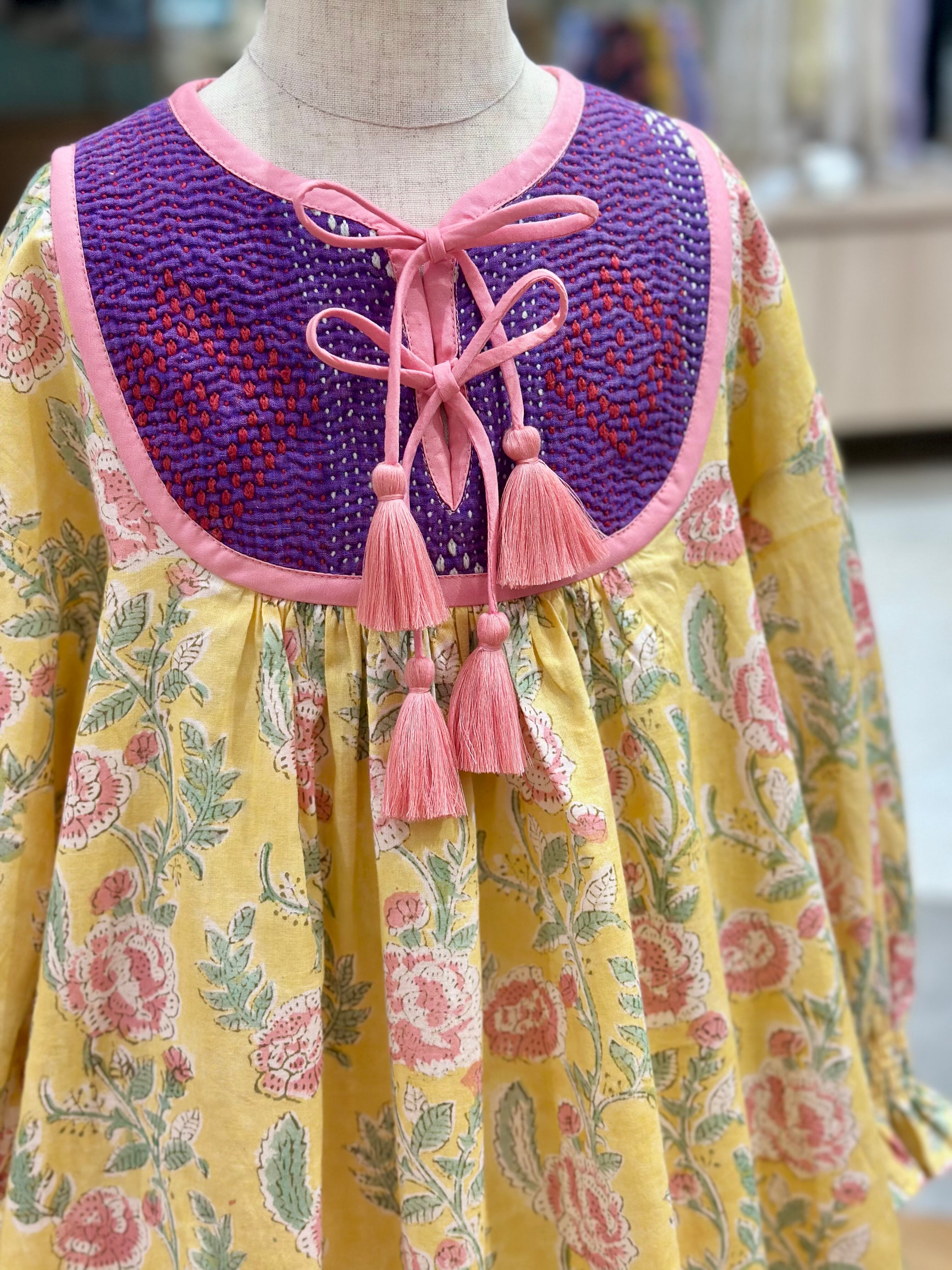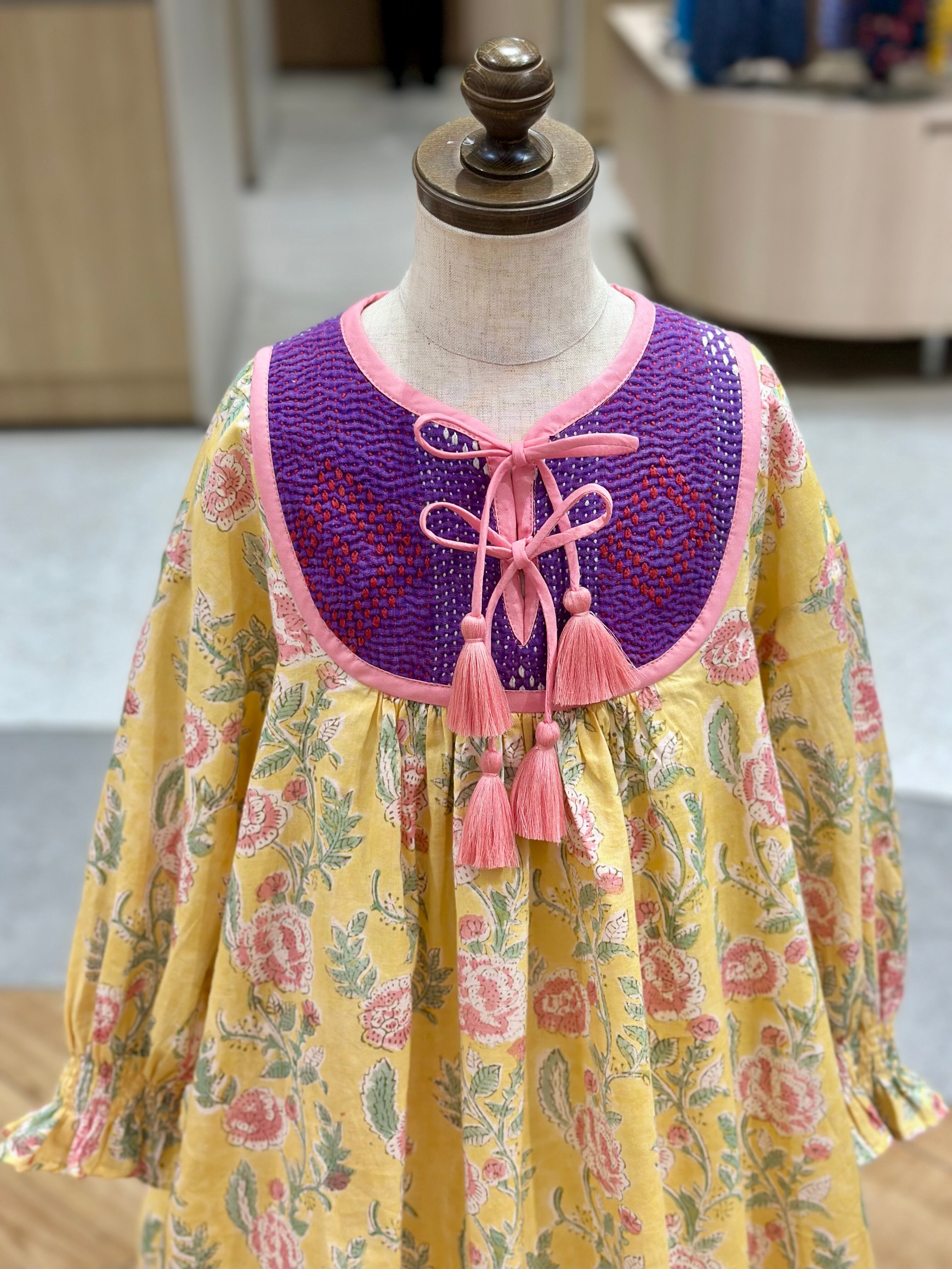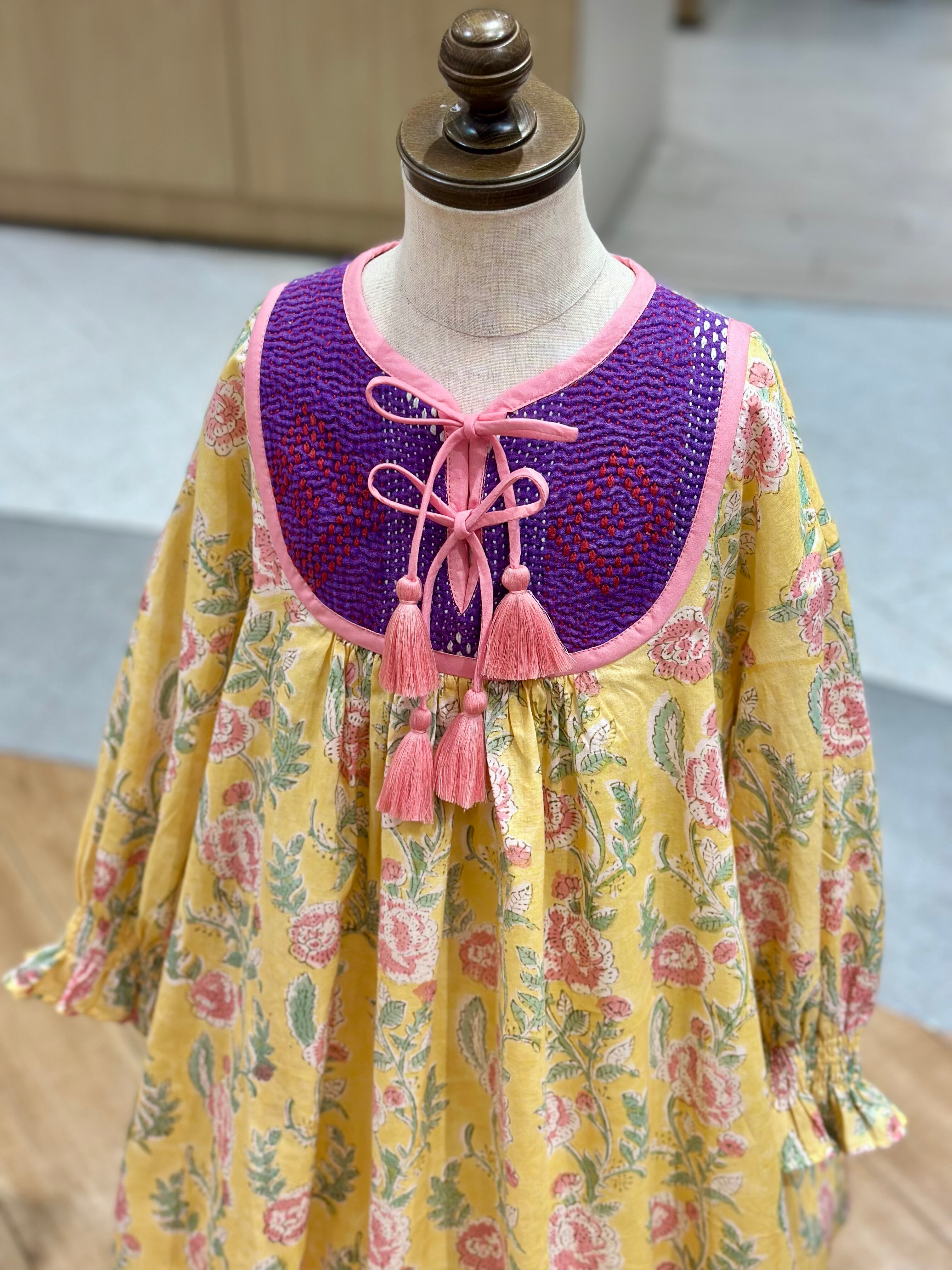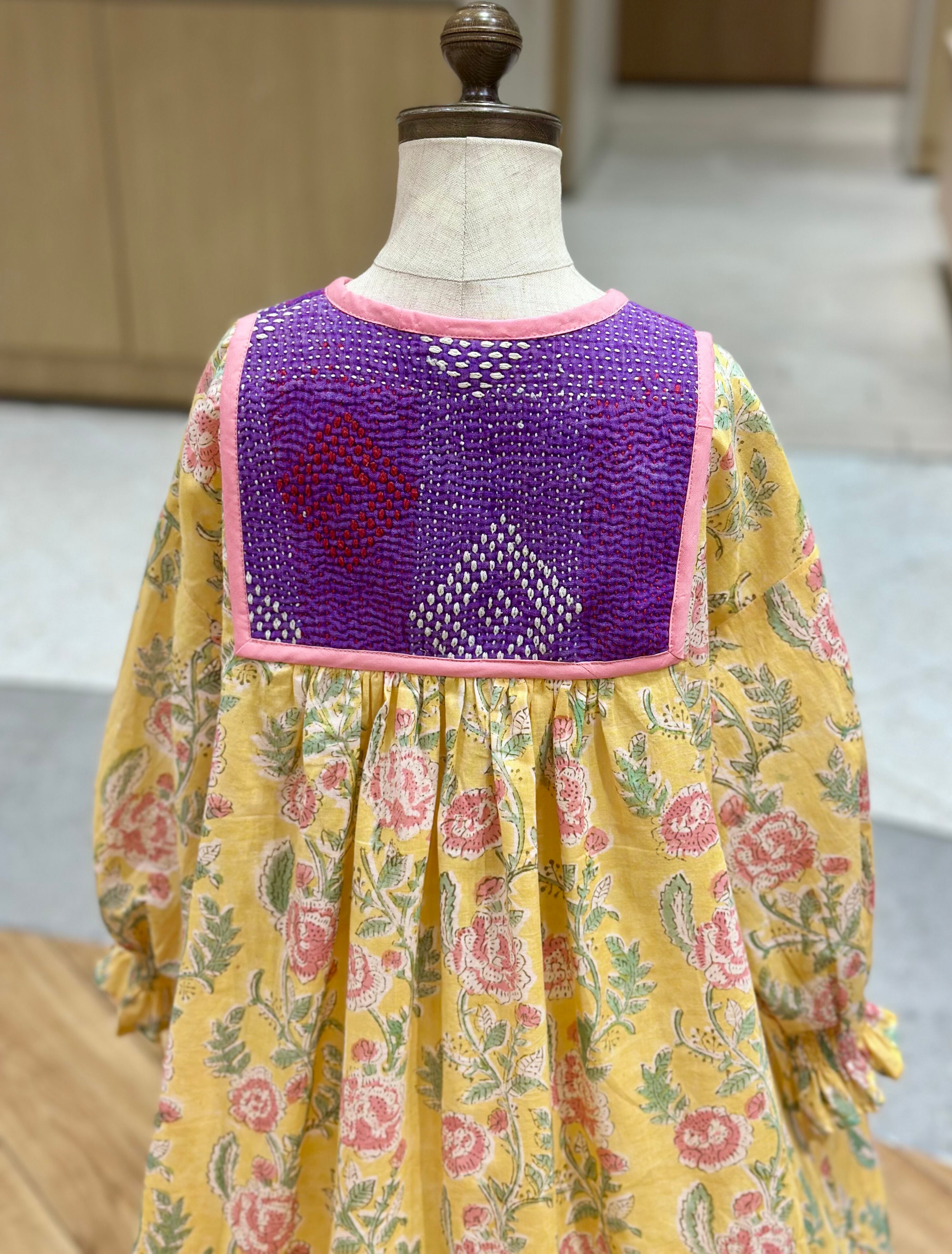No.IN05|ハンドメイ女の子一点物インド綿カンタキルトワンピース